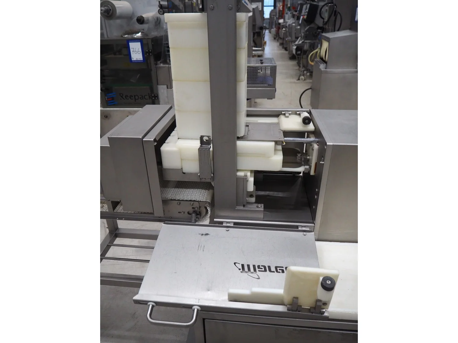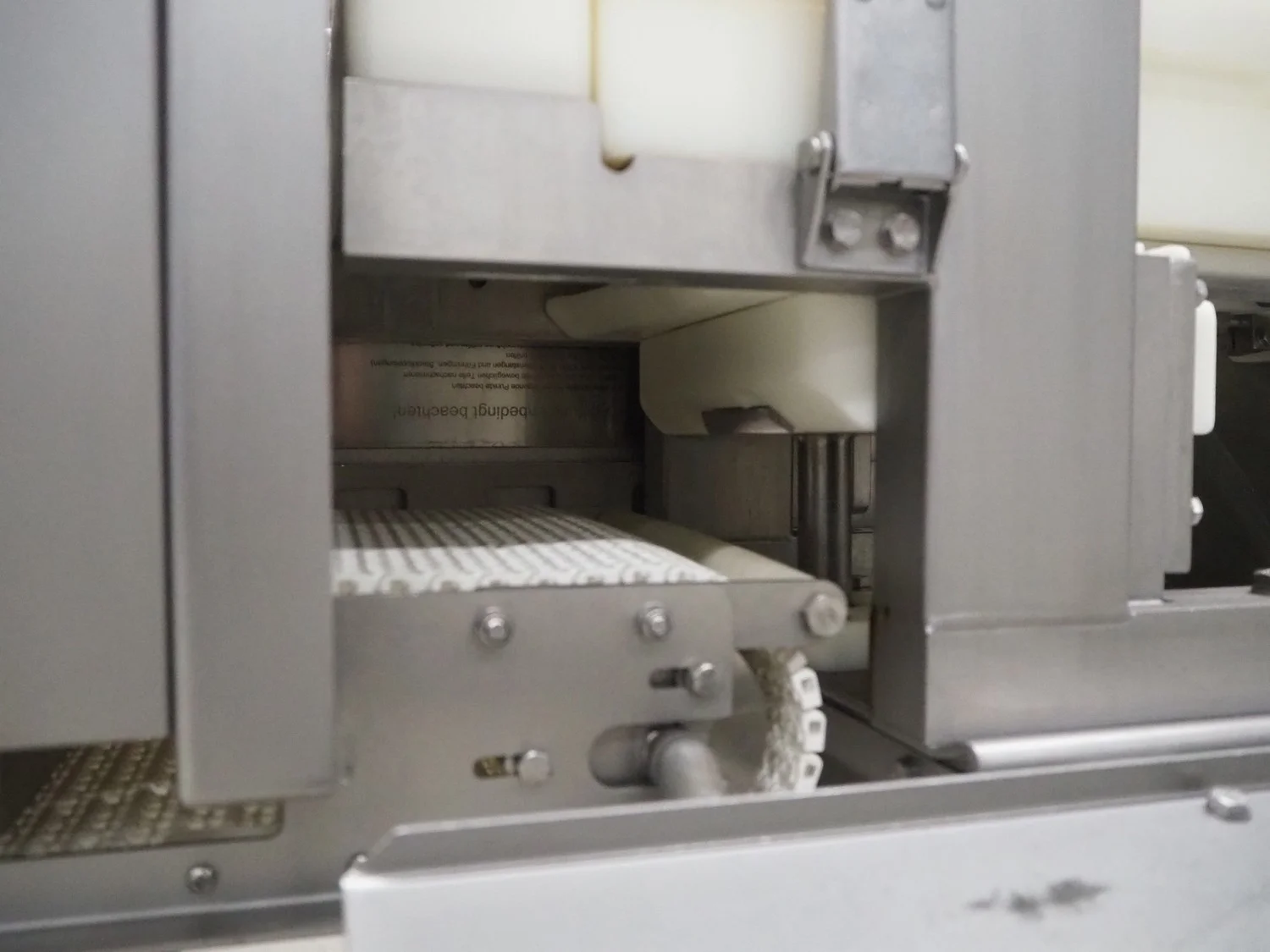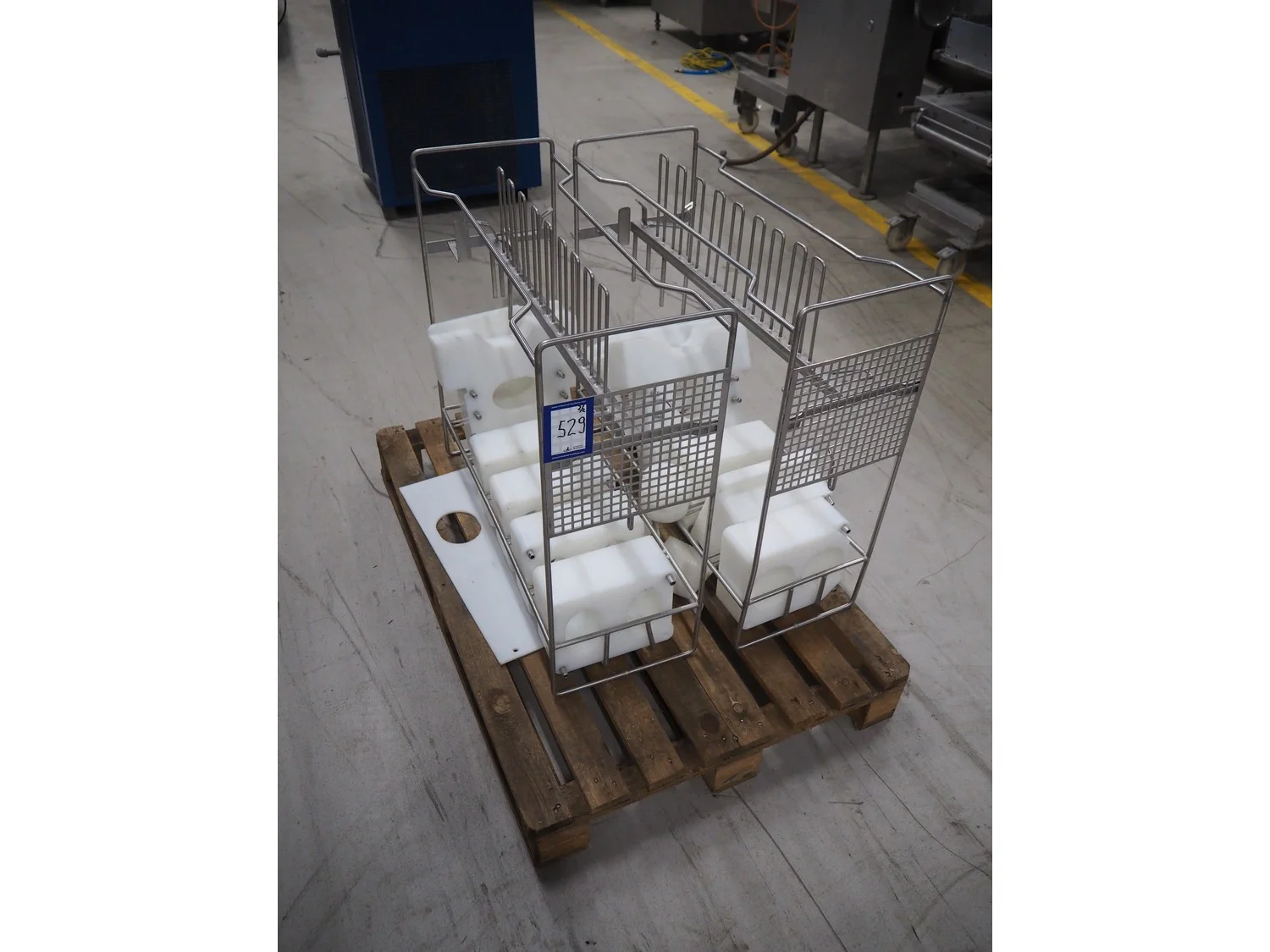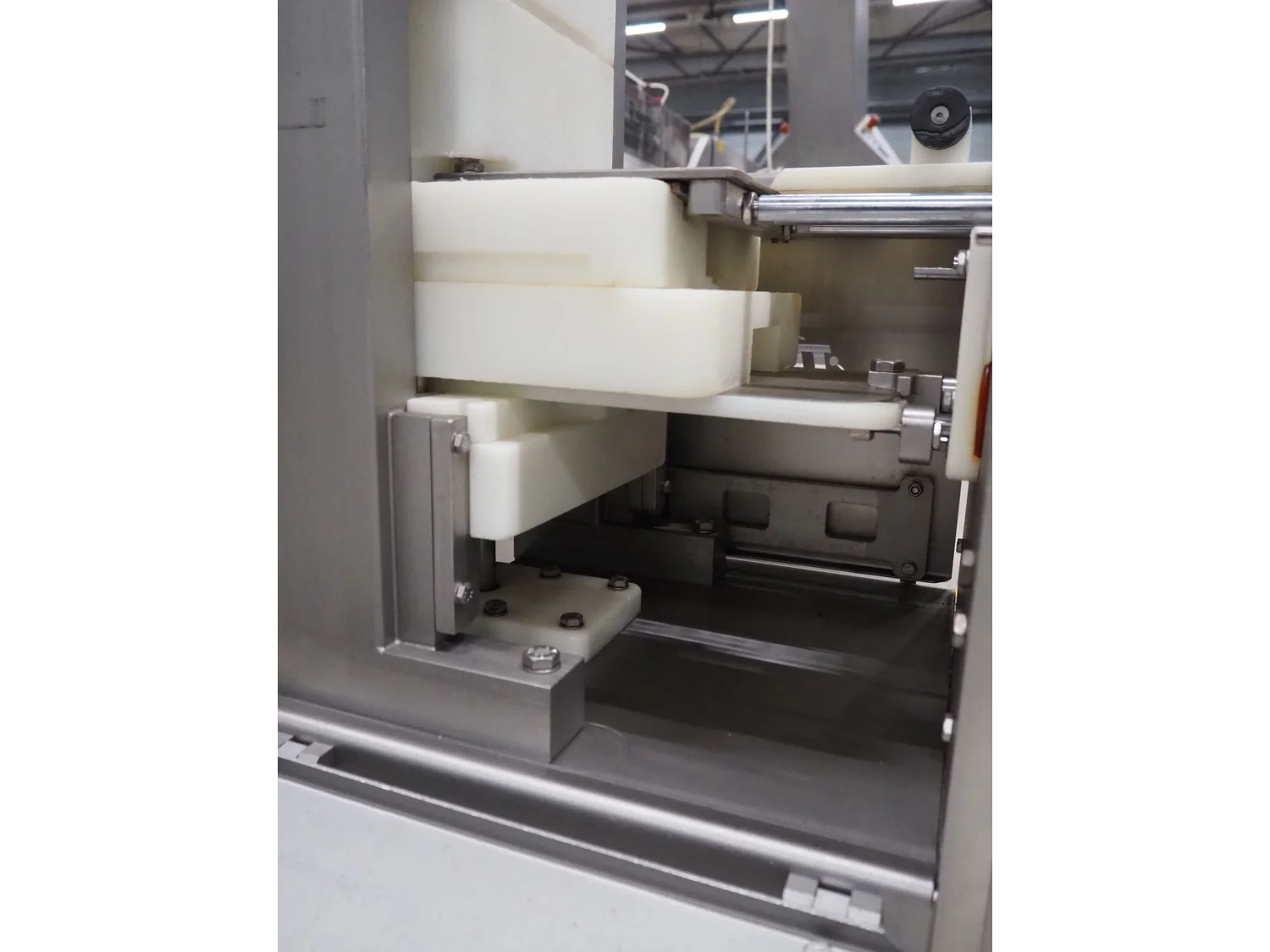 Marel mobile portioning machine, type: Portio 4003 S, serial number: 080S-0020, year of construction: 2004, 400/220 V, 3 Ph, 50/60 Hz, 1.2/2.2 A, 0.5 kW, weight: 500 kg, pressure: 6 / 9 bar, dye: (2x) 90 mm x 90 mm, plastic mesh outfeed belt, belt width: 250 mm, total dimensions: 2600 mm x 740 mm x 2550 mm. Including pallet with parts.