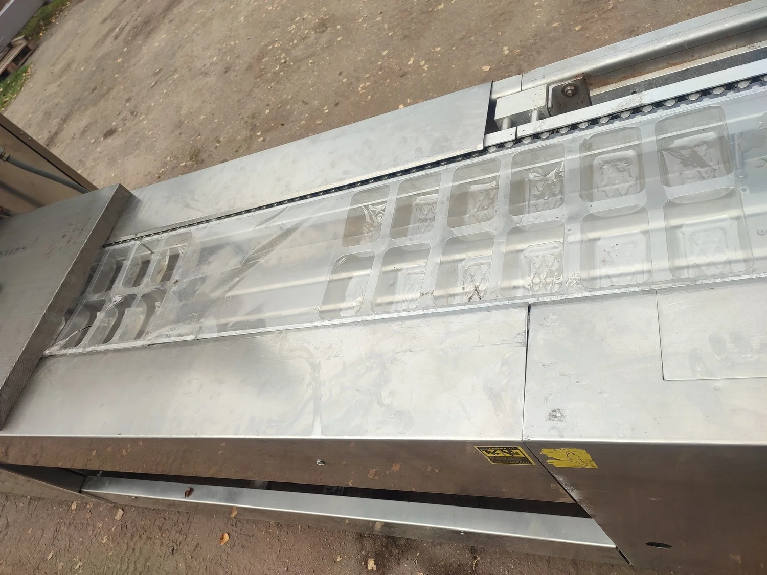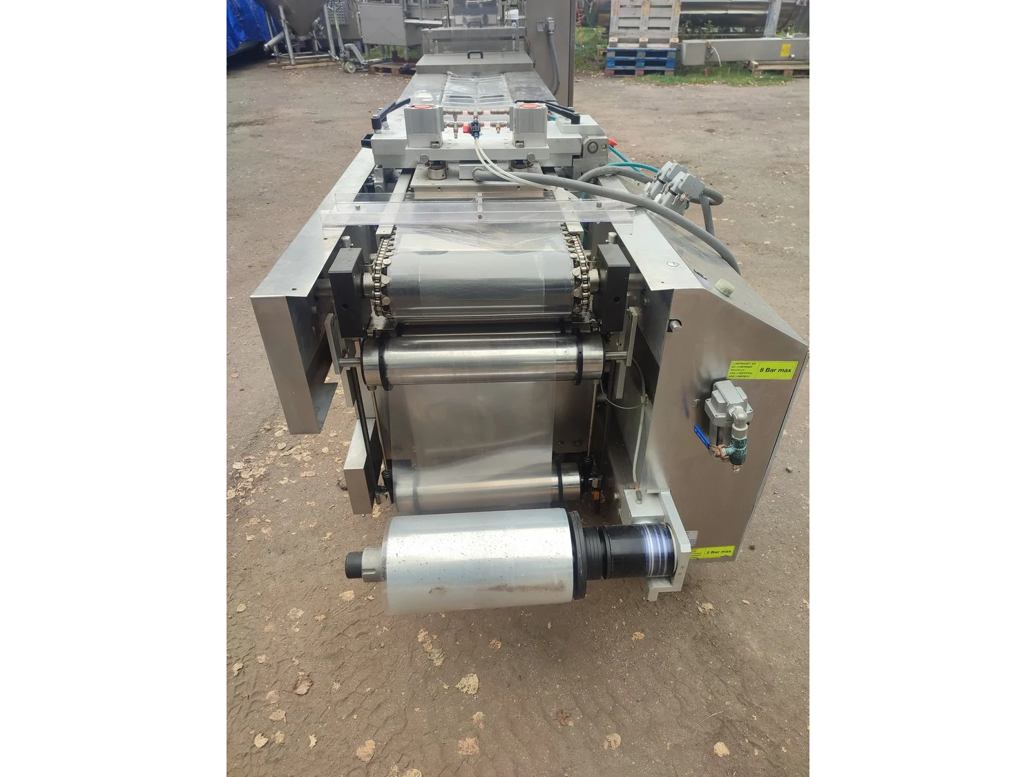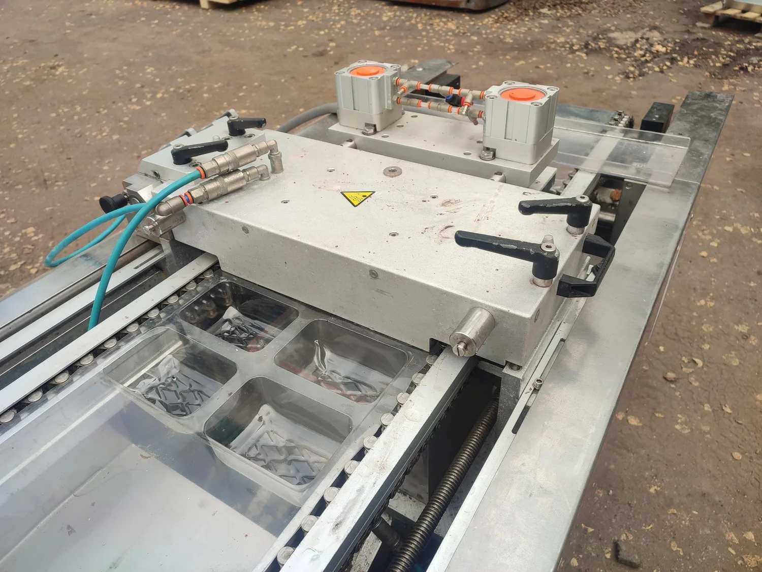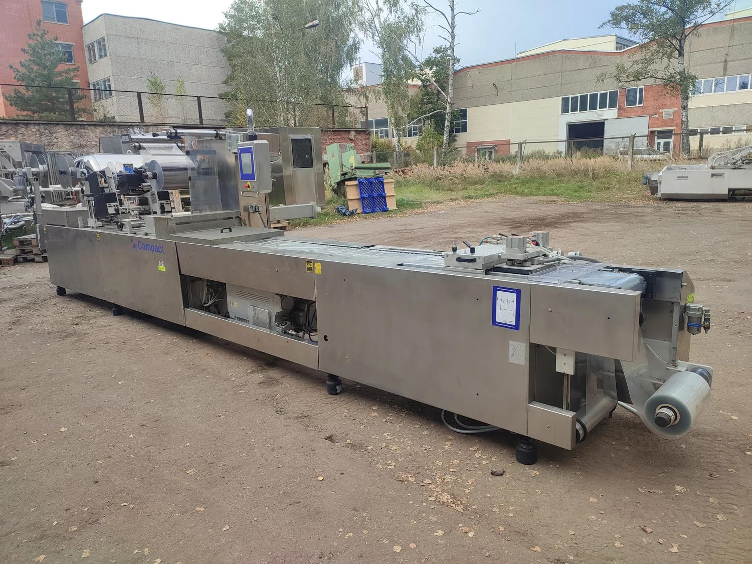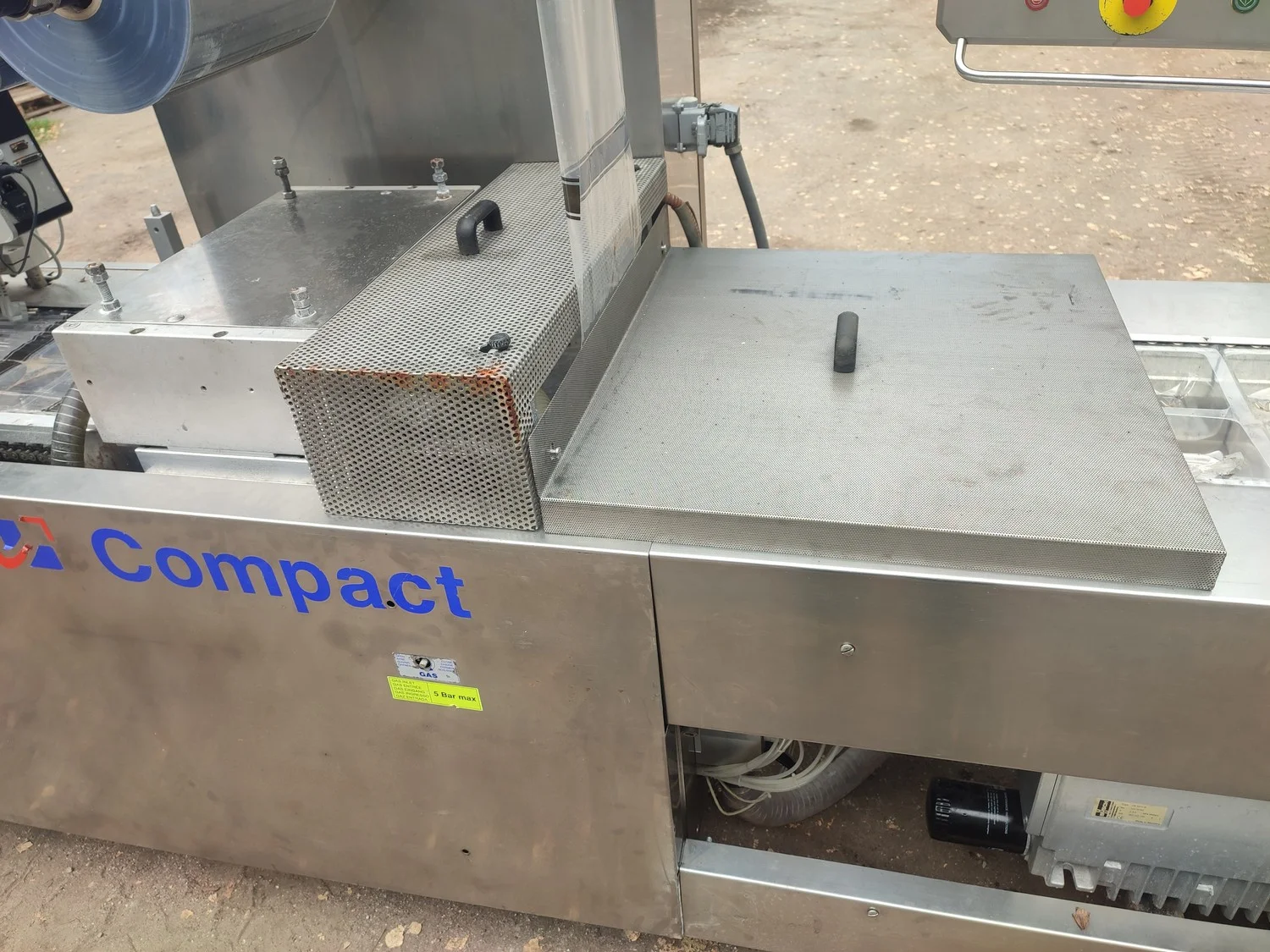 CFS Palazzolo S.p.A. thermoformer, type: SFC COMPACT M340 3.11, machine number: 788.120.1537, year of construction: 2002, 400 V, 3 PH, 50 Hz, 38.06 A, 26.37 kW, bottom film width: 343 mm, top film width: 332 mm, dye: (4x) 140 mm x 90 mm x 55 mm, total dimensions: 7800 mm x 1100 mm x 2000 mm.