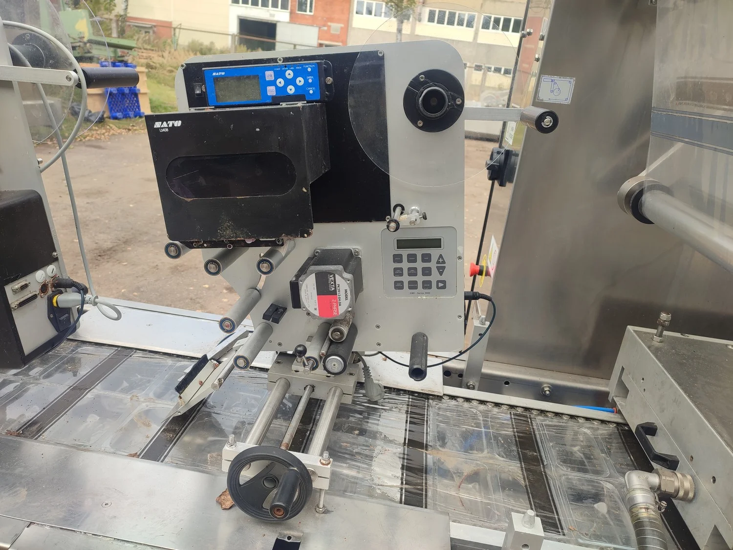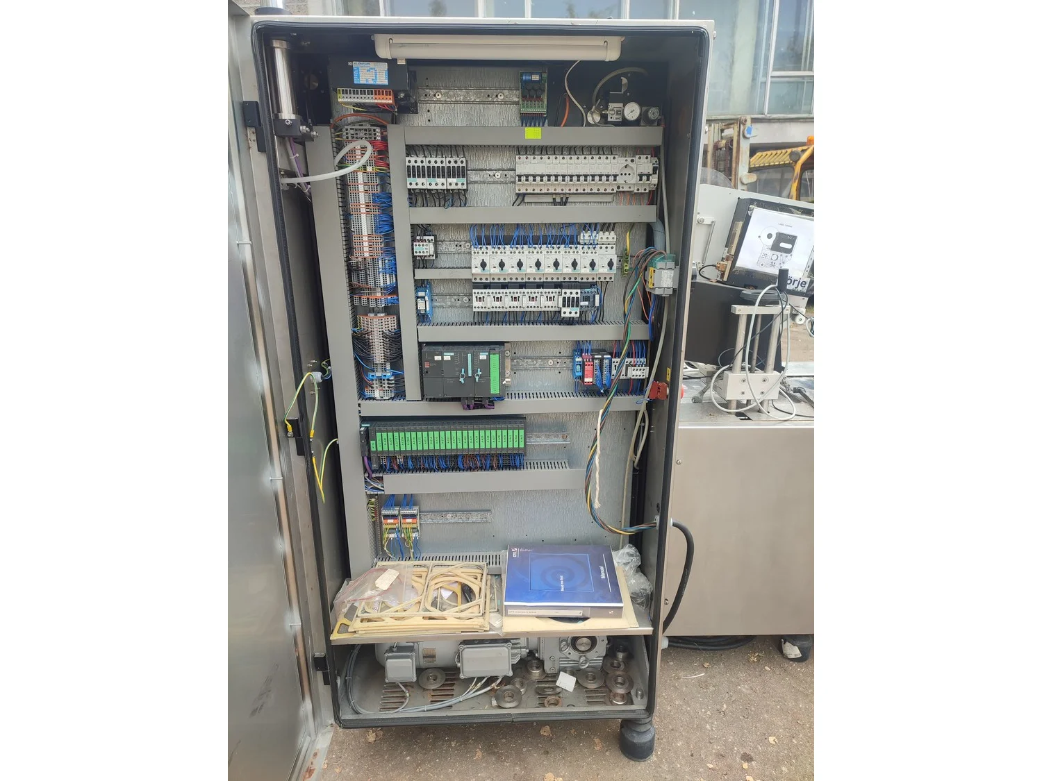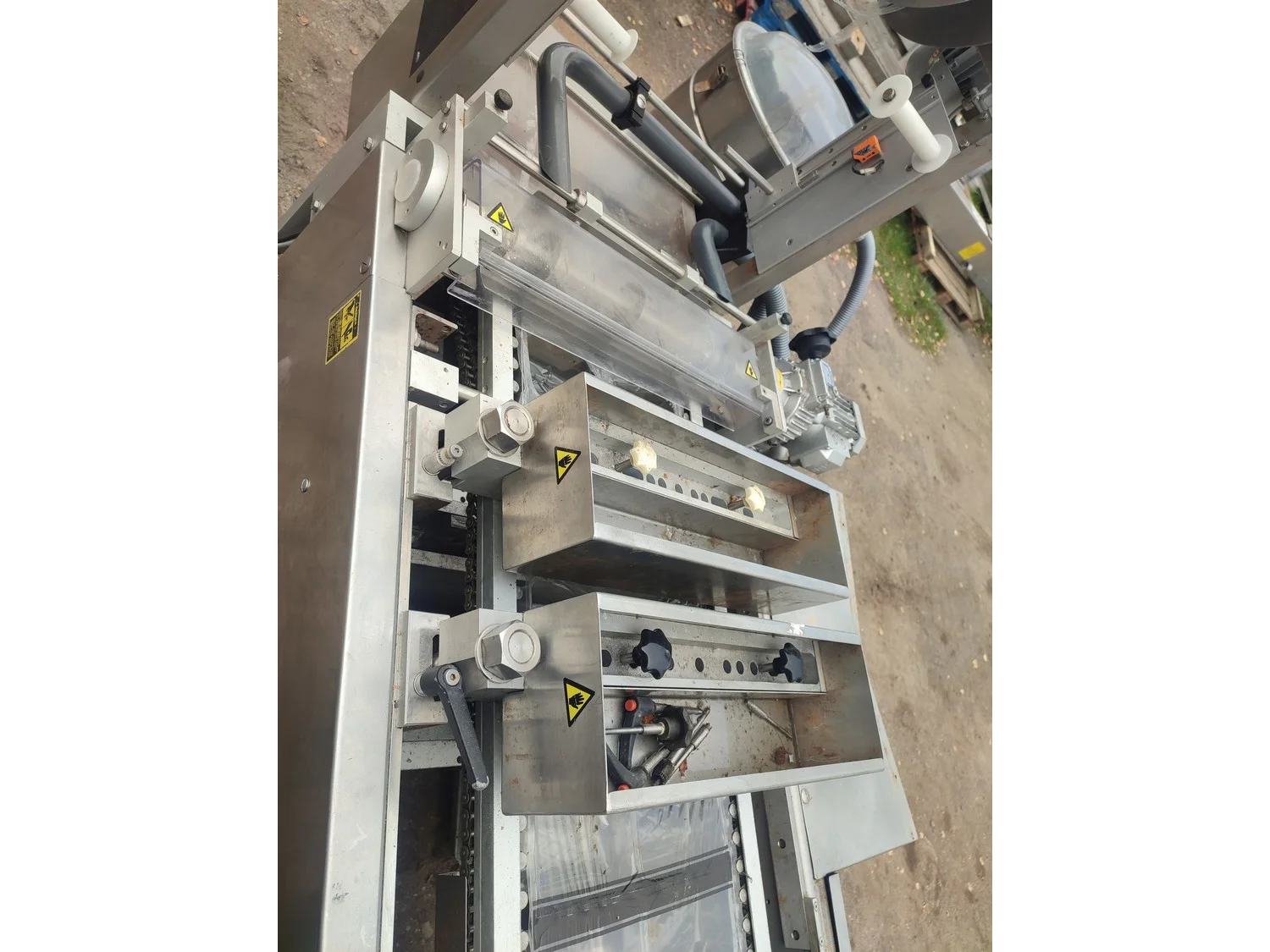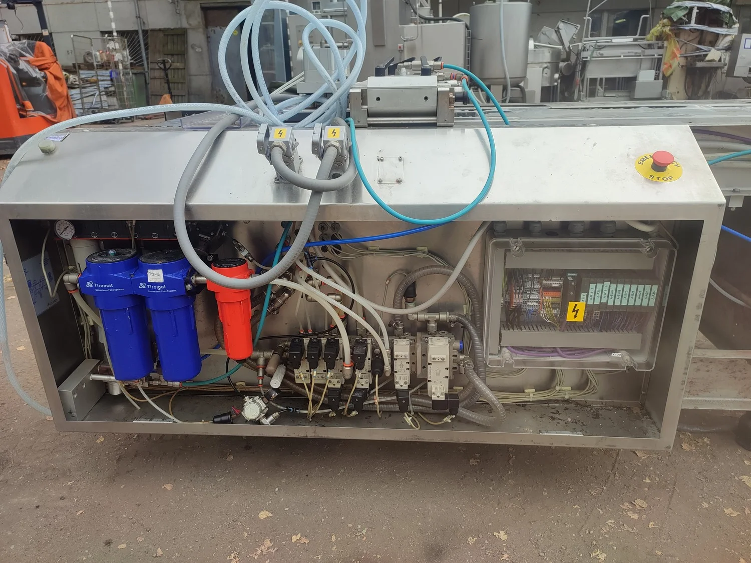 CFS Palazzolo S.p.A. thermoformer, type: SFC COMPACT M340 3.11, machine number: 788.120.1537, year of construction: 2002, 400 V, 3 PH, 50 Hz, 38.06 A, 26.37 kW, bottom film width: 343 mm, top film width: 332 mm, dye: (4x) 140 mm x 90 mm x 55 mm, total dimensions: 7800 mm x 1100 mm x 2000 mm.