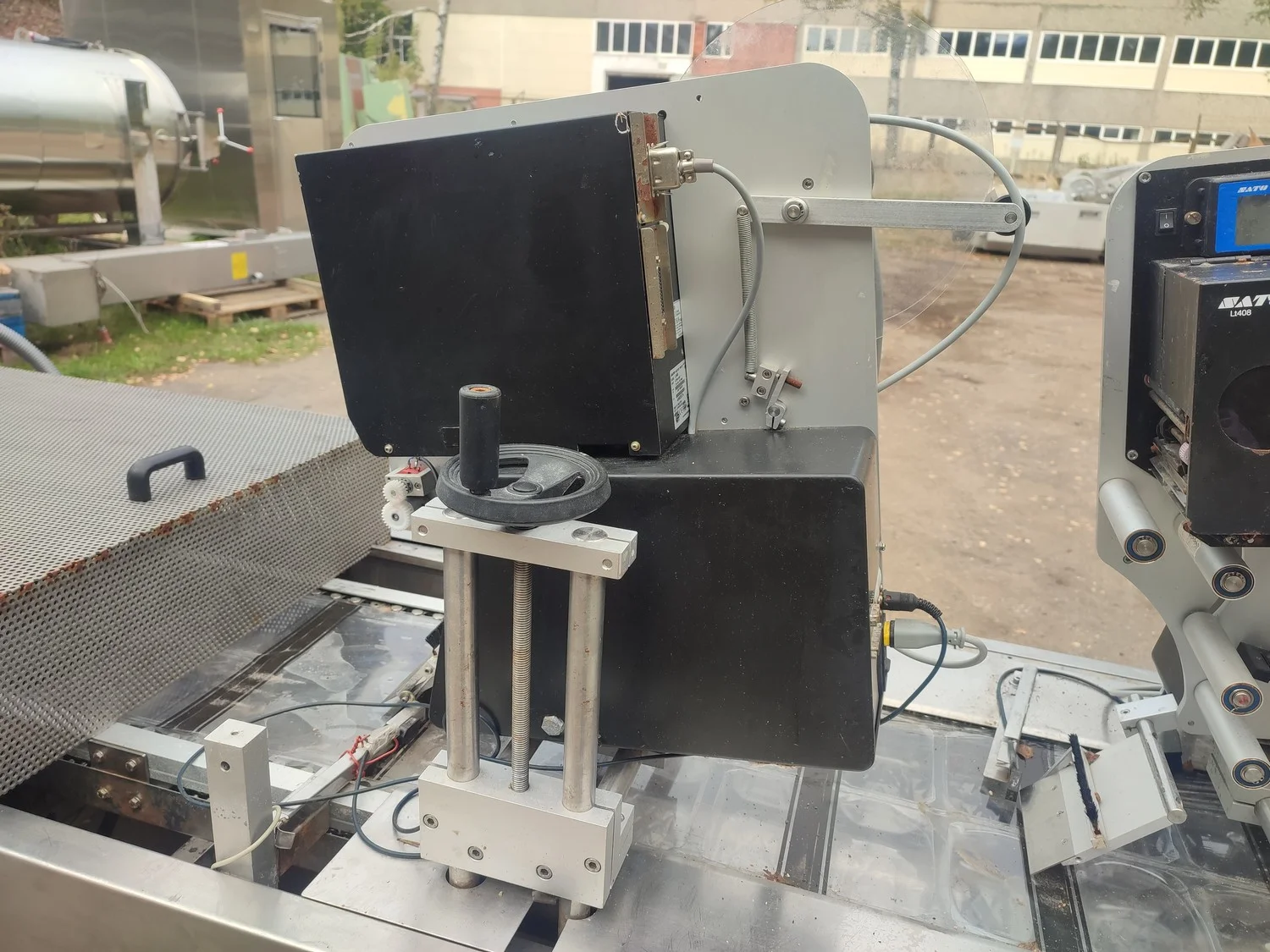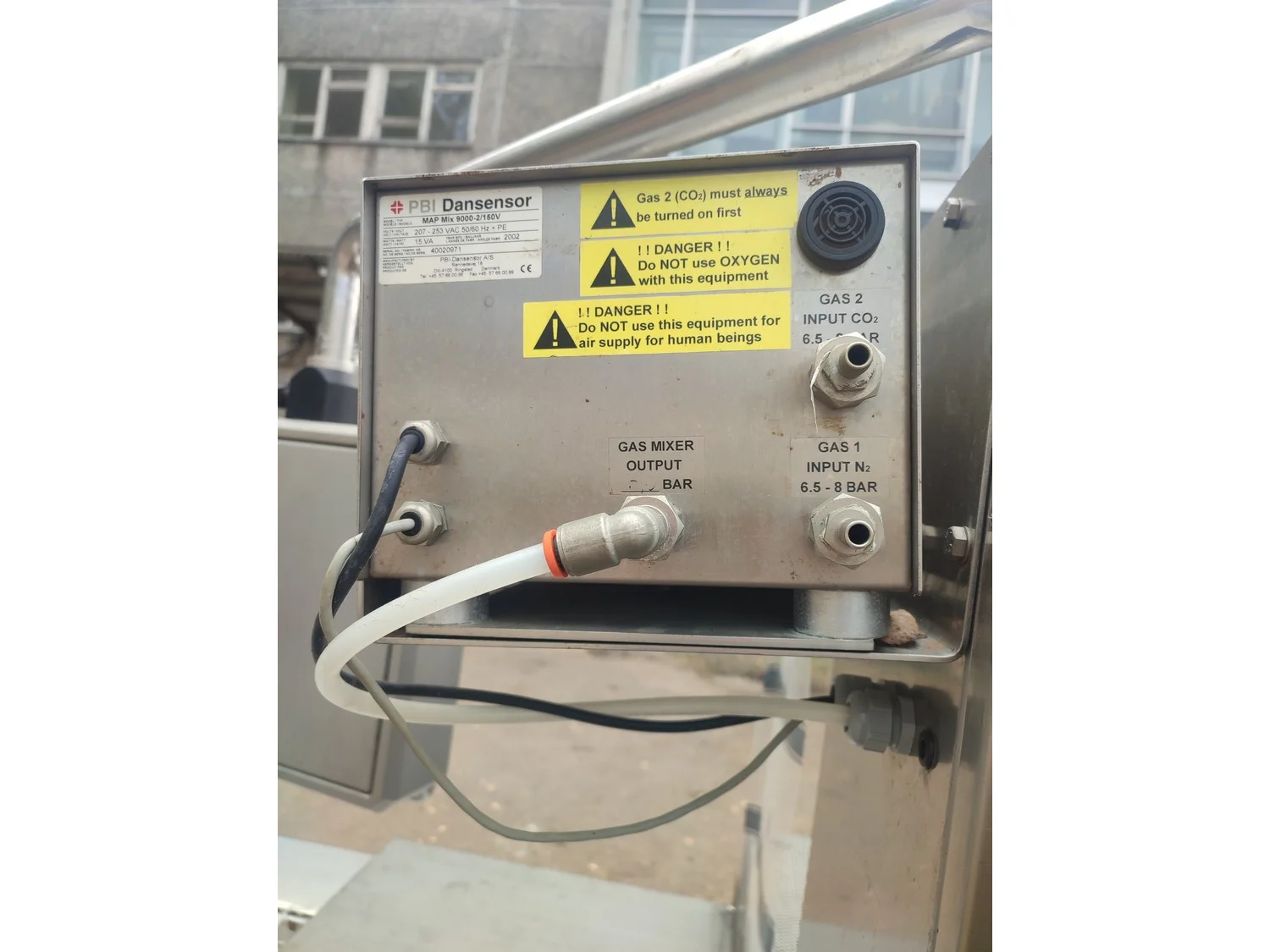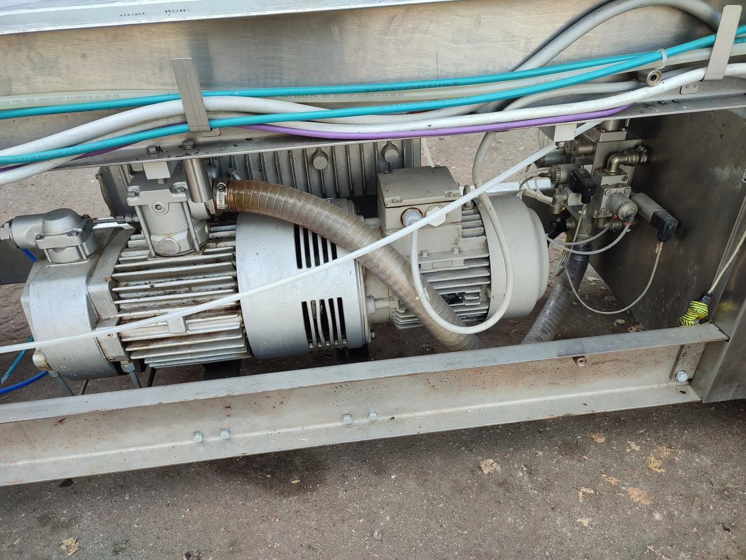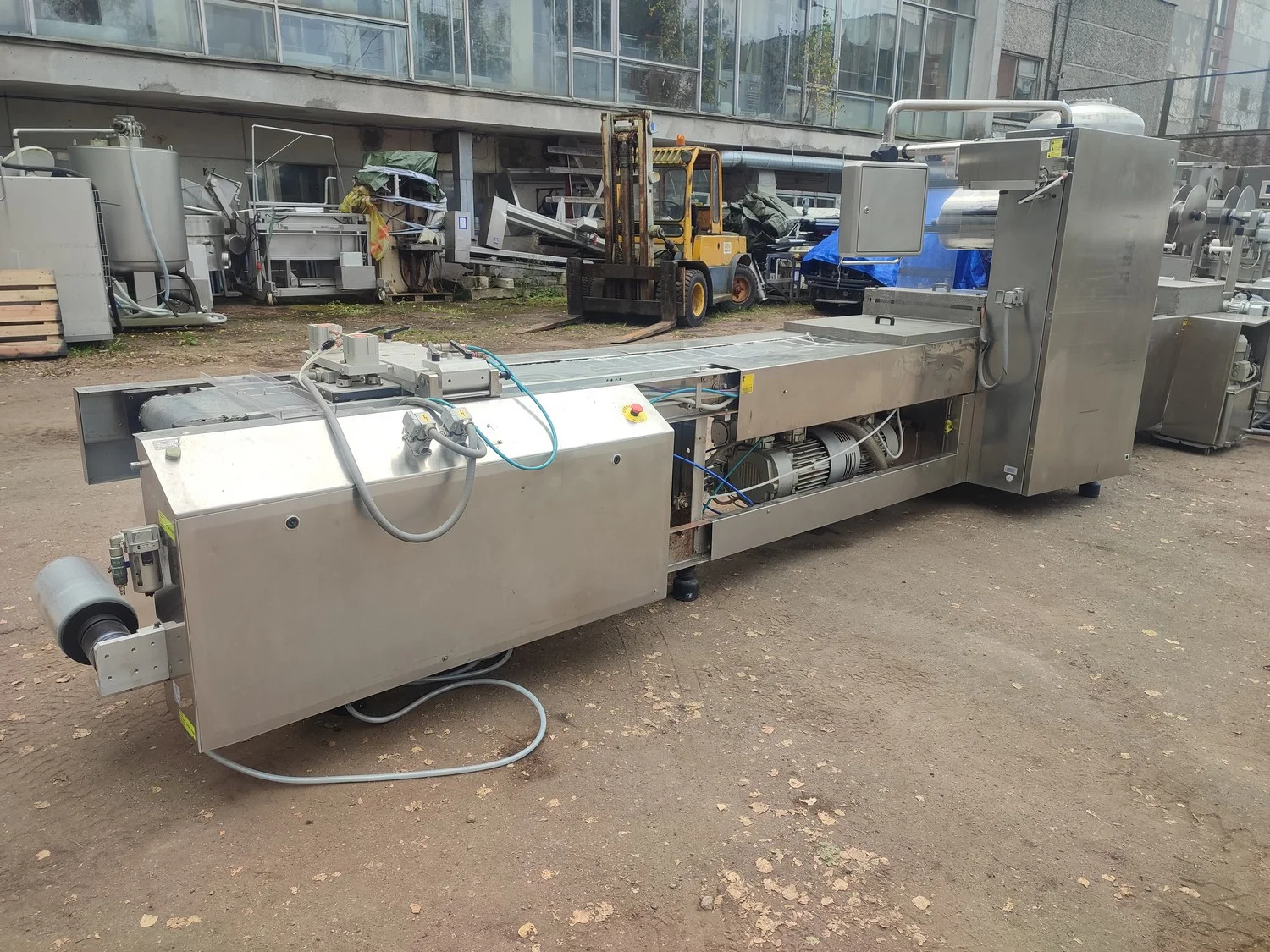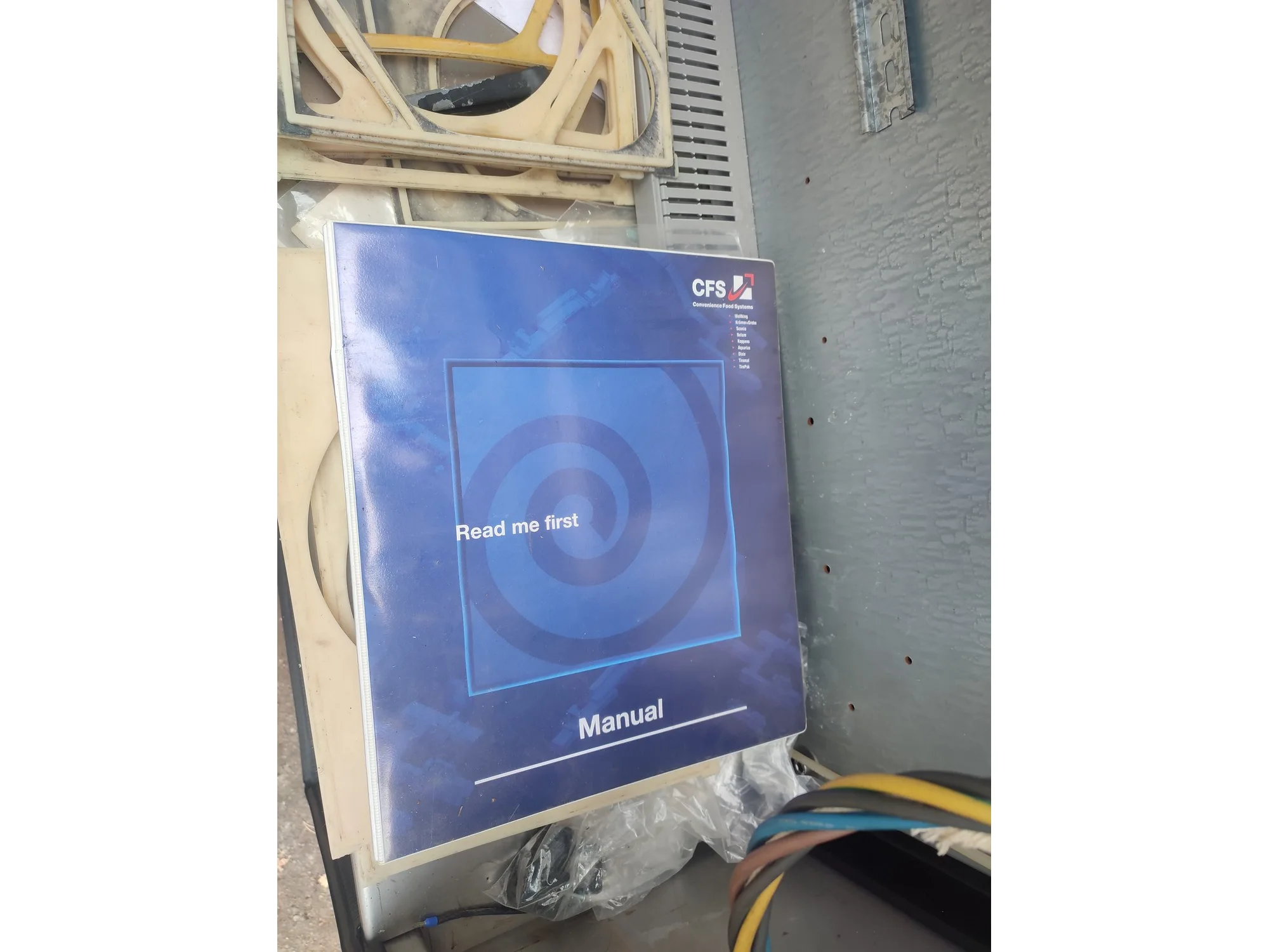 CFS Palazzolo S.p.A. thermoformer, type: SFC COMPACT M340 3.11, machine number: 788.120.1537, year of construction: 2002, 400 V, 3 PH, 50 Hz, 38.06 A, 26.37 kW, bottom film width: 343 mm, top film width: 332 mm, dye: (4x) 140 mm x 90 mm x 55 mm, total dimensions: 7800 mm x 1100 mm x 2000 mm.