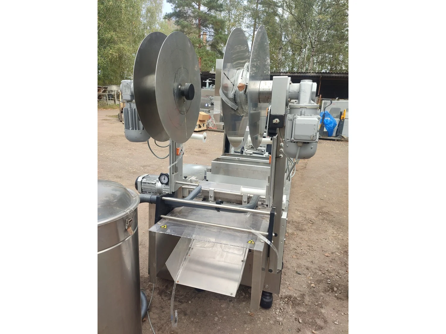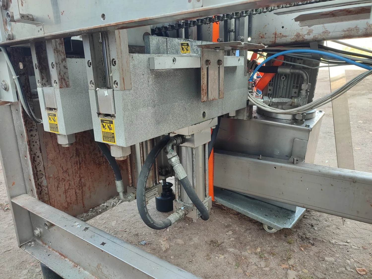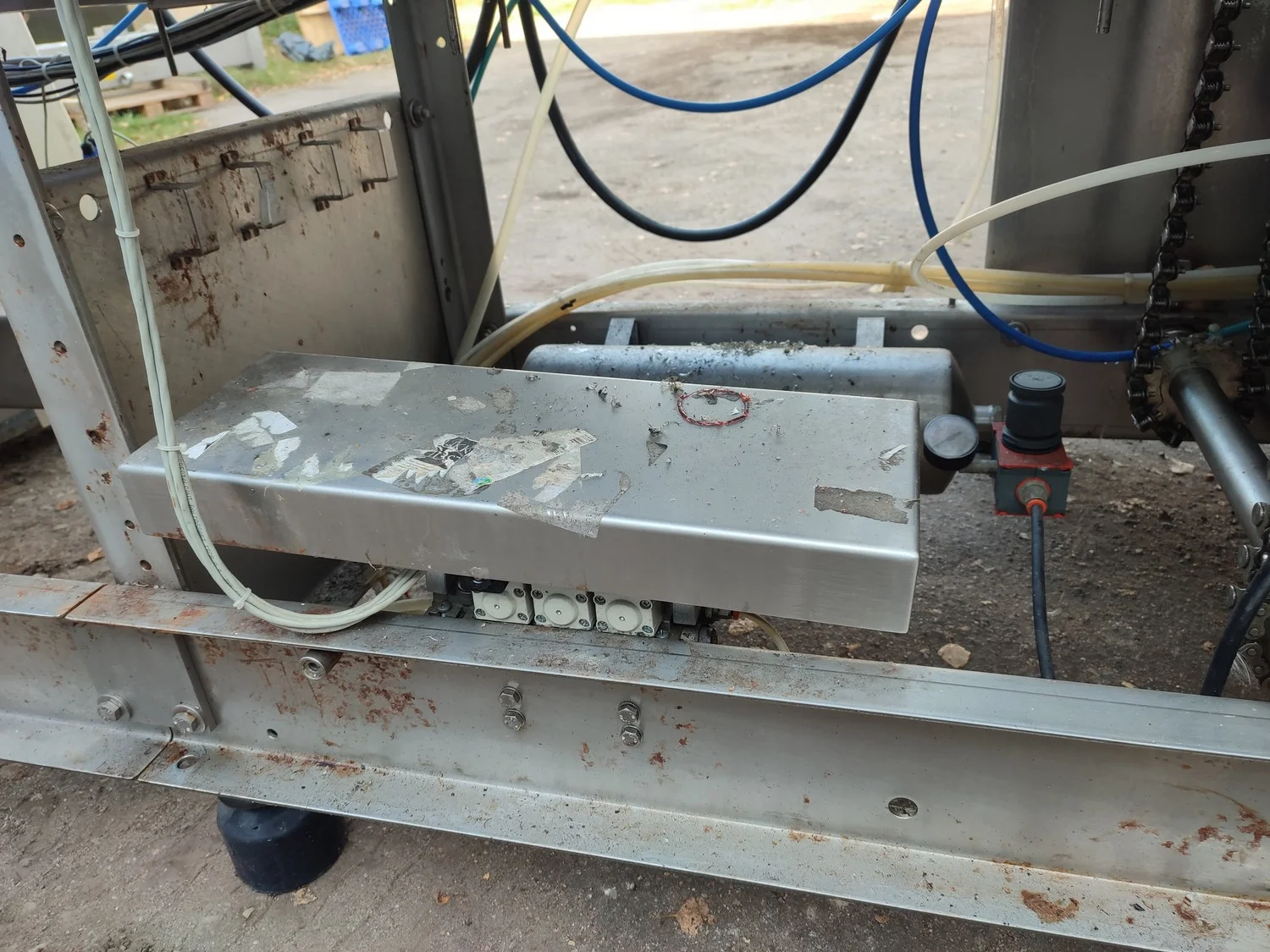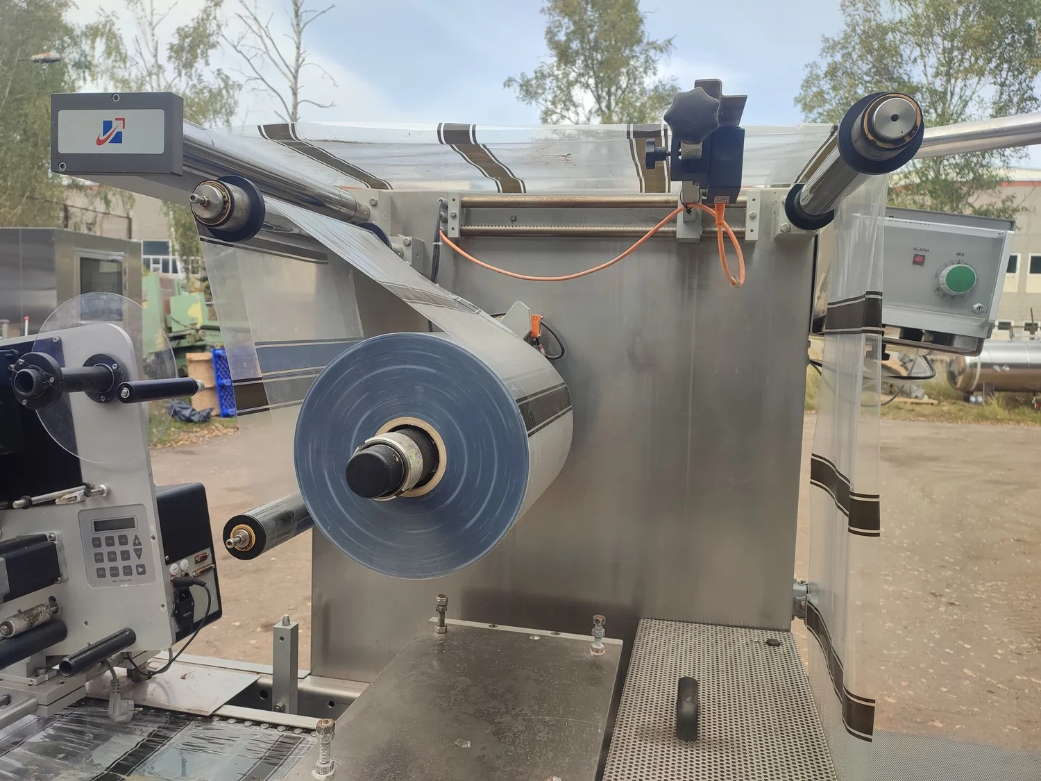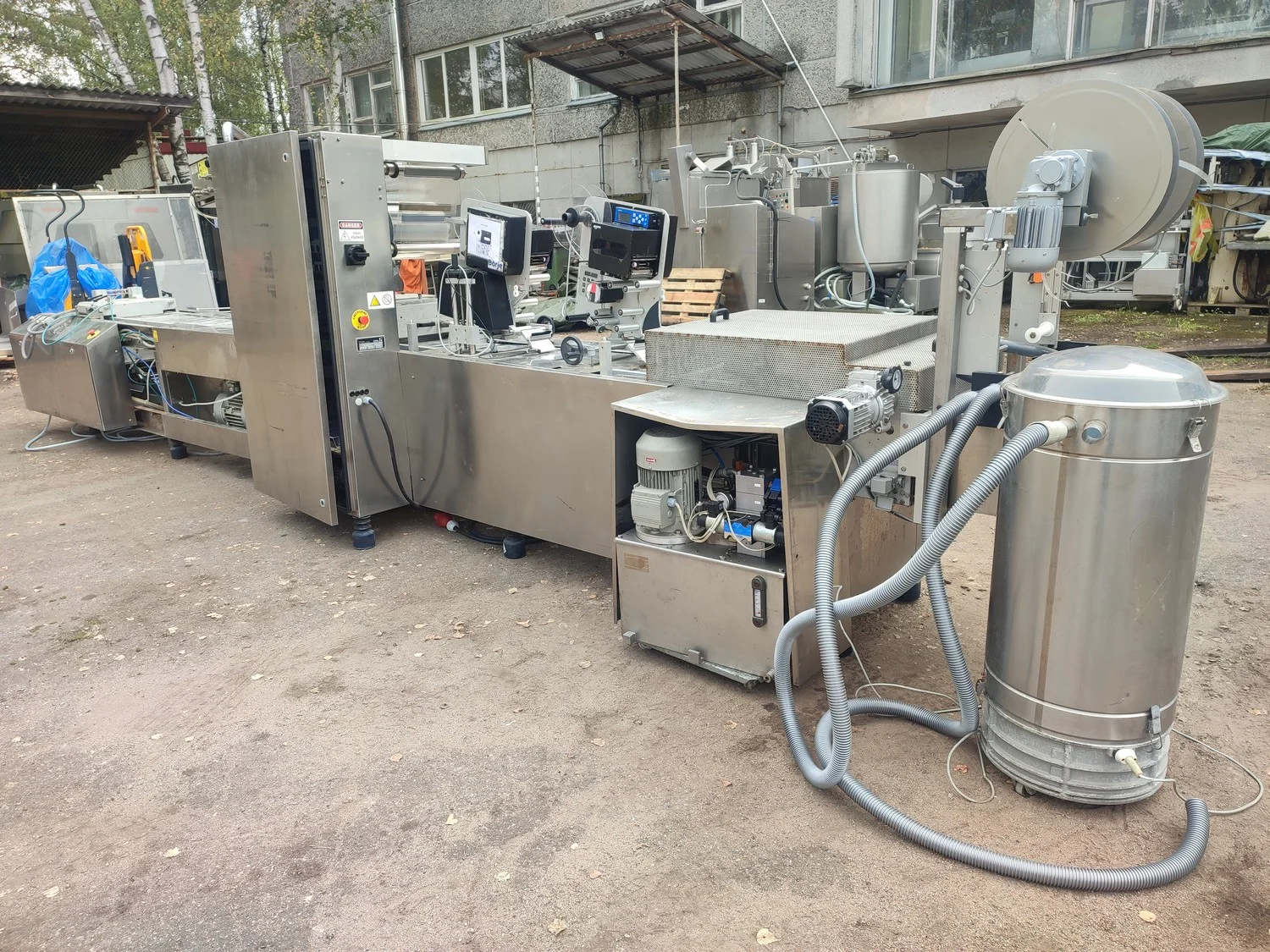 CFS Palazzolo S.p.A. thermoformer, type: SFC COMPACT M340 3.11, machine number: 788.120.1537, year of construction: 2002, 400 V, 3 PH, 50 Hz, 38.06 A, 26.37 kW, bottom film width: 343 mm, top film width: 332 mm, dye: (4x) 140 mm x 90 mm x 55 mm, total dimensions: 7800 mm x 1100 mm x 2000 mm.