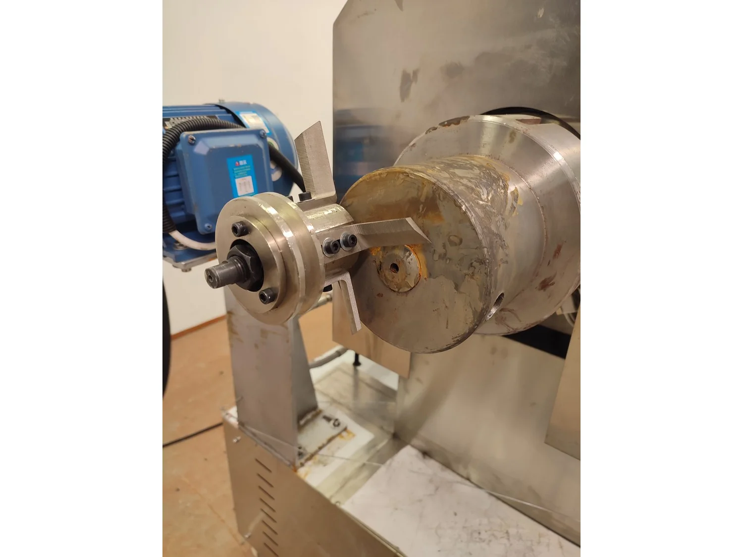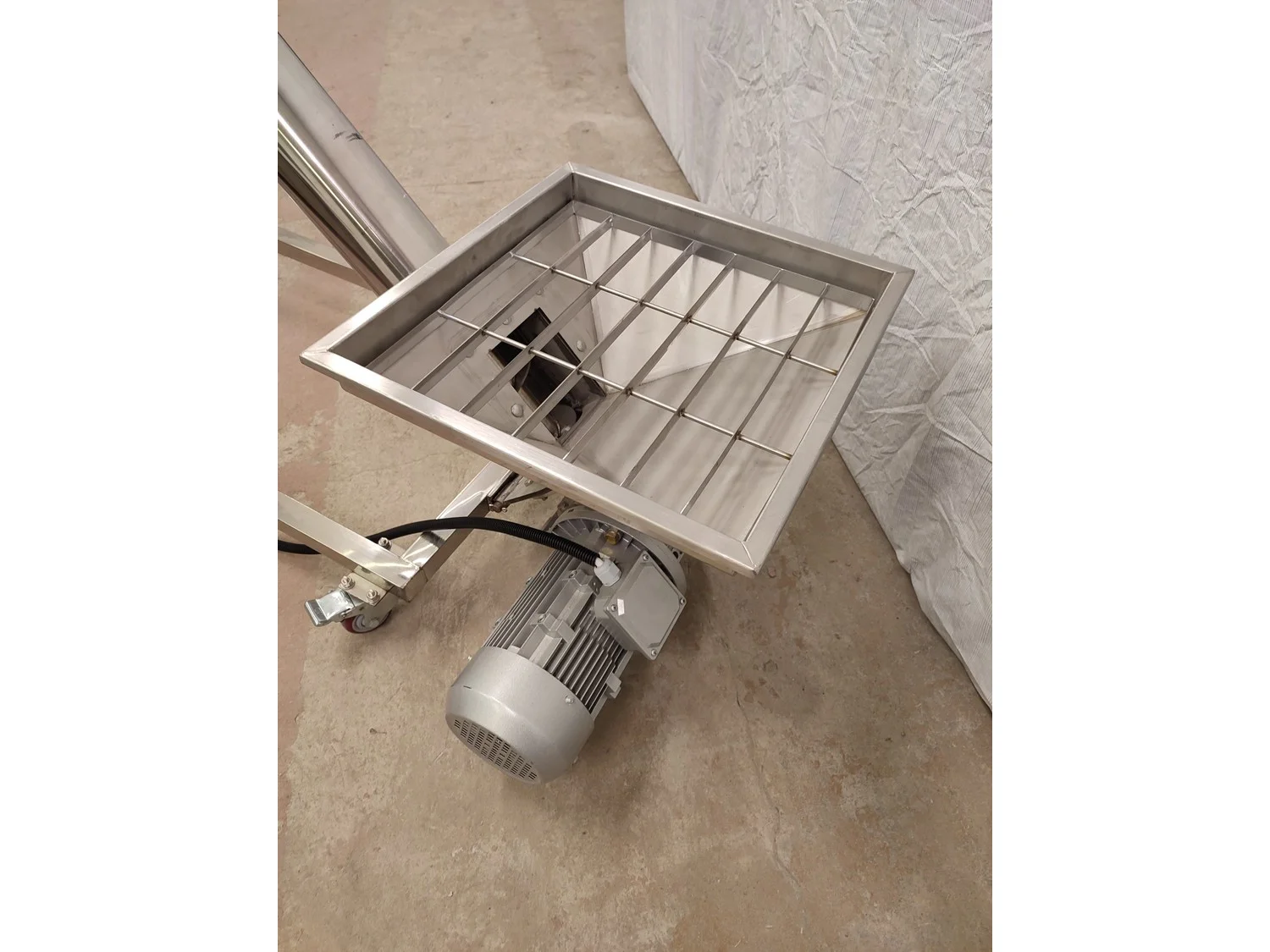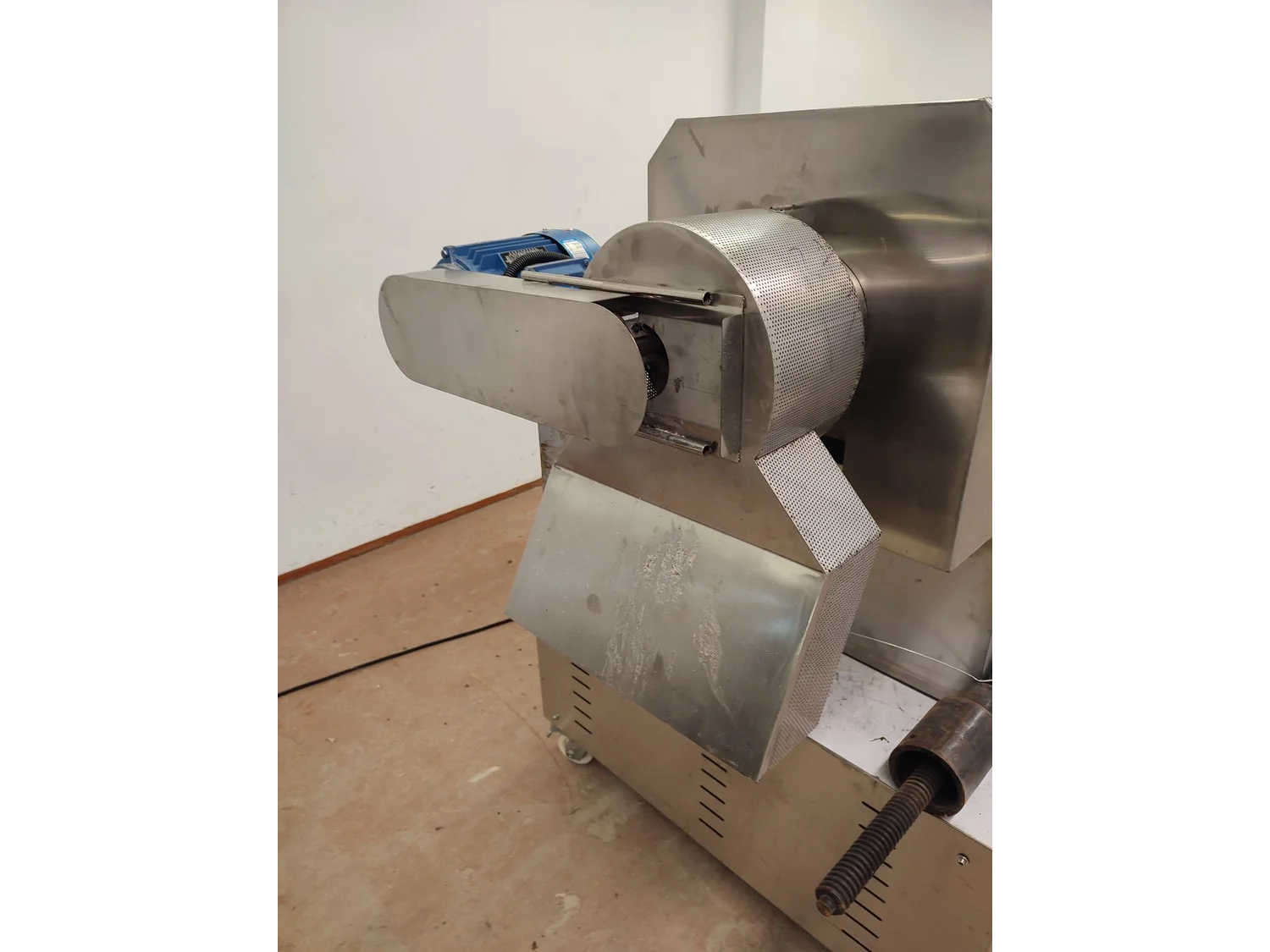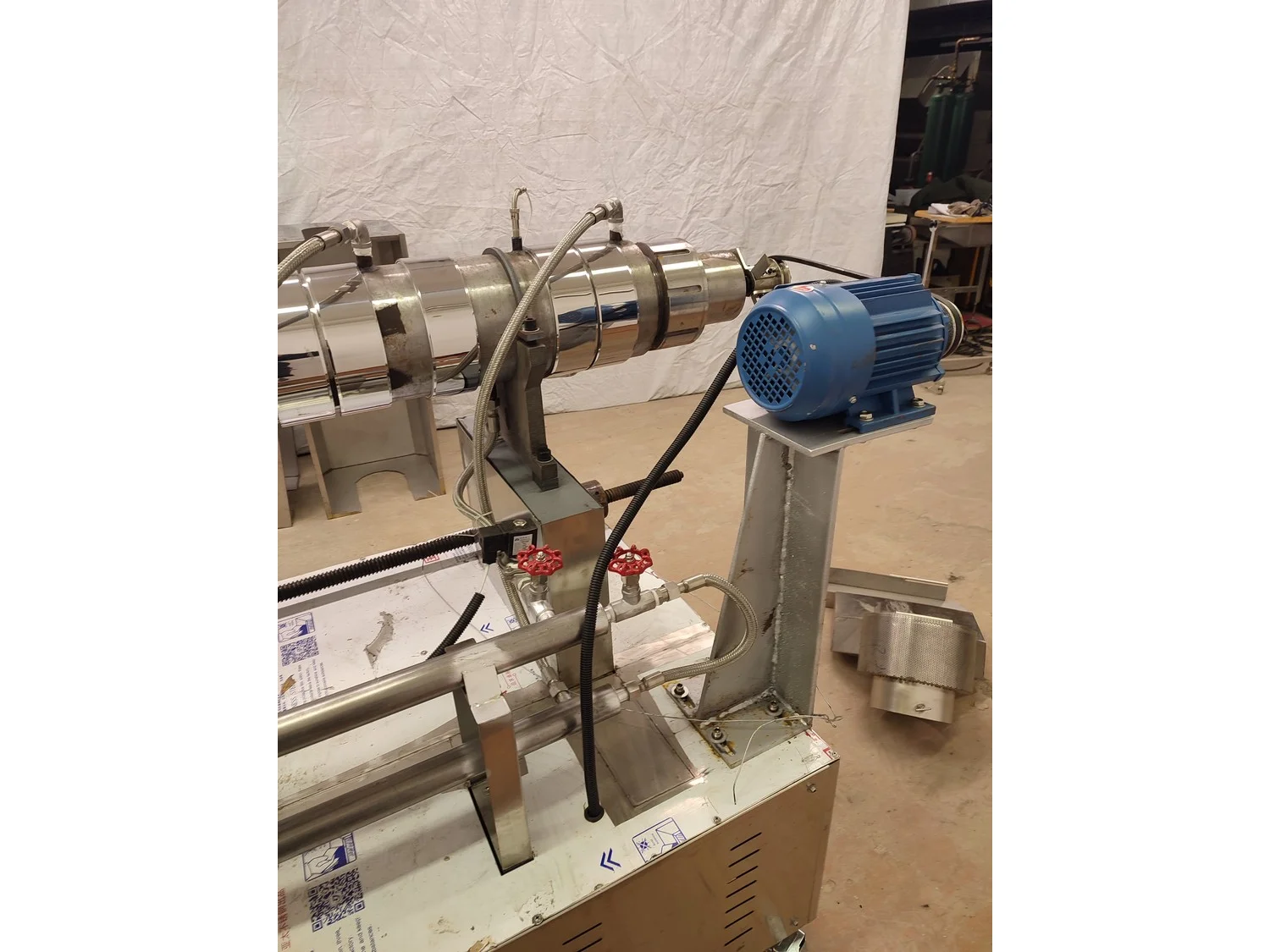 Mobile single screw extruder with elevating screw, model: DXY2000, dimensions extruder: 3000 mm x 950 mm x 2200 mm, dimensions elevating screw: 2800 mm x 600 mm x 2500 mm, dimensions switch cabinet: 855 mm x 560 mm x 1955 mm.