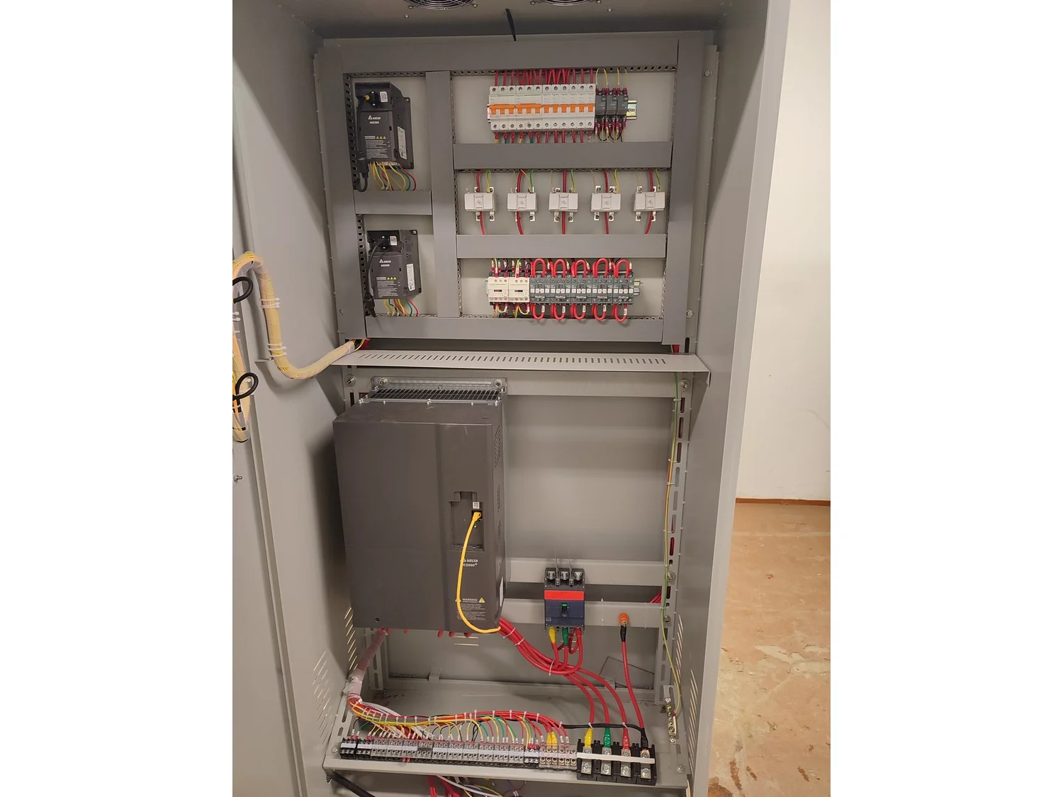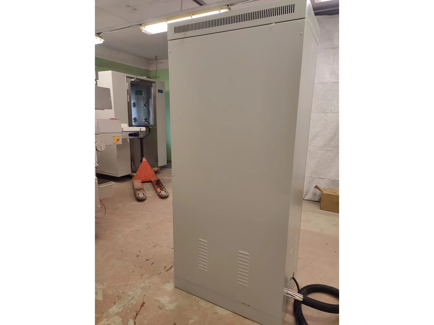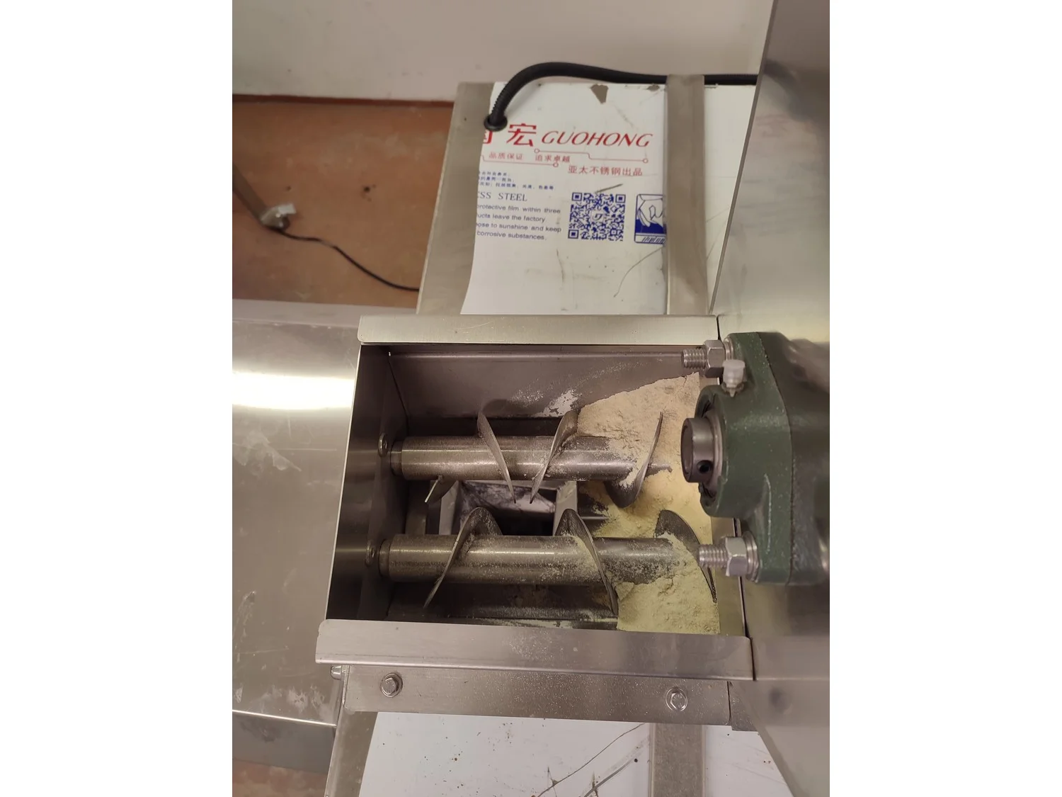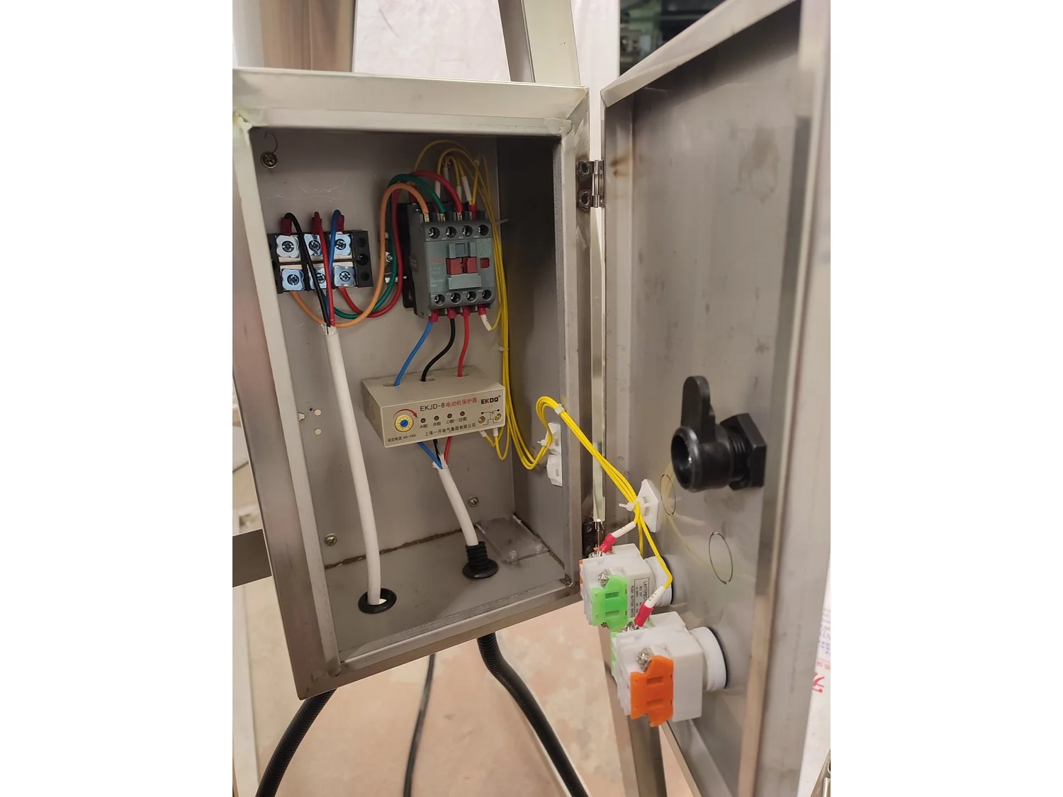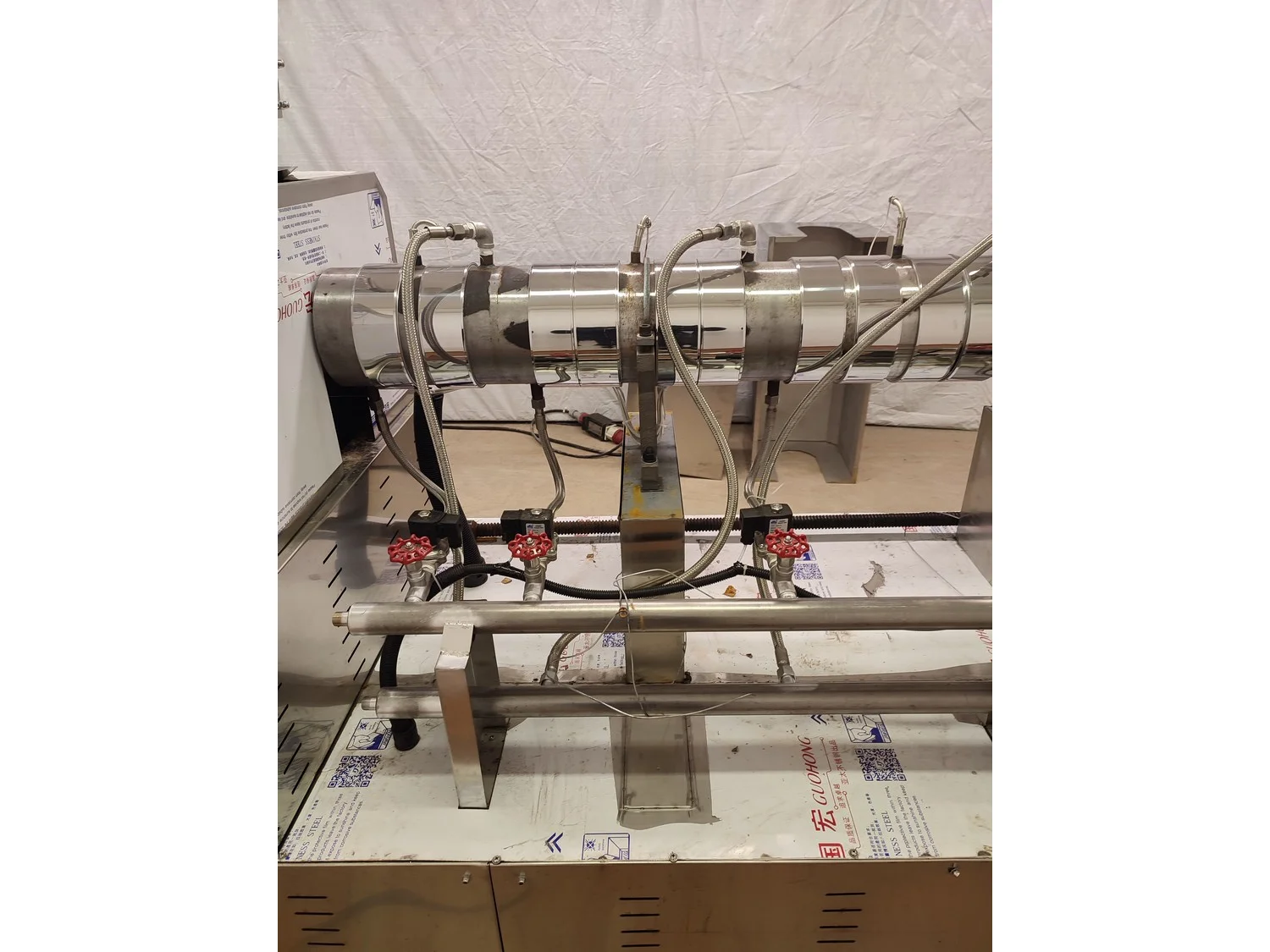 Mobile single screw extruder with elevating screw, model: DXY2000, dimensions extruder: 3000 mm x 950 mm x 2200 mm, dimensions elevating screw: 2800 mm x 600 mm x 2500 mm, dimensions switch cabinet: 855 mm x 560 mm x 1955 mm.