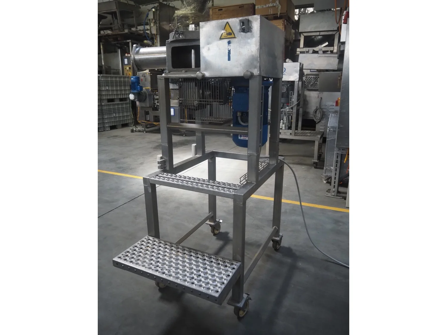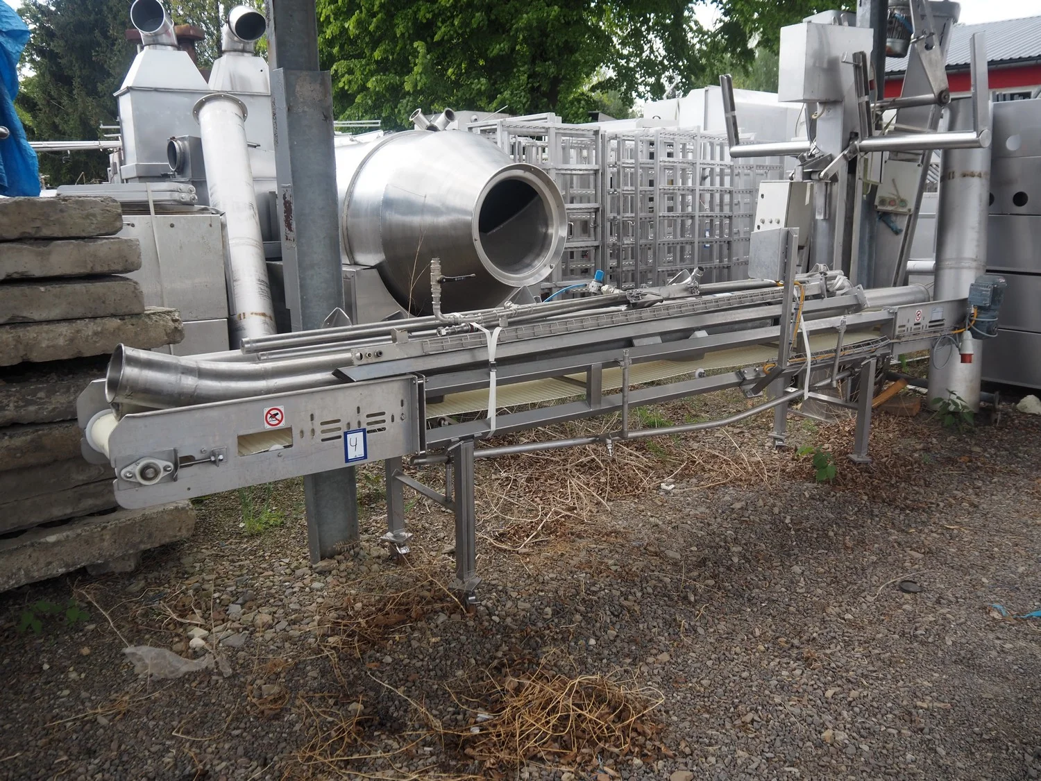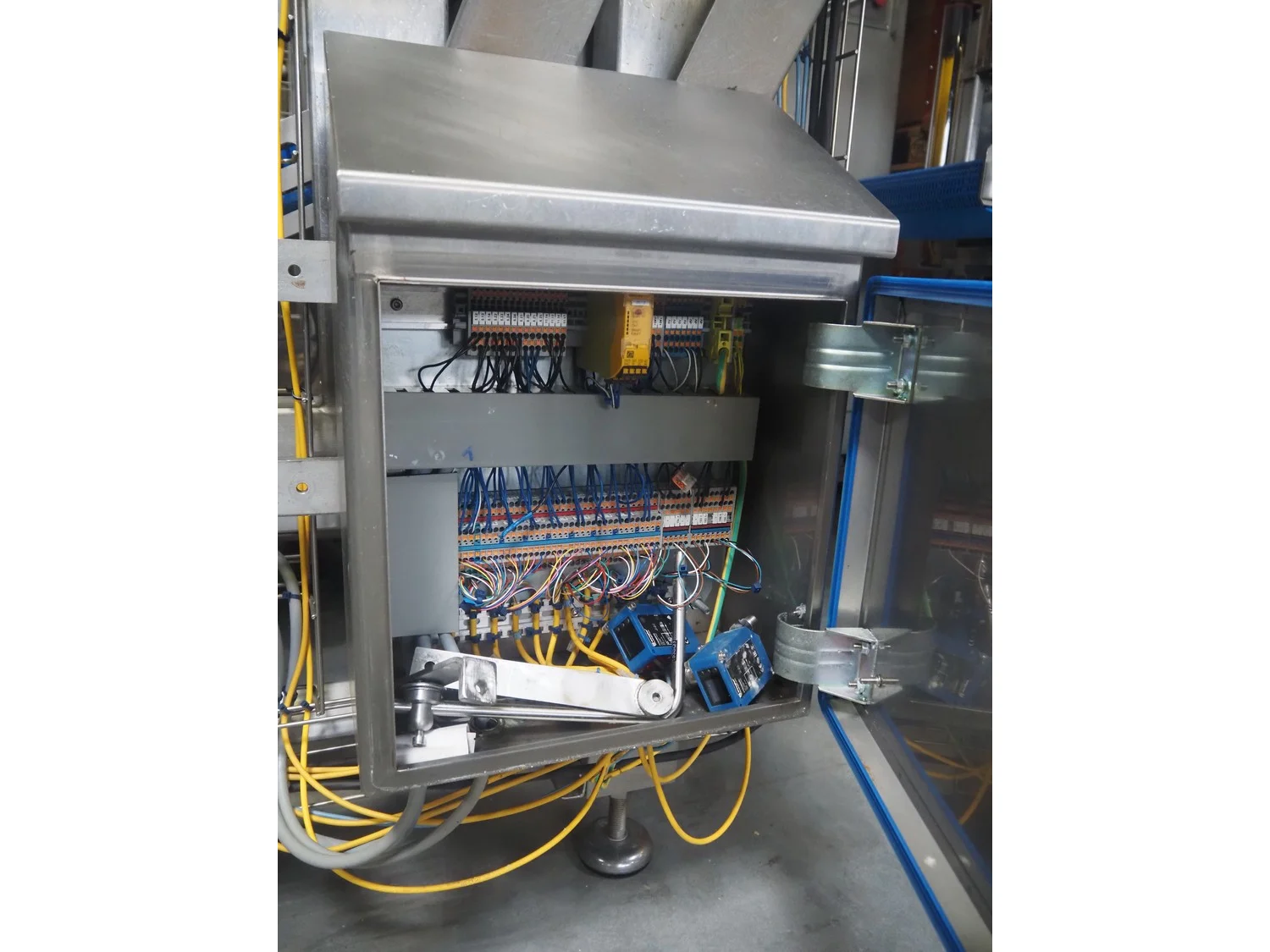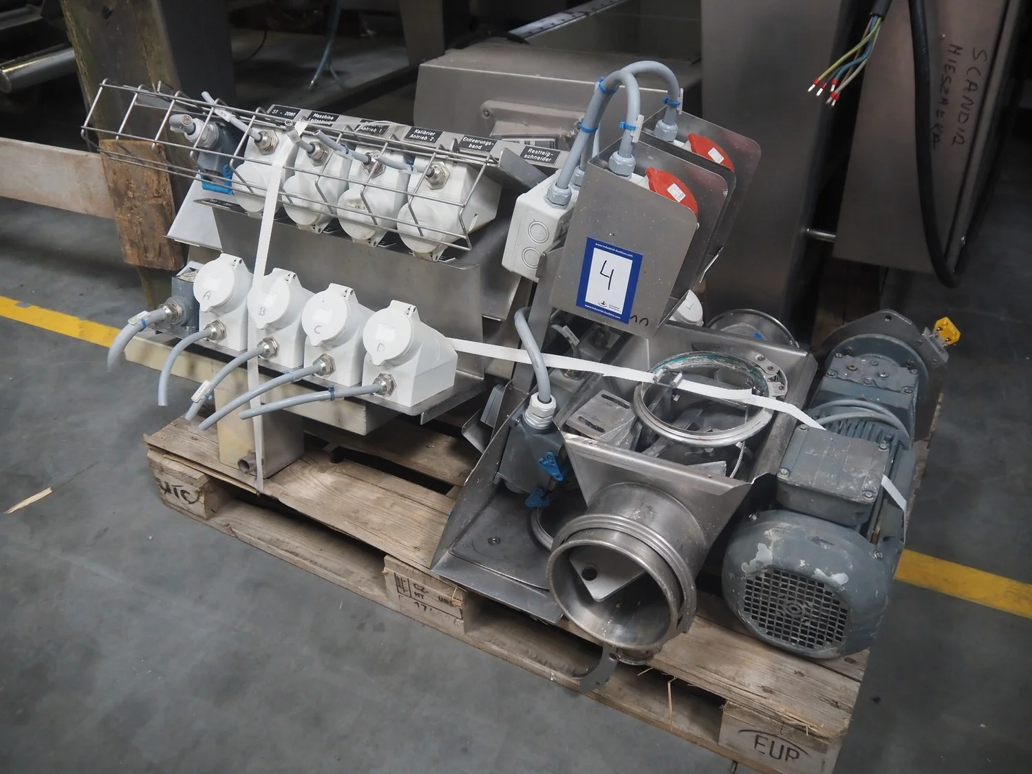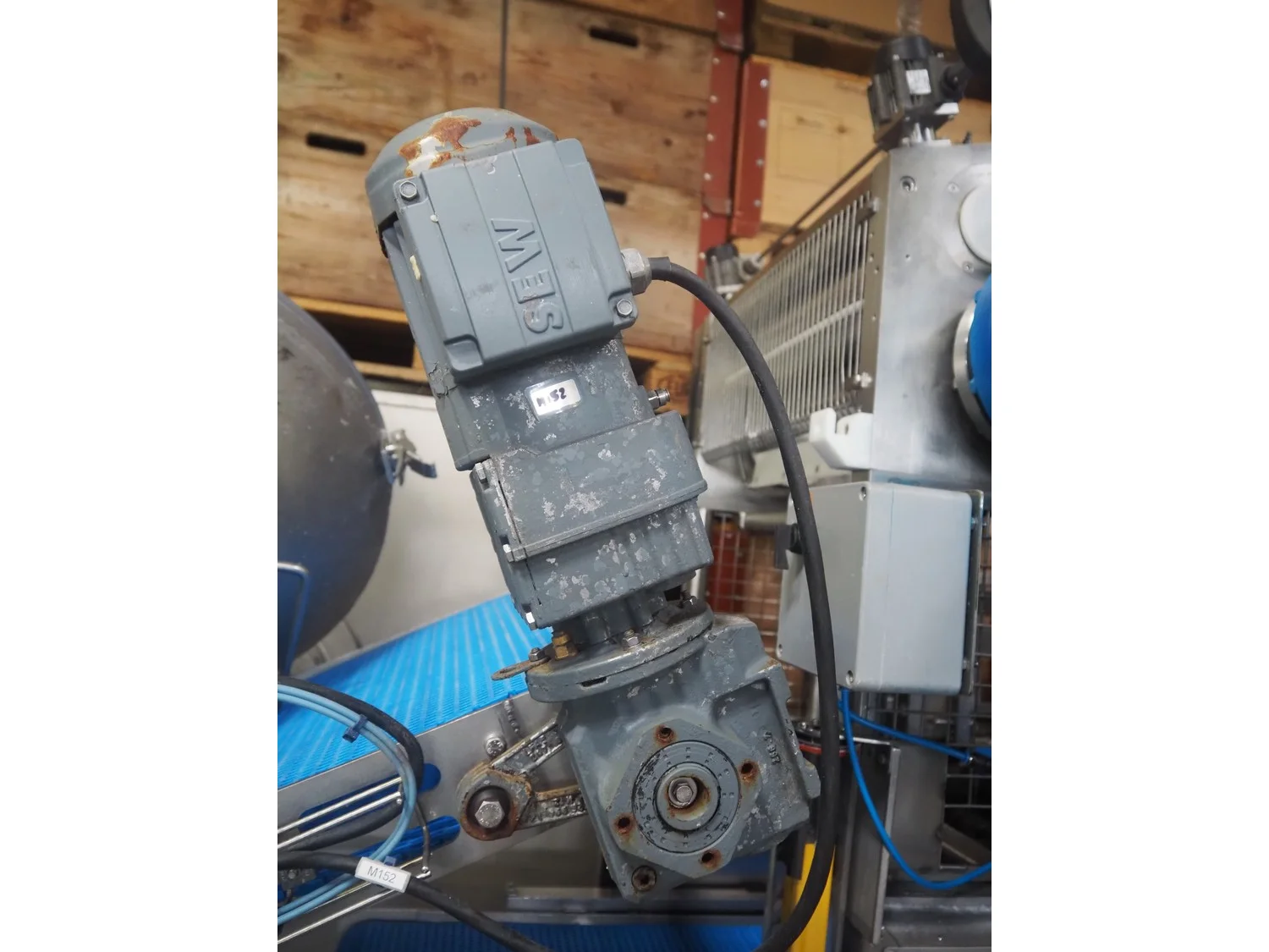 Toresani Foodmac line for ravioli, consisting of: 2 Pavan dough sheeters, plastic mesh belts, belt width: 550 mm, total dimensions: (2x) 2700 mm x 1500 mm x 2080 mm, 2 forming machines, plastic mesh belt, belt width: 550 mm, plastic outfeed belt, belt width: 150 mm, total dimensions: (2x) 2100 mm x 1600 mm x 2180 mm, platform with Gericke dosing pump, dimensions: 2700 mm x 1900 mm x 2650 mm, various transport belts, plastic belts, belt width: 500 mm, 400 mm and 200 mm, total dimensions pallet transport belts: 4600 mm x 1000 mm x 1600 mm, 2 mobile pumps, dimensions: (2x) 1000 mm x 550 mm x 1600 mm, 1 pallet with parts and 7 pallet boxes with parts, dimensions: (7x) 1200 mm x 800 mm x 800 mm.
