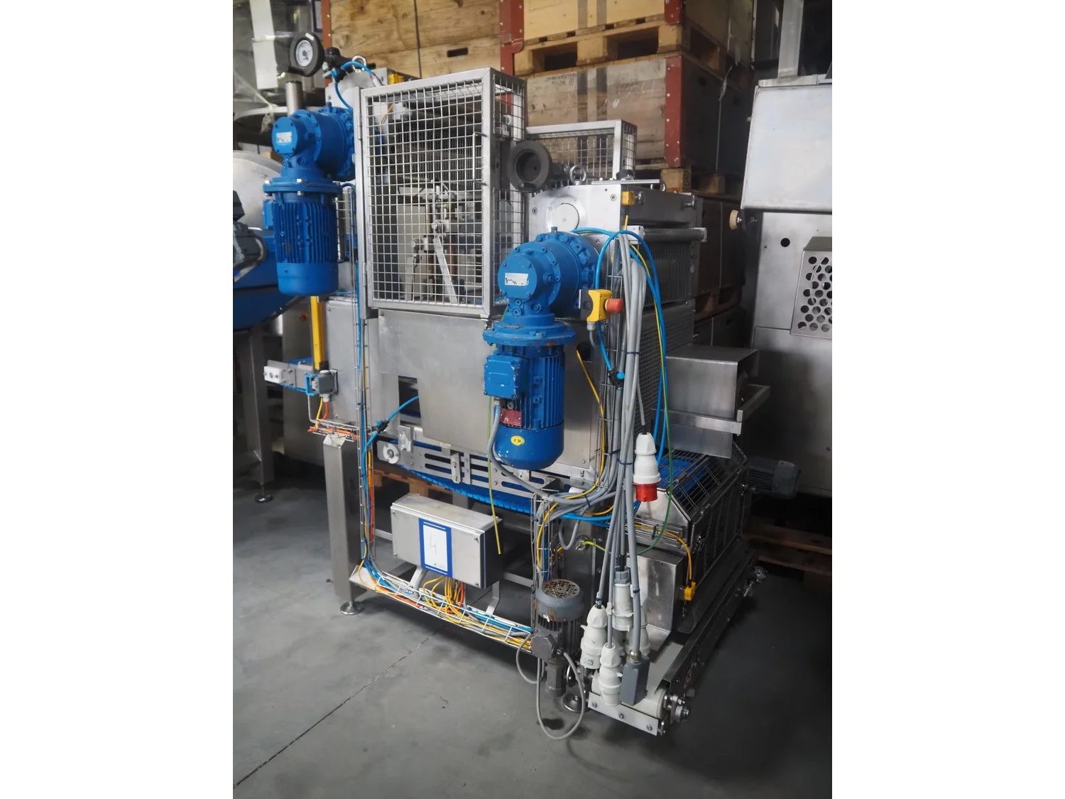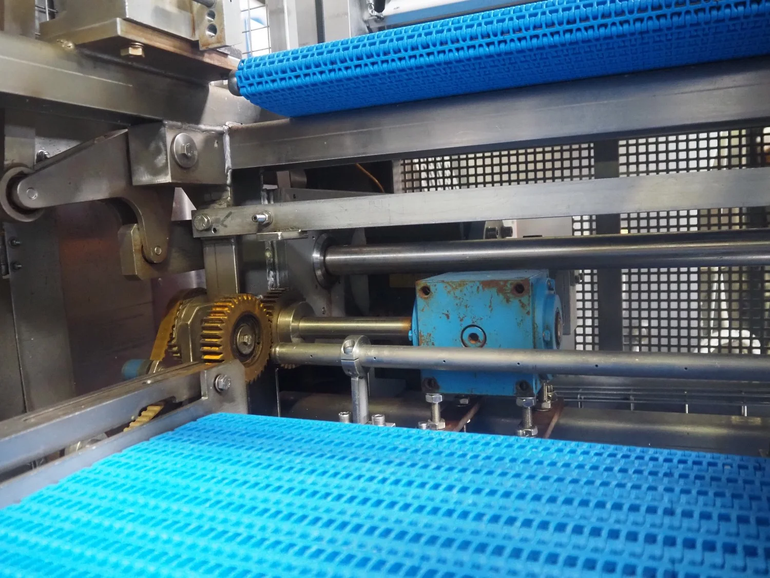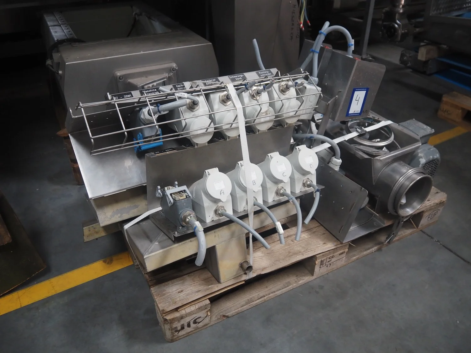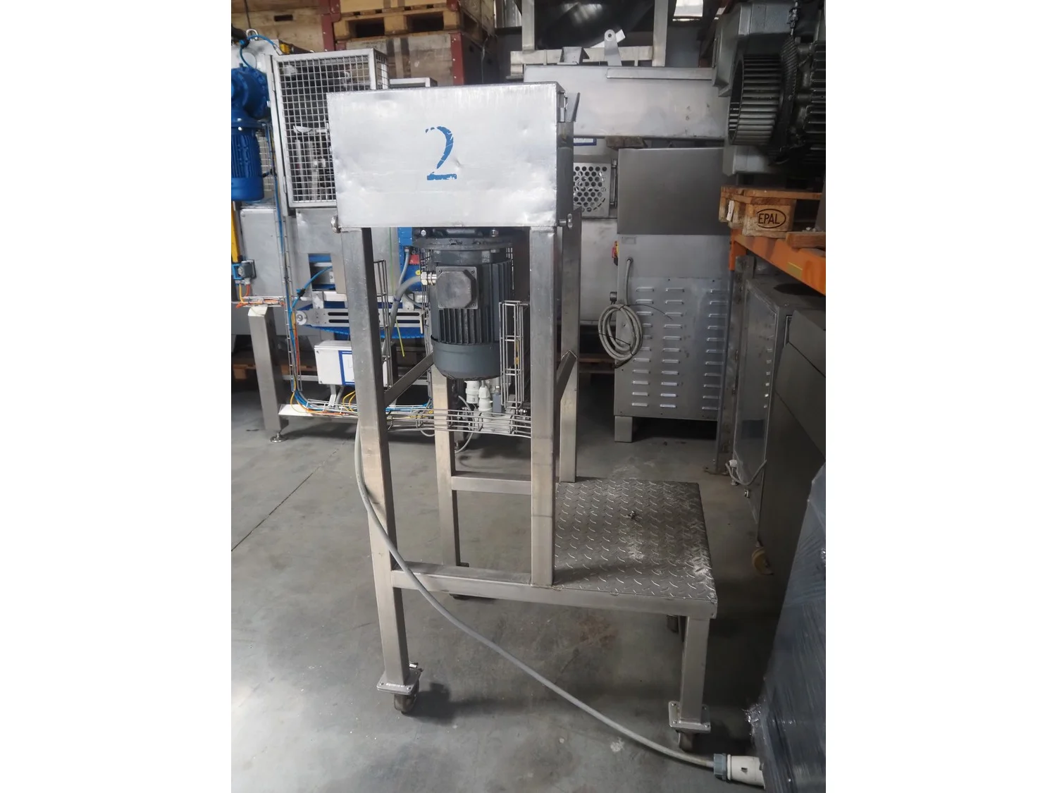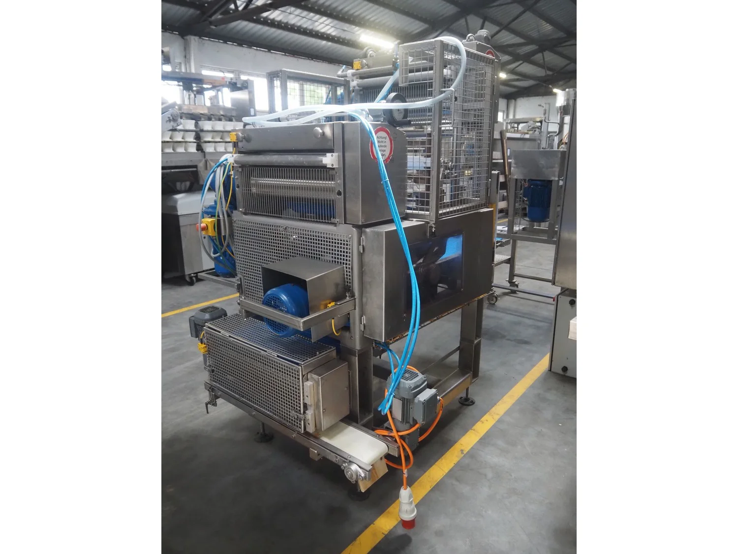 Toresani Foodmac line for ravioli, consisting of: 2 Pavan dough sheeters, plastic mesh belts, belt width: 550 mm, total dimensions: (2x) 2700 mm x 1500 mm x 2080 mm, 2 forming machines, plastic mesh belt, belt width: 550 mm, plastic outfeed belt, belt width: 150 mm, total dimensions: (2x) 2100 mm x 1600 mm x 2180 mm, platform with Gericke dosing pump, dimensions: 2700 mm x 1900 mm x 2650 mm, various transport belts, plastic belts, belt width: 500 mm, 400 mm and 200 mm, total dimensions pallet transport belts: 4600 mm x 1000 mm x 1600 mm, 2 mobile pumps, dimensions: (2x) 1000 mm x 550 mm x 1600 mm, 1 pallet with parts and 7 pallet boxes with parts, dimensions: (7x) 1200 mm x 800 mm x 800 mm.