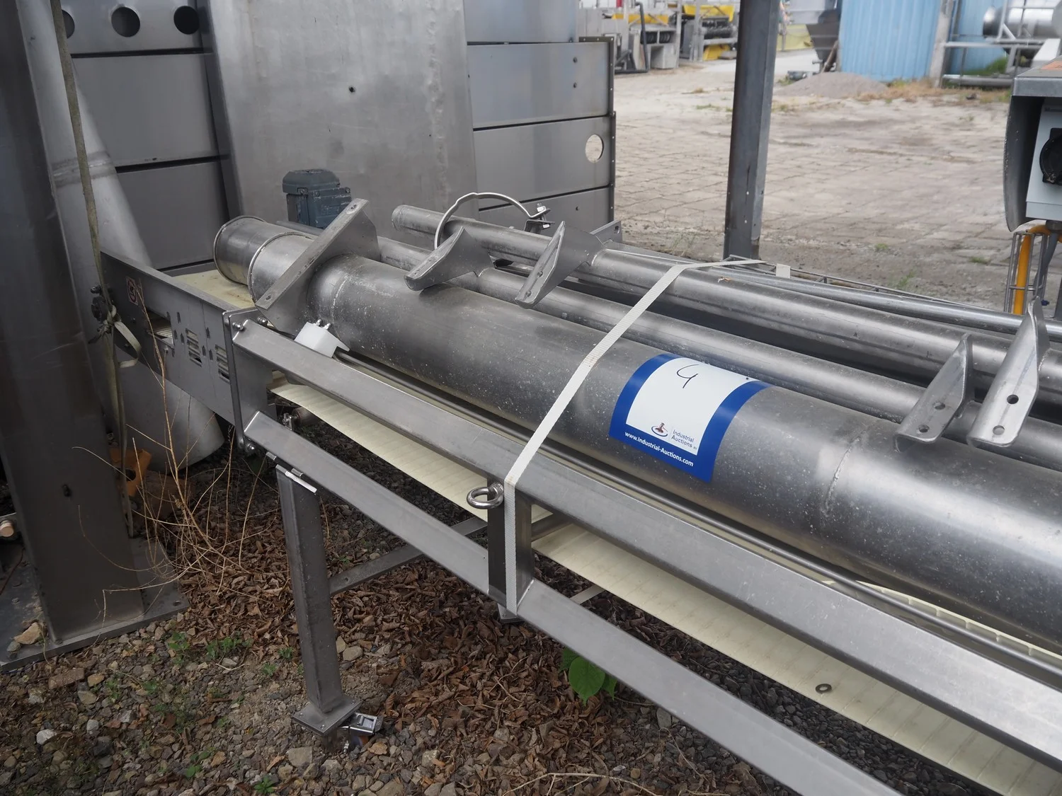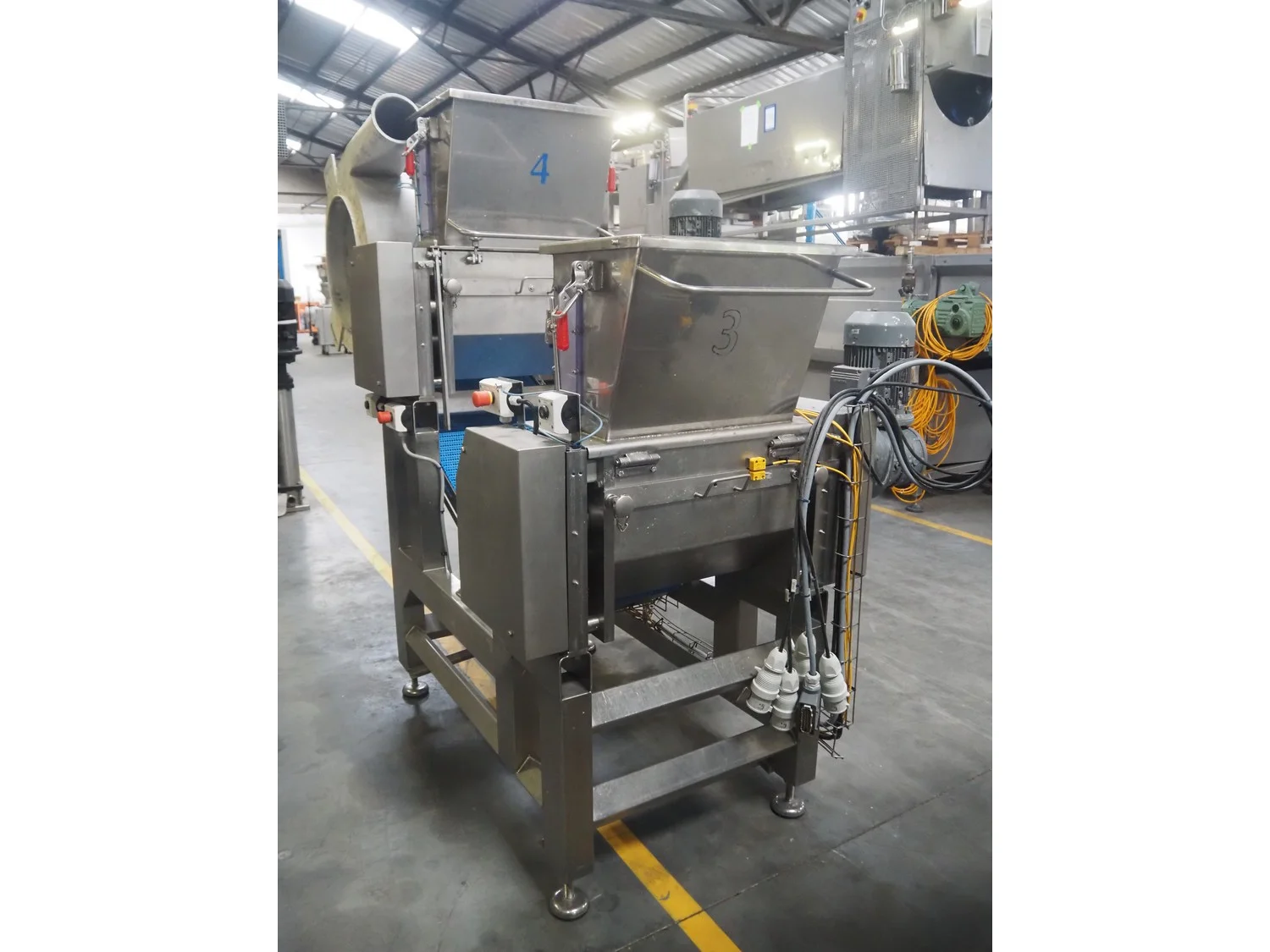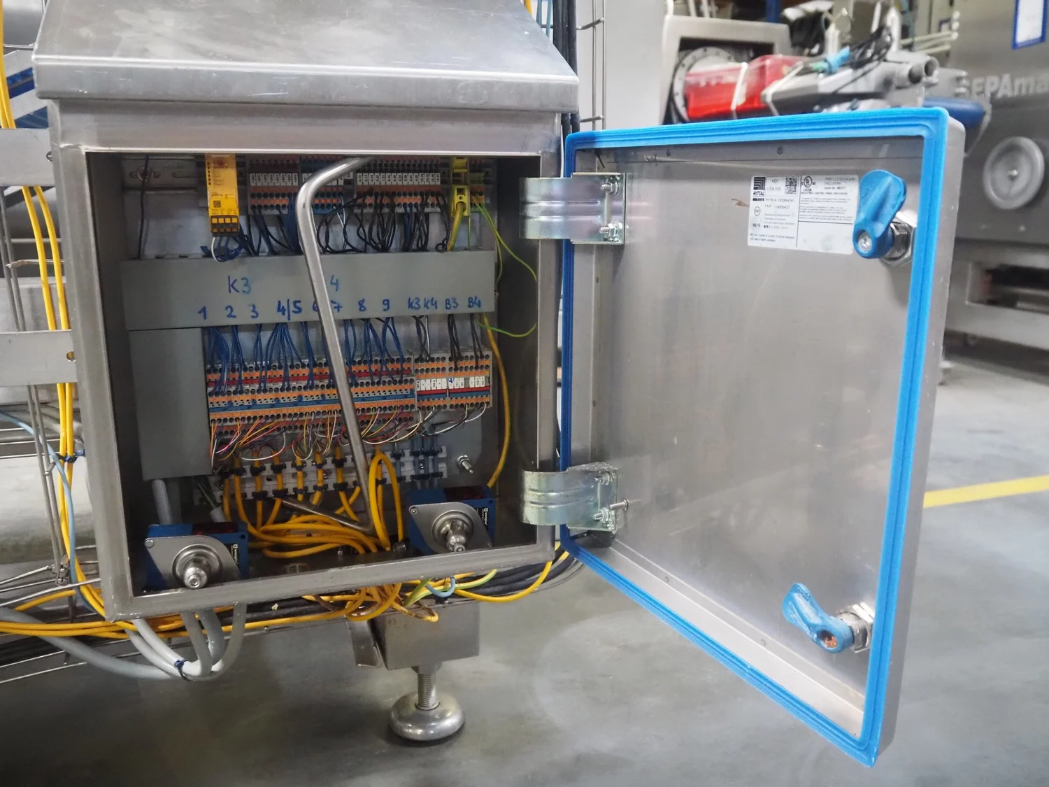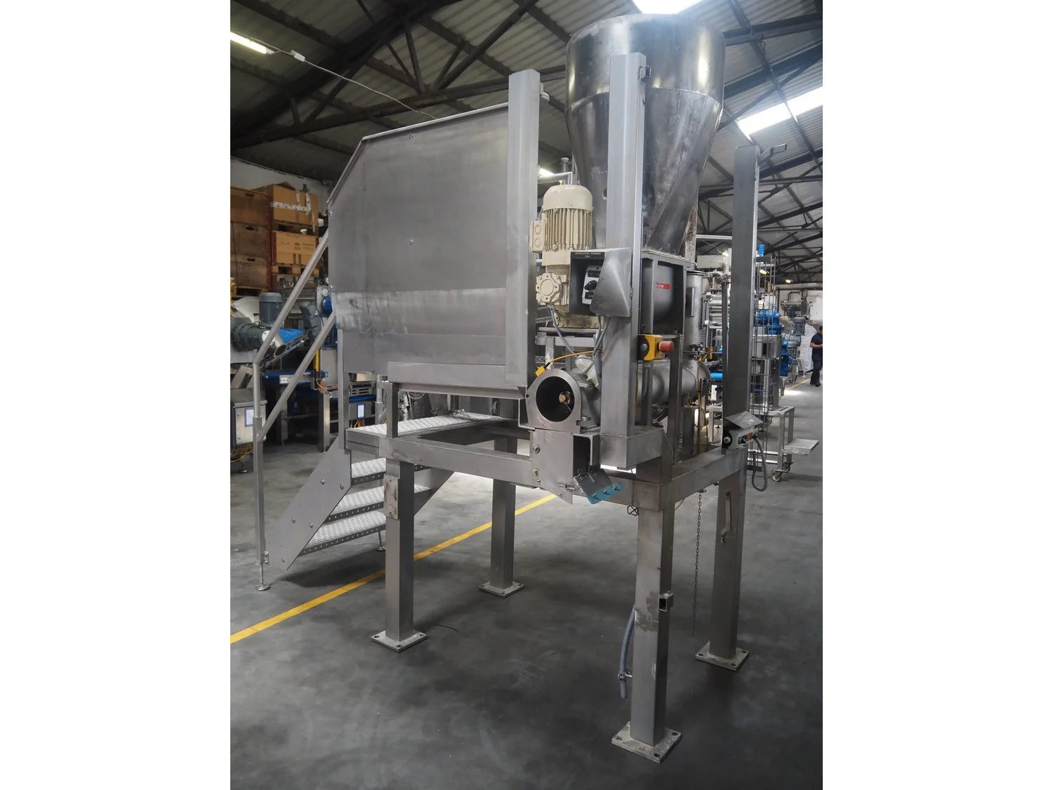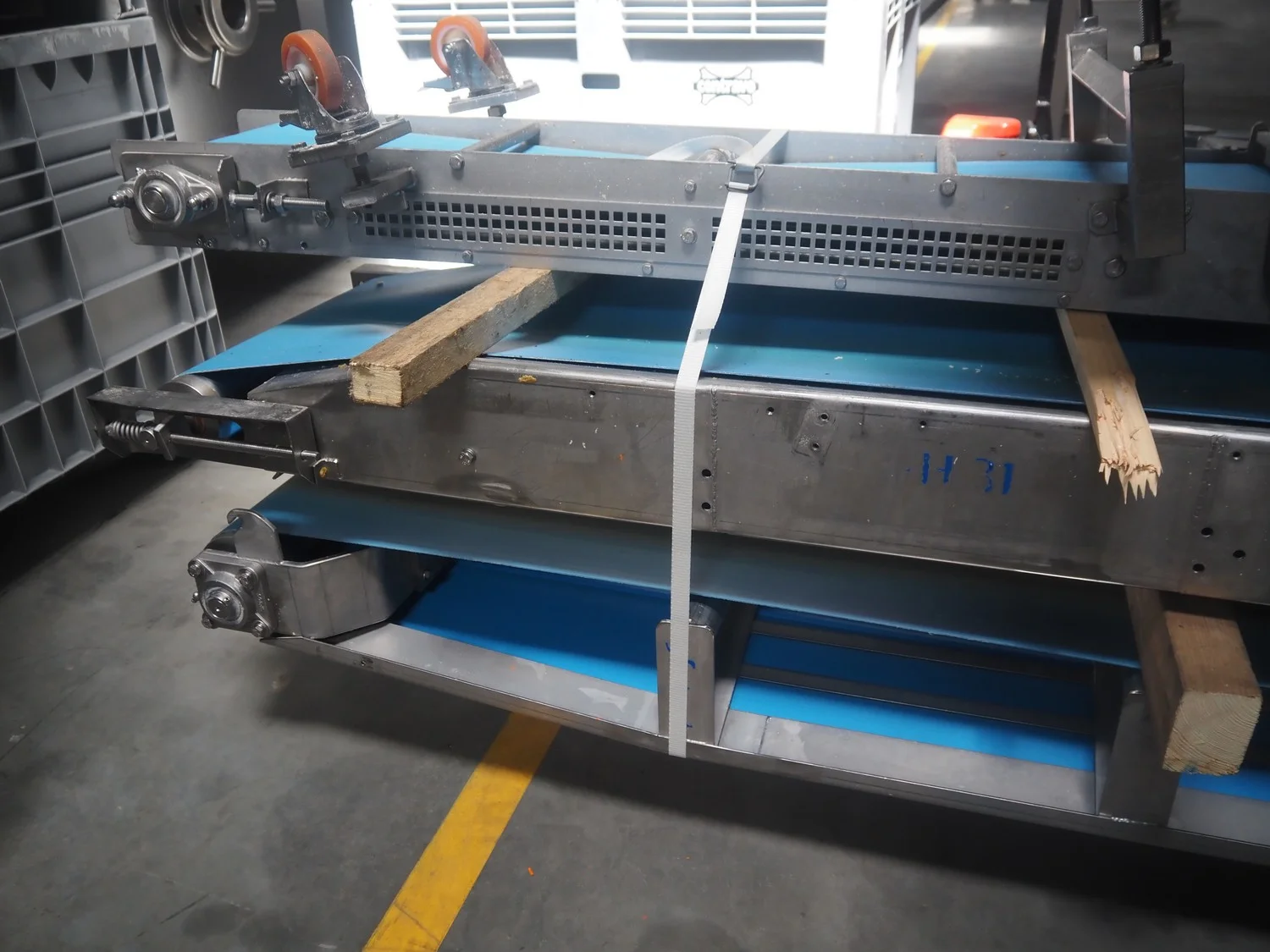 Toresani Foodmac line for ravioli, consisting of: 2 Pavan dough sheeters, plastic mesh belts, belt width: 550 mm, total dimensions: (2x) 2700 mm x 1500 mm x 2080 mm, 2 forming machines, plastic mesh belt, belt width: 550 mm, plastic outfeed belt, belt width: 150 mm, total dimensions: (2x) 2100 mm x 1600 mm x 2180 mm, platform with Gericke dosing pump, dimensions: 2700 mm x 1900 mm x 2650 mm, various transport belts, plastic belts, belt width: 500 mm, 400 mm and 200 mm, total dimensions pallet transport belts: 4600 mm x 1000 mm x 1600 mm, 2 mobile pumps, dimensions: (2x) 1000 mm x 550 mm x 1600 mm, 1 pallet with parts and 7 pallet boxes with parts, dimensions: (7x) 1200 mm x 800 mm x 800 mm.