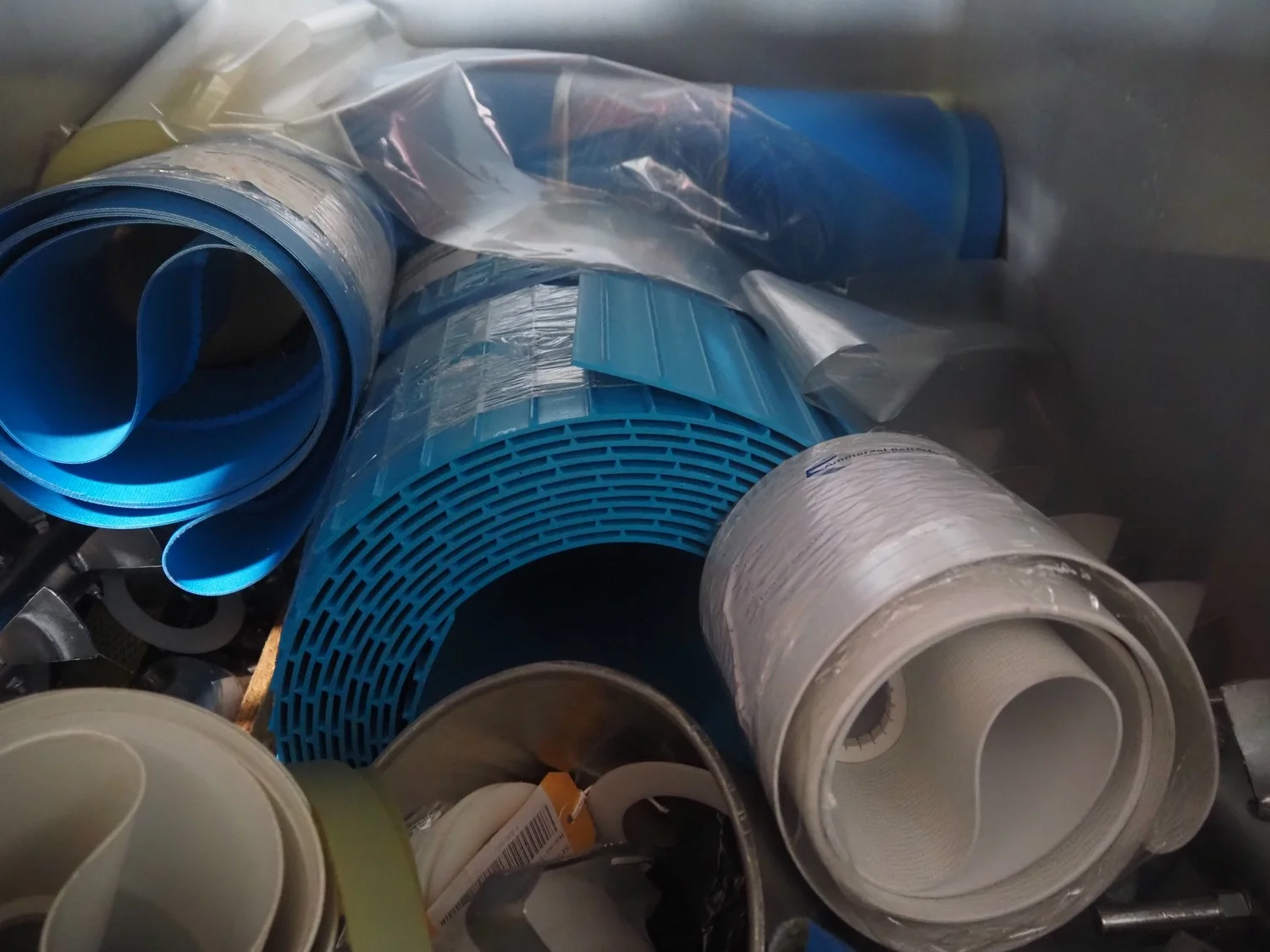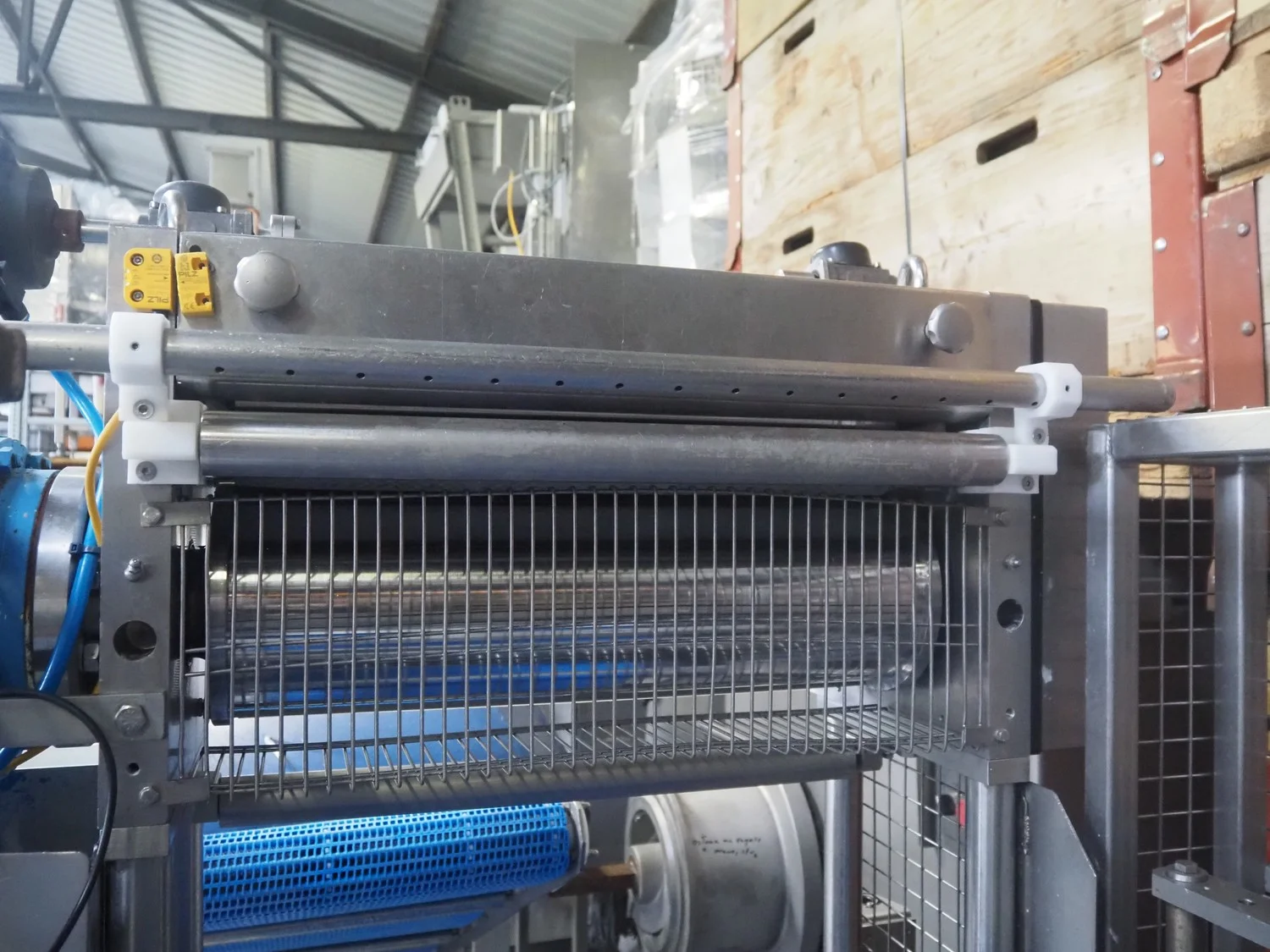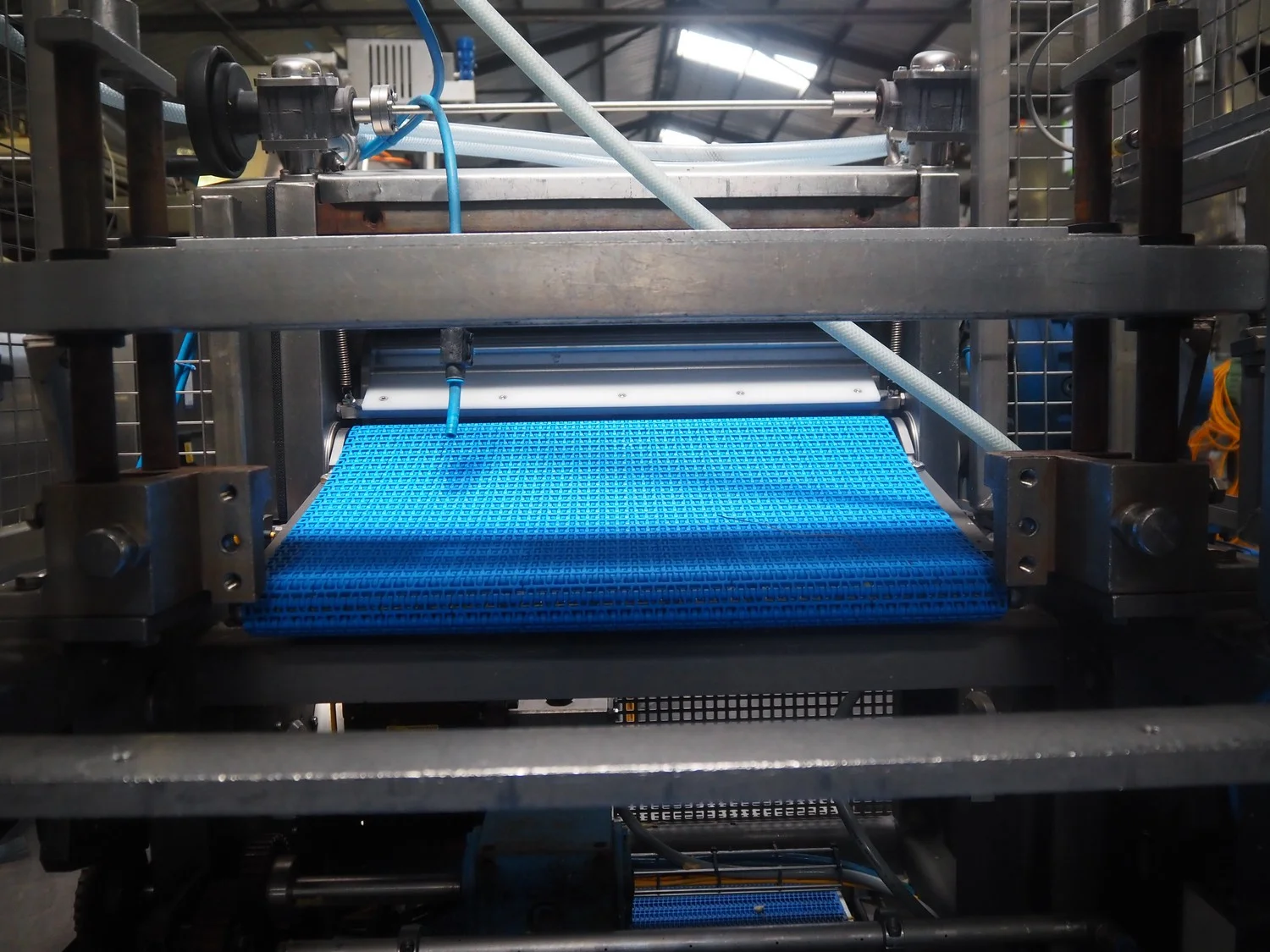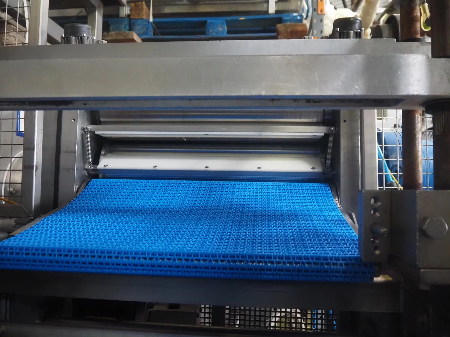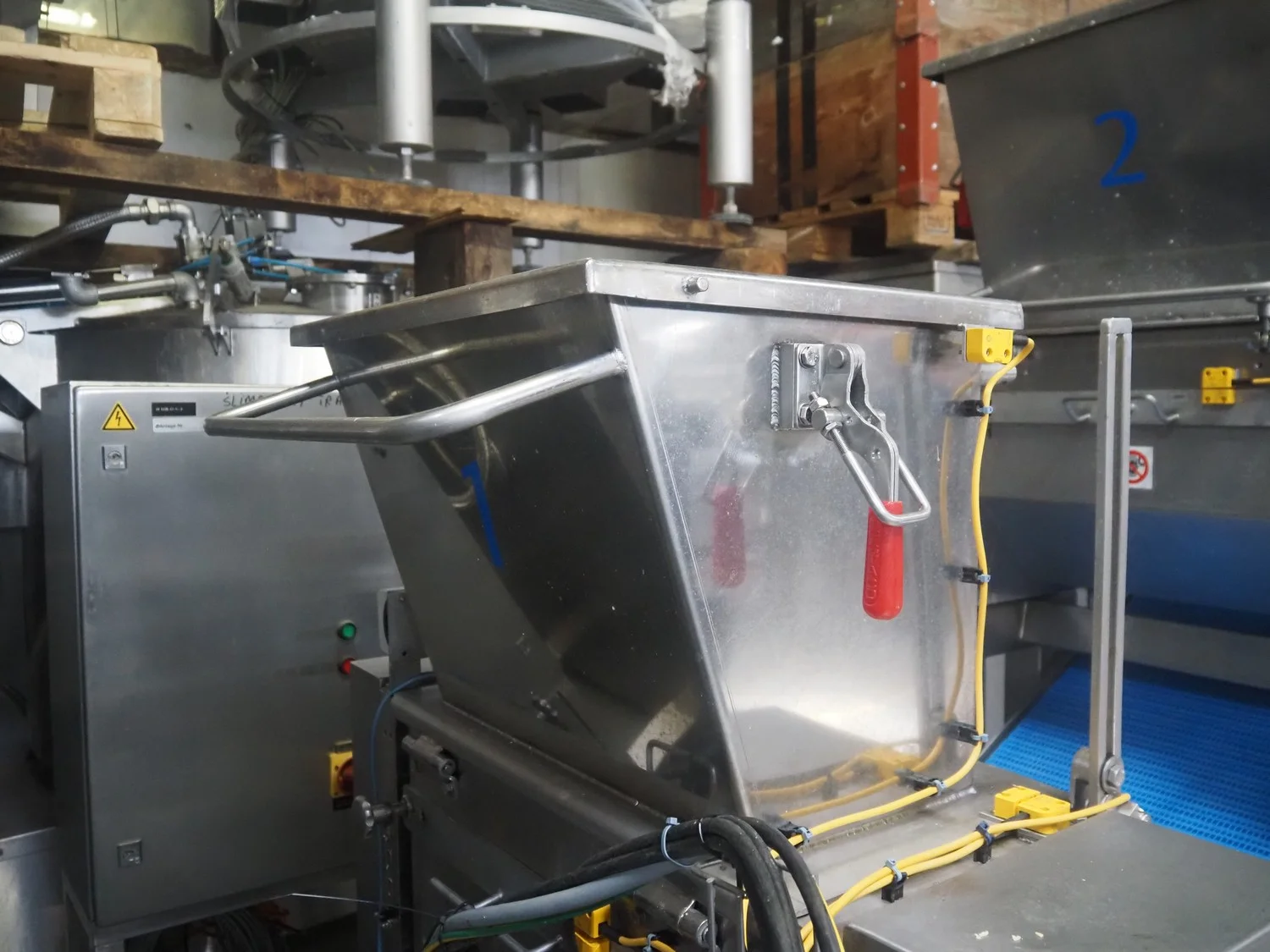 Toresani Foodmac line for ravioli, consisting of: 2 Pavan dough sheeters, plastic mesh belts, belt width: 550 mm, total dimensions: (2x) 2700 mm x 1500 mm x 2080 mm, 2 forming machines, plastic mesh belt, belt width: 550 mm, plastic outfeed belt, belt width: 150 mm, total dimensions: (2x) 2100 mm x 1600 mm x 2180 mm, platform with Gericke dosing pump, dimensions: 2700 mm x 1900 mm x 2650 mm, various transport belts, plastic belts, belt width: 500 mm, 400 mm and 200 mm, total dimensions pallet transport belts: 4600 mm x 1000 mm x 1600 mm, 2 mobile pumps, dimensions: (2x) 1000 mm x 550 mm x 1600 mm, 1 pallet with parts and 7 pallet boxes with parts, dimensions: (7x) 1200 mm x 800 mm x 800 mm.