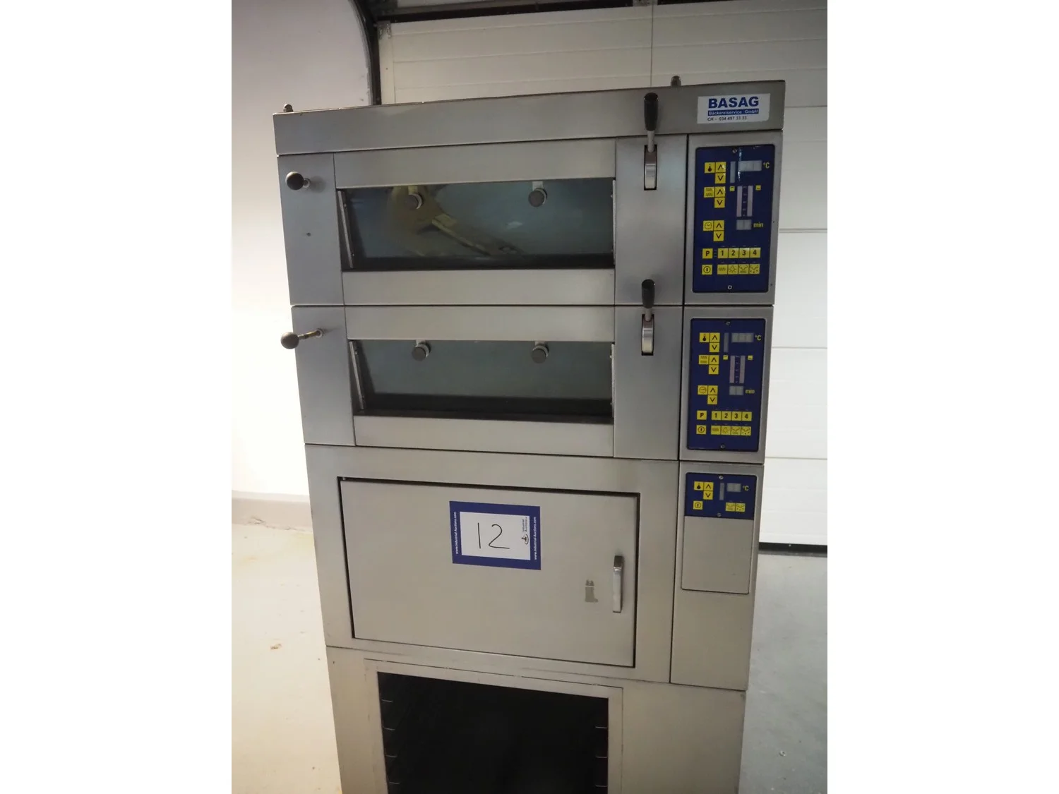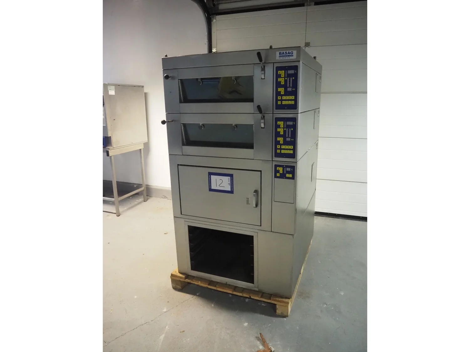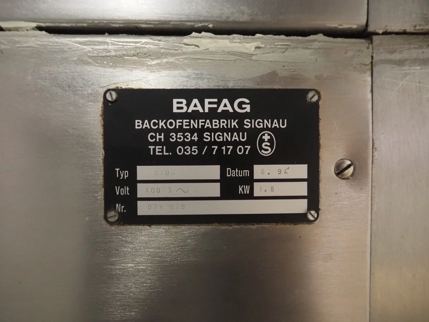 Bafag deck oven, type: G10M, number: 071 829, year of construction: 6.94, 400 V, 3 Ph, 1.8 kW, 5 floors, dimensions each floor: 690 mm x 540 mm, (2x) deck oven, type: GN10, number: 071 829, year of construction: 6. 94, 400 V, 3 Ph, 6 kW, total dimensions: 1100 mm x 960 mm x 770 mm.
