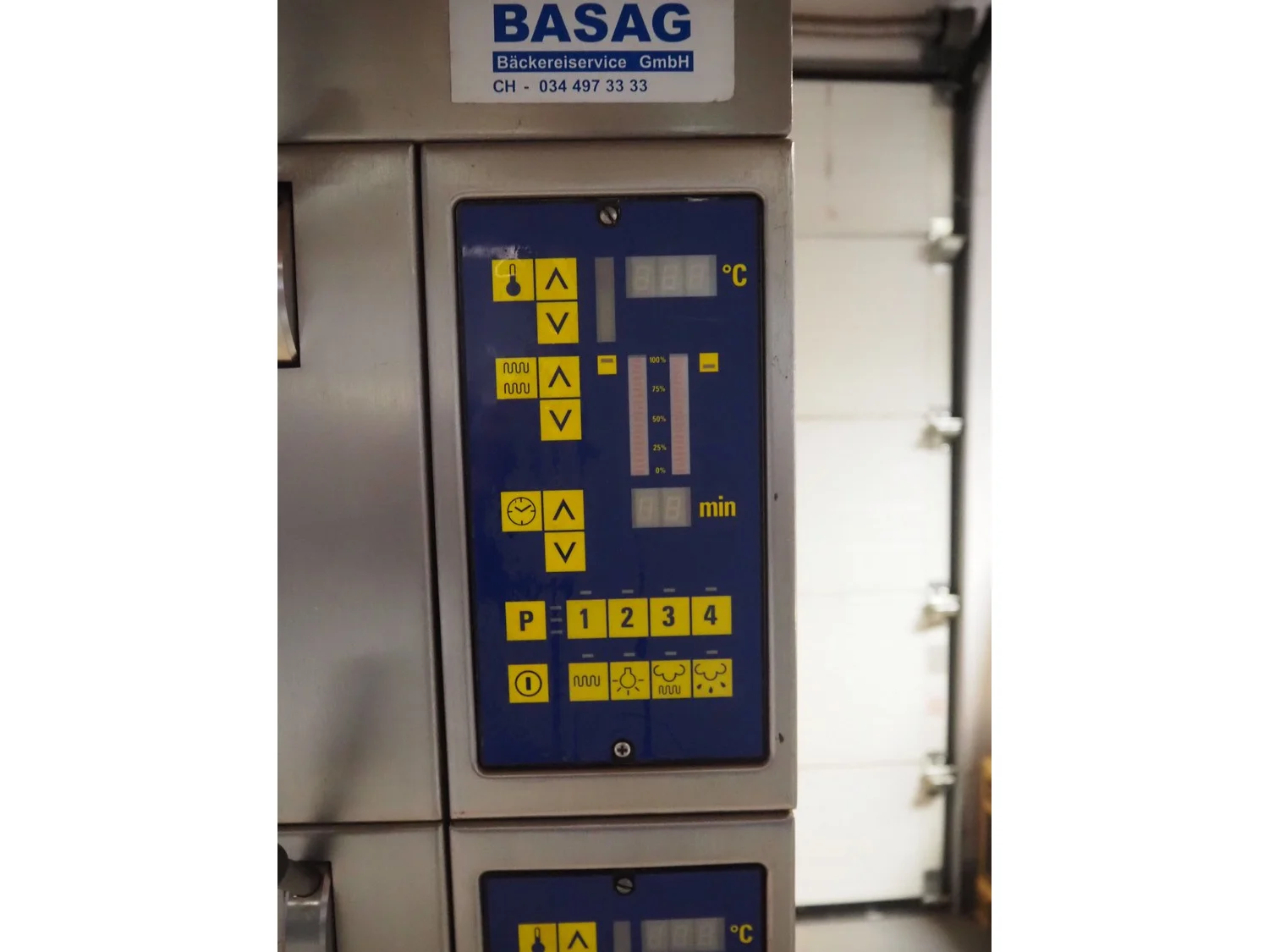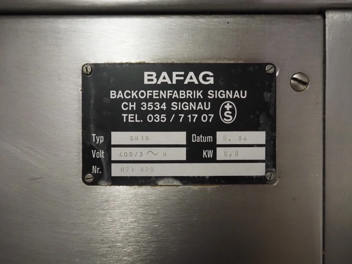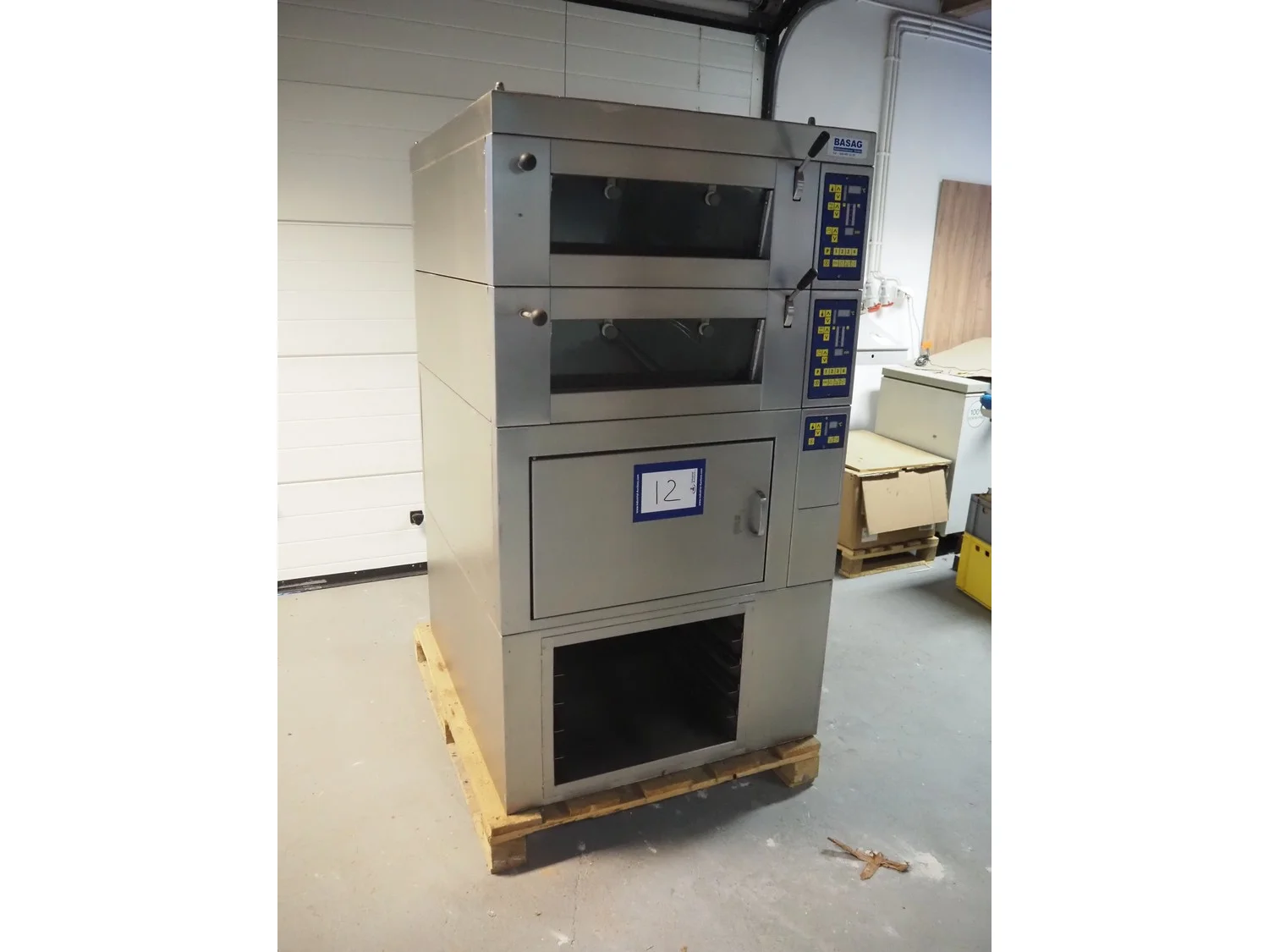 Bafag deck oven, type: G10M, number: 071 829, year of construction: 6.94, 400 V, 3 Ph, 1.8 kW, 5 floors, dimensions each floor: 690 mm x 540 mm, (2x) deck oven, type: GN10, number: 071 829, year of construction: 6. 94, 400 V, 3 Ph, 6 kW, total dimensions: 1100 mm x 960 mm x 770 mm.