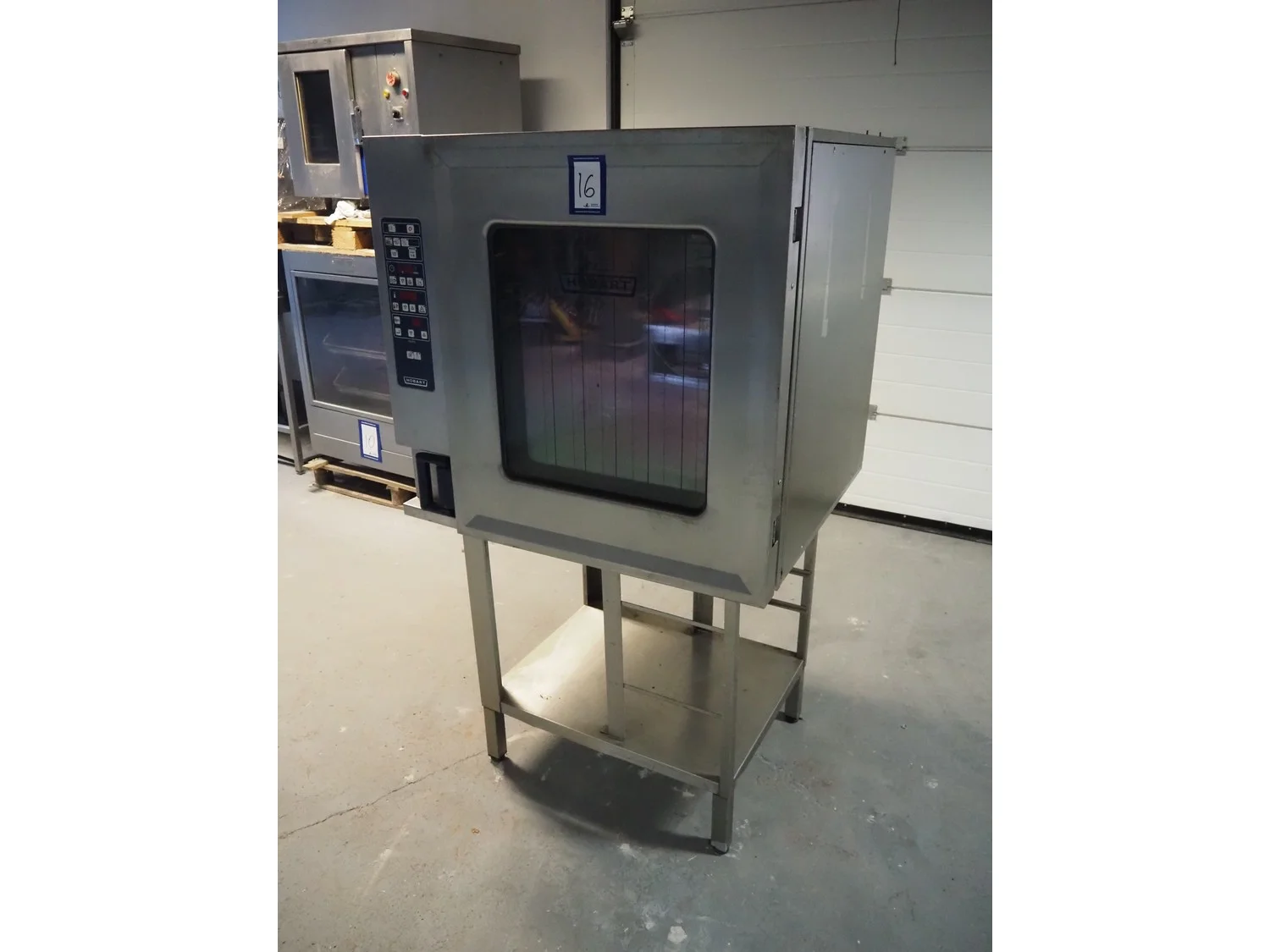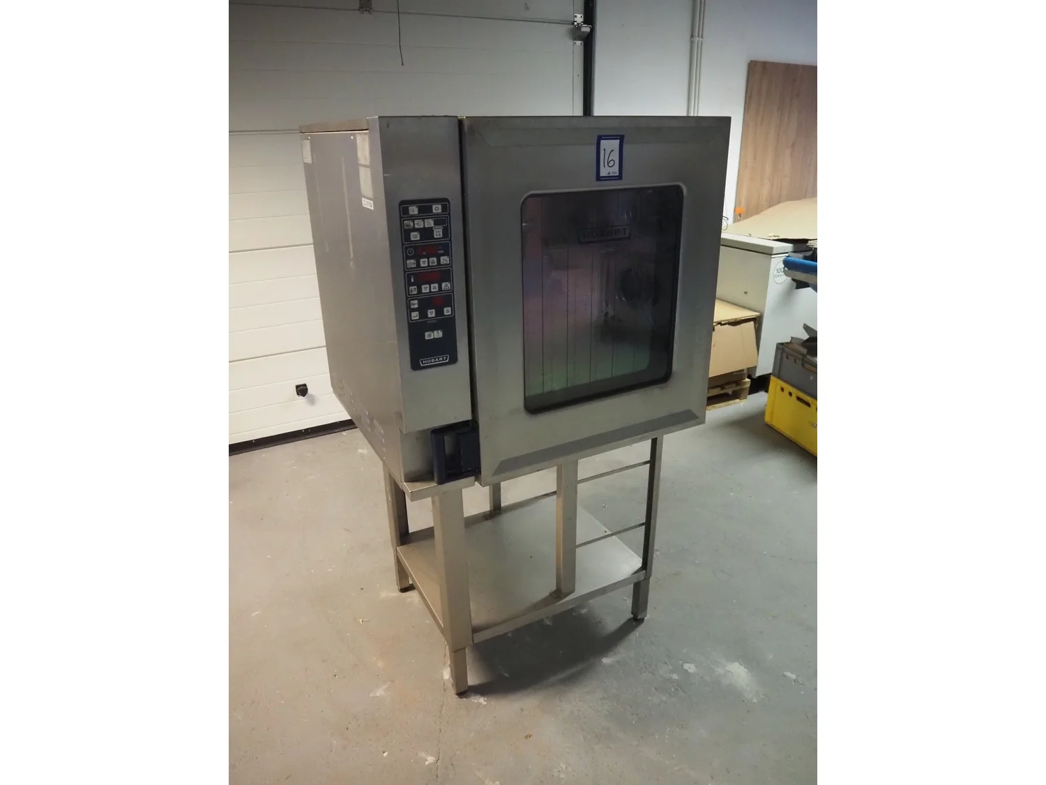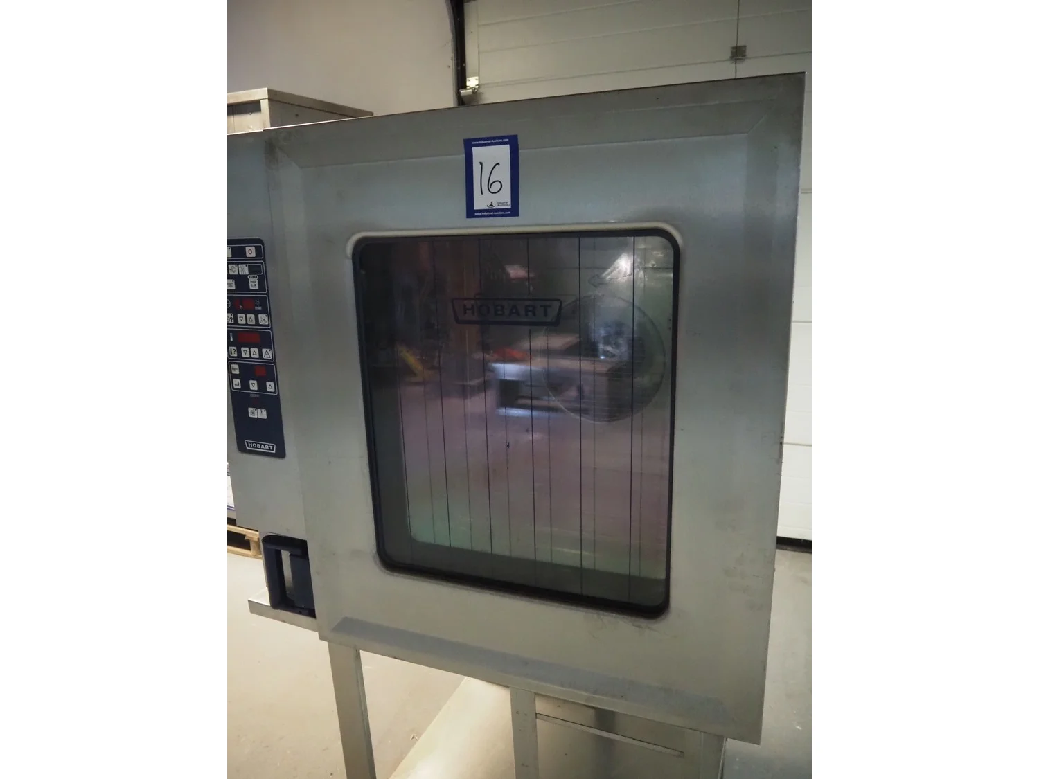 Hobart combi steamer, type: CSD1012E, machine number: 81837470, 10 floors, dimensions floors: (10x) 530 mm x 320 mm, total dimensions: 900 mm x 820 mm x 1620 mm.