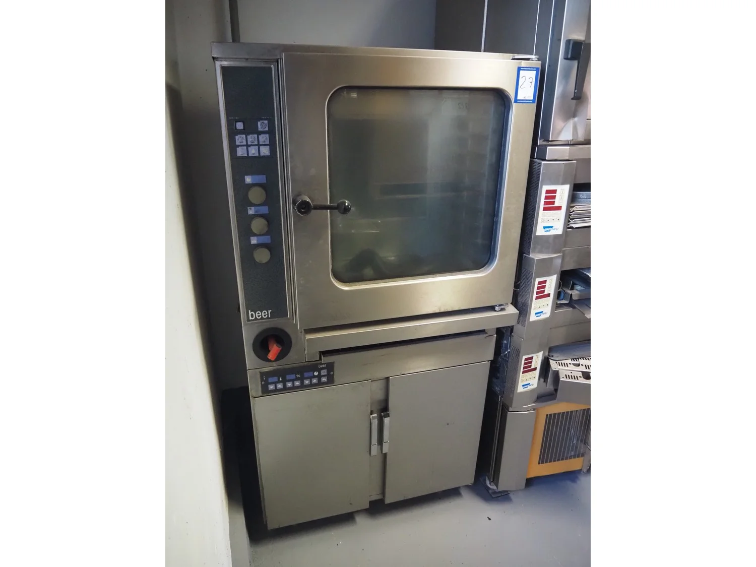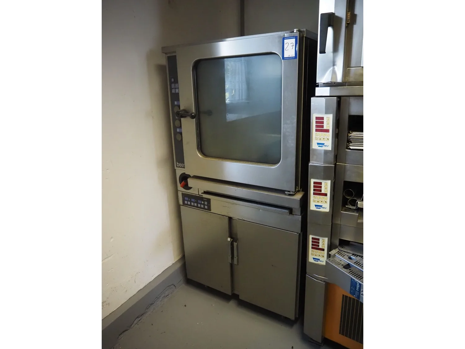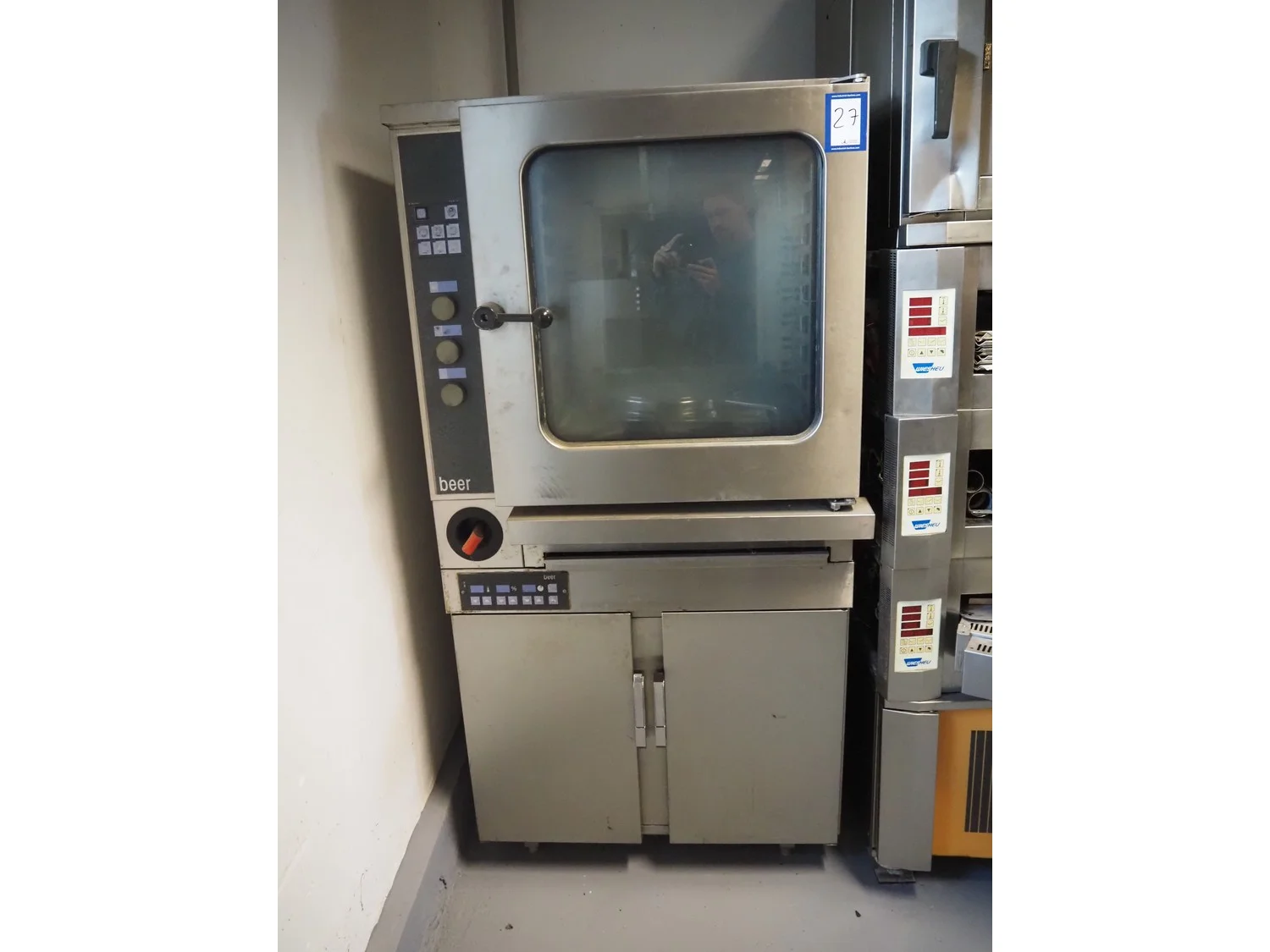 Beer combi steamer and proofer, type combi steamer: 5DB 10-11, machine number: 132274 220, year of construction: 2000, 400 V, 50/60 Hz, 14 kW, 200-600 kPa, 10 floors, dimensions each floor: 300 mm x 530 mm, type proofer: WU 14, machine number: 166004 395, 230 V, 50/60 Hz, 3.1 kW, (2x) 7 floors, dimensions each floor: 325 mm x 500 mm, total dimensions: 925 mm x 800 mm x 1830 mm.