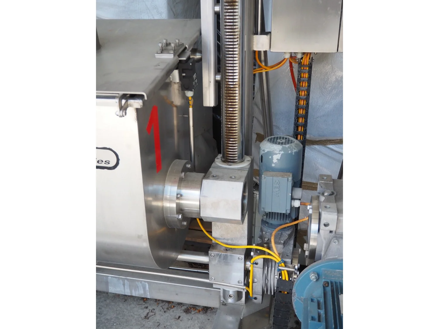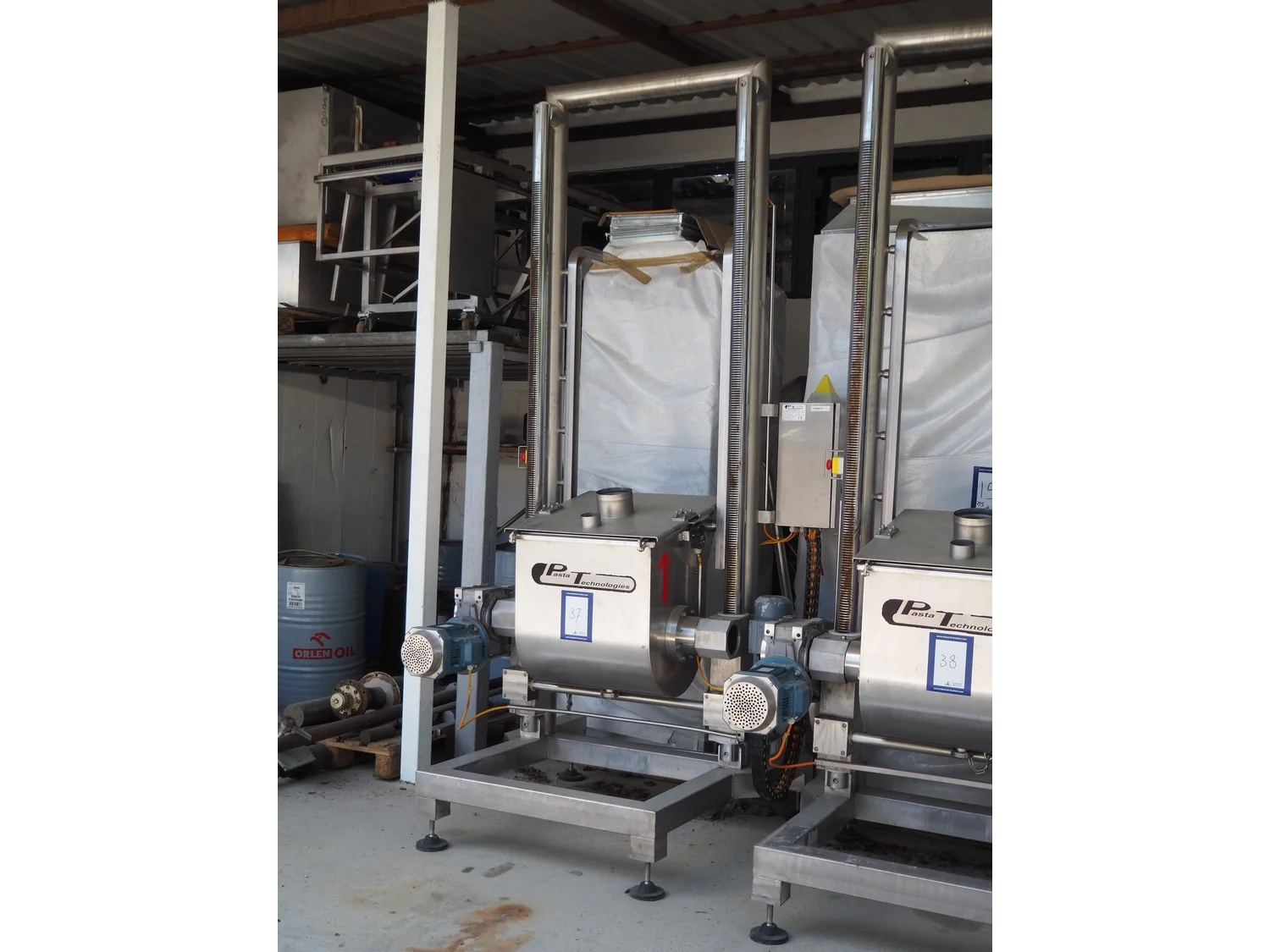 Pasta Technologies s.r.l. paddle mixer with lifter, used for pasta dough, type: MA-080A, number: 17301B1106, year of construction: 2006, 380 V, 50 Hz, volume: 80 liter, lifting height: 2400 mm, total dimensions: 1500 mm x 1350 mm x 3150 mm.