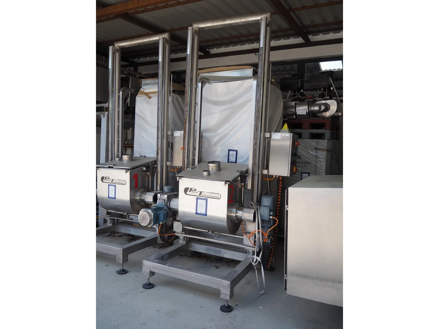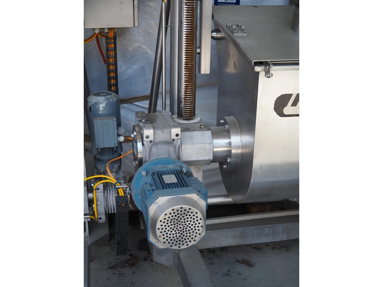 Pasta Technologies s.r.l. paddle mixer with lifter, used for pasta dough, type: MA-080A, number: 17301A1106, year of construction: 2006, 380 V, 50 Hz, volume: 80 liter, lifting height: 2400 mm, total dimensions: 1500 mm x 1350 mm x 3150 mm.