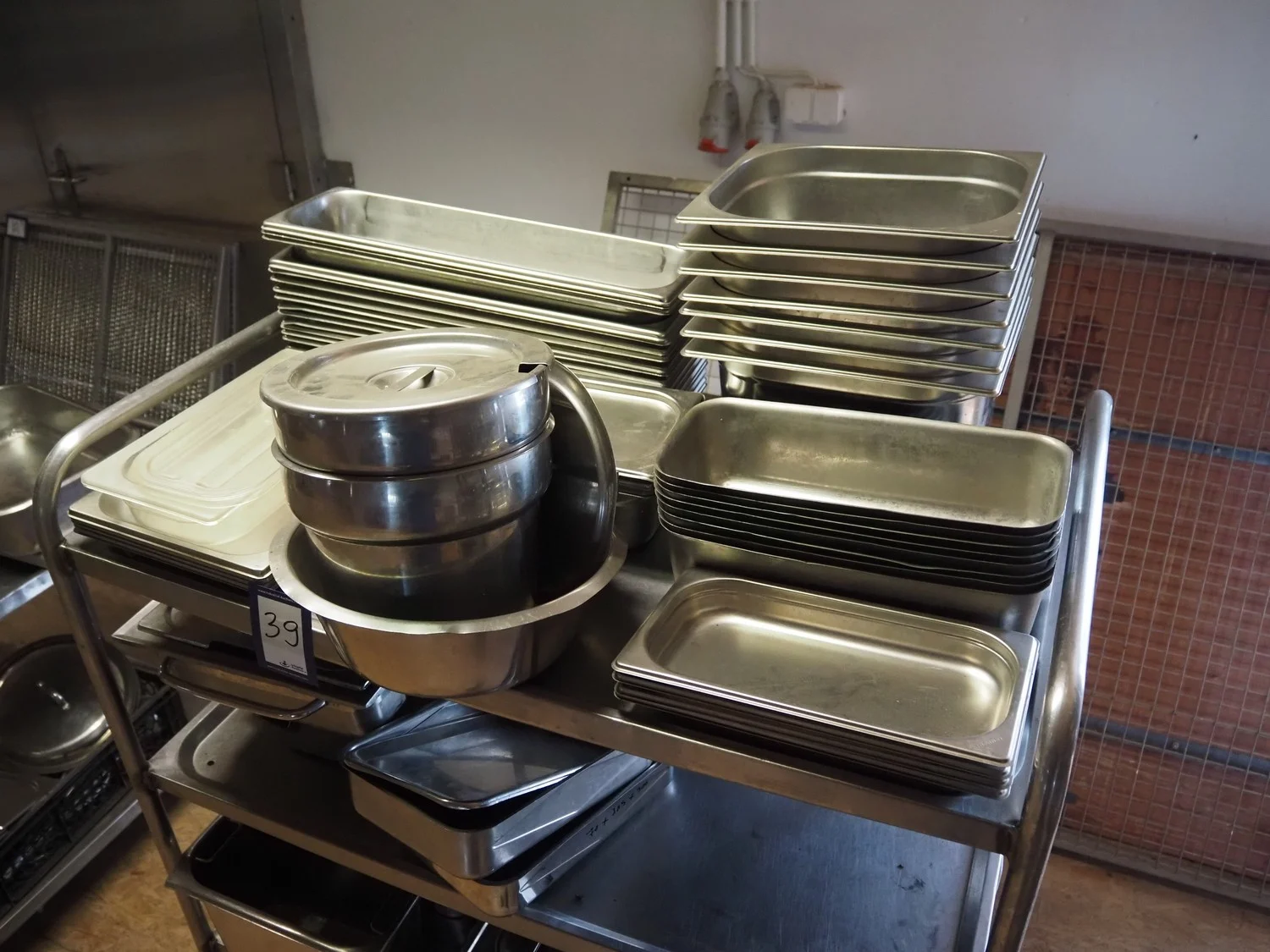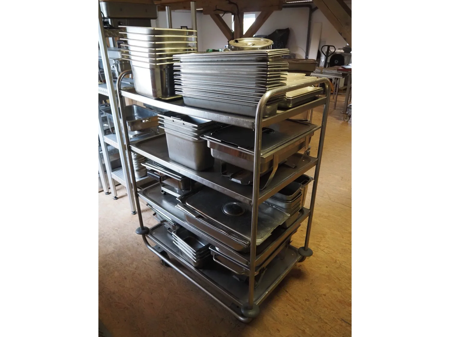 S/s rack with various kitchen equipment, dimensions: 1020 mm x 620 mm x 1380 mm.