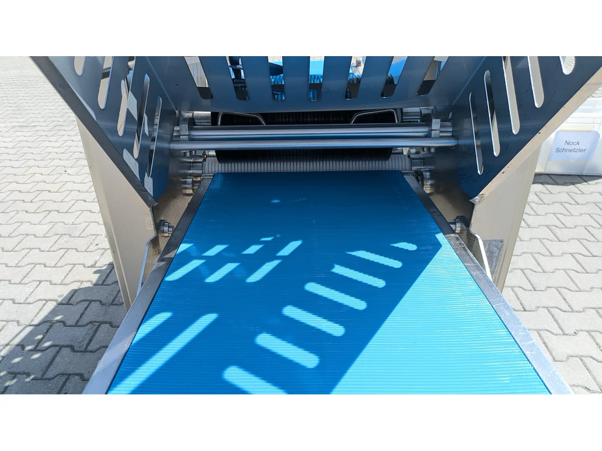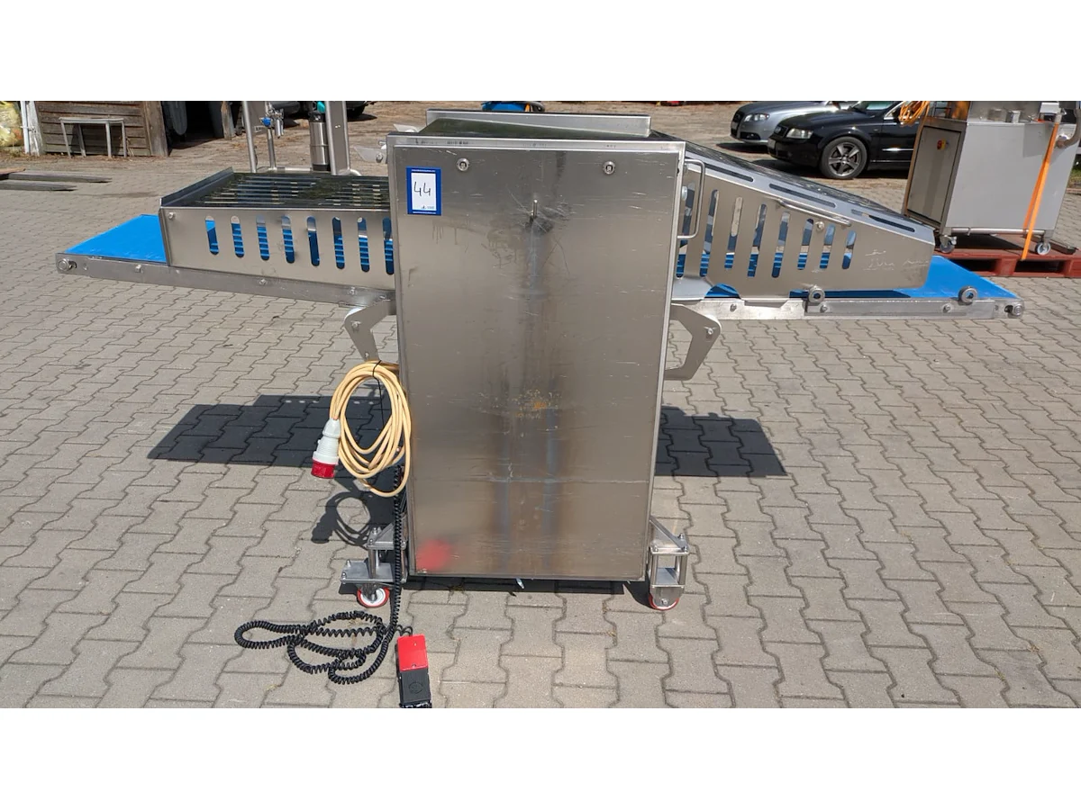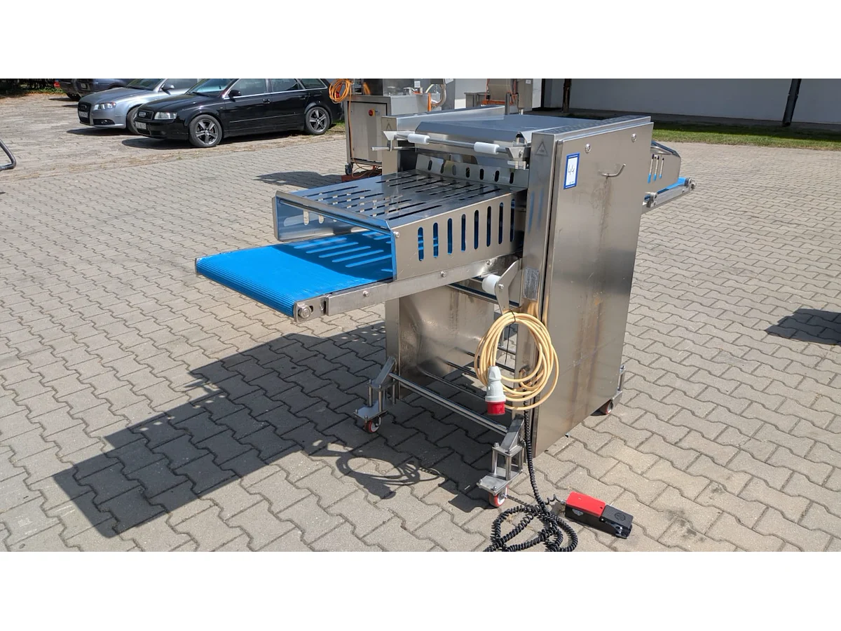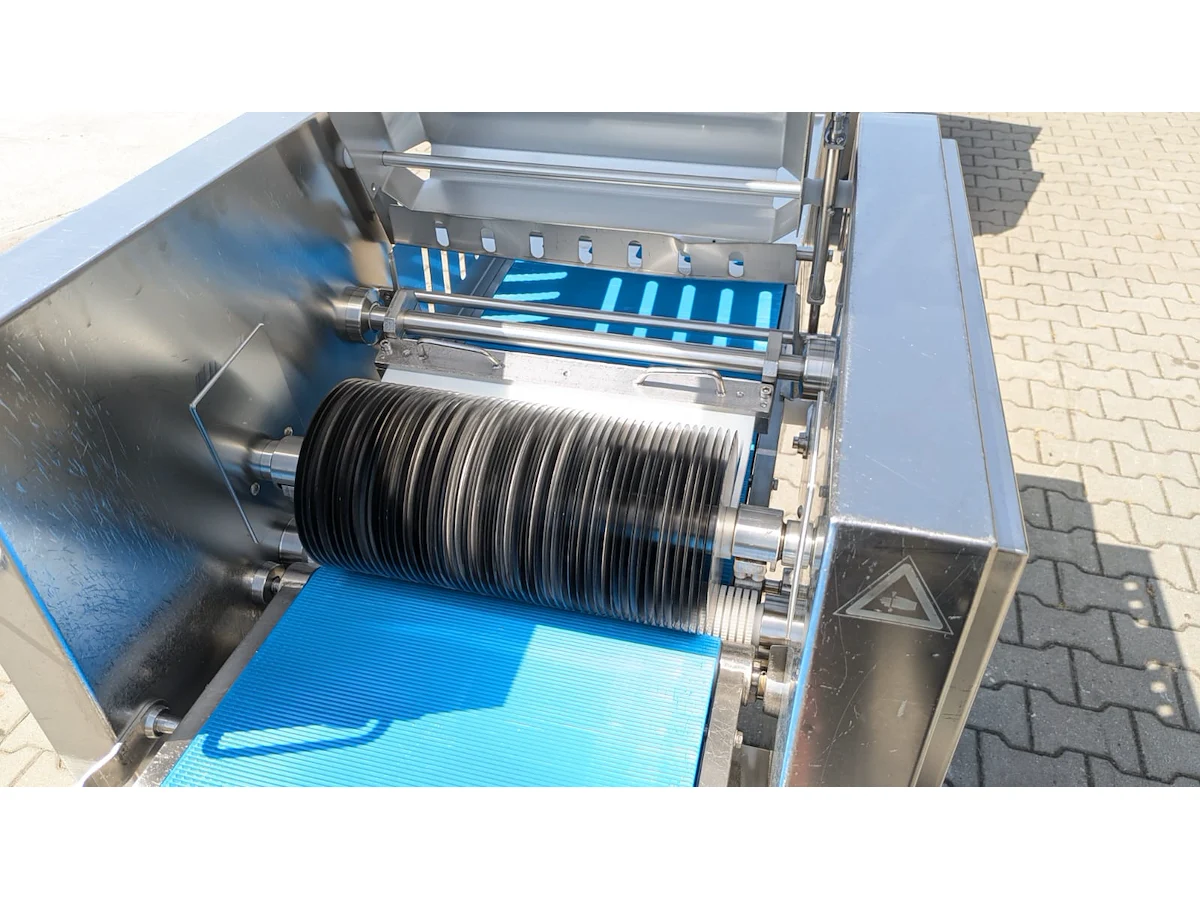 Nock mobile strip cutter, type: CB495/5KK, 400 V, 3 Ph, 50 Hz, 10 A, 1.1 kW, plastic belt, belt width: 430 mm, distance between knives: 8 mm, total dimensions: 2500 mm x 900 mm x 1300 mm.