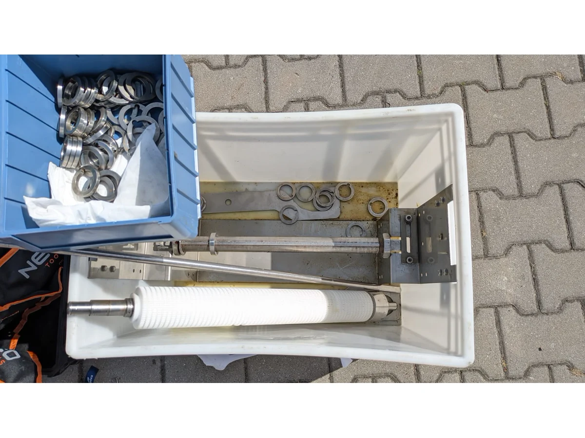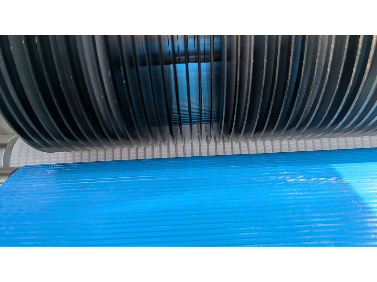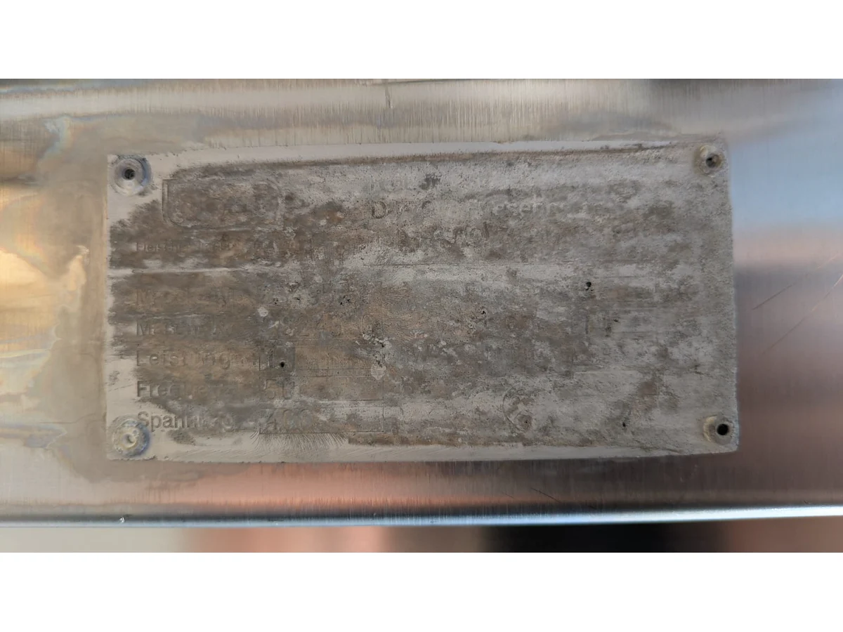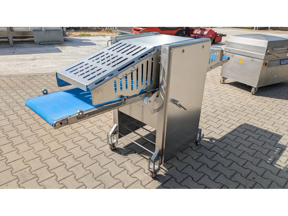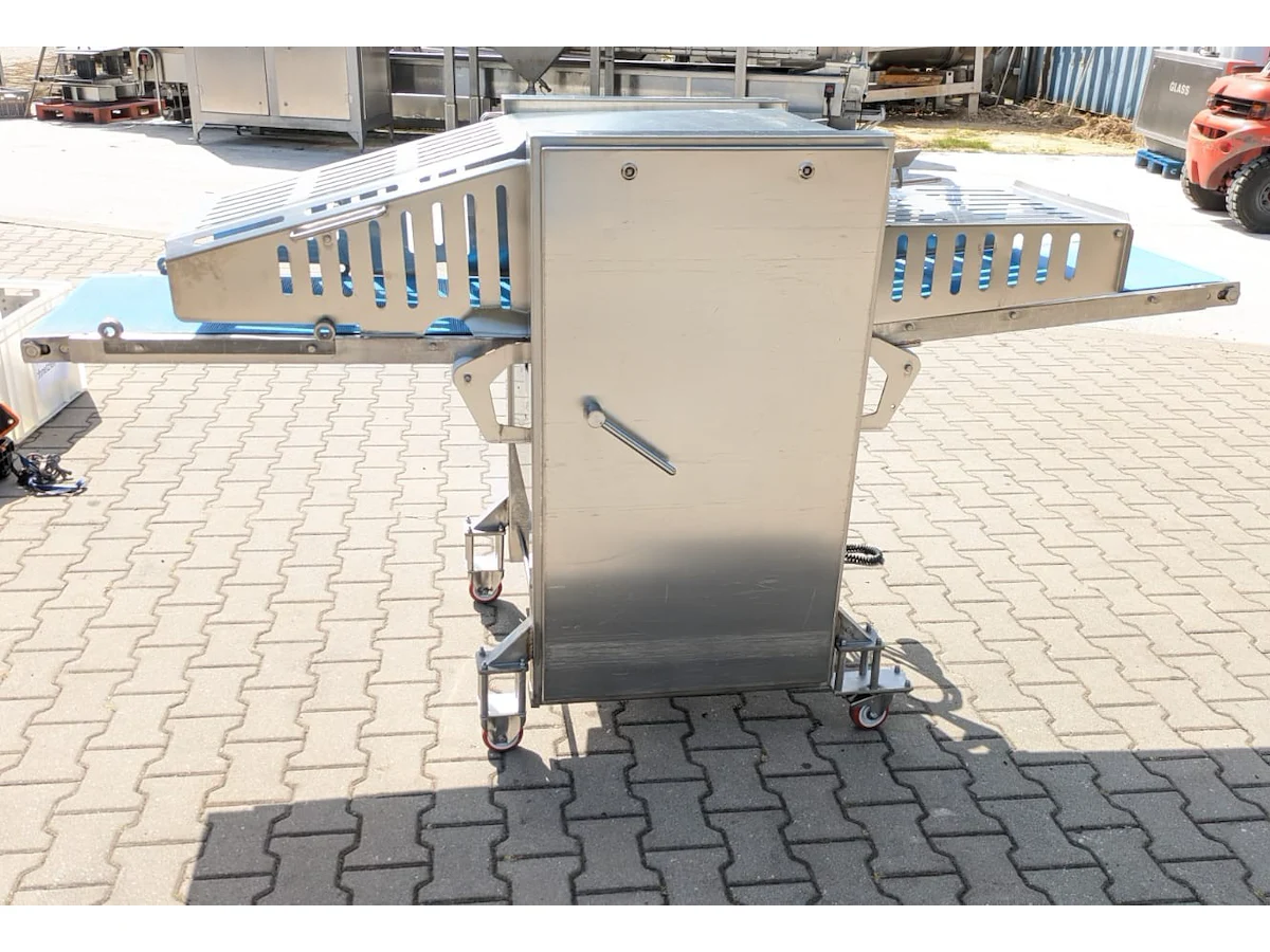 Nock mobile strip cutter, type: CB495/5KK, 400 V, 3 Ph, 50 Hz, 10 A, 1.1 kW, plastic belt, belt width: 430 mm, distance between knives: 8 mm, total dimensions: 2500 mm x 900 mm x 1300 mm.