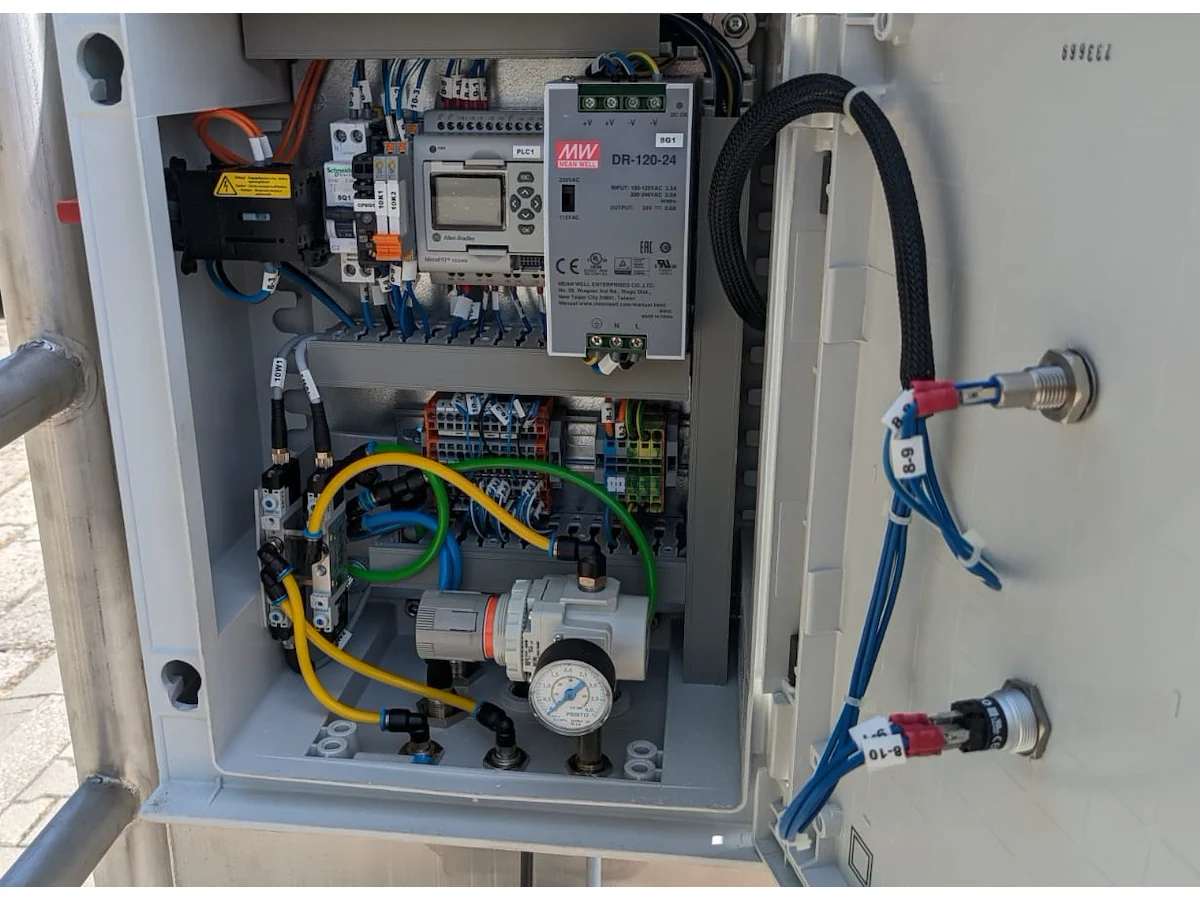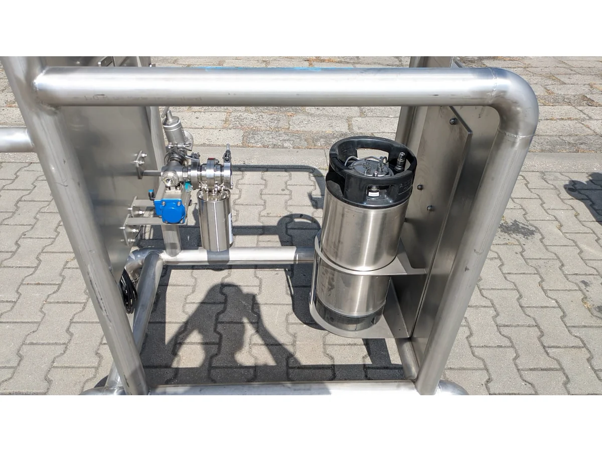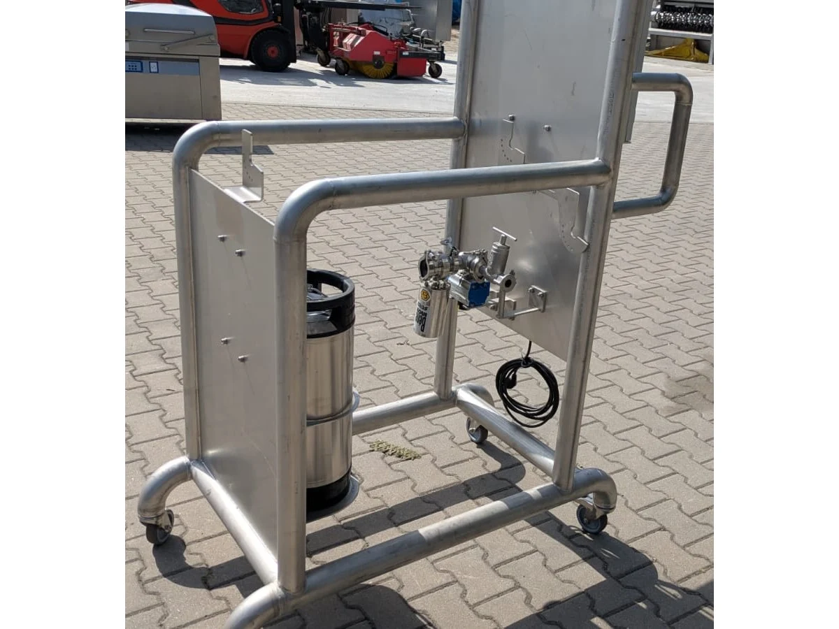 Mobile foaming machine, dimensions: 1300 mm x 700 mm x 1630 mm.