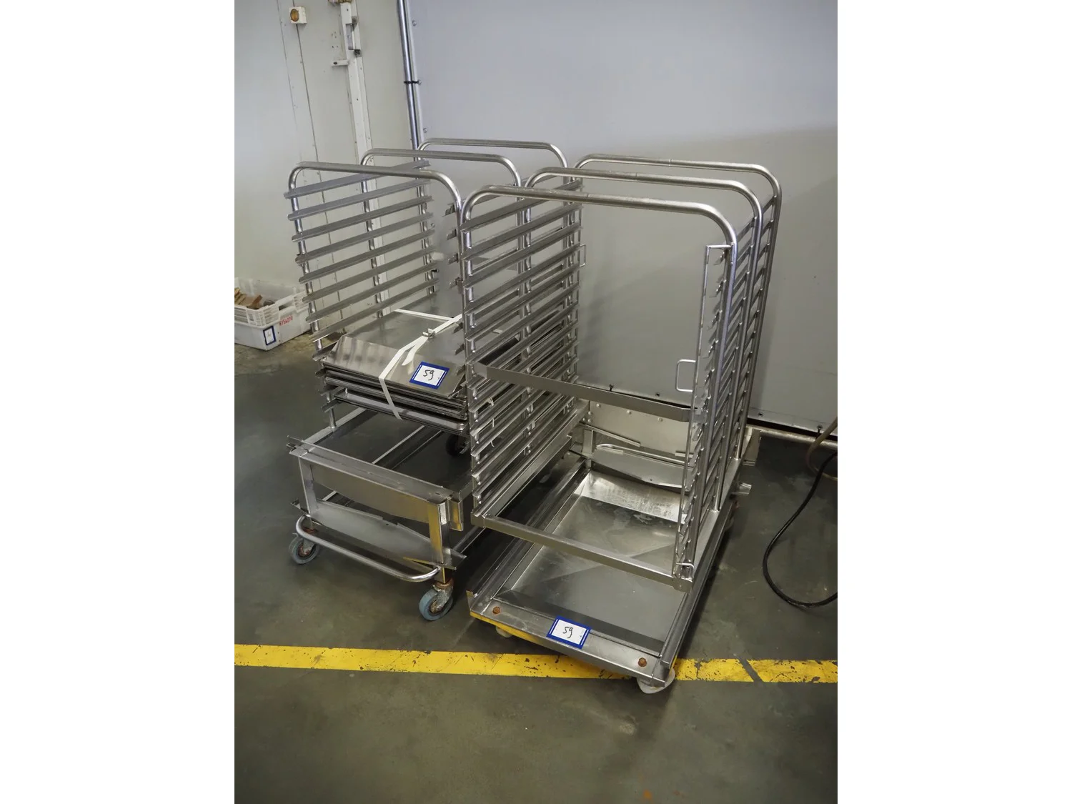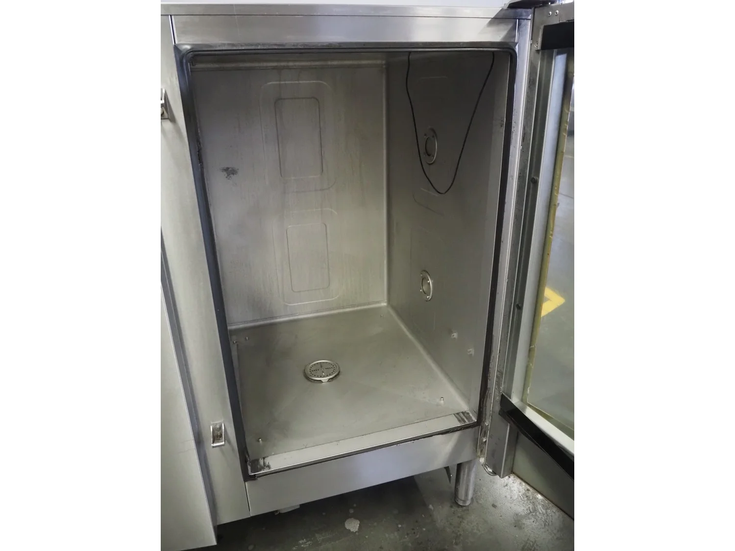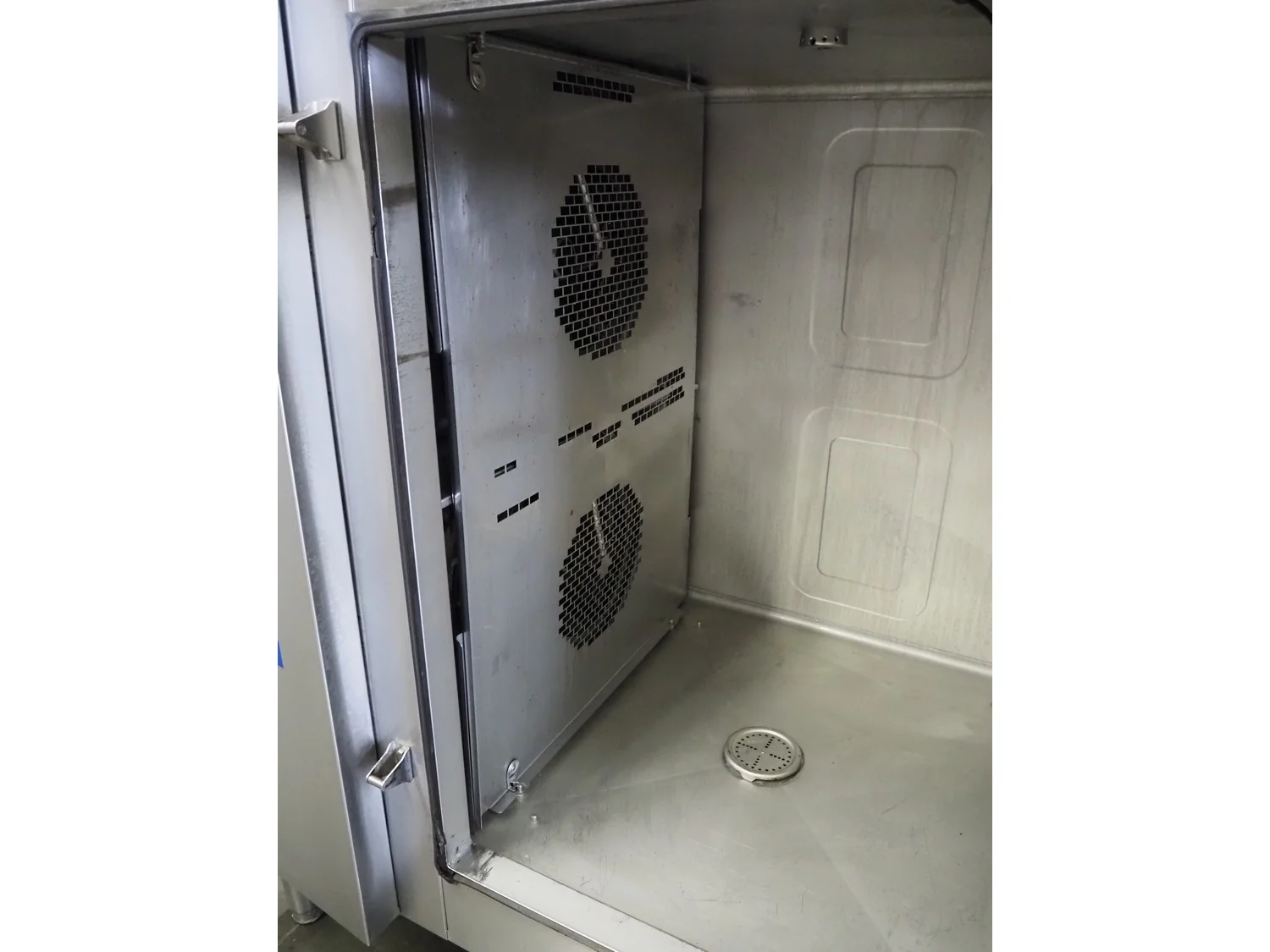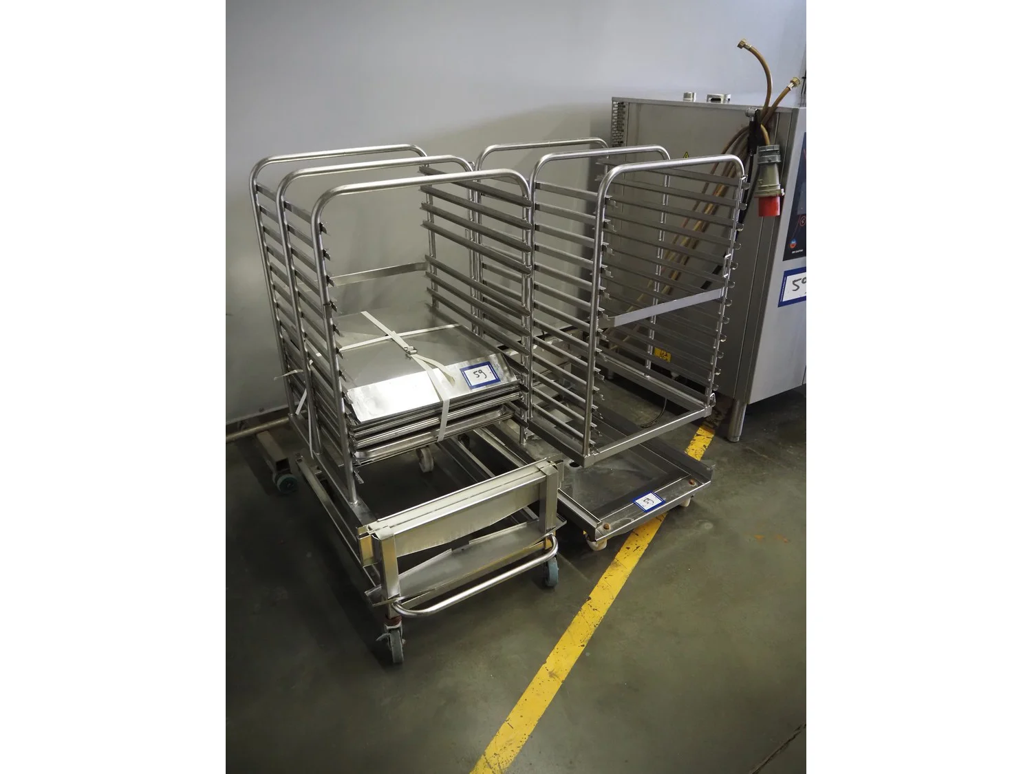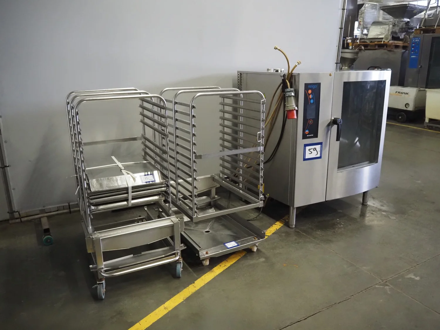 RM Gastro combi steamer, model: E1221|A, type: RB, serial number: 196721210, year of construction: 2016, 400 V, 3 Ph, 50-60 Hz, 33.6/35 kW, weight: 210 kg, dimensions: 1200 mm x 950 mm x 1350 mm. Including 2 s/s trolleys for combi steamer, (2x) 13 floors , dimensions each floor: 540 mm x 650 mm, total dimensions: (2x) 930 mm x 650 mm x 1250 mm.