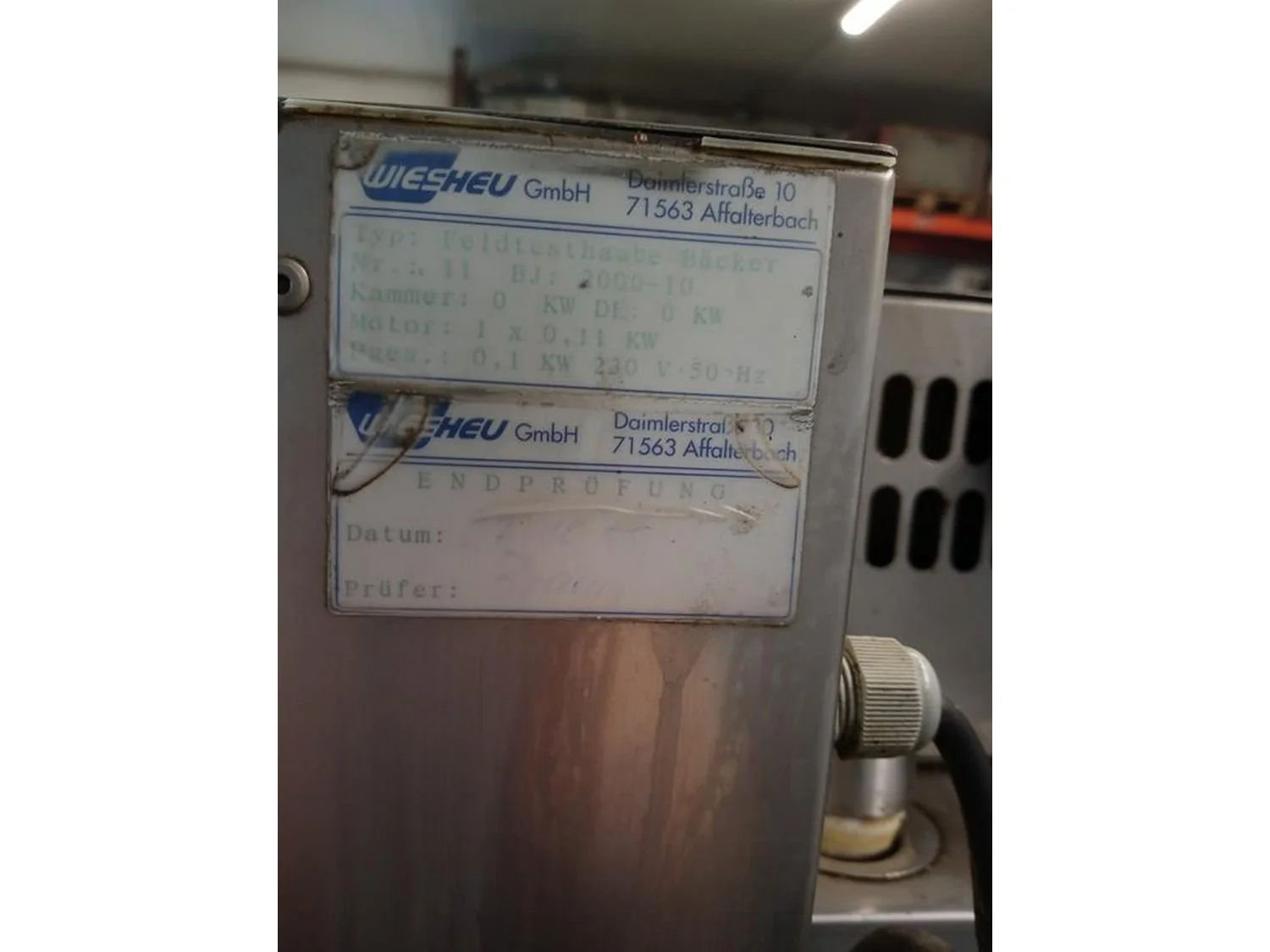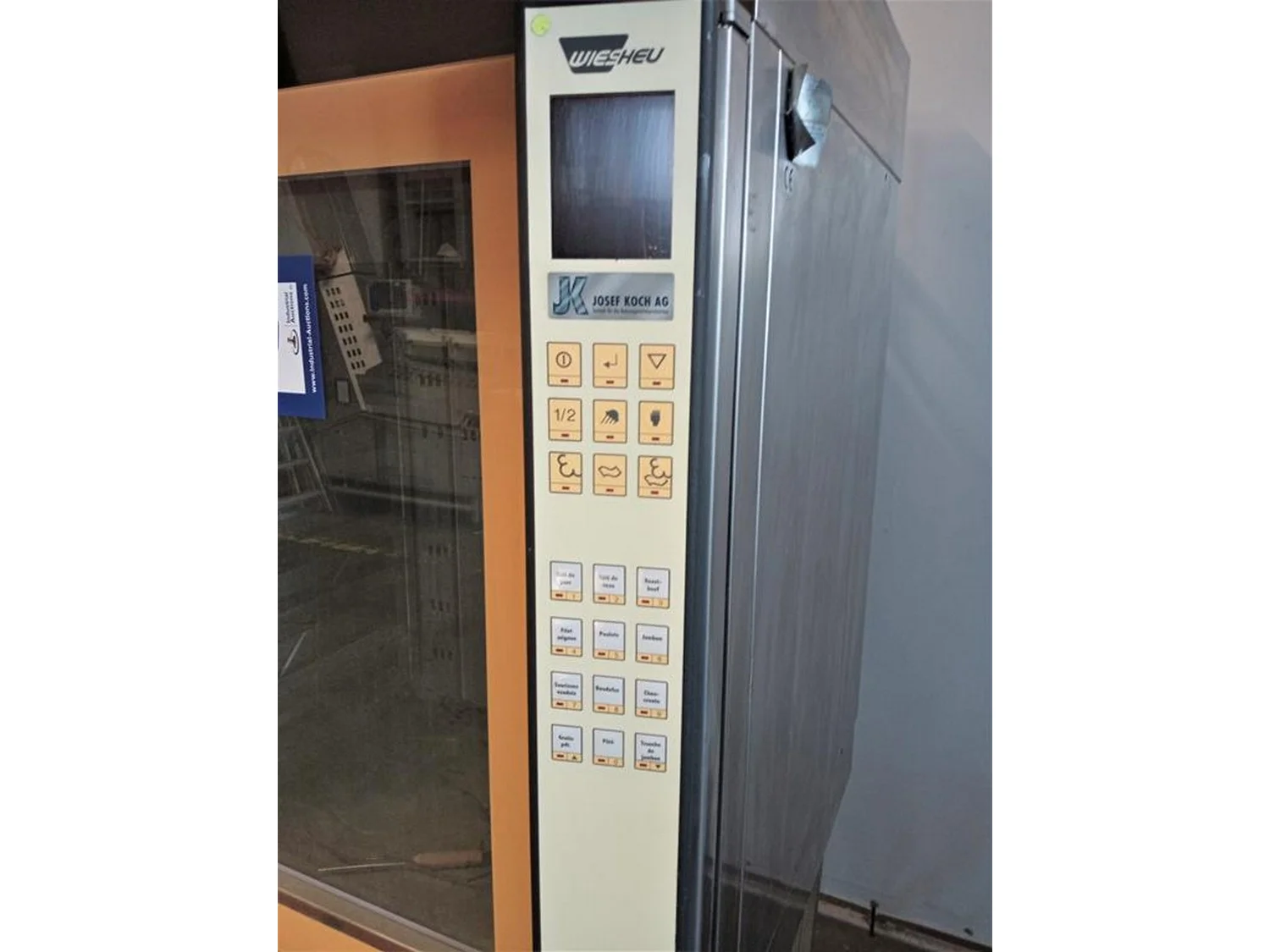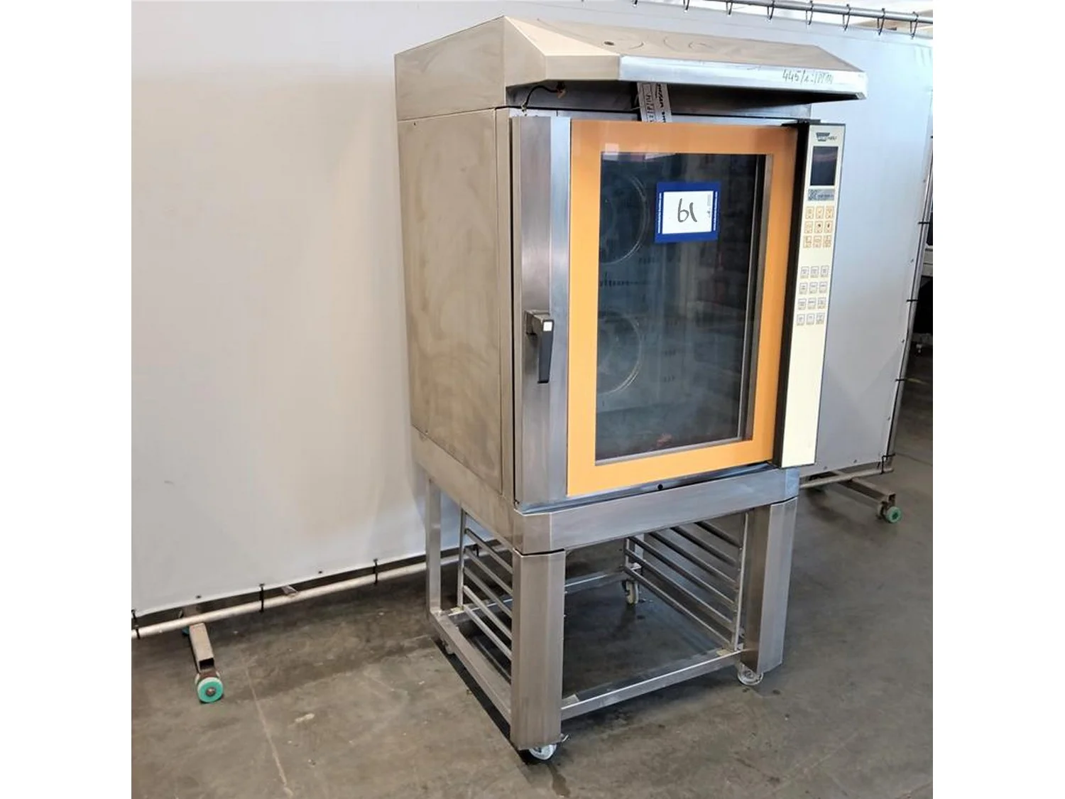 Wiesheu GmbH oven, type: M16R TS 350, power: 18.8 kW, 7 floors, dimensions each floor: 700 mm x 540 mm x 850 mm, total dimensions: 1150 mm x 950 mm x 1950 mm.