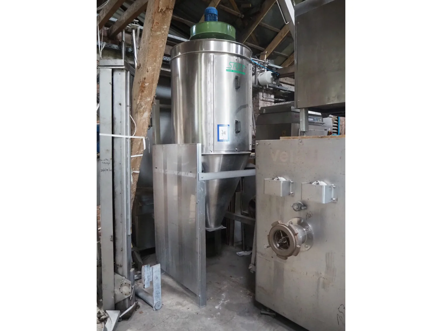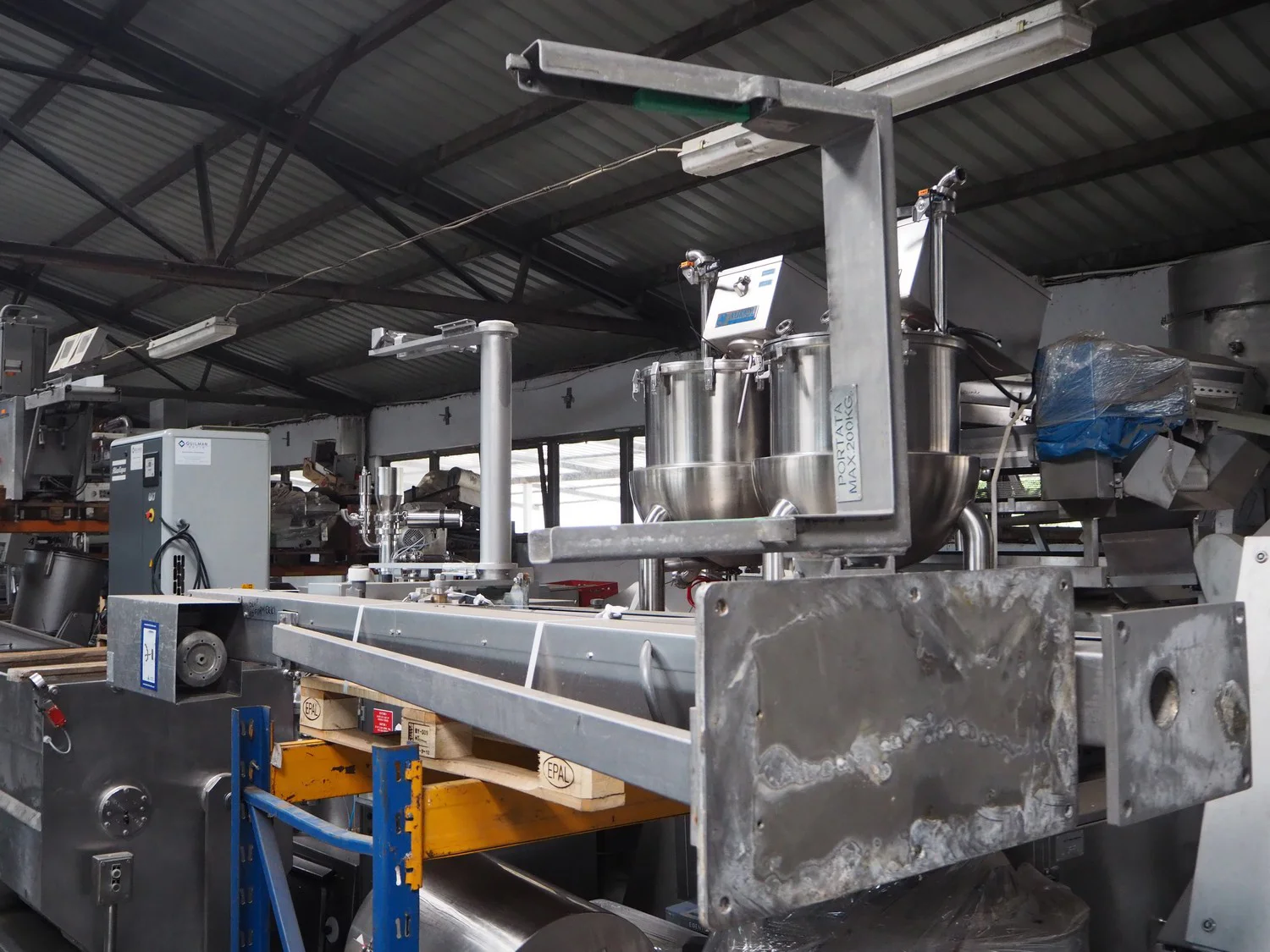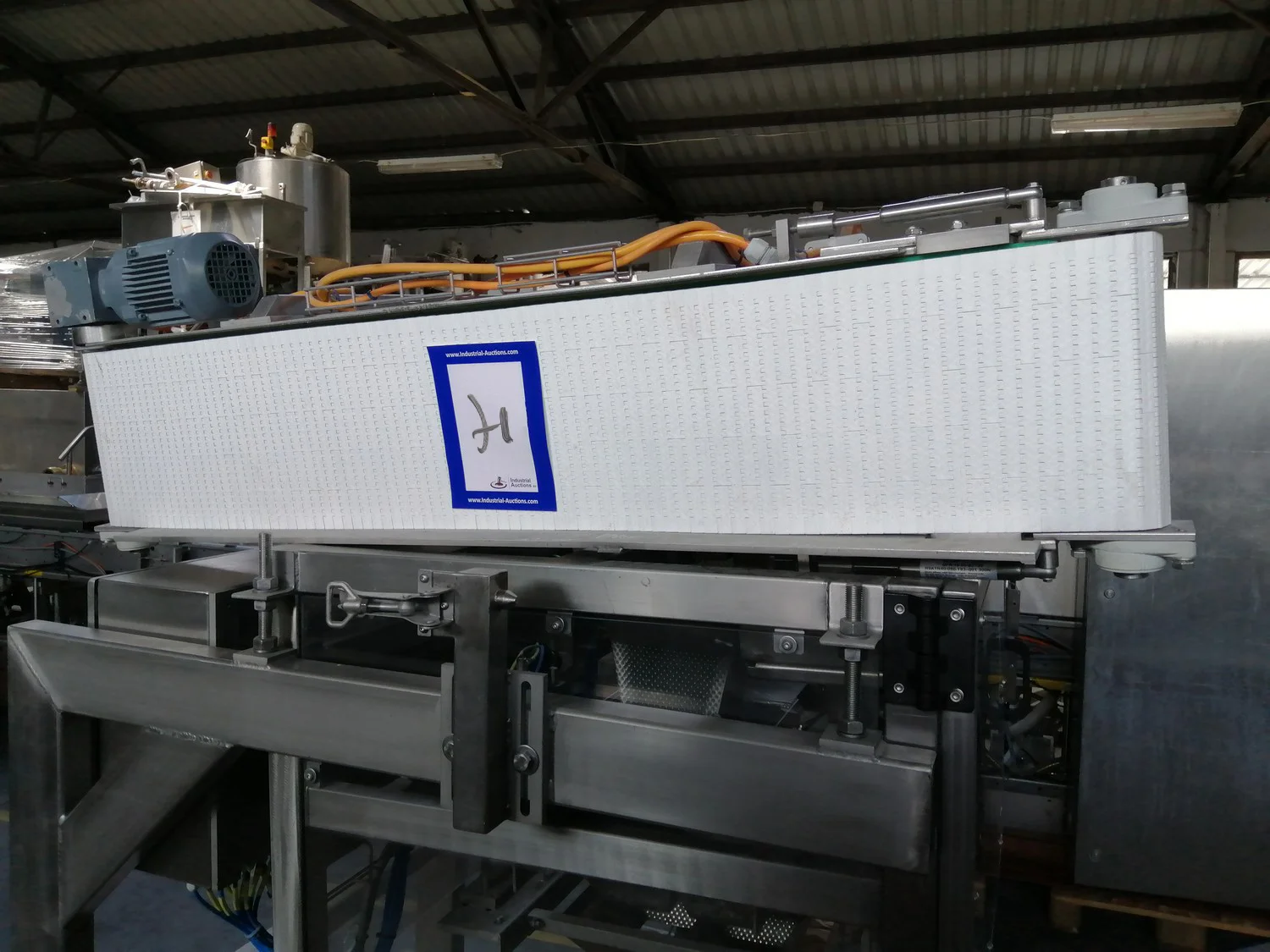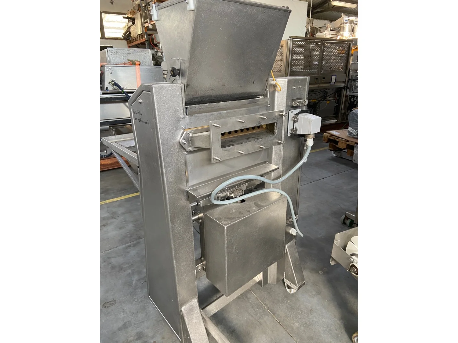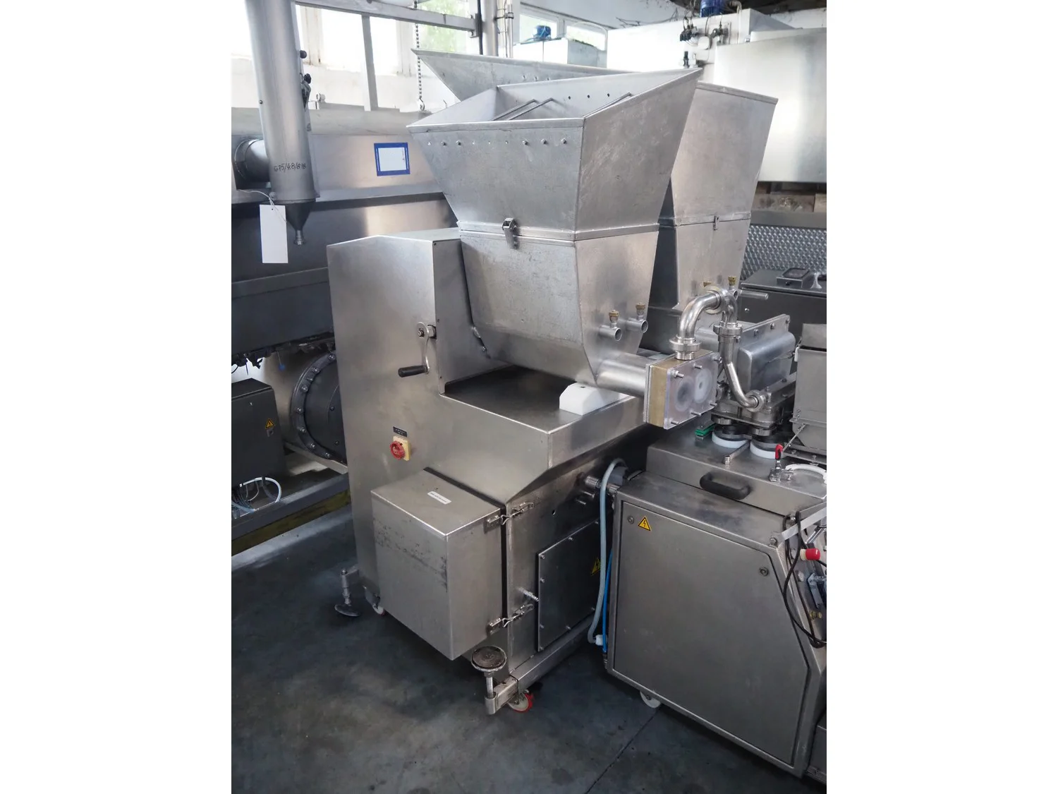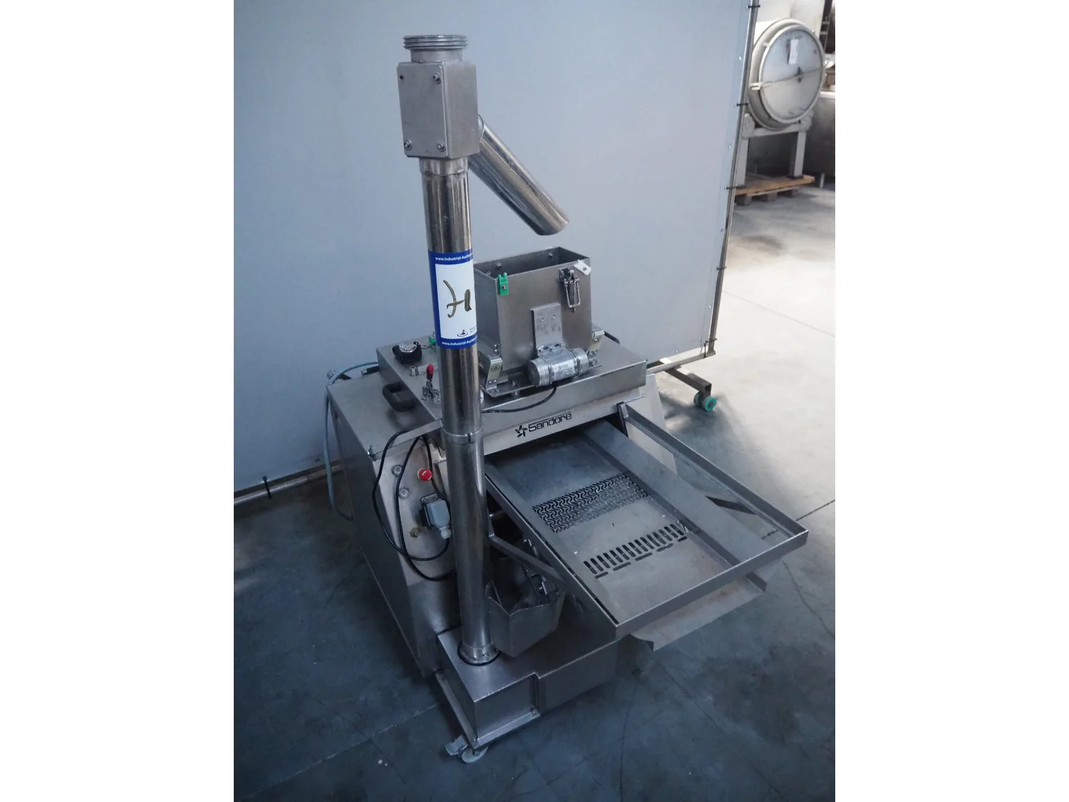 Complete gnocchi line consisting of: Glass mixer, type: VSM/F 600, machine number: 2612, year of construction: 2002, 400 V, 50 Hz, 20.96 A, 9,95 kW, volume 600 liter, dimensions: 2450 mm x 1650 mm x 2000 mm; M.P. TEC. srl lifter for 200 liter meat bins, model: MCL 200, serial number: 22070072, year of construction: 2007, 400 V, 3 Ph, 50 Hz, capacity: 200 kg, lifting height: 2250 mm, total dimensions: 1150 mm x 810 mm x 3020 mm; Sandore gnocchi forming and filling machine, model NF 100 C, serial number: 2376, year of construction: 2007, 400 V, 3 Ph, 8500 W, dimensions: 1450 mm x 1250 mm x 2030 mm, with outfeed machine for stuffed gnocchi, dimensions 900 mm x 1340 mm x 1720 mm, and outfeed machine for normal gnocchi, 870 mm x 1450 mm x 2030 mm; SARP elevating belt, model: SNZ 600, serial number: IE0.01.G05E, year of construction: 2005, 400 V, 50 Hz, 0.37 kW, plastic belt and dividers, belt width: 480 mm, distance between dividers: 75 mm, divider height: 60 mm, elevating height: 2000 mm, total dimensions: 800 mm x 1350 mm x 2150 mm; SARP vibrating tunnel, model: STR4107, serial number: JG0.01.G05E, year of construction: 2005, 400 V, 50 Hz, 4,7 kW, 7 levels, gutter width: 980 mm, infeed height: 1880 mm , outfeed height: 900 mm, total dimensions: 1900 mm x 5000 mm x 2550 mm; SARP waste and water separator filter, model: FILTRO, serial number: 06122, year of construction: 2006, 400 V, 50 Hz, 2.2 kW, dimensions: 1350 mm x 1250 mm x 3800 mm; Hastamat 10 head multihead weigher, type: CP 2.10/10, machine number: 7110287, year of construction: 1997, 230/400 V, 50 Hz, 1.5 kW, dimensions: 1370 mm x 1370 mm x 1500 mm; Mobile depositor for Tiromat thermoformer, dimensions: 1500 mm x 1250 mm x 1770 mm; Tiromat thermoformer, type: Tiromat Compact M280 2.00, serial number: 788.106.1279, 400 V, 3 Ph, 50 Hz, 23.58 kW, foil width: bottom 280 mm and top 270 mm, dye: 190 mm x 240 mm, Tiromat labeller, type: BL-150, machine number: ETI-422N, total dimensions: 7100 mm x 1000 mm x 2050 mm; Transport belt, s/s frame, plastic belt, belt width: 250 mm, total dimensions: 1500 mm x 500 mm x 750 mm; BeltTrans spiral transport belt, s/s frame, plastic mesh belt, belt width: 300 mm, total dimensions: 2000 mm x 2600 mm x 2300 mm.