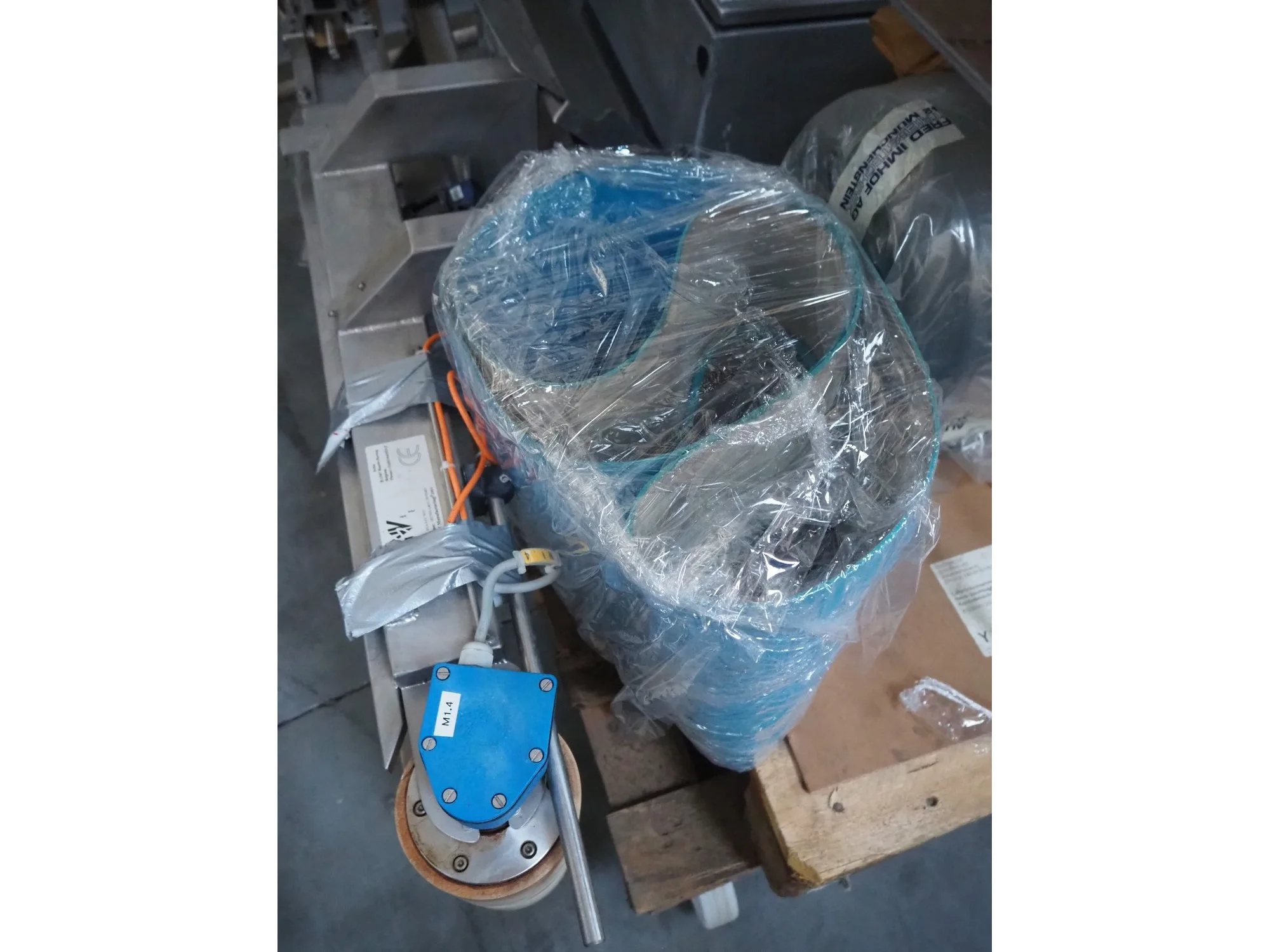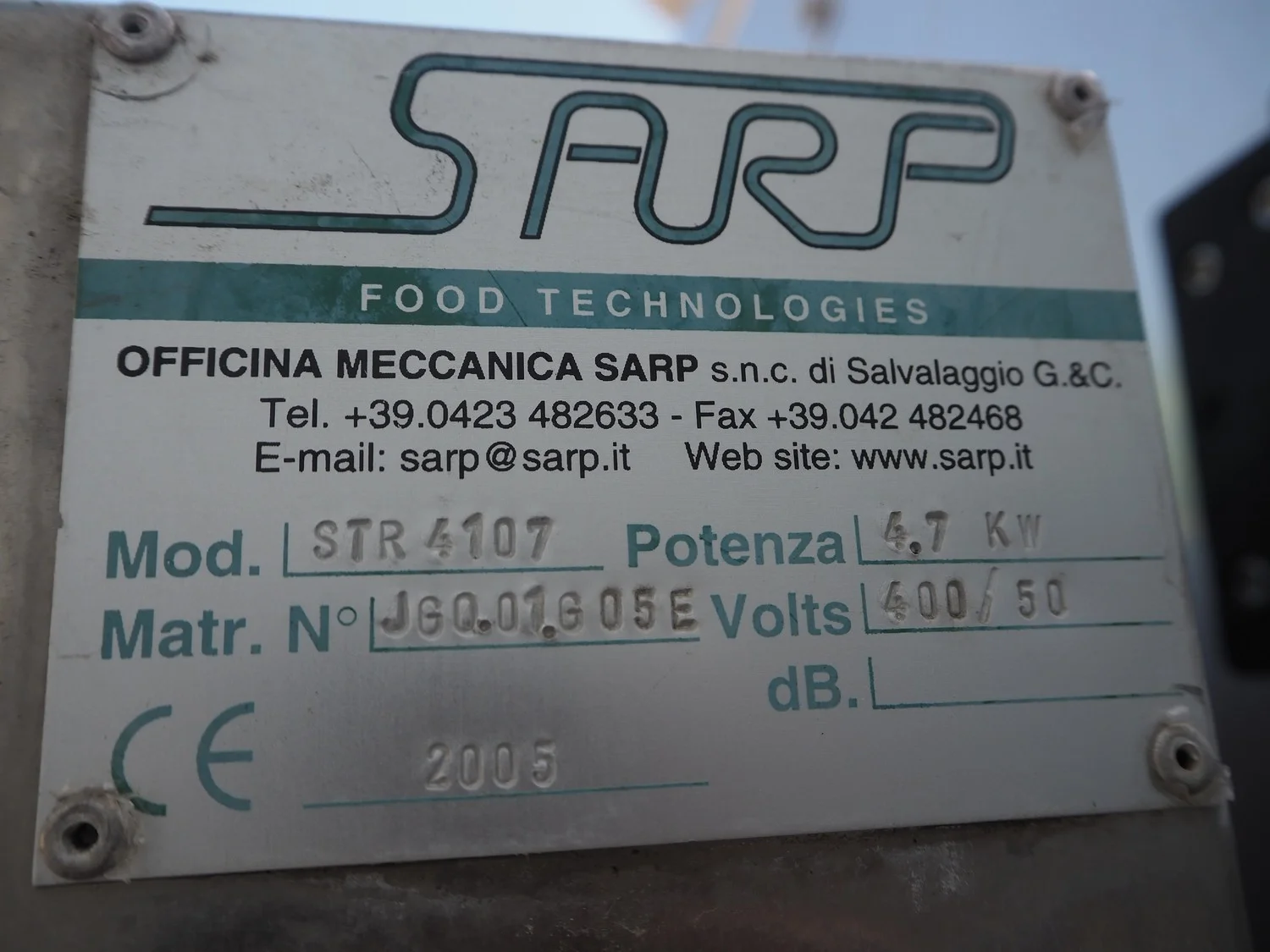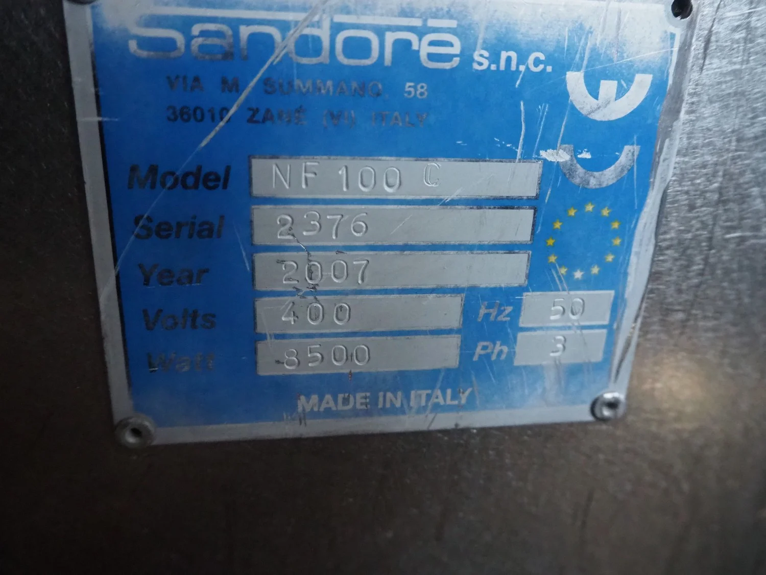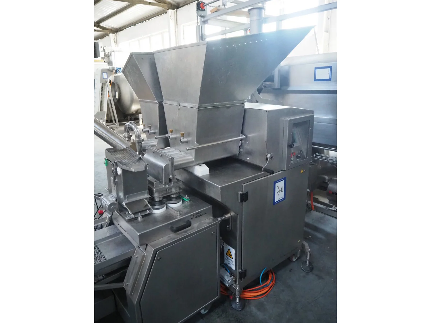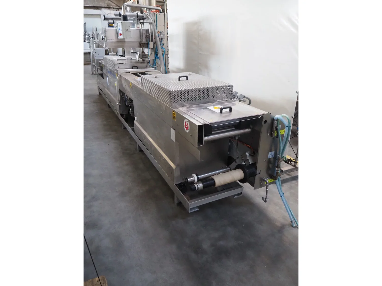 Complete gnocchi line consisting of: Glass mixer, type: VSM/F 600, machine number: 2612, year of construction: 2002, 400 V, 50 Hz, 20.96 A, 9,95 kW, volume 600 liter, dimensions: 2450 mm x 1650 mm x 2000 mm; M.P. TEC. srl lifter for 200 liter meat bins, model: MCL 200, serial number: 22070072, year of construction: 2007, 400 V, 3 Ph, 50 Hz, capacity: 200 kg, lifting height: 2250 mm, total dimensions: 1150 mm x 810 mm x 3020 mm; Sandore gnocchi forming and filling machine, model NF 100 C, serial number: 2376, year of construction: 2007, 400 V, 3 Ph, 8500 W, dimensions: 1450 mm x 1250 mm x 2030 mm, with outfeed machine for stuffed gnocchi, dimensions 900 mm x 1340 mm x 1720 mm, and outfeed machine for normal gnocchi, 870 mm x 1450 mm x 2030 mm; SARP elevating belt, model: SNZ 600, serial number: IE0.01.G05E, year of construction: 2005, 400 V, 50 Hz, 0.37 kW, plastic belt and dividers, belt width: 480 mm, distance between dividers: 75 mm, divider height: 60 mm, elevating height: 2000 mm, total dimensions: 800 mm x 1350 mm x 2150 mm; SARP vibrating tunnel, model: STR4107, serial number: JG0.01.G05E, year of construction: 2005, 400 V, 50 Hz, 4,7 kW, 7 levels, gutter width: 980 mm, infeed height: 1880 mm , outfeed height: 900 mm, total dimensions: 1900 mm x 5000 mm x 2550 mm; SARP waste and water separator filter, model: FILTRO, serial number: 06122, year of construction: 2006, 400 V, 50 Hz, 2.2 kW, dimensions: 1350 mm x 1250 mm x 3800 mm; Hastamat 10 head multihead weigher, type: CP 2.10/10, machine number: 7110287, year of construction: 1997, 230/400 V, 50 Hz, 1.5 kW, dimensions: 1370 mm x 1370 mm x 1500 mm; Mobile depositor for Tiromat thermoformer, dimensions: 1500 mm x 1250 mm x 1770 mm; Tiromat thermoformer, type: Tiromat Compact M280 2.00, serial number: 788.106.1279, 400 V, 3 Ph, 50 Hz, 23.58 kW, foil width: bottom 280 mm and top 270 mm, dye: 190 mm x 240 mm, Tiromat labeller, type: BL-150, machine number: ETI-422N, total dimensions: 7100 mm x 1000 mm x 2050 mm; Transport belt, s/s frame, plastic belt, belt width: 250 mm, total dimensions: 1500 mm x 500 mm x 750 mm; BeltTrans spiral transport belt, s/s frame, plastic mesh belt, belt width: 300 mm, total dimensions: 2000 mm x 2600 mm x 2300 mm.