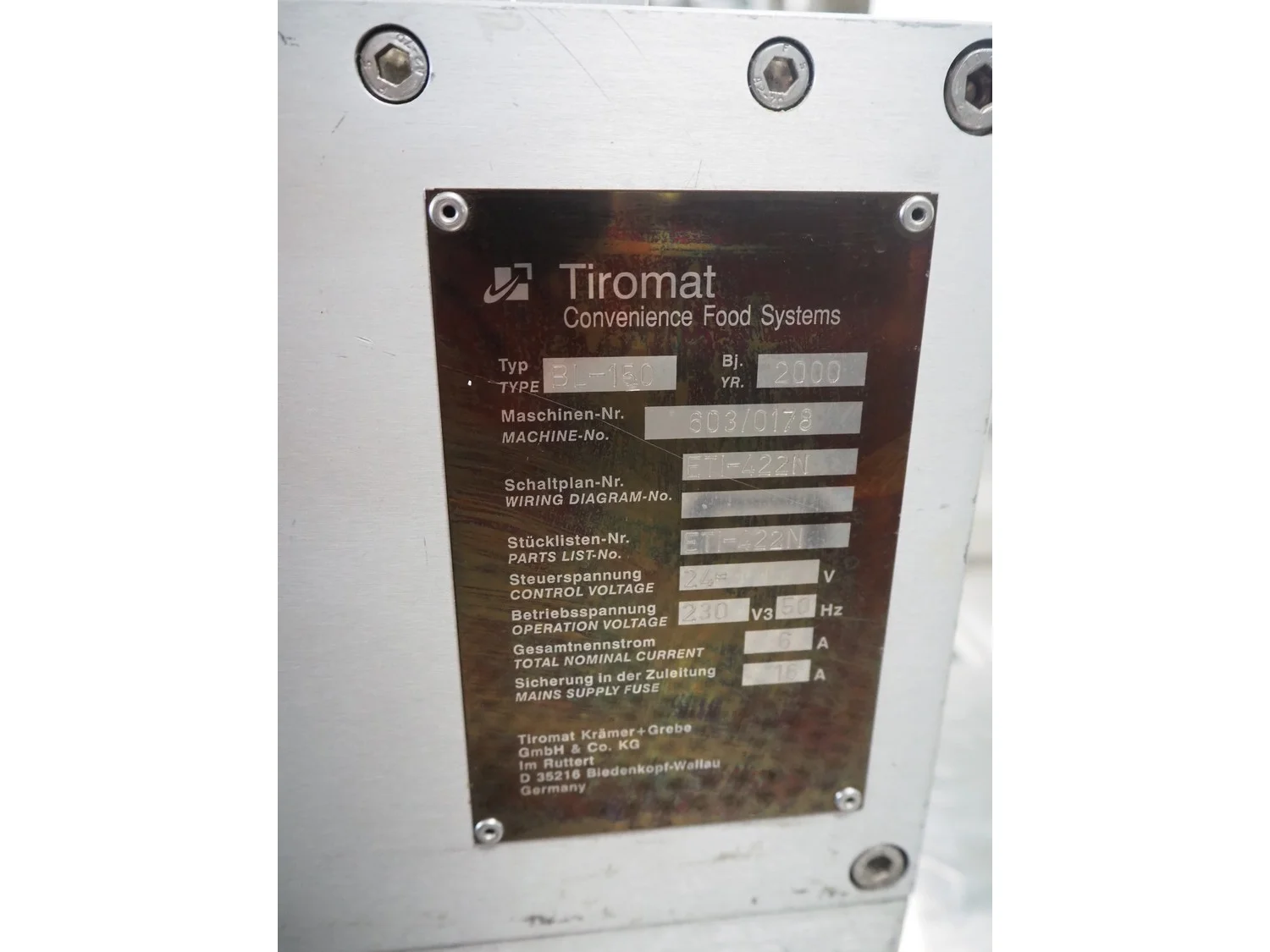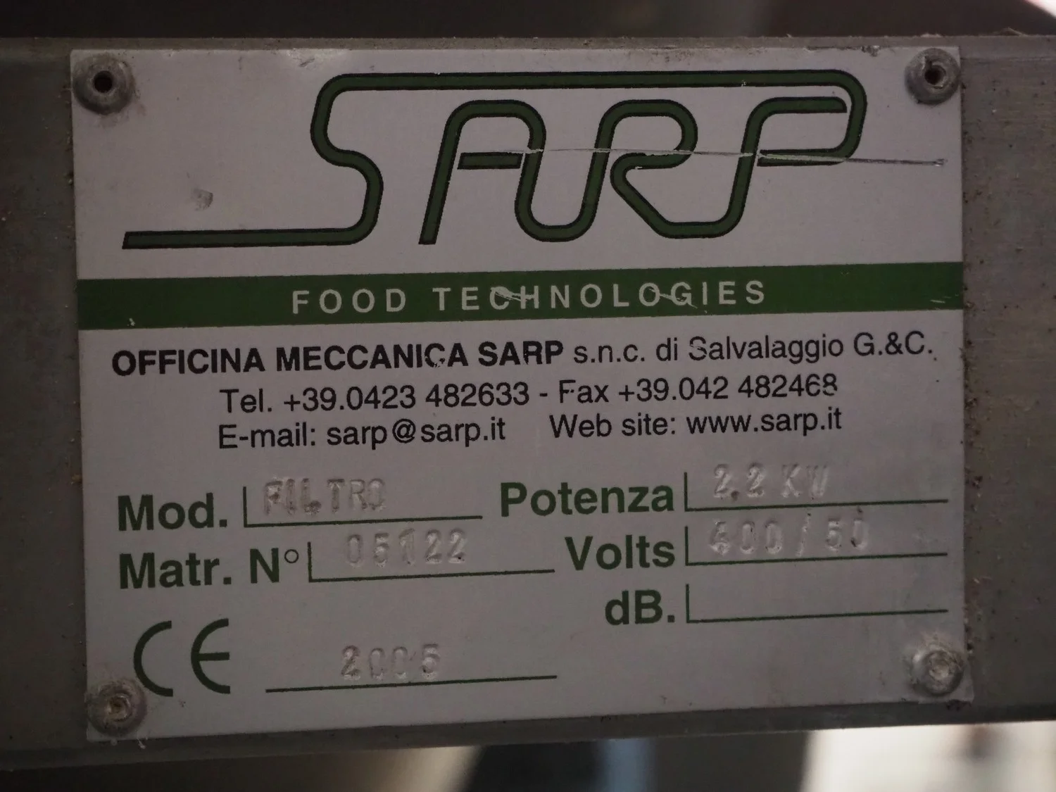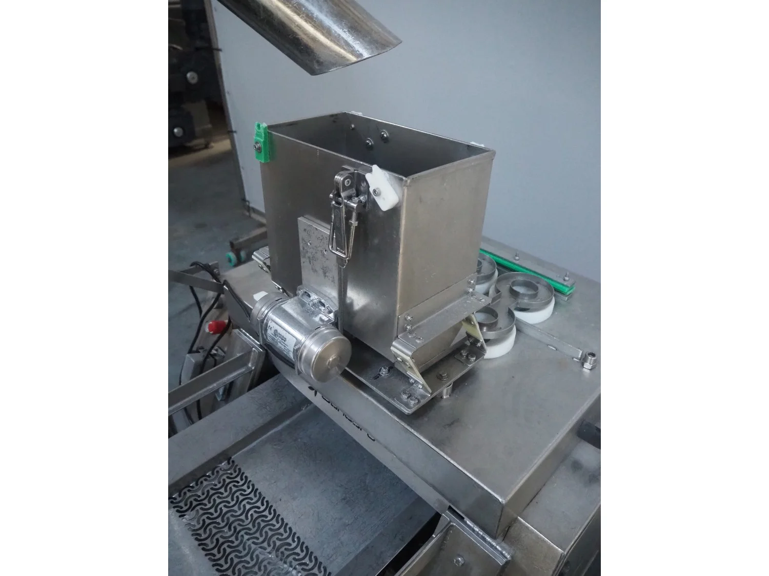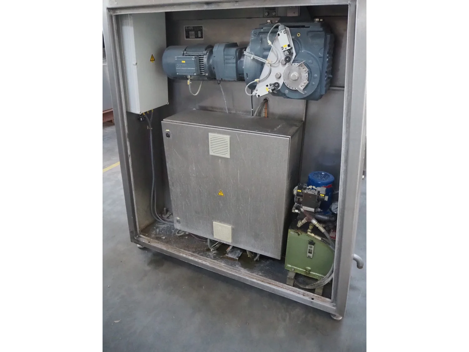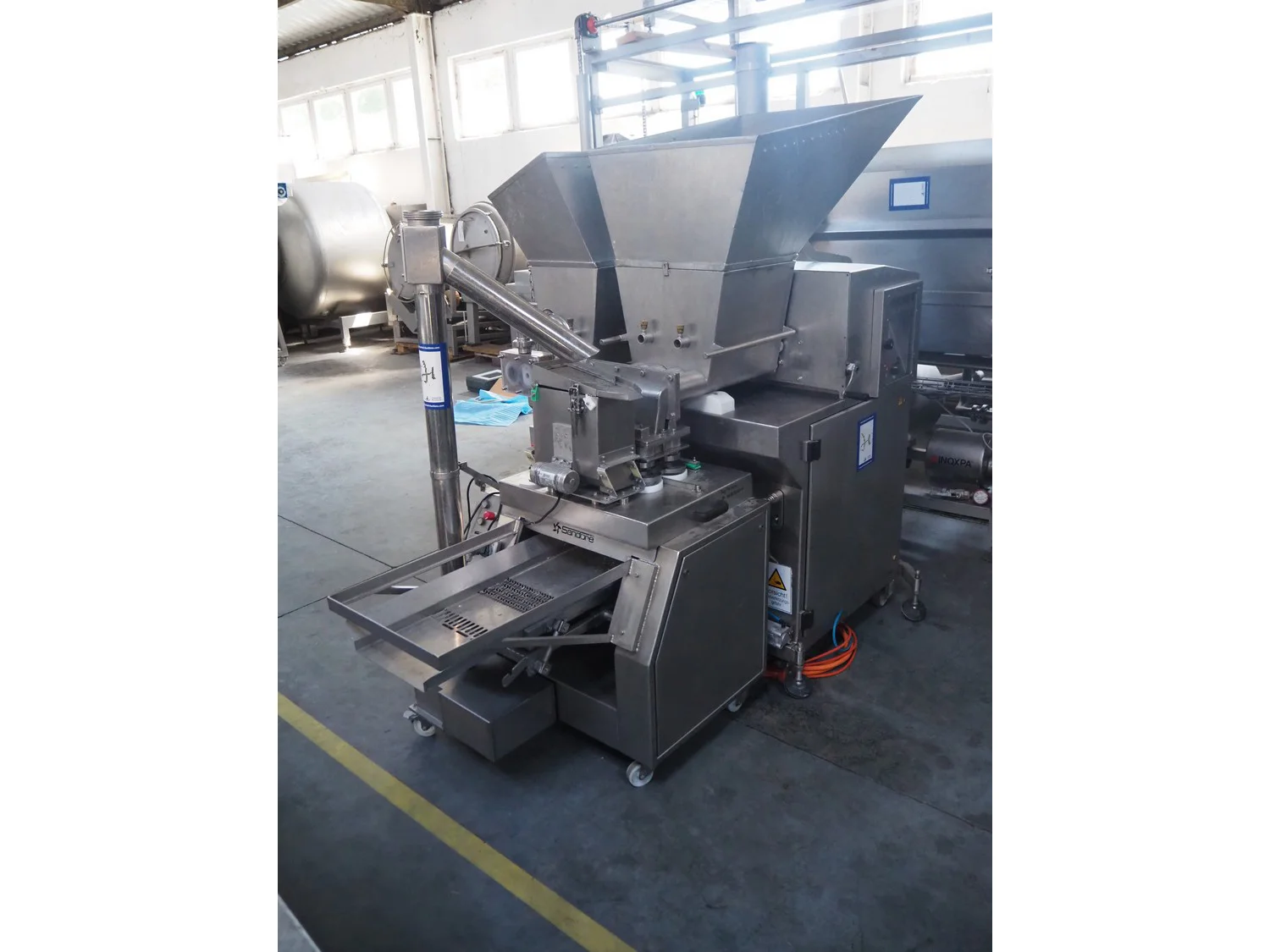 Complete gnocchi line consisting of: Glass mixer, type: VSM/F 600, machine number: 2612, year of construction: 2002, 400 V, 50 Hz, 20.96 A, 9,95 kW, volume 600 liter, dimensions: 2450 mm x 1650 mm x 2000 mm; M.P. TEC. srl lifter for 200 liter meat bins, model: MCL 200, serial number: 22070072, year of construction: 2007, 400 V, 3 Ph, 50 Hz, capacity: 200 kg, lifting height: 2250 mm, total dimensions: 1150 mm x 810 mm x 3020 mm; Sandore gnocchi forming and filling machine, model NF 100 C, serial number: 2376, year of construction: 2007, 400 V, 3 Ph, 8500 W, dimensions: 1450 mm x 1250 mm x 2030 mm, with outfeed machine for stuffed gnocchi, dimensions 900 mm x 1340 mm x 1720 mm, and outfeed machine for normal gnocchi, 870 mm x 1450 mm x 2030 mm; SARP elevating belt, model: SNZ 600, serial number: IE0.01.G05E, year of construction: 2005, 400 V, 50 Hz, 0.37 kW, plastic belt and dividers, belt width: 480 mm, distance between dividers: 75 mm, divider height: 60 mm, elevating height: 2000 mm, total dimensions: 800 mm x 1350 mm x 2150 mm; SARP vibrating tunnel, model: STR4107, serial number: JG0.01.G05E, year of construction: 2005, 400 V, 50 Hz, 4,7 kW, 7 levels, gutter width: 980 mm, infeed height: 1880 mm , outfeed height: 900 mm, total dimensions: 1900 mm x 5000 mm x 2550 mm; SARP waste and water separator filter, model: FILTRO, serial number: 06122, year of construction: 2006, 400 V, 50 Hz, 2.2 kW, dimensions: 1350 mm x 1250 mm x 3800 mm; Hastamat 10 head multihead weigher, type: CP 2.10/10, machine number: 7110287, year of construction: 1997, 230/400 V, 50 Hz, 1.5 kW, dimensions: 1370 mm x 1370 mm x 1500 mm; Mobile depositor for Tiromat thermoformer, dimensions: 1500 mm x 1250 mm x 1770 mm; Tiromat thermoformer, type: Tiromat Compact M280 2.00, serial number: 788.106.1279, 400 V, 3 Ph, 50 Hz, 23.58 kW, foil width: bottom 280 mm and top 270 mm, dye: 190 mm x 240 mm, Tiromat labeller, type: BL-150, machine number: ETI-422N, total dimensions: 7100 mm x 1000 mm x 2050 mm; Transport belt, s/s frame, plastic belt, belt width: 250 mm, total dimensions: 1500 mm x 500 mm x 750 mm; BeltTrans spiral transport belt, s/s frame, plastic mesh belt, belt width: 300 mm, total dimensions: 2000 mm x 2600 mm x 2300 mm.
