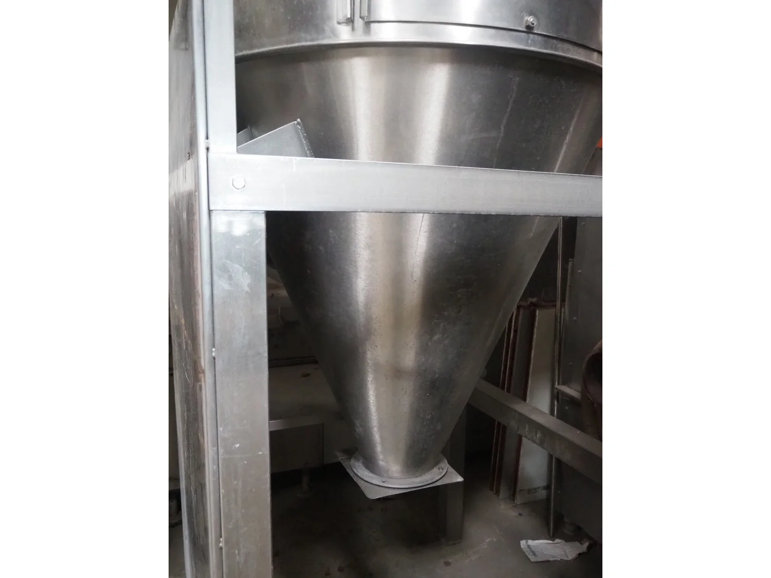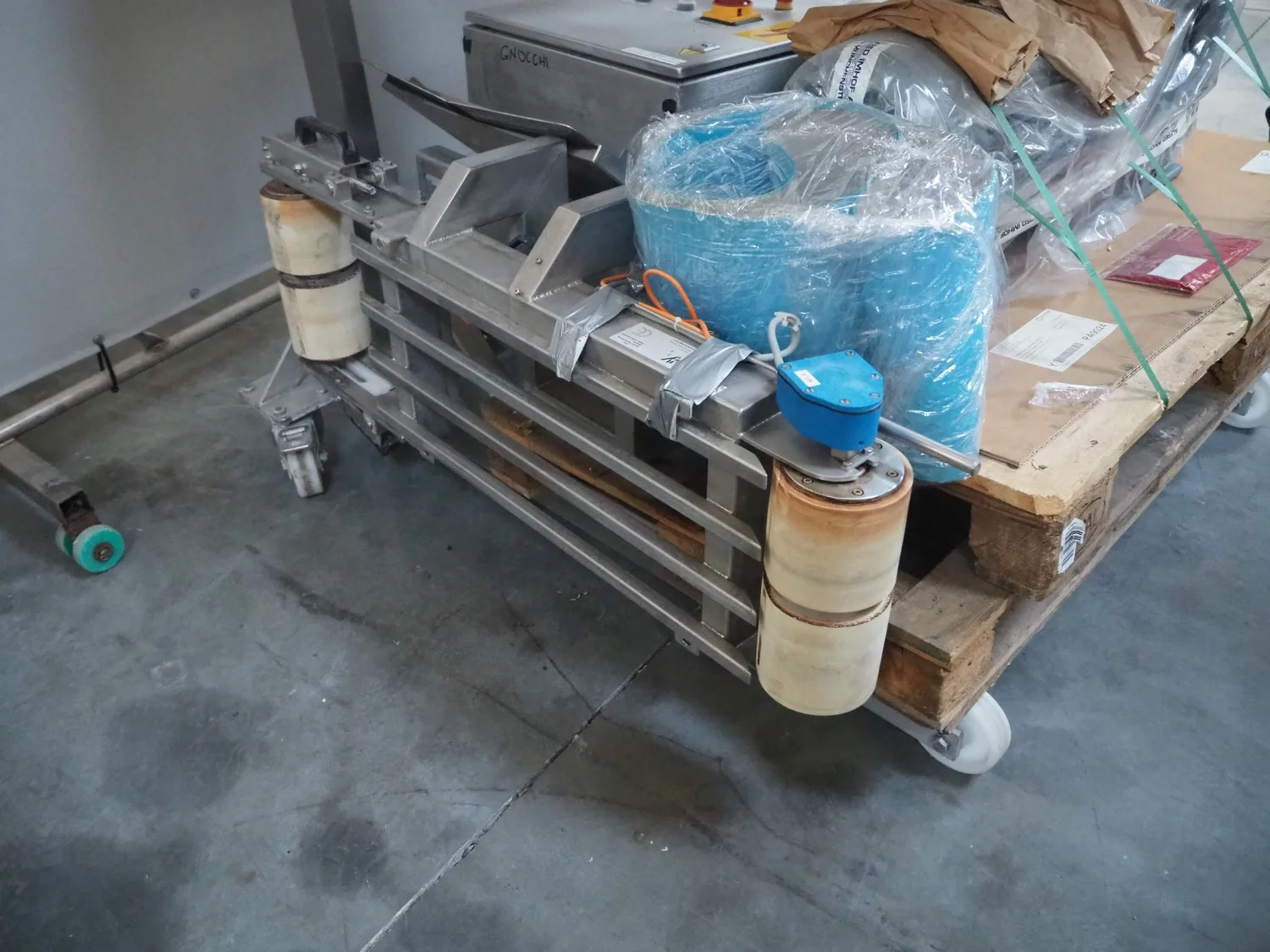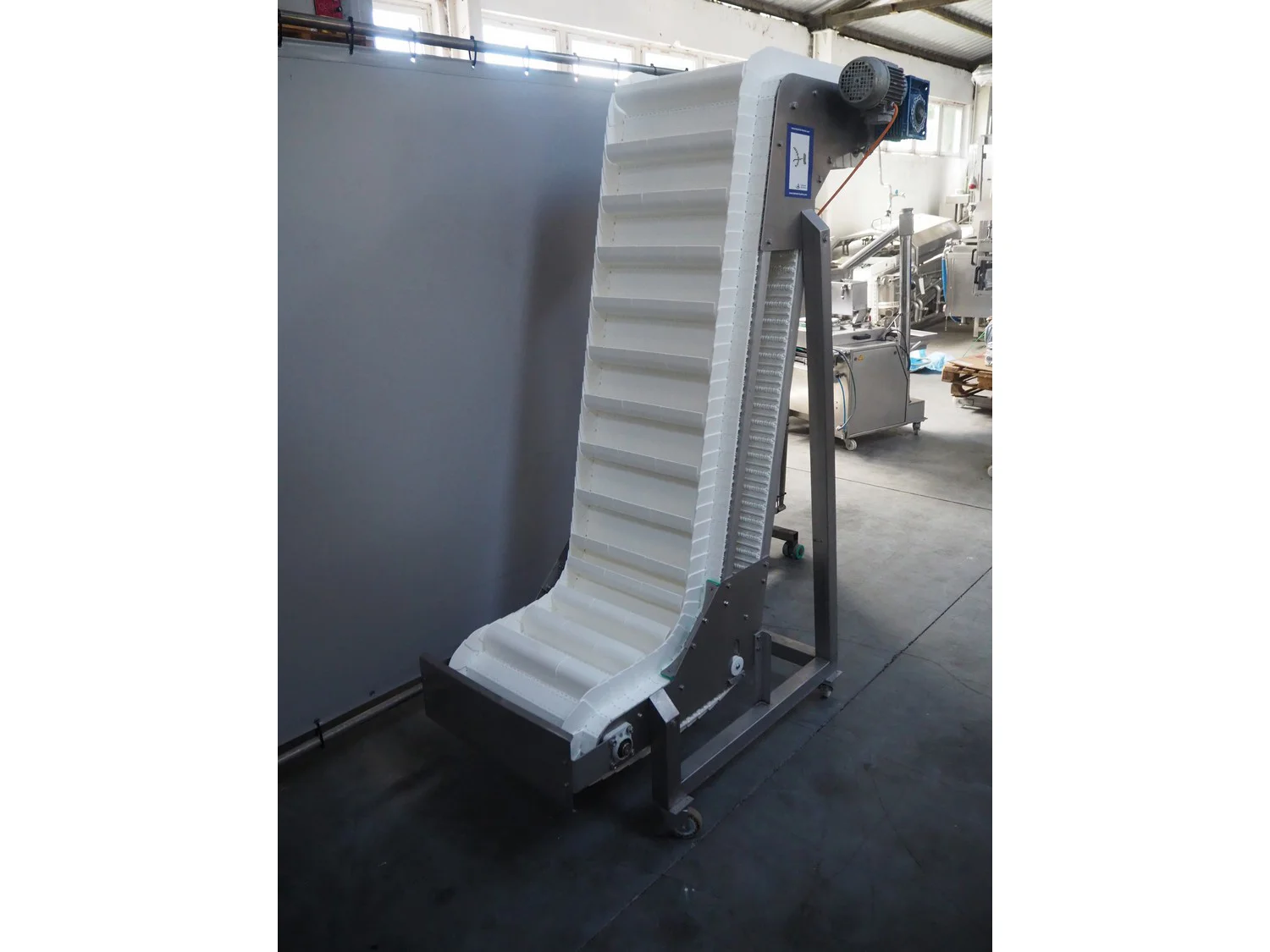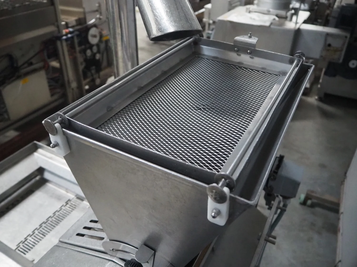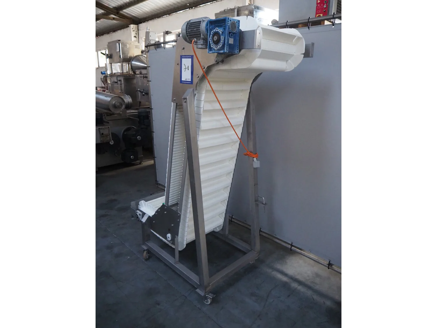 Complete gnocchi line consisting of: Glass mixer, type: VSM/F 600, machine number: 2612, year of construction: 2002, 400 V, 50 Hz, 20.96 A, 9,95 kW, volume 600 liter, dimensions: 2450 mm x 1650 mm x 2000 mm; M.P. TEC. srl lifter for 200 liter meat bins, model: MCL 200, serial number: 22070072, year of construction: 2007, 400 V, 3 Ph, 50 Hz, capacity: 200 kg, lifting height: 2250 mm, total dimensions: 1150 mm x 810 mm x 3020 mm; Sandore gnocchi forming and filling machine, model NF 100 C, serial number: 2376, year of construction: 2007, 400 V, 3 Ph, 8500 W, dimensions: 1450 mm x 1250 mm x 2030 mm, with outfeed machine for stuffed gnocchi, dimensions 900 mm x 1340 mm x 1720 mm, and outfeed machine for normal gnocchi, 870 mm x 1450 mm x 2030 mm; SARP elevating belt, model: SNZ 600, serial number: IE0.01.G05E, year of construction: 2005, 400 V, 50 Hz, 0.37 kW, plastic belt and dividers, belt width: 480 mm, distance between dividers: 75 mm, divider height: 60 mm, elevating height: 2000 mm, total dimensions: 800 mm x 1350 mm x 2150 mm; SARP vibrating tunnel, model: STR4107, serial number: JG0.01.G05E, year of construction: 2005, 400 V, 50 Hz, 4,7 kW, 7 levels, gutter width: 980 mm, infeed height: 1880 mm , outfeed height: 900 mm, total dimensions: 1900 mm x 5000 mm x 2550 mm; SARP waste and water separator filter, model: FILTRO, serial number: 06122, year of construction: 2006, 400 V, 50 Hz, 2.2 kW, dimensions: 1350 mm x 1250 mm x 3800 mm; Hastamat 10 head multihead weigher, type: CP 2.10/10, machine number: 7110287, year of construction: 1997, 230/400 V, 50 Hz, 1.5 kW, dimensions: 1370 mm x 1370 mm x 1500 mm; Mobile depositor for Tiromat thermoformer, dimensions: 1500 mm x 1250 mm x 1770 mm; Tiromat thermoformer, type: Tiromat Compact M280 2.00, serial number: 788.106.1279, 400 V, 3 Ph, 50 Hz, 23.58 kW, foil width: bottom 280 mm and top 270 mm, dye: 190 mm x 240 mm, Tiromat labeller, type: BL-150, machine number: ETI-422N, total dimensions: 7100 mm x 1000 mm x 2050 mm; Transport belt, s/s frame, plastic belt, belt width: 250 mm, total dimensions: 1500 mm x 500 mm x 750 mm; BeltTrans spiral transport belt, s/s frame, plastic mesh belt, belt width: 300 mm, total dimensions: 2000 mm x 2600 mm x 2300 mm.