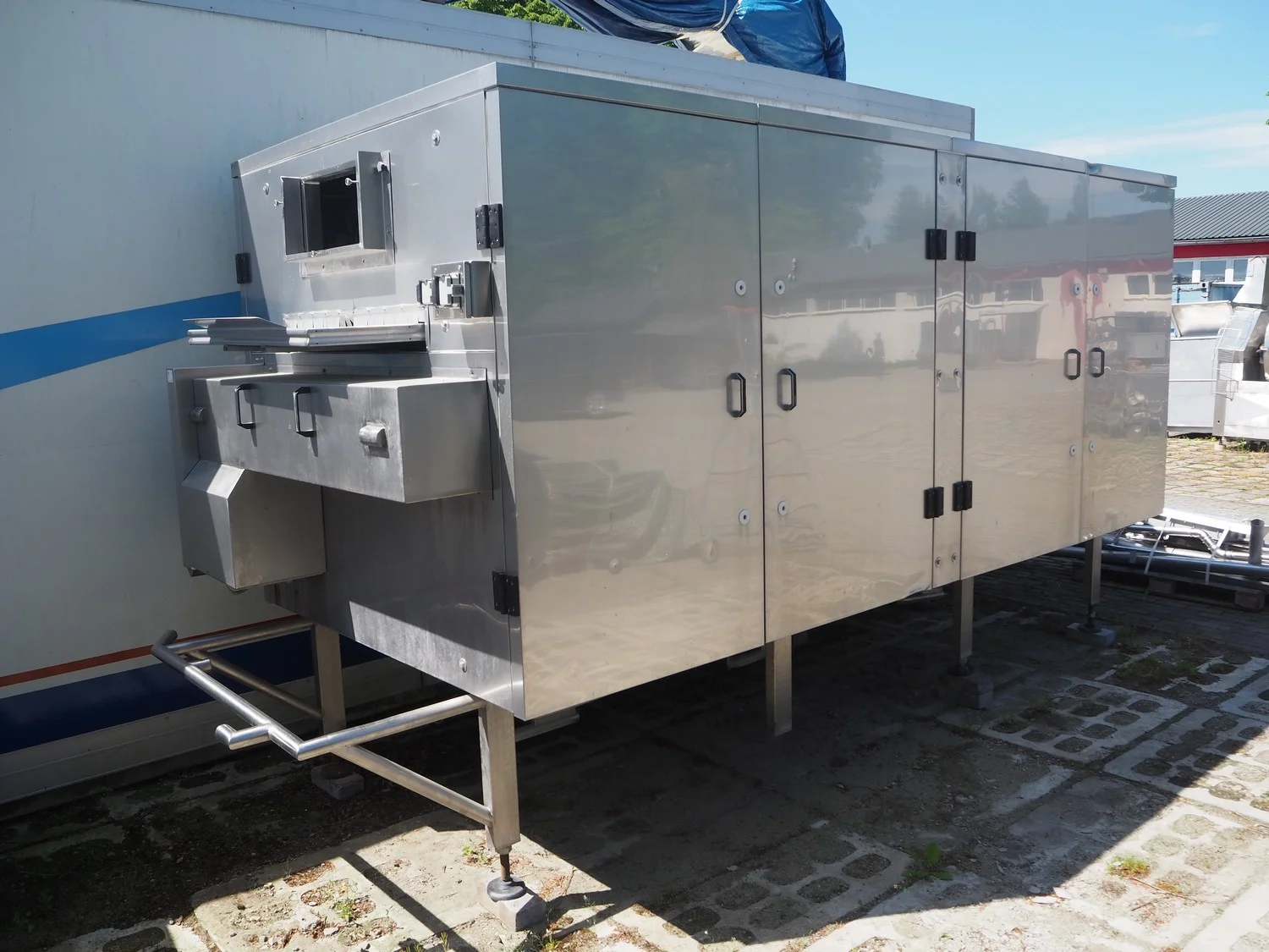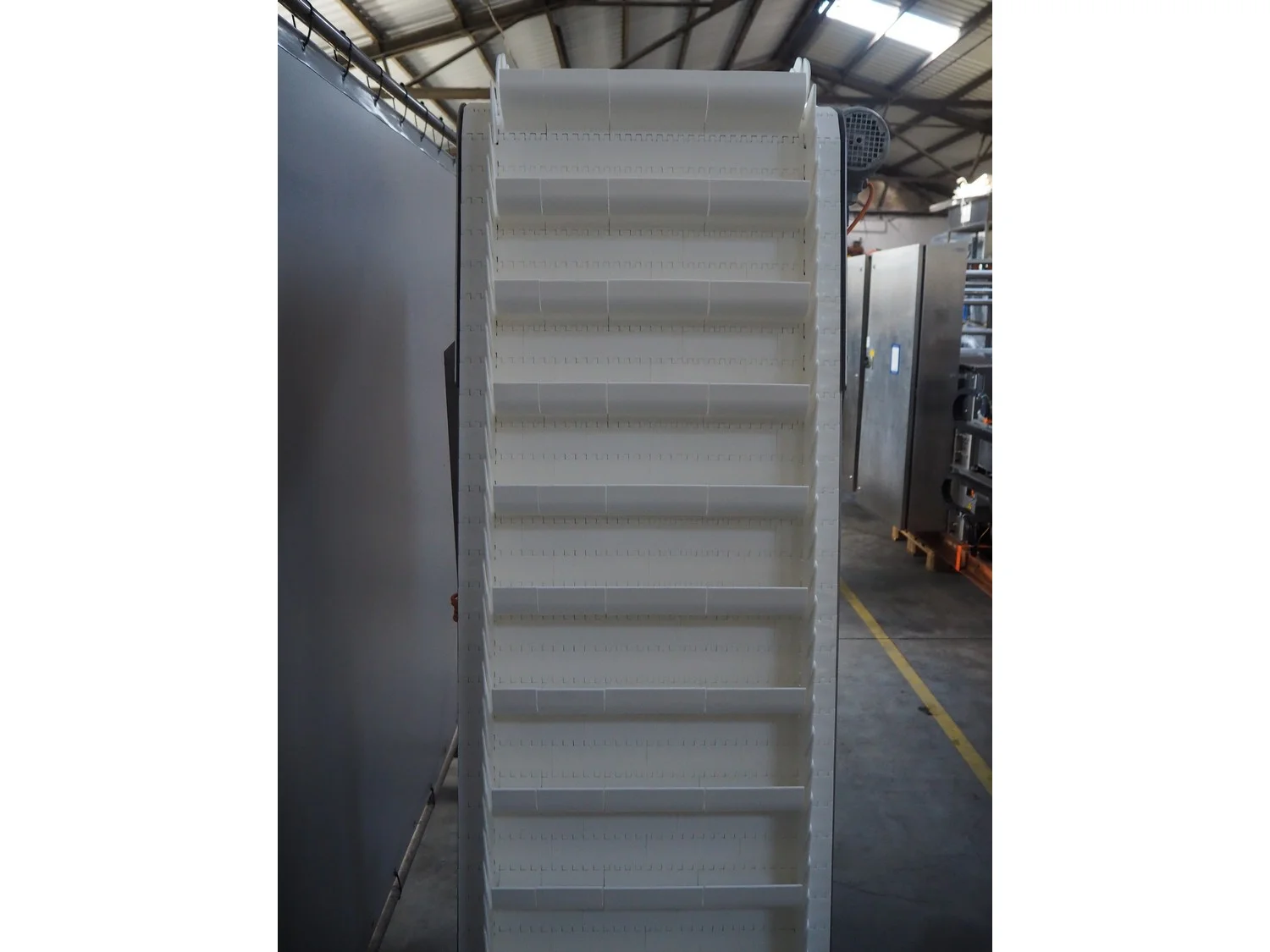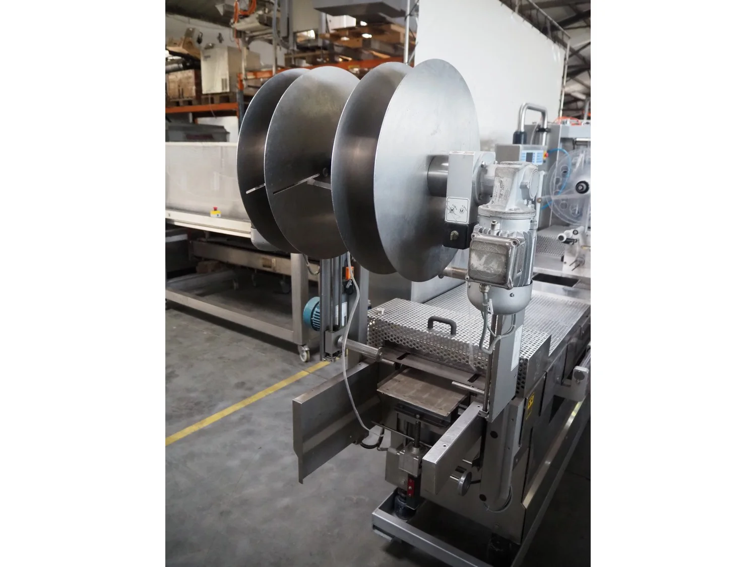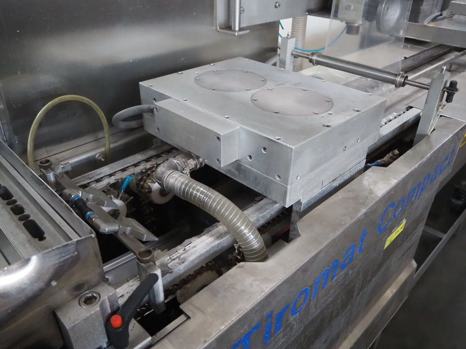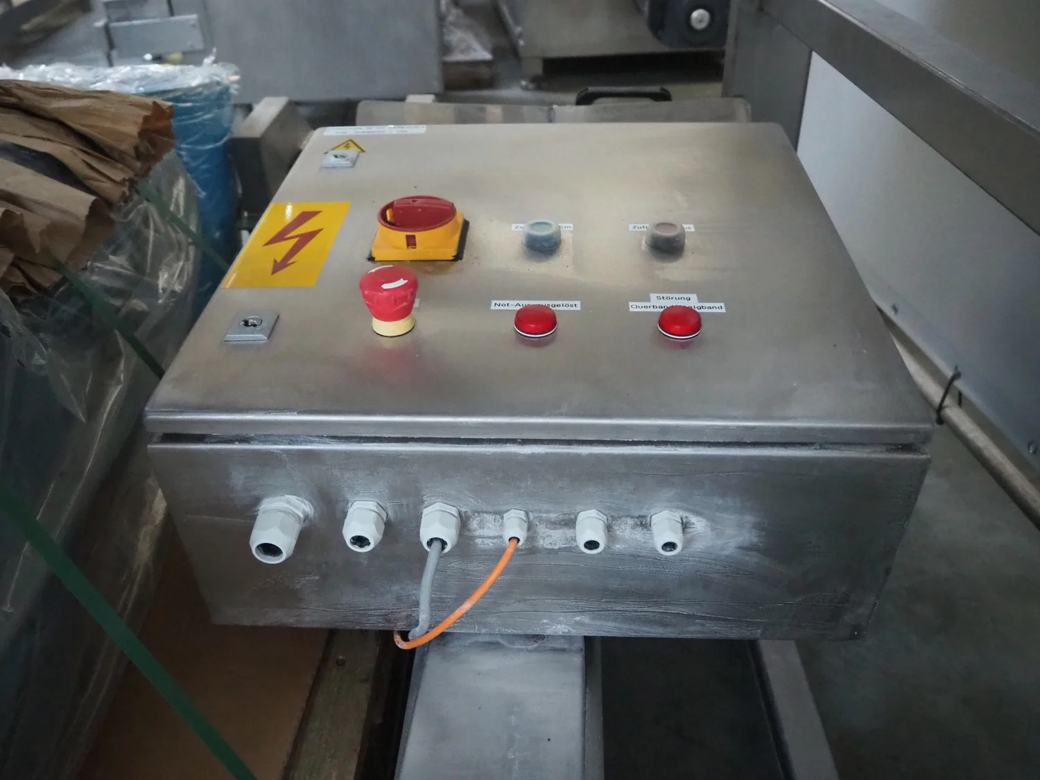 Complete gnocchi line consisting of: Glass mixer, type: VSM/F 600, machine number: 2612, year of construction: 2002, 400 V, 50 Hz, 20.96 A, 9,95 kW, volume 600 liter, dimensions: 2450 mm x 1650 mm x 2000 mm; M.P. TEC. srl lifter for 200 liter meat bins, model: MCL 200, serial number: 22070072, year of construction: 2007, 400 V, 3 Ph, 50 Hz, capacity: 200 kg, lifting height: 2250 mm, total dimensions: 1150 mm x 810 mm x 3020 mm; Sandore gnocchi forming and filling machine, model NF 100 C, serial number: 2376, year of construction: 2007, 400 V, 3 Ph, 8500 W, dimensions: 1450 mm x 1250 mm x 2030 mm, with outfeed machine for stuffed gnocchi, dimensions 900 mm x 1340 mm x 1720 mm, and outfeed machine for normal gnocchi, 870 mm x 1450 mm x 2030 mm; SARP elevating belt, model: SNZ 600, serial number: IE0.01.G05E, year of construction: 2005, 400 V, 50 Hz, 0.37 kW, plastic belt and dividers, belt width: 480 mm, distance between dividers: 75 mm, divider height: 60 mm, elevating height: 2000 mm, total dimensions: 800 mm x 1350 mm x 2150 mm; SARP vibrating tunnel, model: STR4107, serial number: JG0.01.G05E, year of construction: 2005, 400 V, 50 Hz, 4,7 kW, 7 levels, gutter width: 980 mm, infeed height: 1880 mm , outfeed height: 900 mm, total dimensions: 1900 mm x 5000 mm x 2550 mm; SARP waste and water separator filter, model: FILTRO, serial number: 06122, year of construction: 2006, 400 V, 50 Hz, 2.2 kW, dimensions: 1350 mm x 1250 mm x 3800 mm; Hastamat 10 head multihead weigher, type: CP 2.10/10, machine number: 7110287, year of construction: 1997, 230/400 V, 50 Hz, 1.5 kW, dimensions: 1370 mm x 1370 mm x 1500 mm; Mobile depositor for Tiromat thermoformer, dimensions: 1500 mm x 1250 mm x 1770 mm; Tiromat thermoformer, type: Tiromat Compact M280 2.00, serial number: 788.106.1279, 400 V, 3 Ph, 50 Hz, 23.58 kW, foil width: bottom 280 mm and top 270 mm, dye: 190 mm x 240 mm, Tiromat labeller, type: BL-150, machine number: ETI-422N, total dimensions: 7100 mm x 1000 mm x 2050 mm; Transport belt, s/s frame, plastic belt, belt width: 250 mm, total dimensions: 1500 mm x 500 mm x 750 mm; BeltTrans spiral transport belt, s/s frame, plastic mesh belt, belt width: 300 mm, total dimensions: 2000 mm x 2600 mm x 2300 mm.