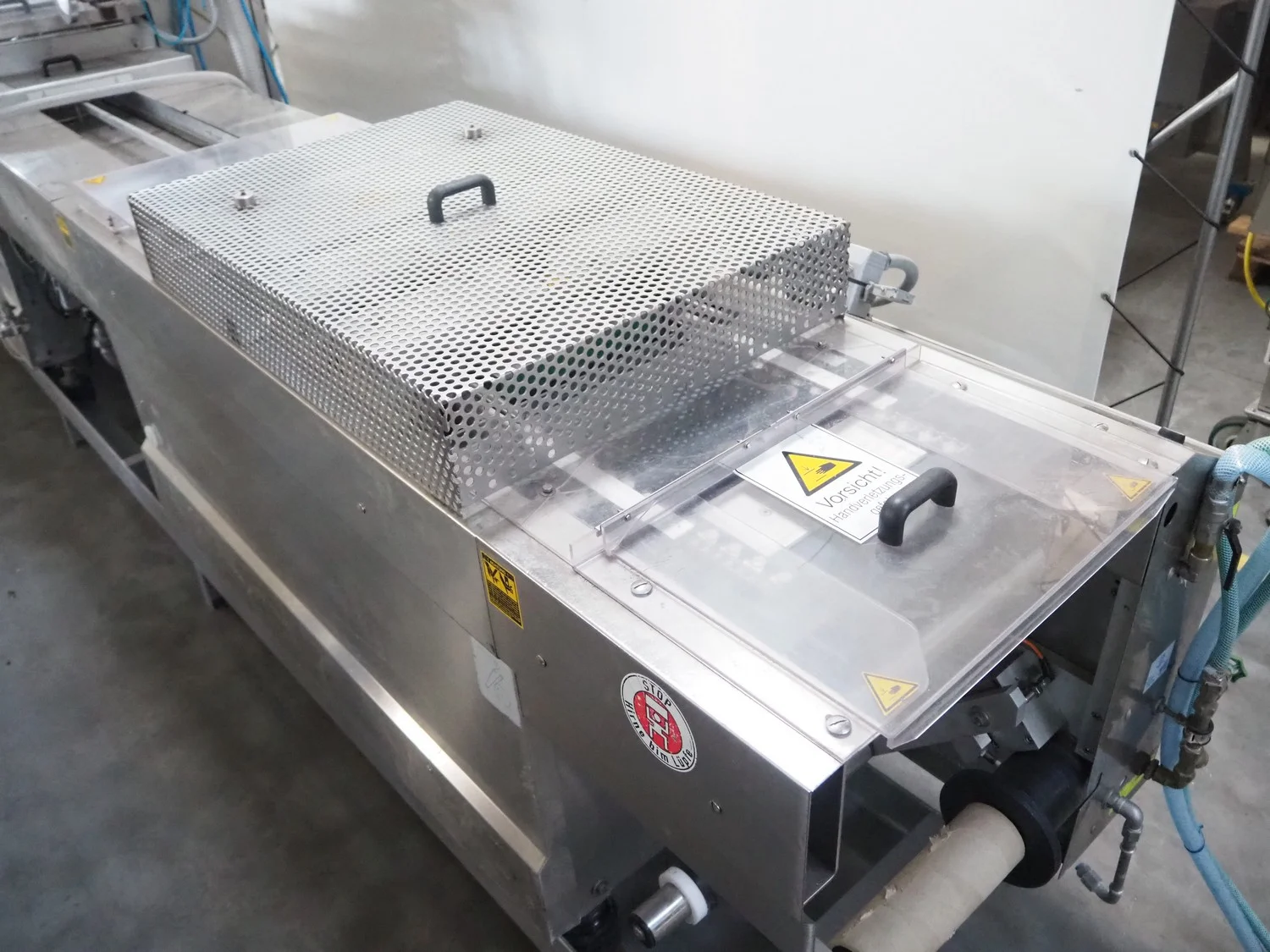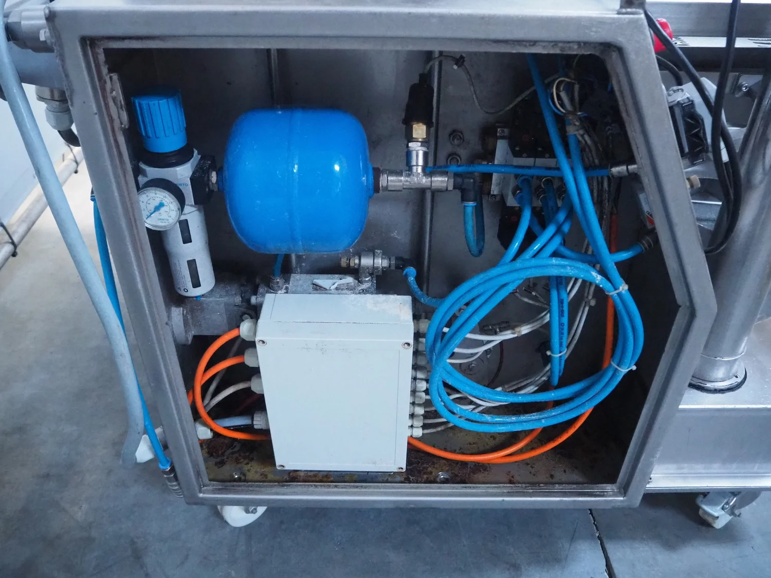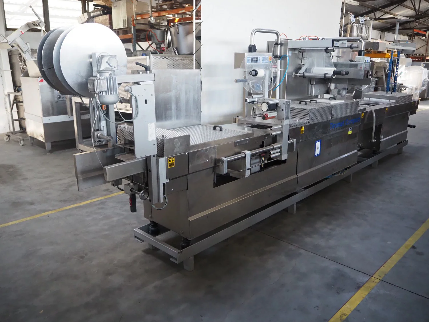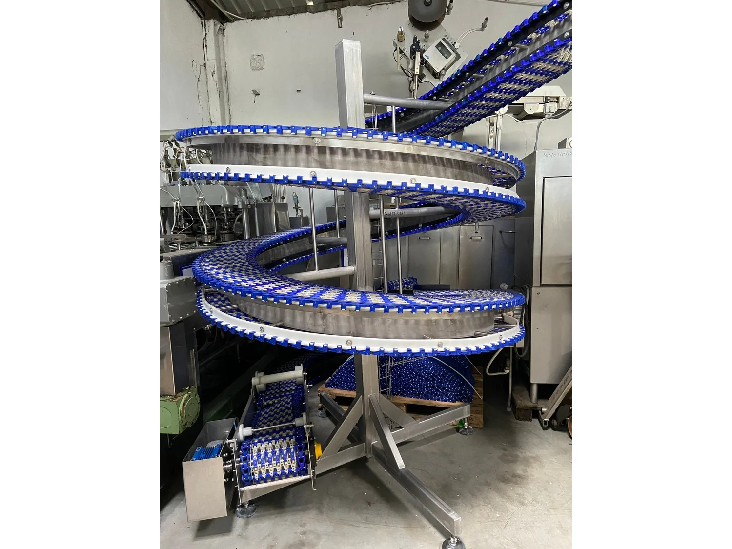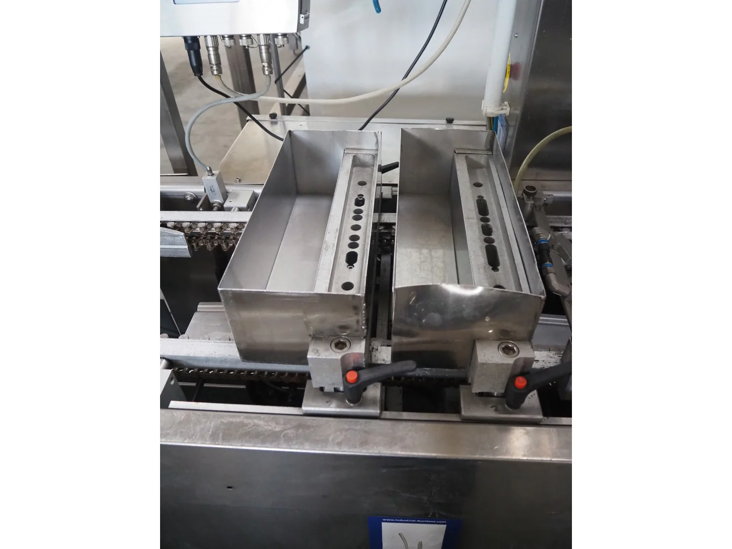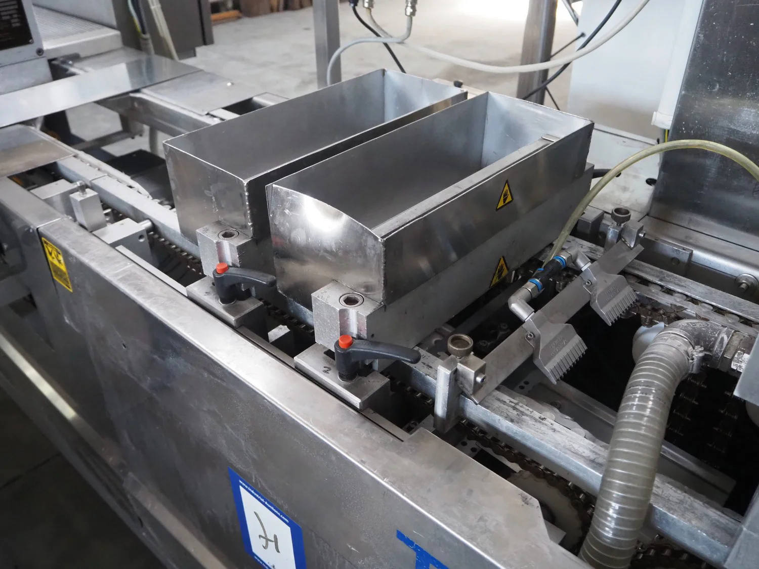 Complete gnocchi line consisting of: Glass mixer, type: VSM/F 600, machine number: 2612, year of construction: 2002, 400 V, 50 Hz, 20.96 A, 9,95 kW, volume 600 liter, dimensions: 2450 mm x 1650 mm x 2000 mm; M.P. TEC. srl lifter for 200 liter meat bins, model: MCL 200, serial number: 22070072, year of construction: 2007, 400 V, 3 Ph, 50 Hz, capacity: 200 kg, lifting height: 2250 mm, total dimensions: 1150 mm x 810 mm x 3020 mm; Sandore gnocchi forming and filling machine, model NF 100 C, serial number: 2376, year of construction: 2007, 400 V, 3 Ph, 8500 W, dimensions: 1450 mm x 1250 mm x 2030 mm, with outfeed machine for stuffed gnocchi, dimensions 900 mm x 1340 mm x 1720 mm, and outfeed machine for normal gnocchi, 870 mm x 1450 mm x 2030 mm; SARP elevating belt, model: SNZ 600, serial number: IE0.01.G05E, year of construction: 2005, 400 V, 50 Hz, 0.37 kW, plastic belt and dividers, belt width: 480 mm, distance between dividers: 75 mm, divider height: 60 mm, elevating height: 2000 mm, total dimensions: 800 mm x 1350 mm x 2150 mm; SARP vibrating tunnel, model: STR4107, serial number: JG0.01.G05E, year of construction: 2005, 400 V, 50 Hz, 4,7 kW, 7 levels, gutter width: 980 mm, infeed height: 1880 mm , outfeed height: 900 mm, total dimensions: 1900 mm x 5000 mm x 2550 mm; SARP waste and water separator filter, model: FILTRO, serial number: 06122, year of construction: 2006, 400 V, 50 Hz, 2.2 kW, dimensions: 1350 mm x 1250 mm x 3800 mm; Hastamat 10 head multihead weigher, type: CP 2.10/10, machine number: 7110287, year of construction: 1997, 230/400 V, 50 Hz, 1.5 kW, dimensions: 1370 mm x 1370 mm x 1500 mm; Mobile depositor for Tiromat thermoformer, dimensions: 1500 mm x 1250 mm x 1770 mm; Tiromat thermoformer, type: Tiromat Compact M280 2.00, serial number: 788.106.1279, 400 V, 3 Ph, 50 Hz, 23.58 kW, foil width: bottom 280 mm and top 270 mm, dye: 190 mm x 240 mm, Tiromat labeller, type: BL-150, machine number: ETI-422N, total dimensions: 7100 mm x 1000 mm x 2050 mm; Transport belt, s/s frame, plastic belt, belt width: 250 mm, total dimensions: 1500 mm x 500 mm x 750 mm; BeltTrans spiral transport belt, s/s frame, plastic mesh belt, belt width: 300 mm, total dimensions: 2000 mm x 2600 mm x 2300 mm.