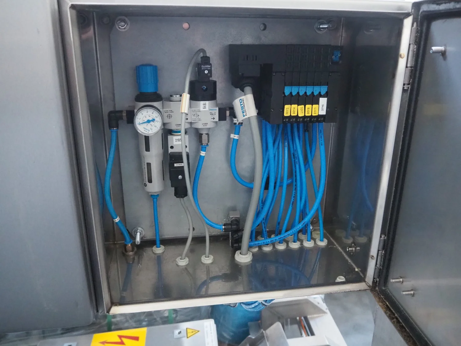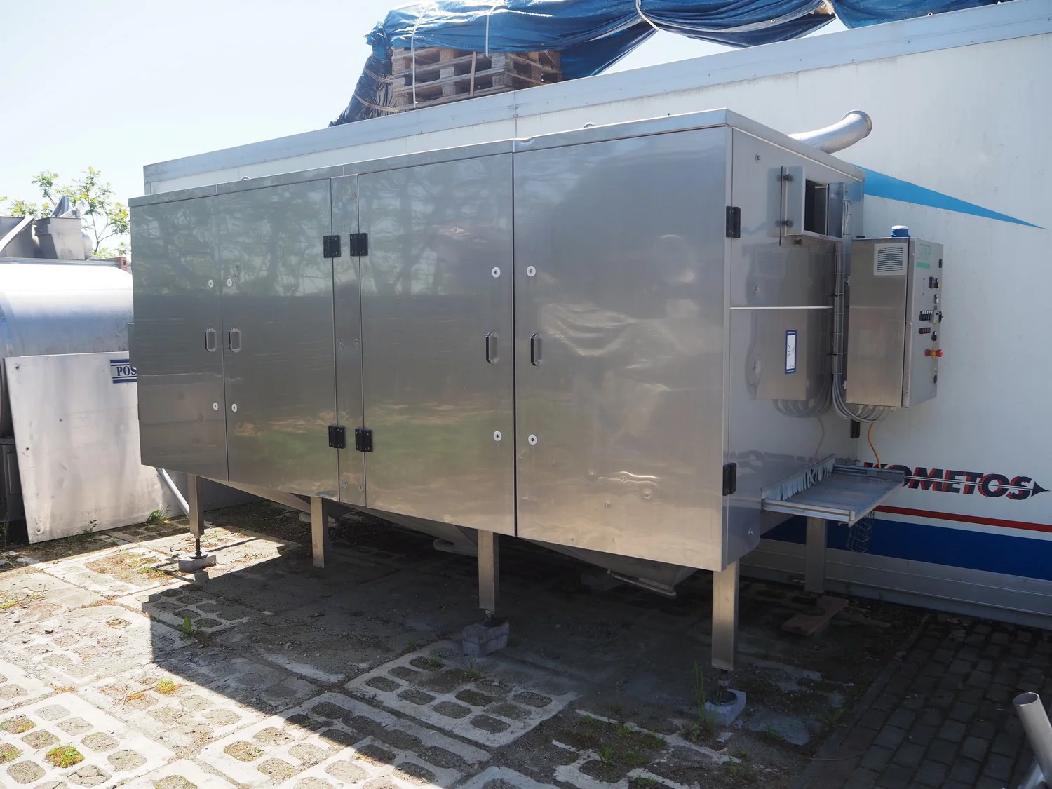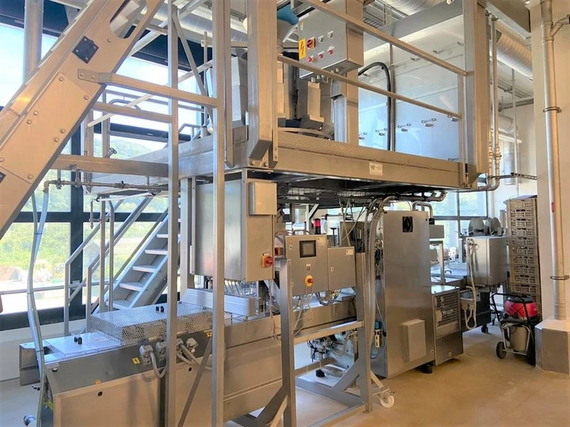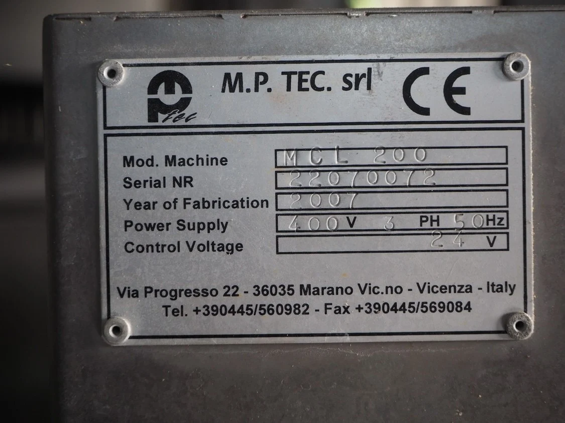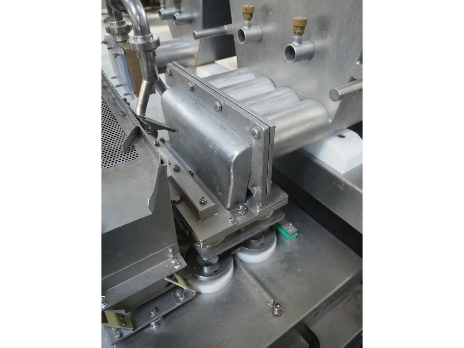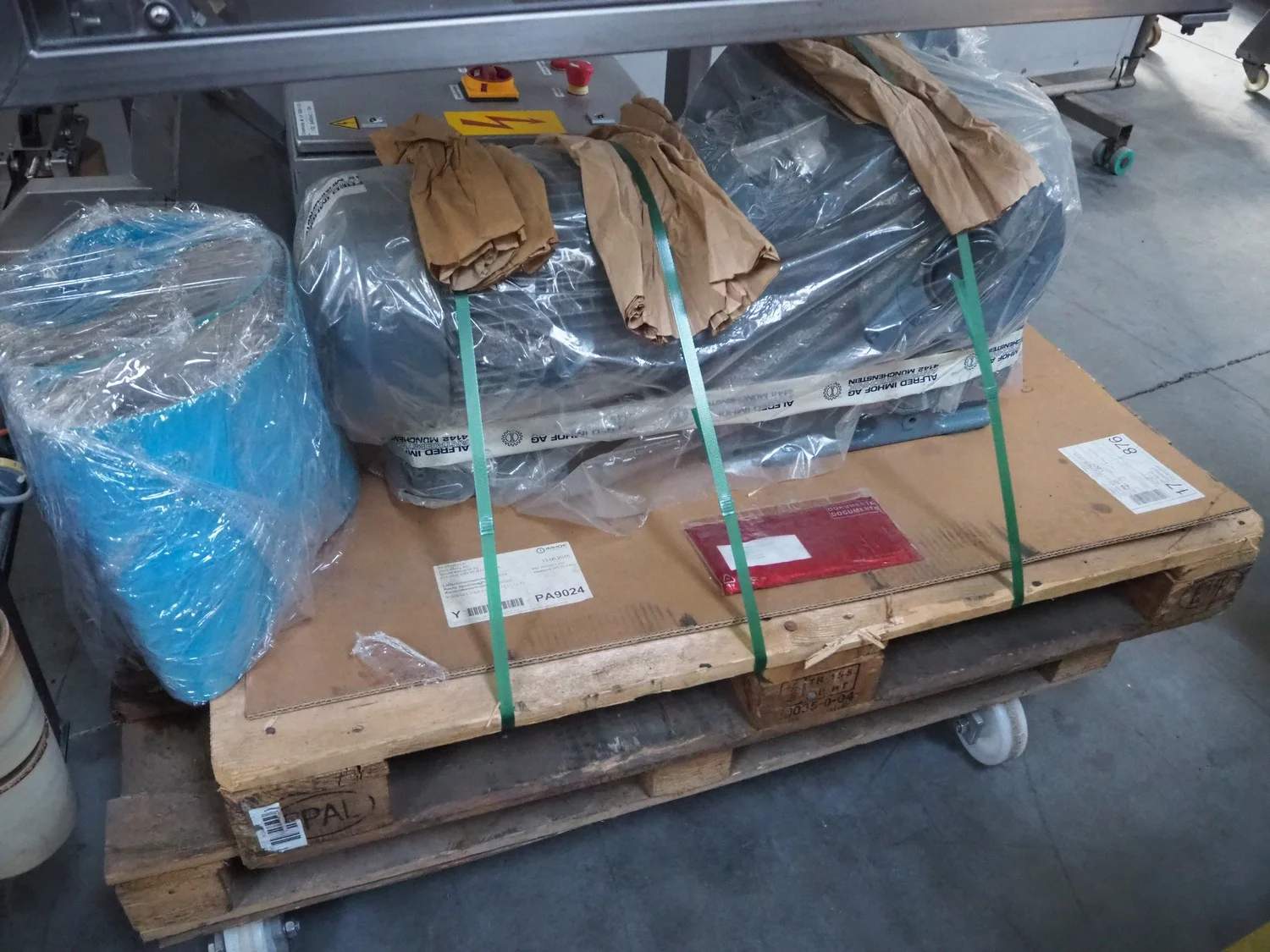 Complete gnocchi line consisting of: Glass mixer, type: VSM/F 600, machine number: 2612, year of construction: 2002, 400 V, 50 Hz, 20.96 A, 9,95 kW, volume 600 liter, dimensions: 2450 mm x 1650 mm x 2000 mm; M.P. TEC. srl lifter for 200 liter meat bins, model: MCL 200, serial number: 22070072, year of construction: 2007, 400 V, 3 Ph, 50 Hz, capacity: 200 kg, lifting height: 2250 mm, total dimensions: 1150 mm x 810 mm x 3020 mm; Sandore gnocchi forming and filling machine, model NF 100 C, serial number: 2376, year of construction: 2007, 400 V, 3 Ph, 8500 W, dimensions: 1450 mm x 1250 mm x 2030 mm, with outfeed machine for stuffed gnocchi, dimensions 900 mm x 1340 mm x 1720 mm, and outfeed machine for normal gnocchi, 870 mm x 1450 mm x 2030 mm; SARP elevating belt, model: SNZ 600, serial number: IE0.01.G05E, year of construction: 2005, 400 V, 50 Hz, 0.37 kW, plastic belt and dividers, belt width: 480 mm, distance between dividers: 75 mm, divider height: 60 mm, elevating height: 2000 mm, total dimensions: 800 mm x 1350 mm x 2150 mm; SARP vibrating tunnel, model: STR4107, serial number: JG0.01.G05E, year of construction: 2005, 400 V, 50 Hz, 4,7 kW, 7 levels, gutter width: 980 mm, infeed height: 1880 mm , outfeed height: 900 mm, total dimensions: 1900 mm x 5000 mm x 2550 mm; SARP waste and water separator filter, model: FILTRO, serial number: 06122, year of construction: 2006, 400 V, 50 Hz, 2.2 kW, dimensions: 1350 mm x 1250 mm x 3800 mm; Hastamat 10 head multihead weigher, type: CP 2.10/10, machine number: 7110287, year of construction: 1997, 230/400 V, 50 Hz, 1.5 kW, dimensions: 1370 mm x 1370 mm x 1500 mm; Mobile depositor for Tiromat thermoformer, dimensions: 1500 mm x 1250 mm x 1770 mm; Tiromat thermoformer, type: Tiromat Compact M280 2.00, serial number: 788.106.1279, 400 V, 3 Ph, 50 Hz, 23.58 kW, foil width: bottom 280 mm and top 270 mm, dye: 190 mm x 240 mm, Tiromat labeller, type: BL-150, machine number: ETI-422N, total dimensions: 7100 mm x 1000 mm x 2050 mm; Transport belt, s/s frame, plastic belt, belt width: 250 mm, total dimensions: 1500 mm x 500 mm x 750 mm; BeltTrans spiral transport belt, s/s frame, plastic mesh belt, belt width: 300 mm, total dimensions: 2000 mm x 2600 mm x 2300 mm.