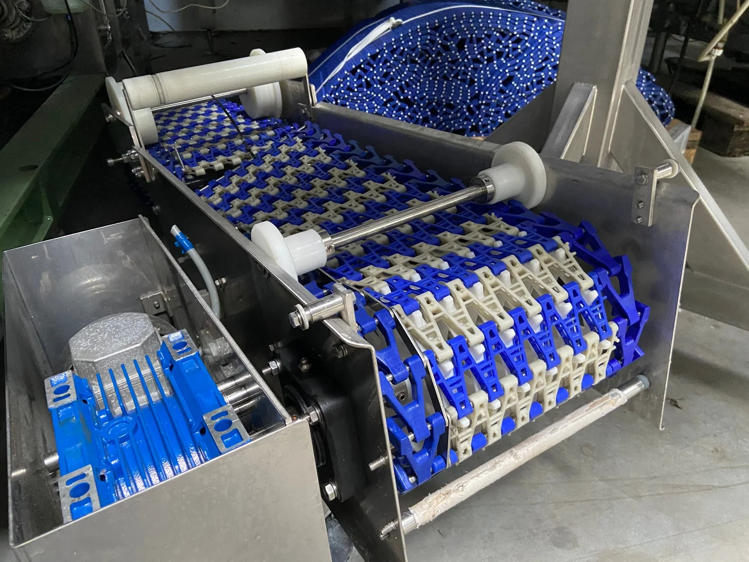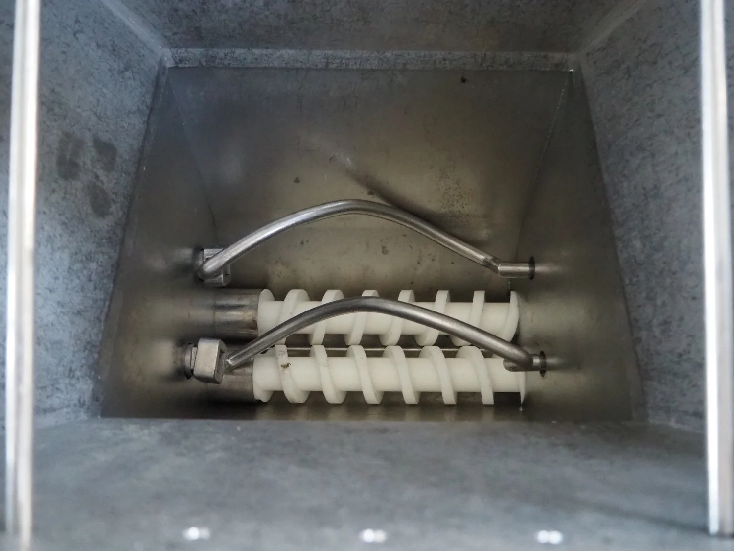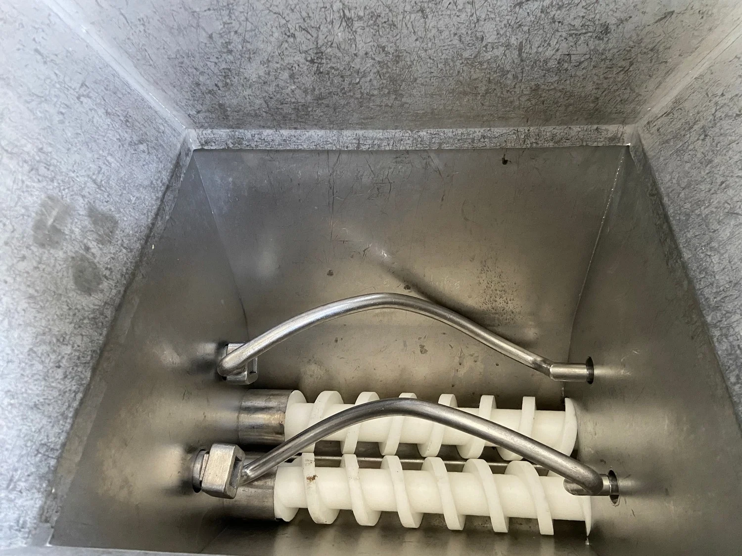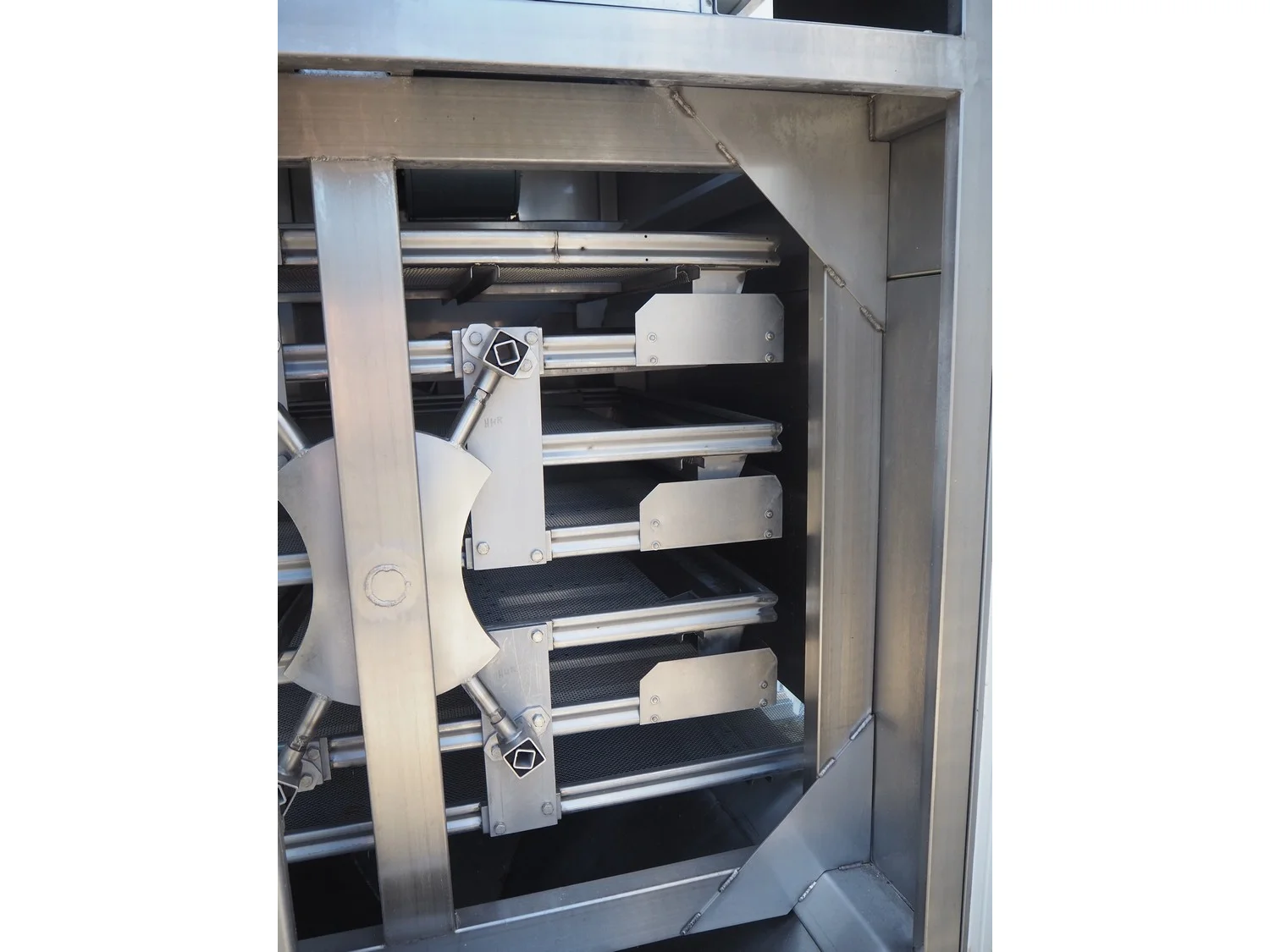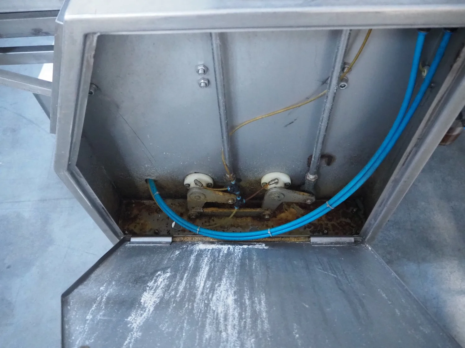 Complete gnocchi line consisting of: Glass mixer, type: VSM/F 600, machine number: 2612, year of construction: 2002, 400 V, 50 Hz, 20.96 A, 9,95 kW, volume 600 liter, dimensions: 2450 mm x 1650 mm x 2000 mm; M.P. TEC. srl lifter for 200 liter meat bins, model: MCL 200, serial number: 22070072, year of construction: 2007, 400 V, 3 Ph, 50 Hz, capacity: 200 kg, lifting height: 2250 mm, total dimensions: 1150 mm x 810 mm x 3020 mm; Sandore gnocchi forming and filling machine, model NF 100 C, serial number: 2376, year of construction: 2007, 400 V, 3 Ph, 8500 W, dimensions: 1450 mm x 1250 mm x 2030 mm, with outfeed machine for stuffed gnocchi, dimensions 900 mm x 1340 mm x 1720 mm, and outfeed machine for normal gnocchi, 870 mm x 1450 mm x 2030 mm; SARP elevating belt, model: SNZ 600, serial number: IE0.01.G05E, year of construction: 2005, 400 V, 50 Hz, 0.37 kW, plastic belt and dividers, belt width: 480 mm, distance between dividers: 75 mm, divider height: 60 mm, elevating height: 2000 mm, total dimensions: 800 mm x 1350 mm x 2150 mm; SARP vibrating tunnel, model: STR4107, serial number: JG0.01.G05E, year of construction: 2005, 400 V, 50 Hz, 4,7 kW, 7 levels, gutter width: 980 mm, infeed height: 1880 mm , outfeed height: 900 mm, total dimensions: 1900 mm x 5000 mm x 2550 mm; SARP waste and water separator filter, model: FILTRO, serial number: 06122, year of construction: 2006, 400 V, 50 Hz, 2.2 kW, dimensions: 1350 mm x 1250 mm x 3800 mm; Hastamat 10 head multihead weigher, type: CP 2.10/10, machine number: 7110287, year of construction: 1997, 230/400 V, 50 Hz, 1.5 kW, dimensions: 1370 mm x 1370 mm x 1500 mm; Mobile depositor for Tiromat thermoformer, dimensions: 1500 mm x 1250 mm x 1770 mm; Tiromat thermoformer, type: Tiromat Compact M280 2.00, serial number: 788.106.1279, 400 V, 3 Ph, 50 Hz, 23.58 kW, foil width: bottom 280 mm and top 270 mm, dye: 190 mm x 240 mm, Tiromat labeller, type: BL-150, machine number: ETI-422N, total dimensions: 7100 mm x 1000 mm x 2050 mm; Transport belt, s/s frame, plastic belt, belt width: 250 mm, total dimensions: 1500 mm x 500 mm x 750 mm; BeltTrans spiral transport belt, s/s frame, plastic mesh belt, belt width: 300 mm, total dimensions: 2000 mm x 2600 mm x 2300 mm.