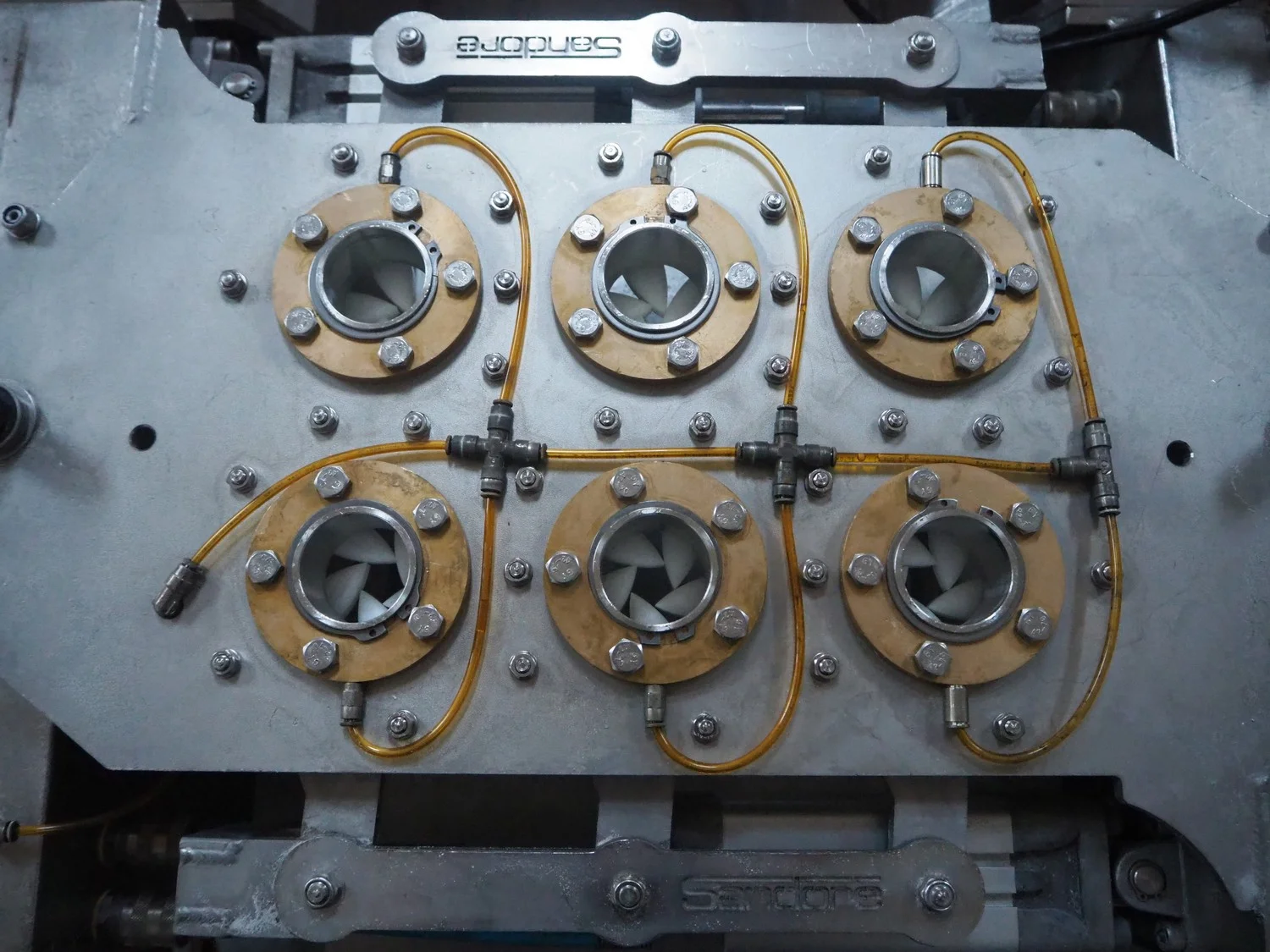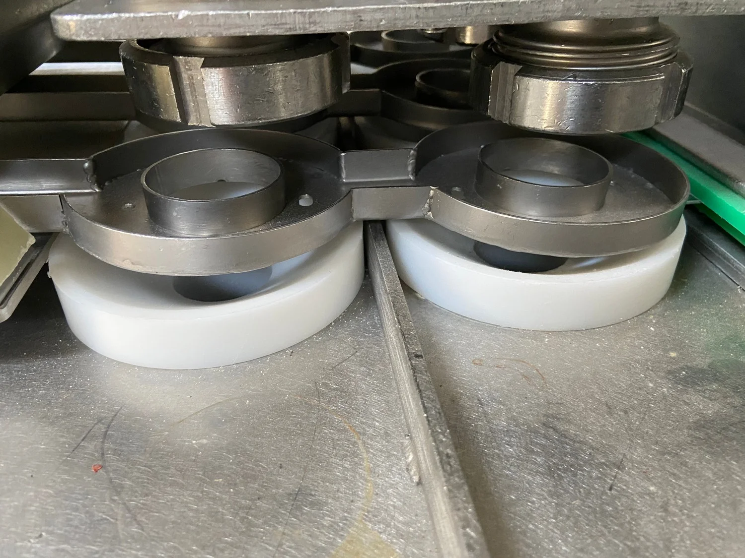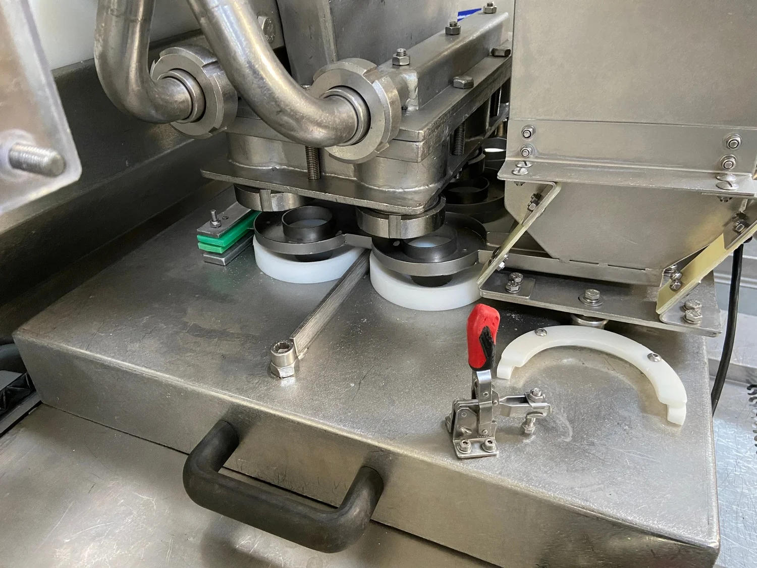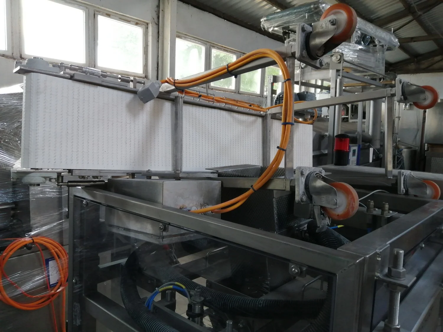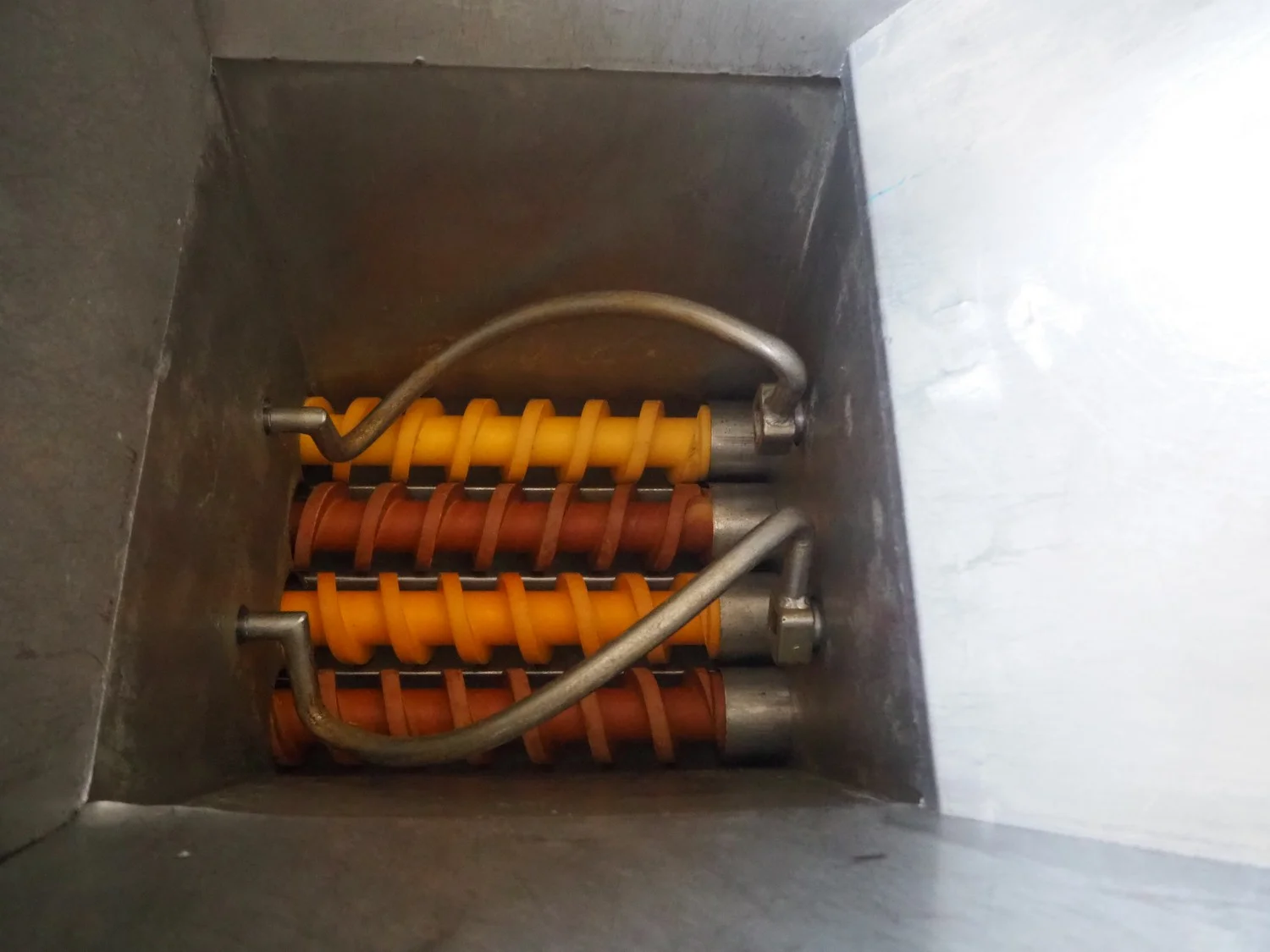 Complete gnocchi line consisting of: Glass mixer, type: VSM/F 600, machine number: 2612, year of construction: 2002, 400 V, 50 Hz, 20.96 A, 9,95 kW, volume 600 liter, dimensions: 2450 mm x 1650 mm x 2000 mm; M.P. TEC. srl lifter for 200 liter meat bins, model: MCL 200, serial number: 22070072, year of construction: 2007, 400 V, 3 Ph, 50 Hz, capacity: 200 kg, lifting height: 2250 mm, total dimensions: 1150 mm x 810 mm x 3020 mm; Sandore gnocchi forming and filling machine, model NF 100 C, serial number: 2376, year of construction: 2007, 400 V, 3 Ph, 8500 W, dimensions: 1450 mm x 1250 mm x 2030 mm, with outfeed machine for stuffed gnocchi, dimensions 900 mm x 1340 mm x 1720 mm, and outfeed machine for normal gnocchi, 870 mm x 1450 mm x 2030 mm; SARP elevating belt, model: SNZ 600, serial number: IE0.01.G05E, year of construction: 2005, 400 V, 50 Hz, 0.37 kW, plastic belt and dividers, belt width: 480 mm, distance between dividers: 75 mm, divider height: 60 mm, elevating height: 2000 mm, total dimensions: 800 mm x 1350 mm x 2150 mm; SARP vibrating tunnel, model: STR4107, serial number: JG0.01.G05E, year of construction: 2005, 400 V, 50 Hz, 4,7 kW, 7 levels, gutter width: 980 mm, infeed height: 1880 mm , outfeed height: 900 mm, total dimensions: 1900 mm x 5000 mm x 2550 mm; SARP waste and water separator filter, model: FILTRO, serial number: 06122, year of construction: 2006, 400 V, 50 Hz, 2.2 kW, dimensions: 1350 mm x 1250 mm x 3800 mm; Hastamat 10 head multihead weigher, type: CP 2.10/10, machine number: 7110287, year of construction: 1997, 230/400 V, 50 Hz, 1.5 kW, dimensions: 1370 mm x 1370 mm x 1500 mm; Mobile depositor for Tiromat thermoformer, dimensions: 1500 mm x 1250 mm x 1770 mm; Tiromat thermoformer, type: Tiromat Compact M280 2.00, serial number: 788.106.1279, 400 V, 3 Ph, 50 Hz, 23.58 kW, foil width: bottom 280 mm and top 270 mm, dye: 190 mm x 240 mm, Tiromat labeller, type: BL-150, machine number: ETI-422N, total dimensions: 7100 mm x 1000 mm x 2050 mm; Transport belt, s/s frame, plastic belt, belt width: 250 mm, total dimensions: 1500 mm x 500 mm x 750 mm; BeltTrans spiral transport belt, s/s frame, plastic mesh belt, belt width: 300 mm, total dimensions: 2000 mm x 2600 mm x 2300 mm.