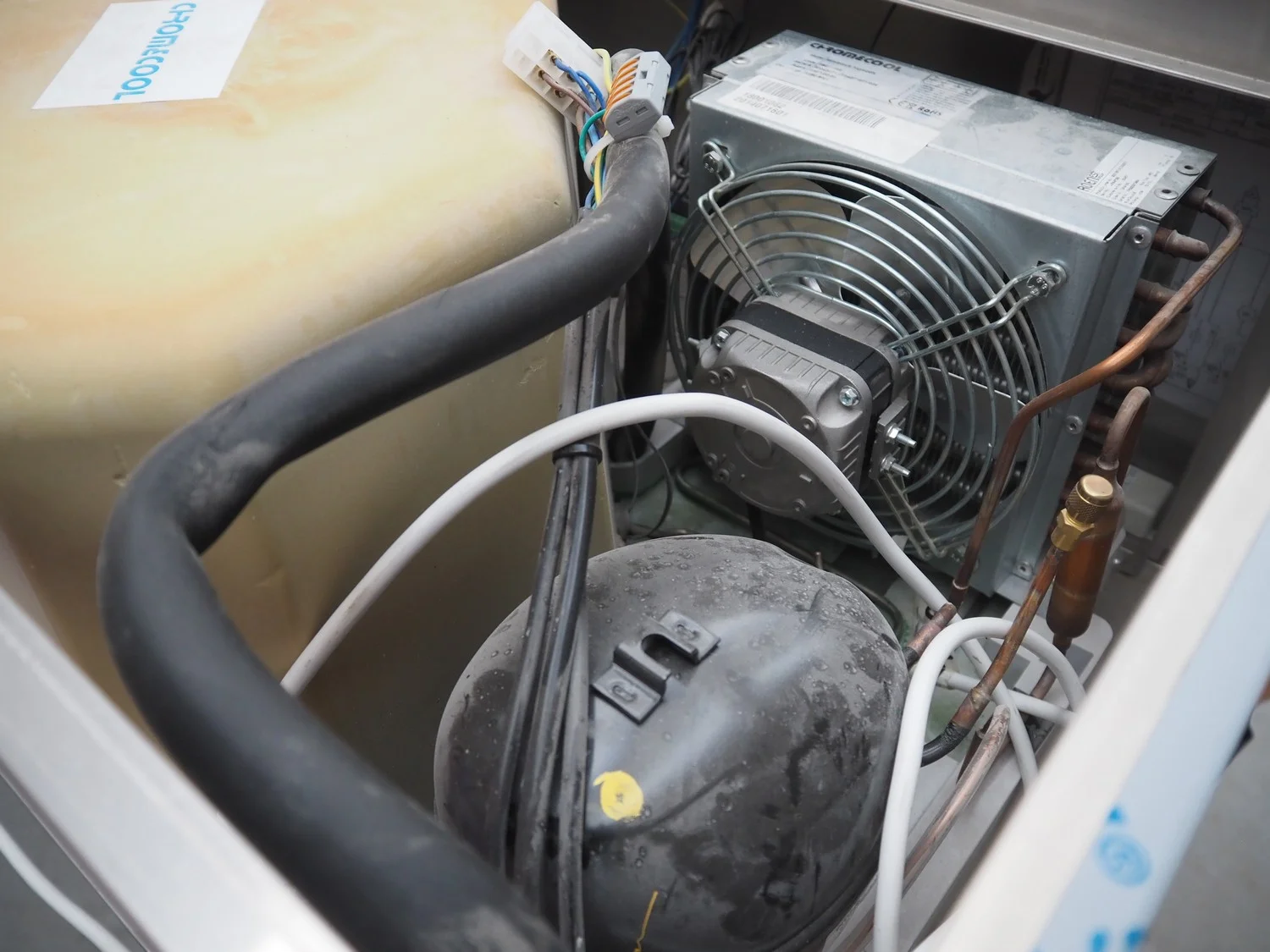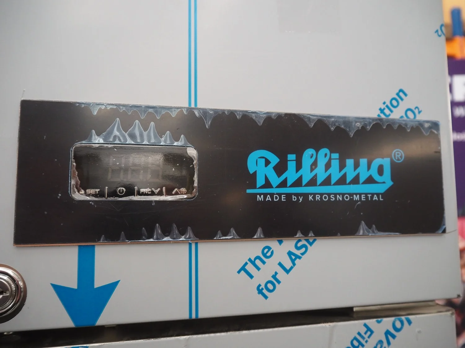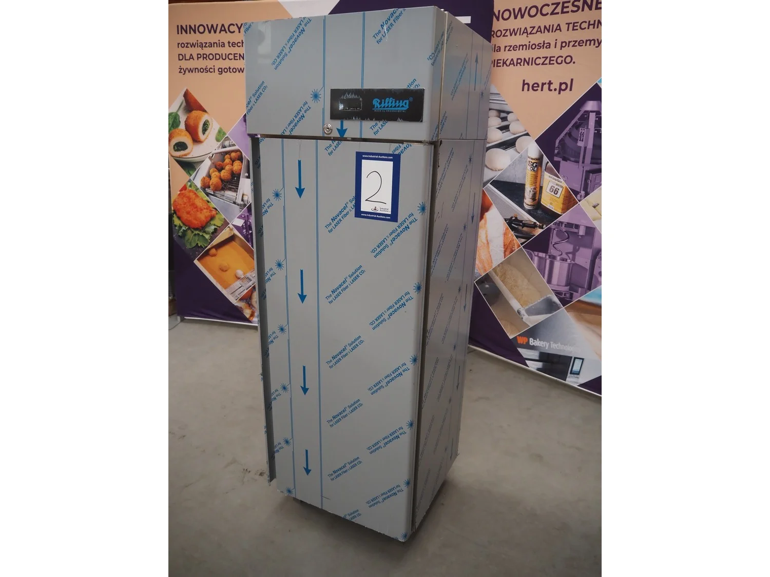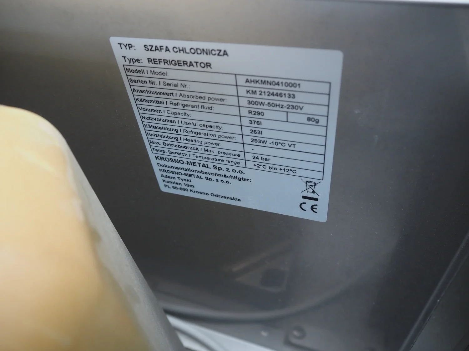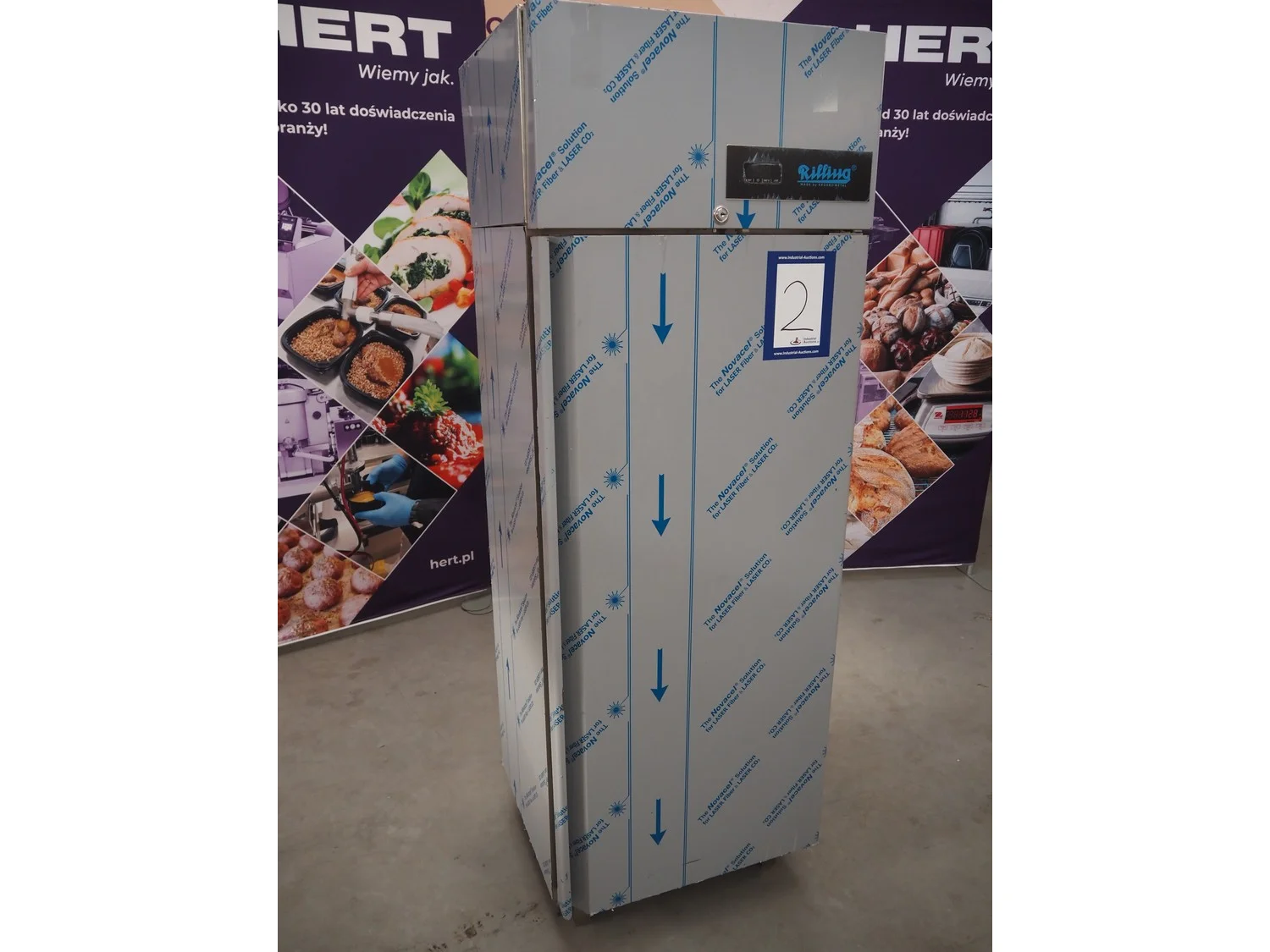 Rilling refrigerator, type: SZAFA CHLODNICZA, model: AHKMN0410001, serial number: KM 212446133, 230 V, 50 Hz, 300 W, refrigerant: R290, volume: 376 liter, 3 floors with plates, plate dimensions: 470 mm x 550 mm, total dimensions: 590 mm x 650 mm x 1870 mm.