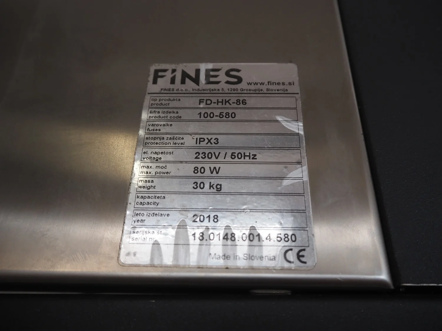 FINES d.o.o. mobile pizza oven, 3 floors, type: FD86/3-S smart, serial number: 18.0193.001.4.560, year of construction: 2018, 400 V, 3 Ph, 50 Hz, 3x32 A, 19.5 kW, floor dimensions: (3x) 800 mm x 600 mm, total dimensions: 1250 mm x 1200 mm x 2280 mm.