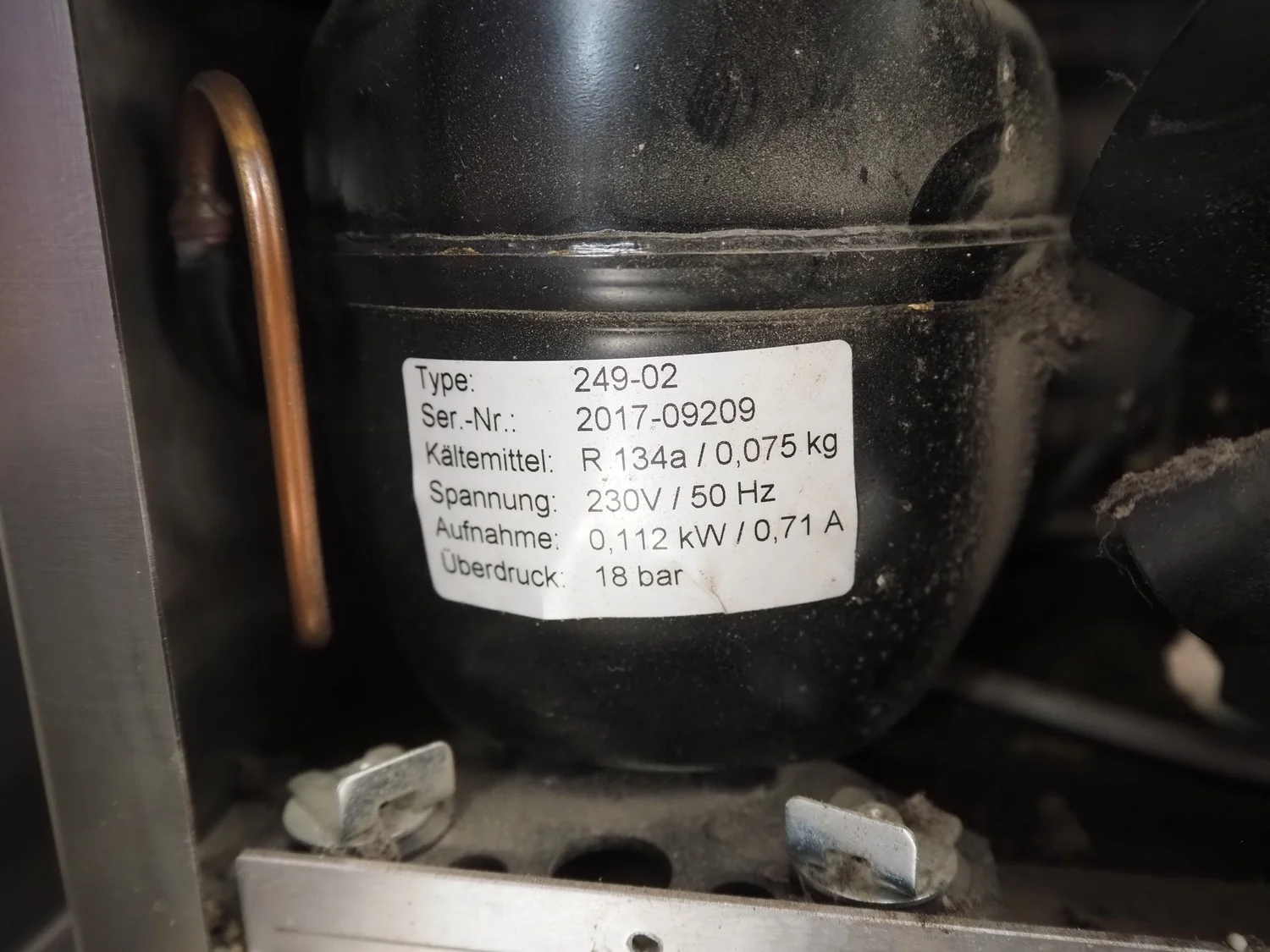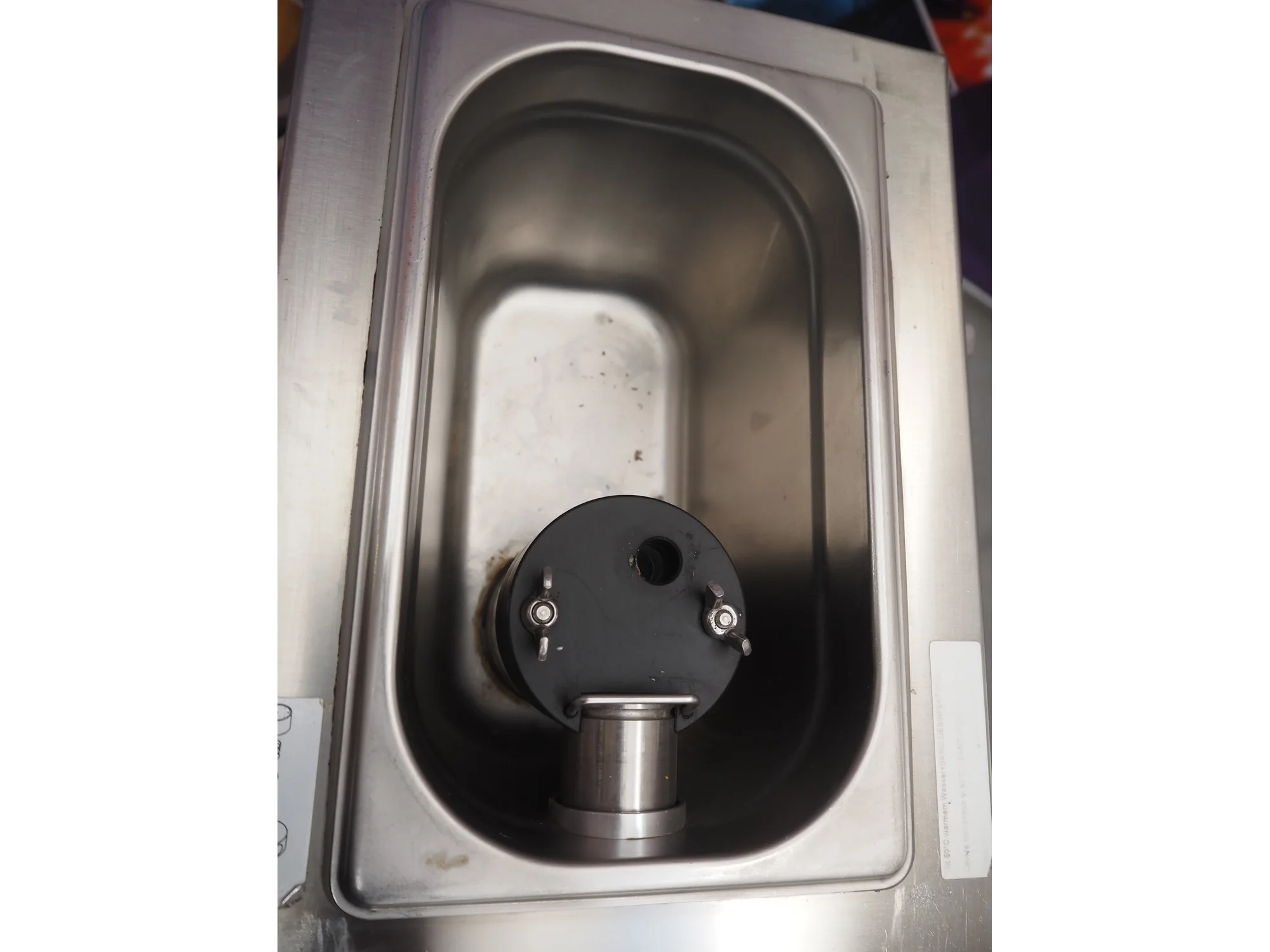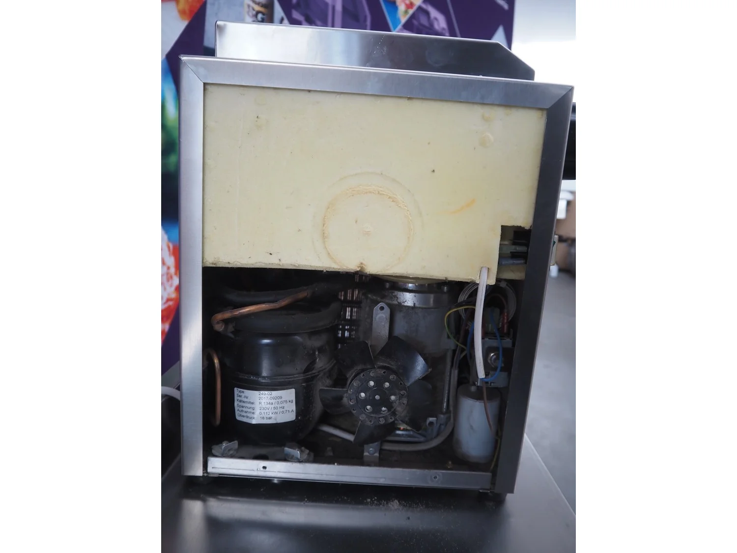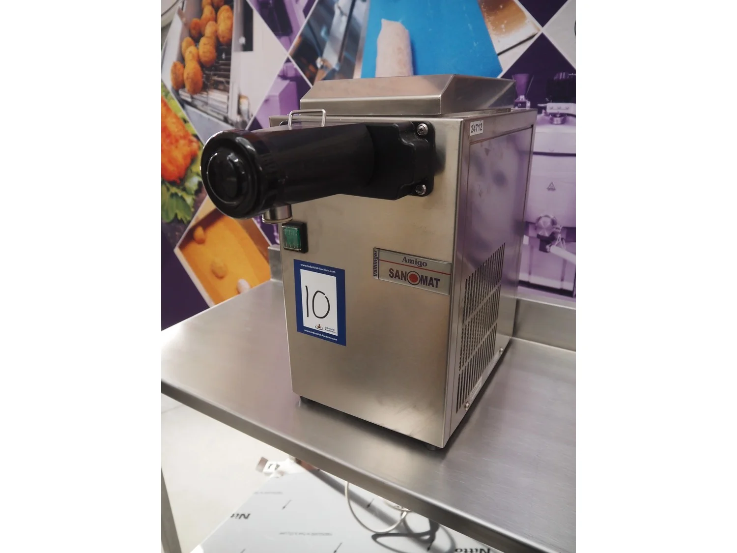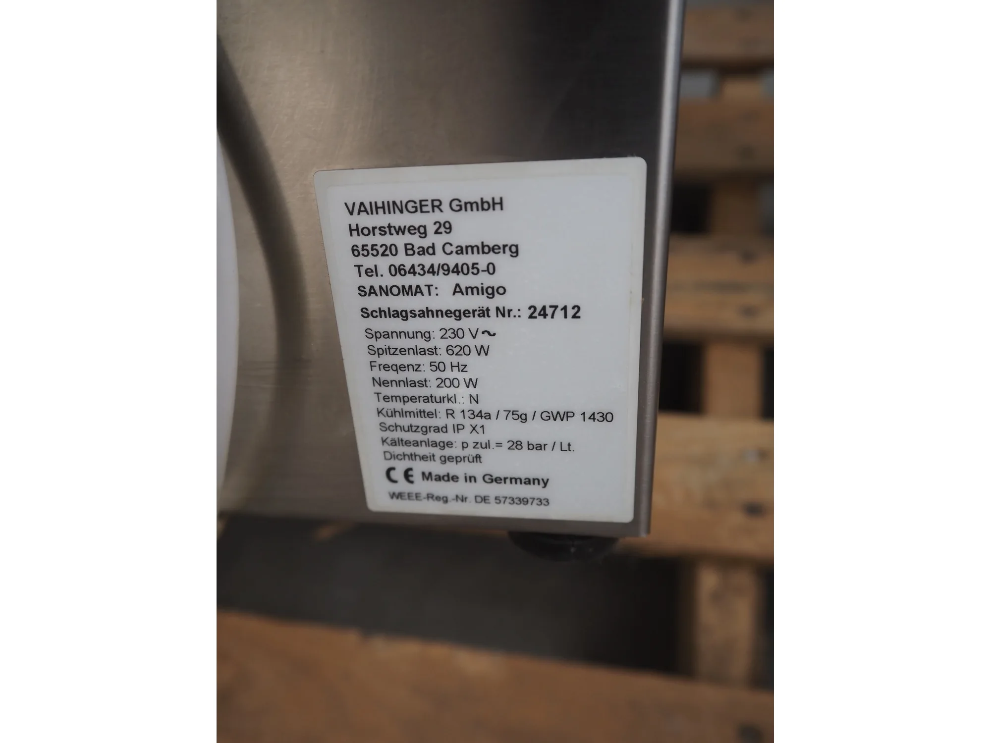 Sanomat whipped cream machine, model: Amigo, serial number: 24712, 230 V, 50 Hz, 620 W, refrigerant: R134a/75g, dimensions: 500 mm x 230 mm x 420 mm.