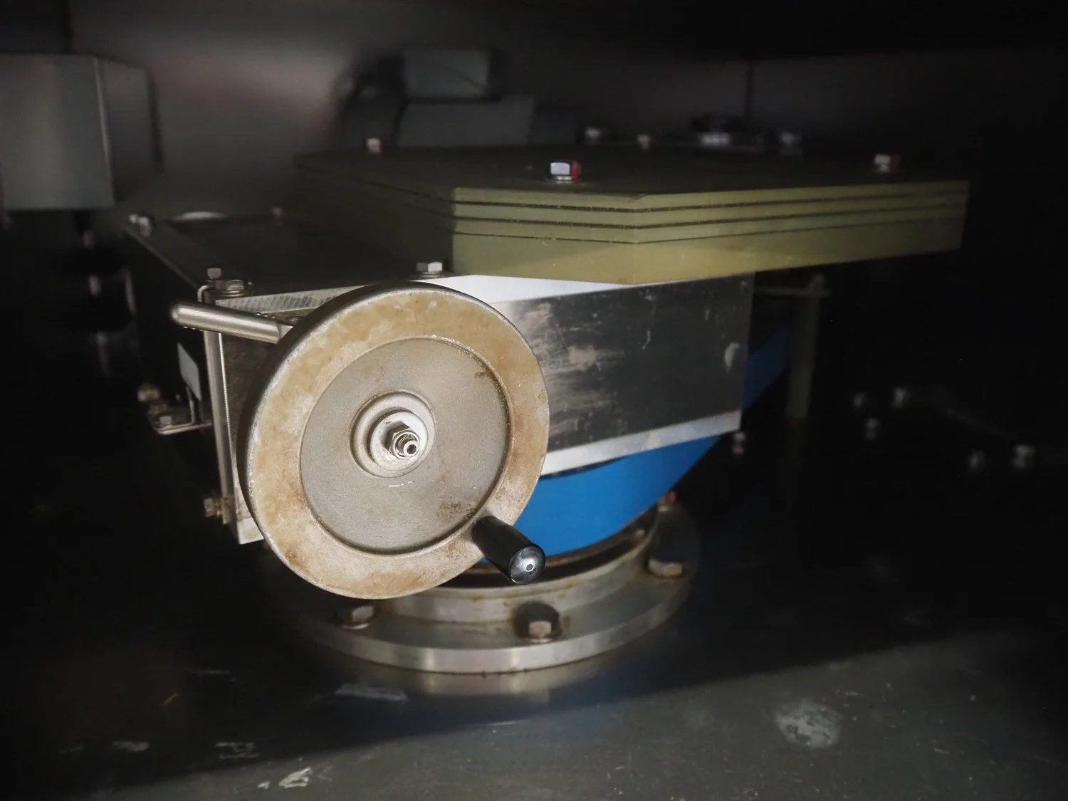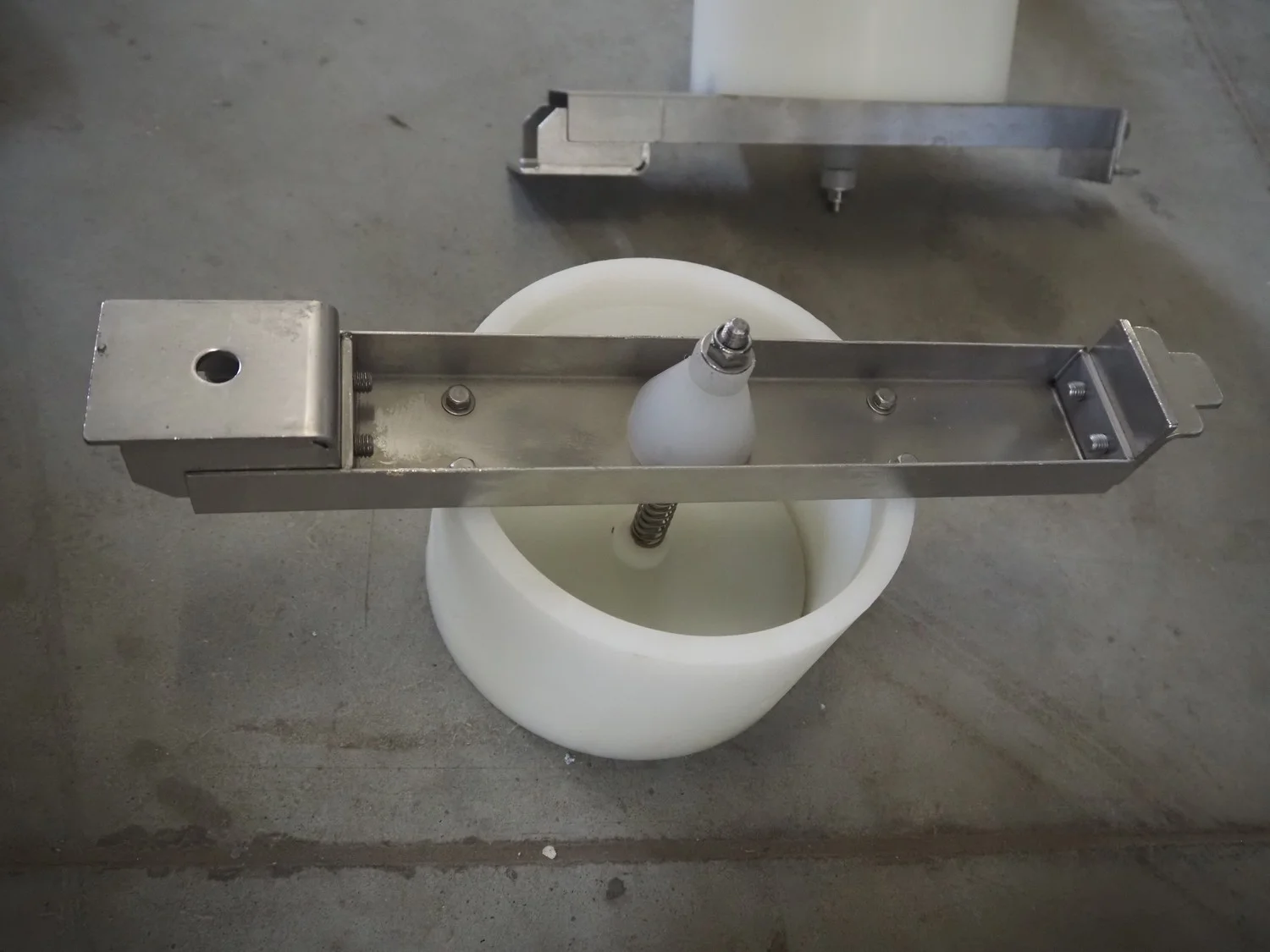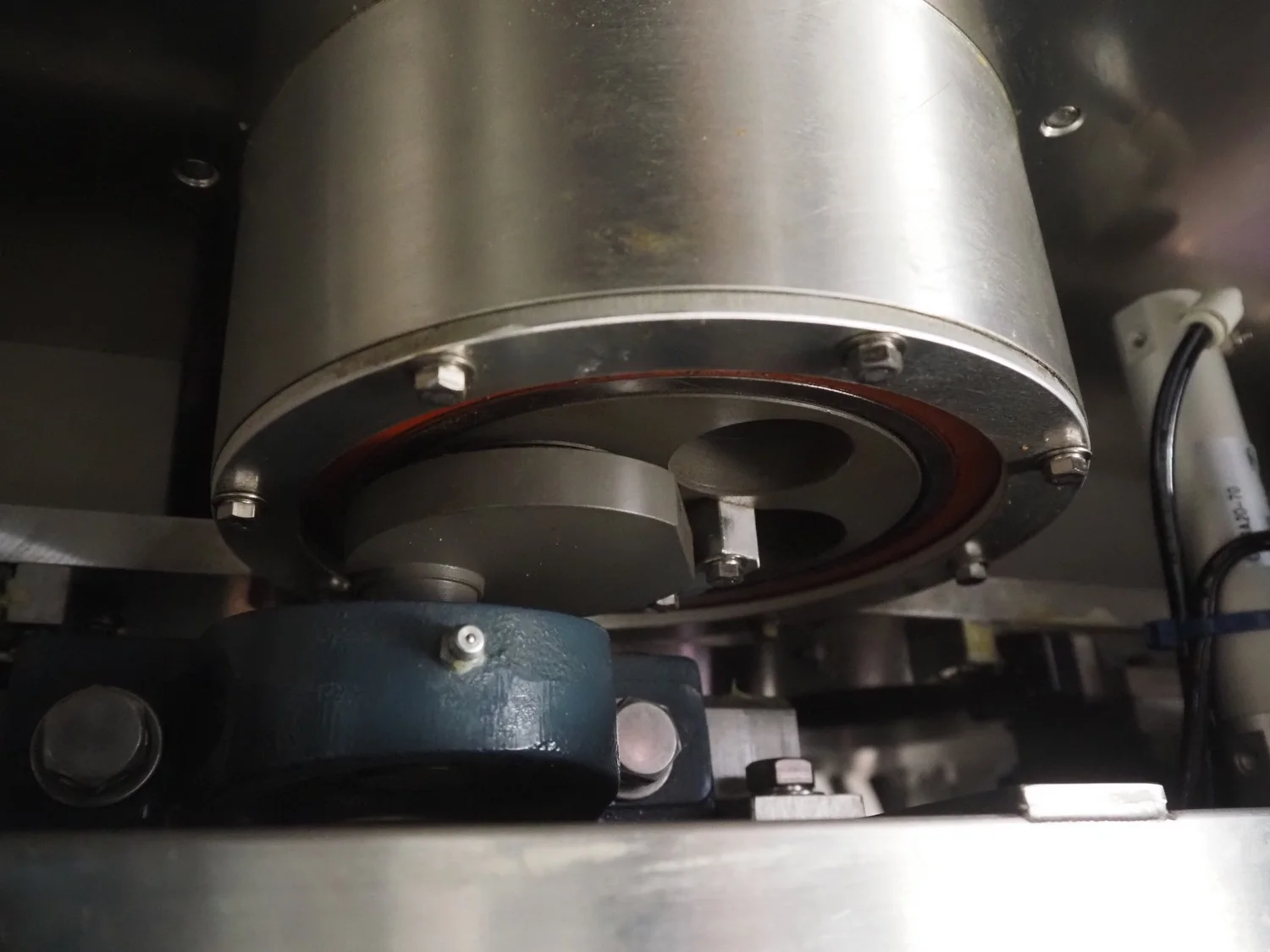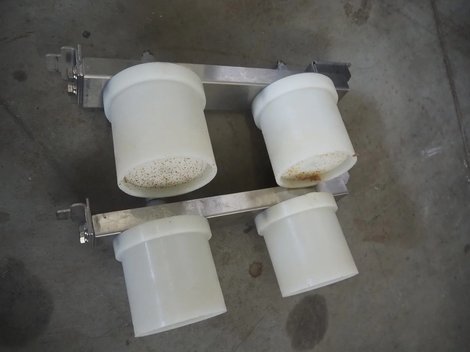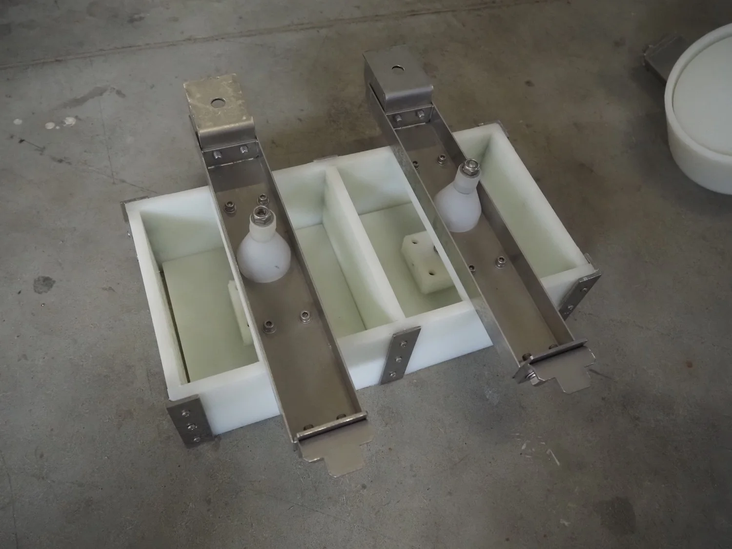 Rheon mobile 2 rows cup rounder, model: SR002, serial number: 00008, year of construction: 2010, 380 V, 3 Ph, 50 Hz, 7.64 A, 2267 W, plastic belt, belt width: 500 mm, 300 mm, clearance: 320 mm x 45 mm, dimensions dye: ø 85 mm, ø 155 mm, 175 mm x 175 mm, total dimensions: 1560 mm x 1020 mm x 1650 mm.