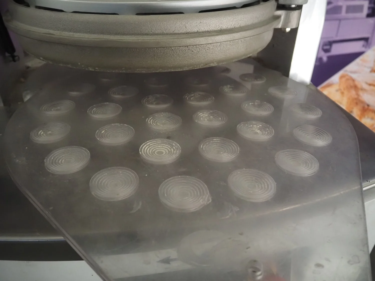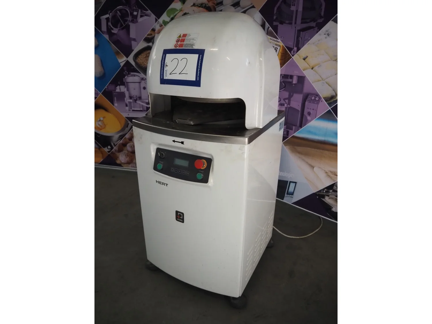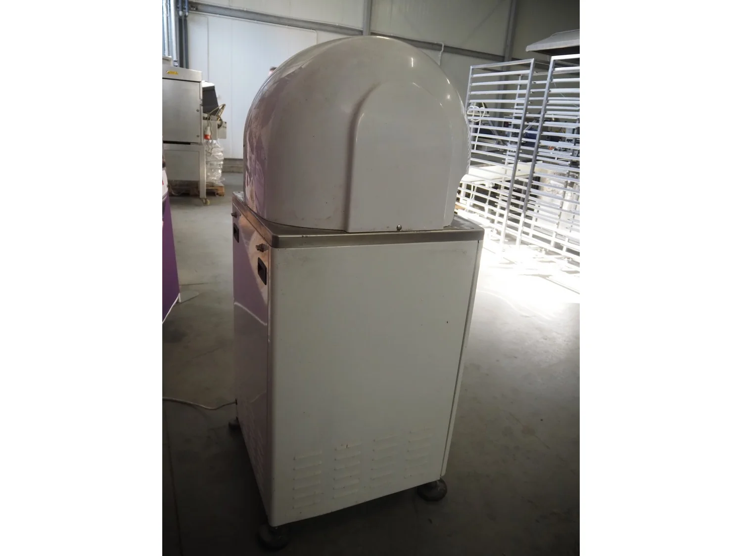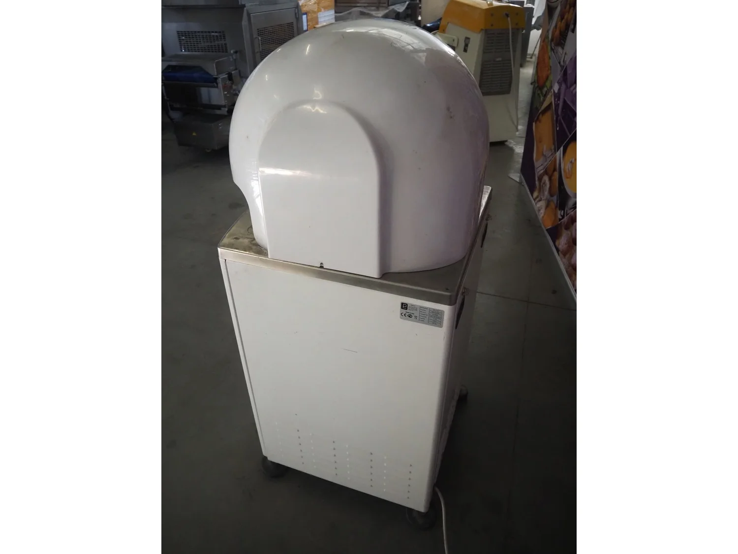 Vitella srl dough rounder, model: SPA A 30, serial number: 90153628, year of construction: 2015, 400 V, 3 Ph, 50 Hz, 5.72 A, 1.3 kW, weight: 230 kg, dyes: (30x) ø 45 mm, total dimensions: 640 mm x 600 mm x 1400 mm. Inculding 1 spare dye plate.