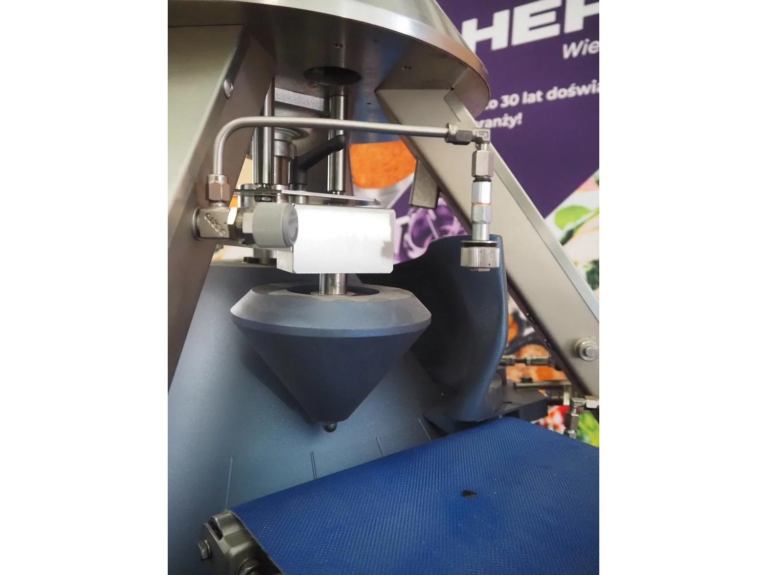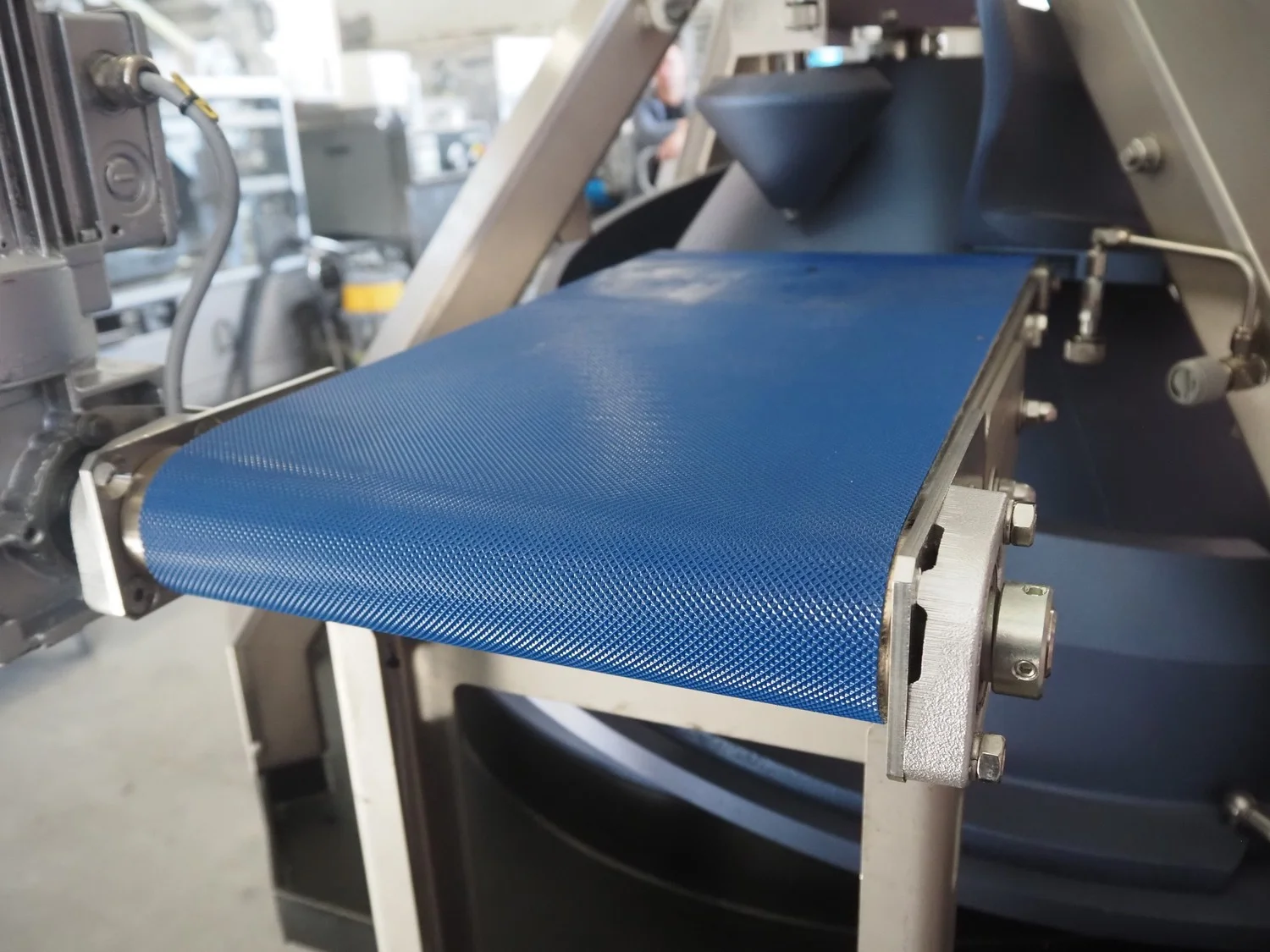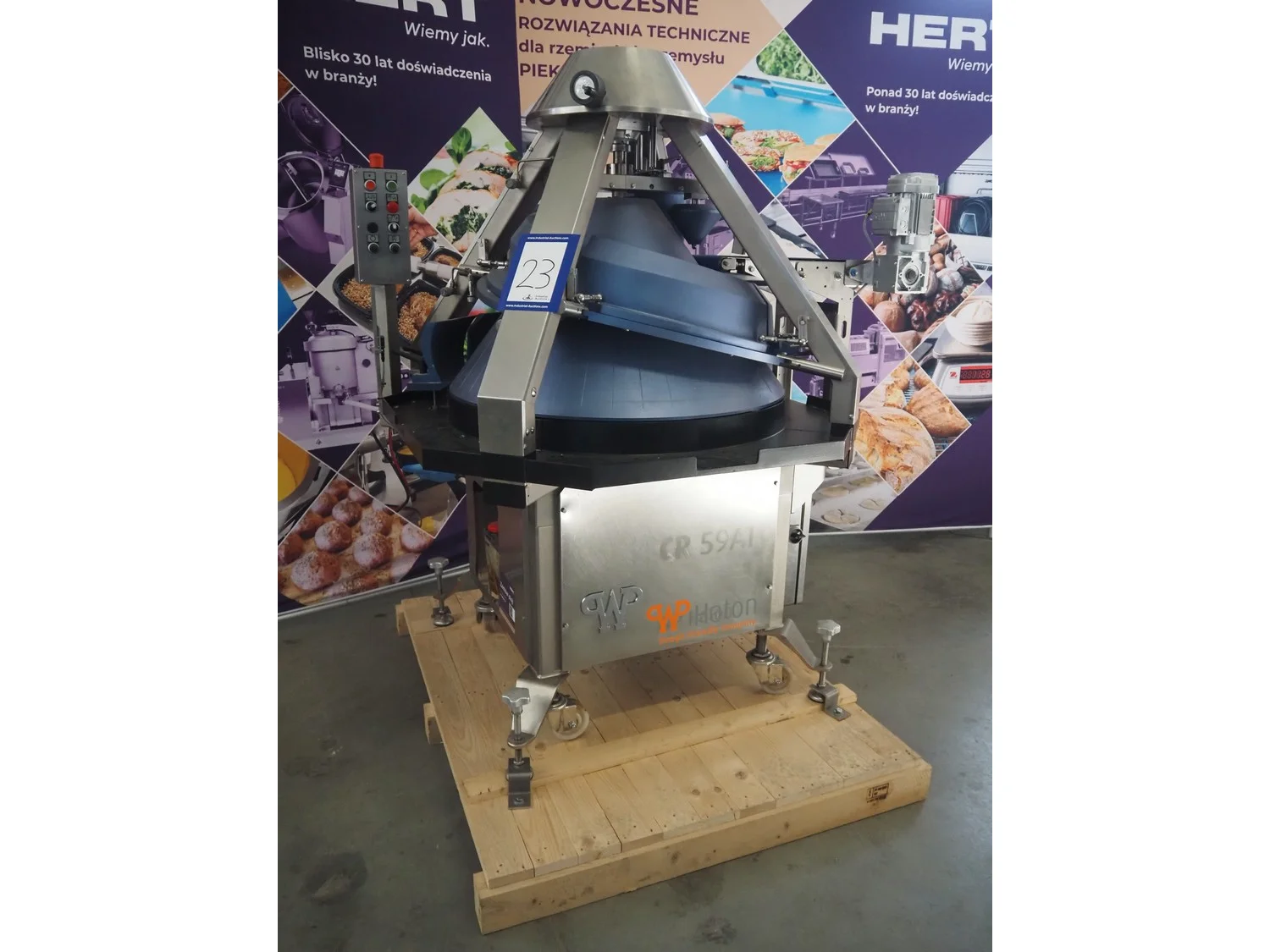 WP Haton BV mobile conical rounding machine, type: Rounder CR 59 AT, machine number: H_592142, year of construction: 2020, year of renovation: 2025, 230/400 V, 3 Ph, 50 Hz, 6.5 A, plastic belt, belt width: 280 mm, total dimensions: 1450 mm x 1200 mm x 1700 mm.