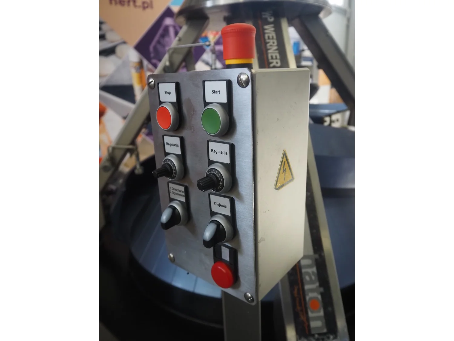 WP Haton BV mobile conical rounding machine, type: Rounder CR 59, machine number: 591526, year of renovation : 2025, 230/400 V, 3 Ph, 50 Hz, plastic belt, belt width: 280 mm, total dimensions: 1450 mm x 1200 mm x 1650 mm.