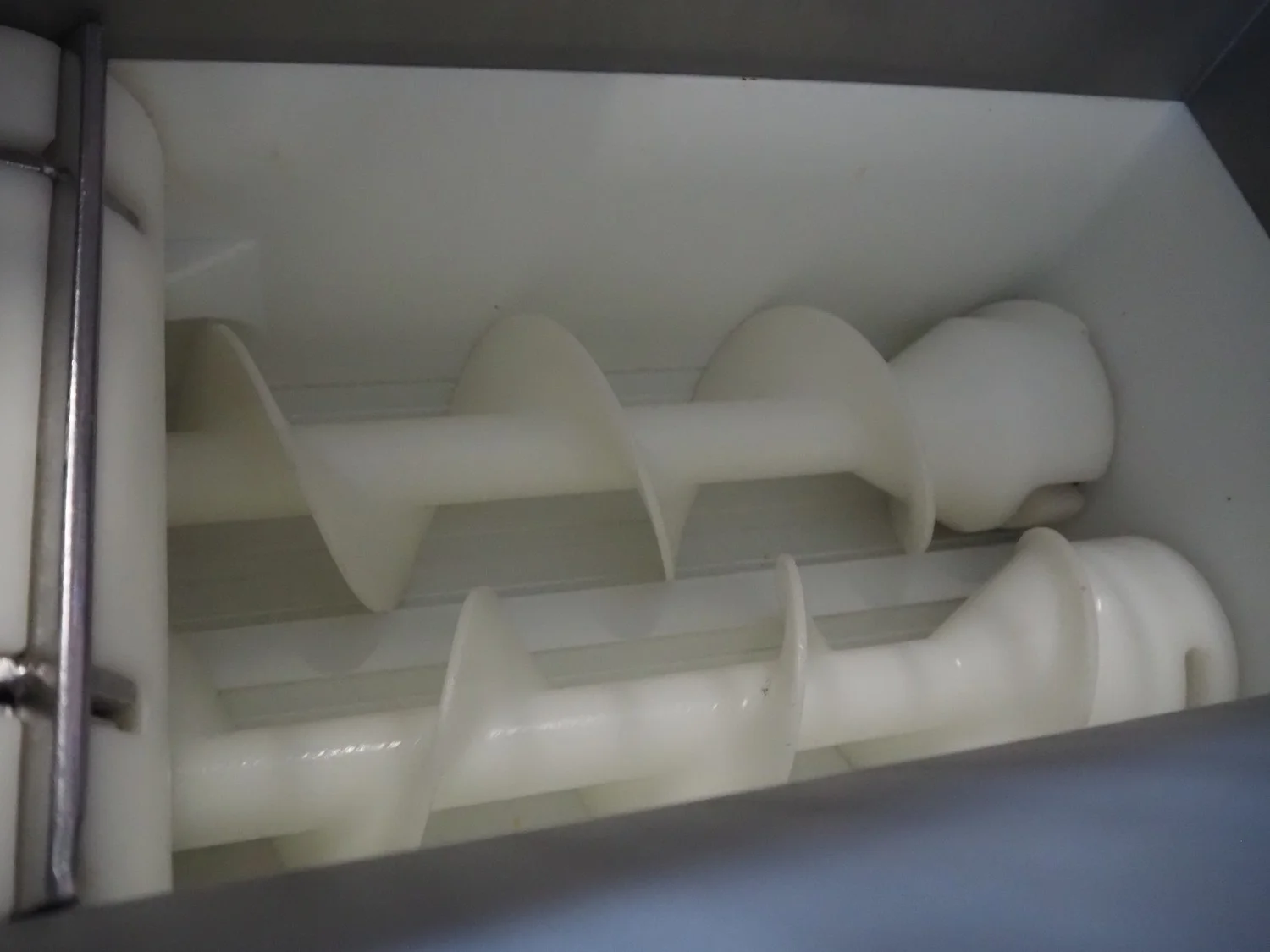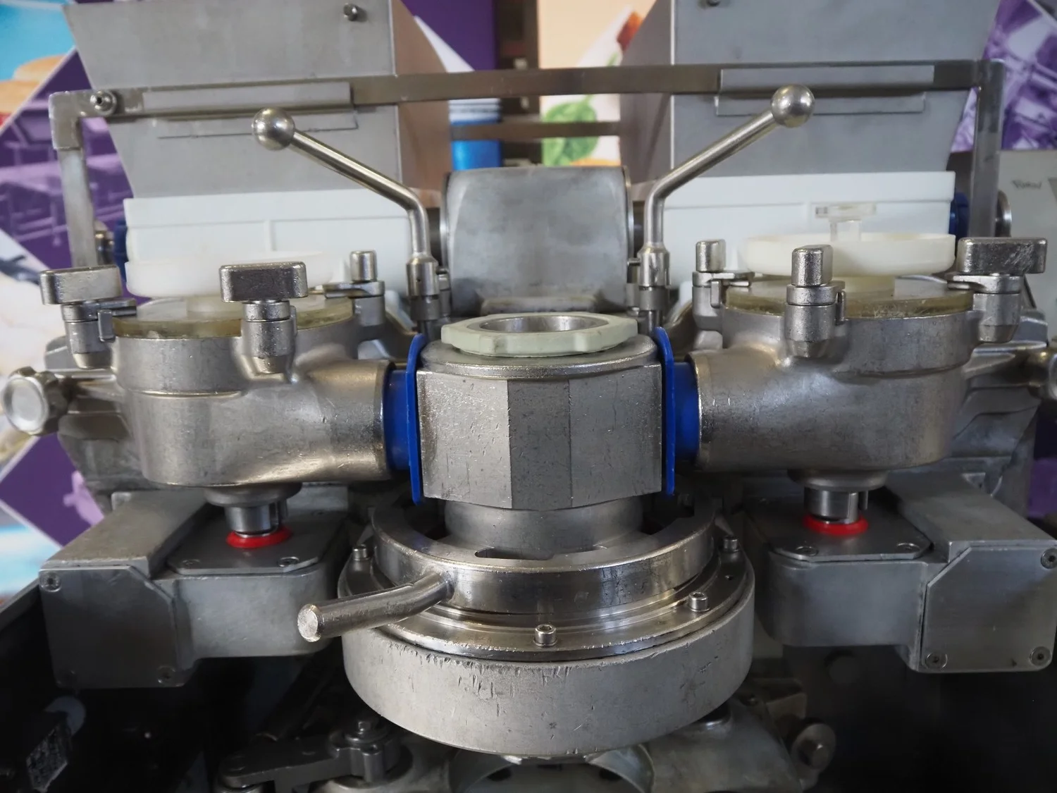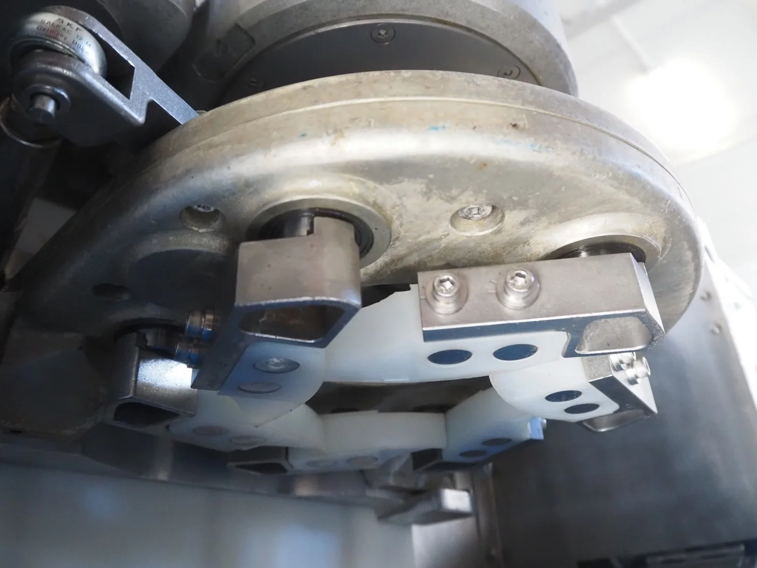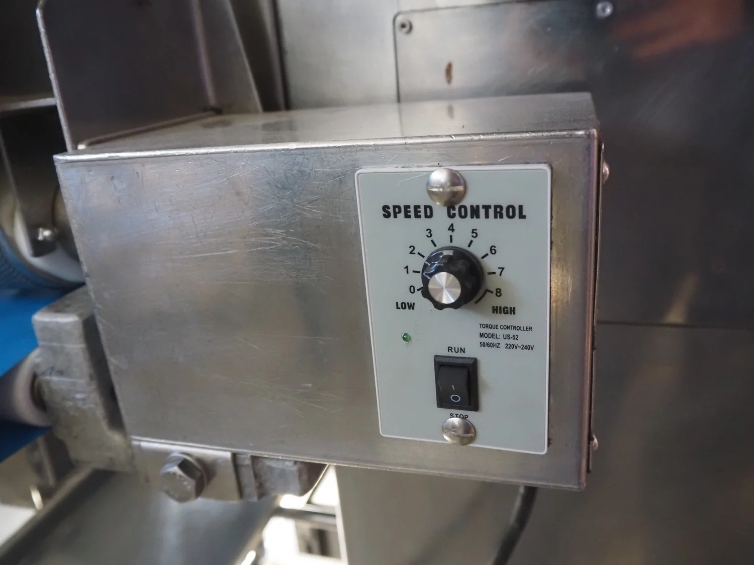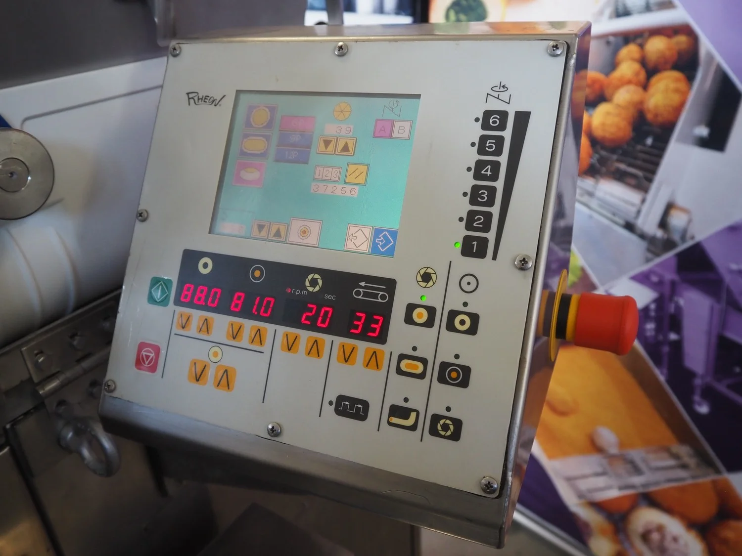 Rheon mobile encrusting machine, name: Cornucopia, model: KN550, serial number: 251, year of construction: 2008, year of renovation: 2024, 380 V, 3 Ph, 50/60 Hz, 8.2 A, 3.2 kW, plastic belt, belt width: 160 mm, total dimensions: 1800 mm x 950 mm x 1600 mm.