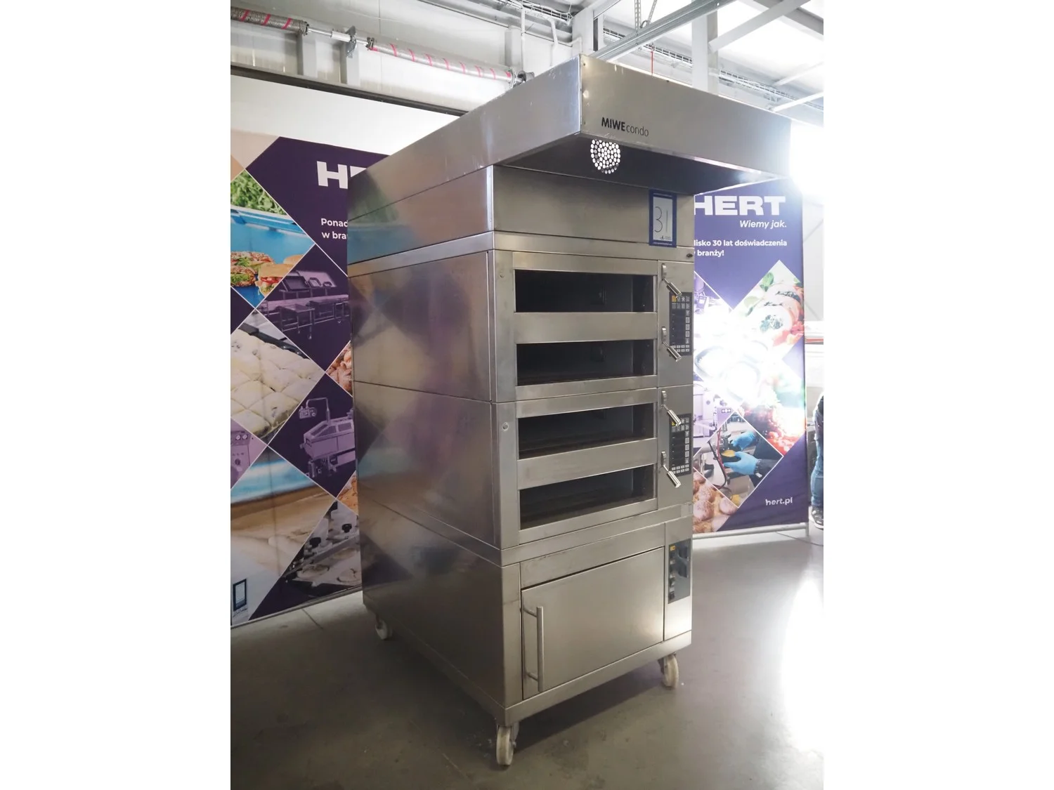 Miwe pizza oven, model: Condo, type: CO 4.0608-2D, serial number: 76 367, year of construction: 2006, 230/400 V, 3 Ph, 50 Hz, 20.9 kW, electric heated, 4 floors, dimensions floors: 870 mm x 600 mm x 130 mm, total dimensions: 1750 mm x 900 mm x 2100 mm.