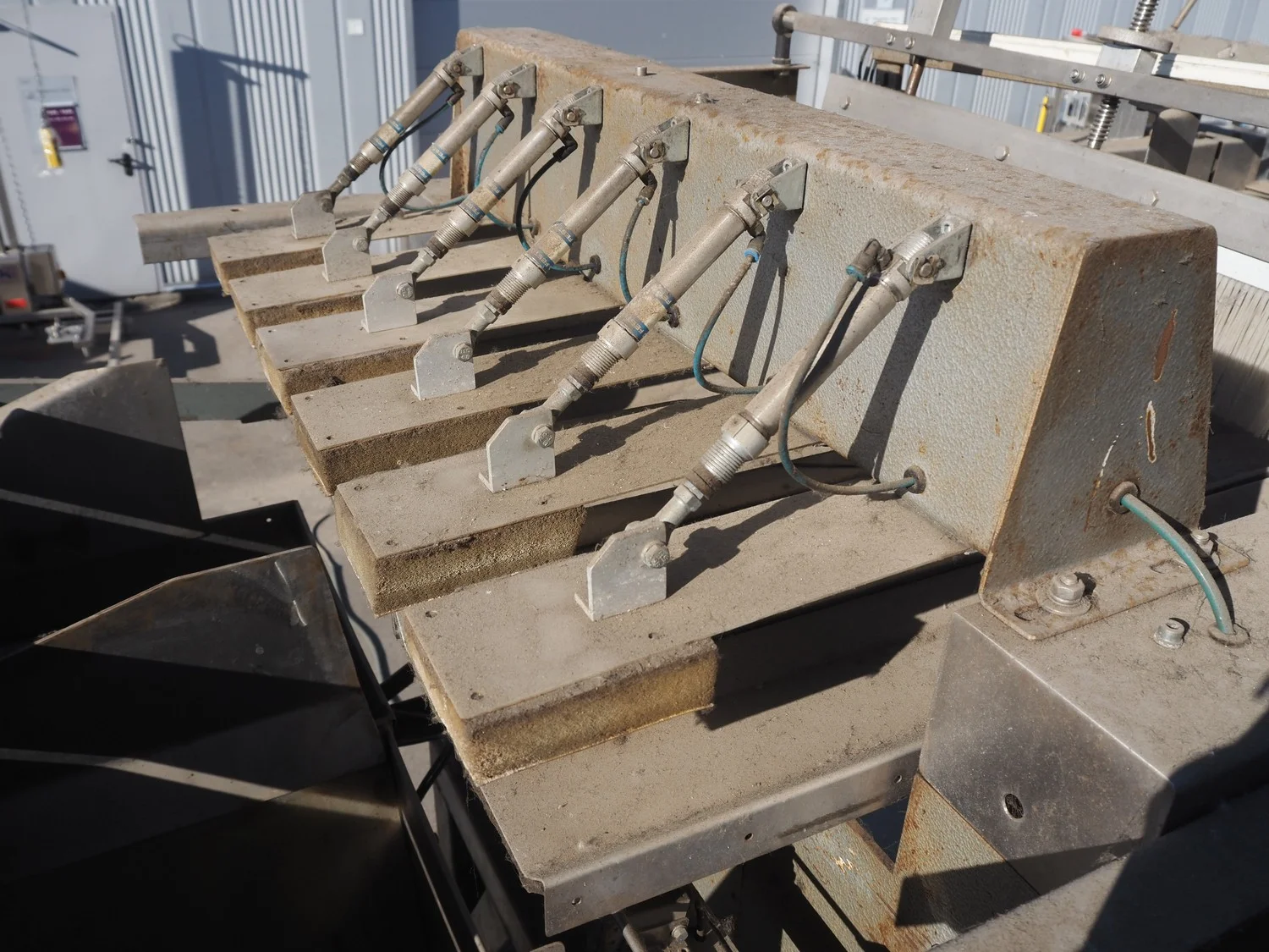 J. Affeldt linear weighing machine, type: AVN/2756EV2B, number: 354, year of construction: 1997, 400 V, 50 Hz, 6 lanes, lane width: (6x) 100 mm, total dimensions: 1900 mm x 1700 mm x 3000 mm.