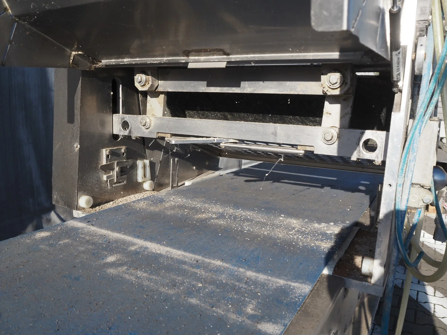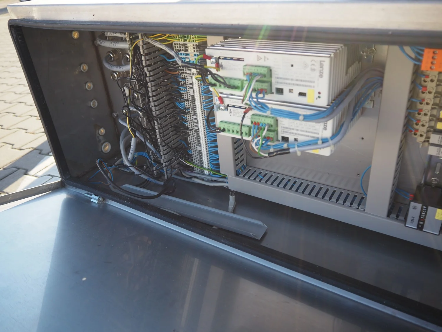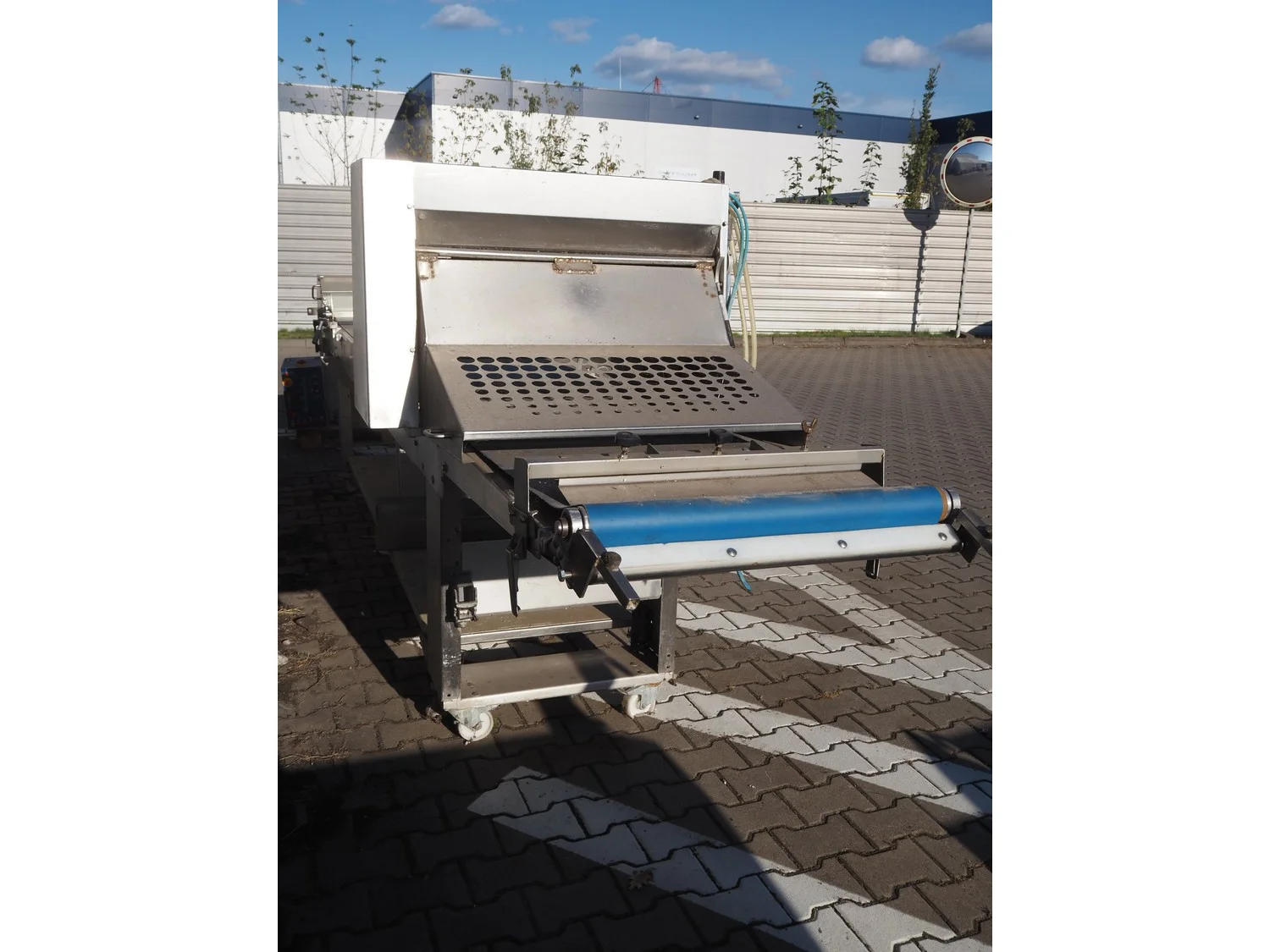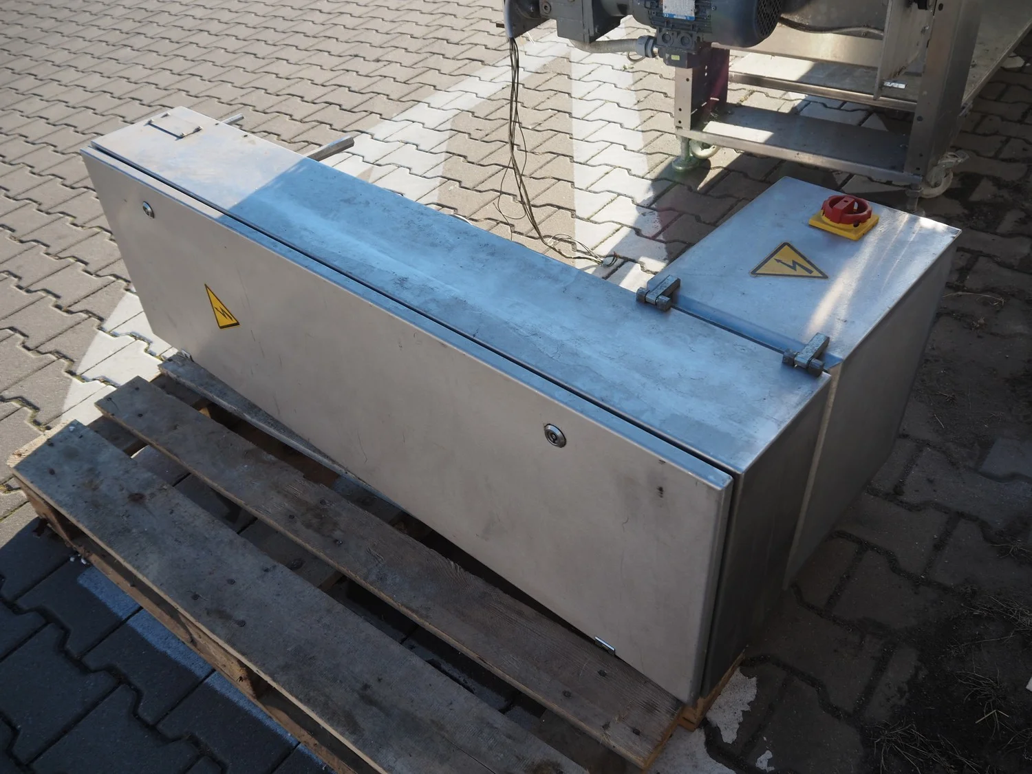 Fritsch laminating machine, plastic belt, belt width: 630 mm, total dimensions: 5000 mm x 1100 mm x 1540 mm. Incomplete.