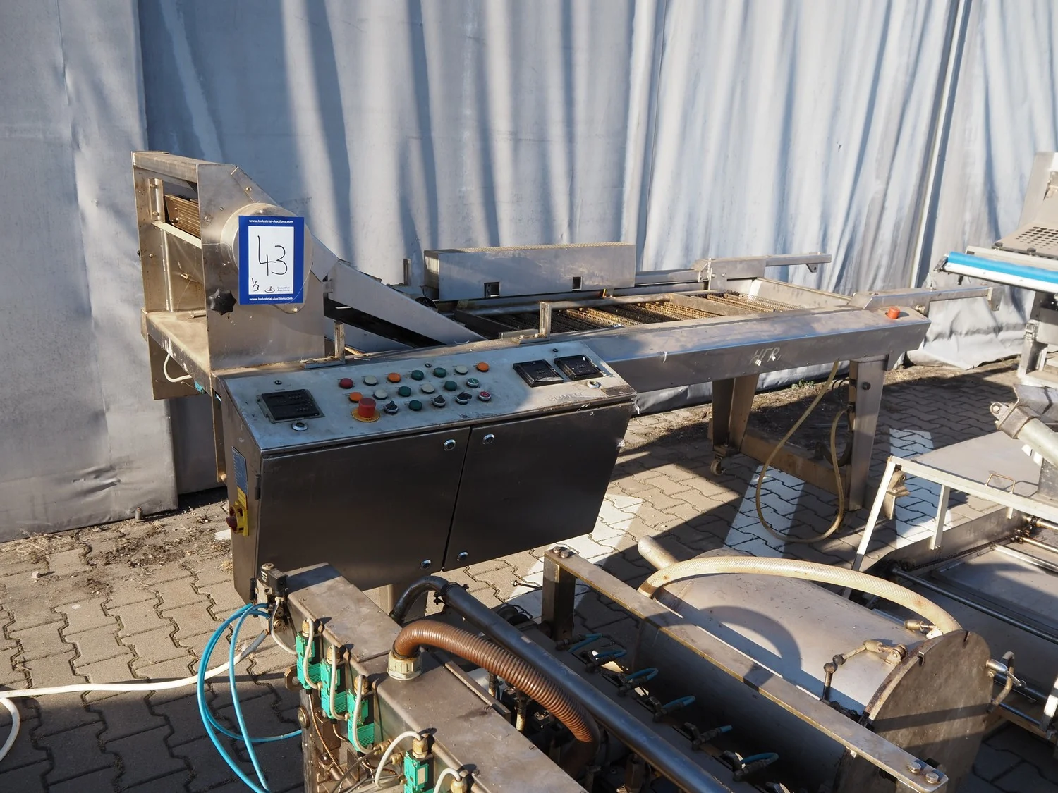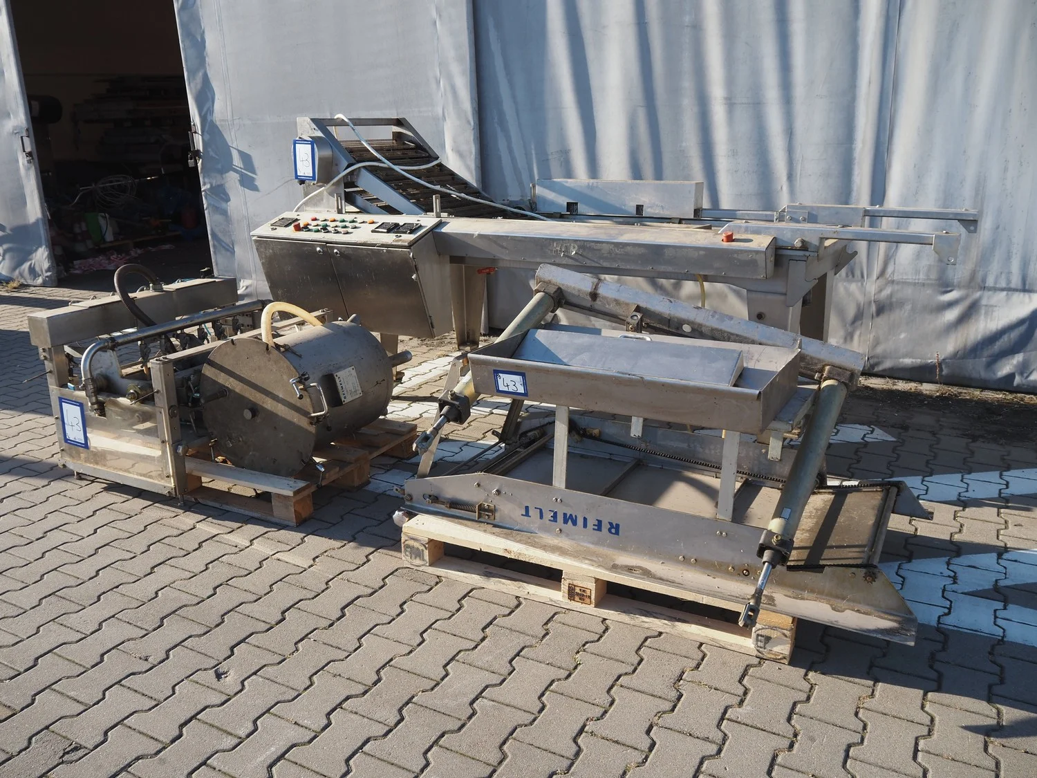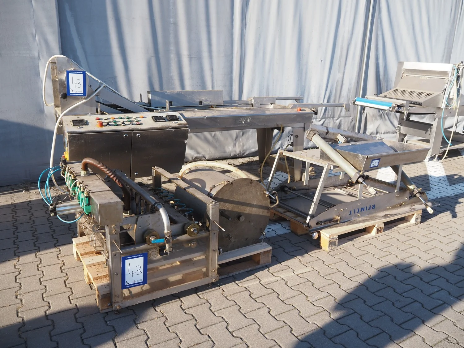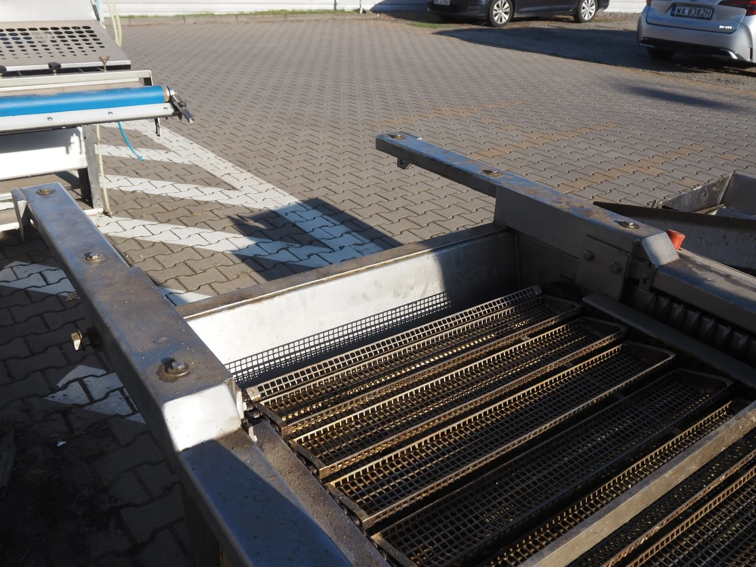 Reimelt donut fryer, type: EL 6-1000, year of construction: 1993, 380 V, 3 Ph, 50 Hz, 18.5 kW, dimensions baskets: 590 mm x 90 mm, elevating outfeed height: 1200 mm, total dimensions: 3100 mm x 1280 mm x 1410 mm. Including 2 pallets with parts, of which amoung others a dosing unit.