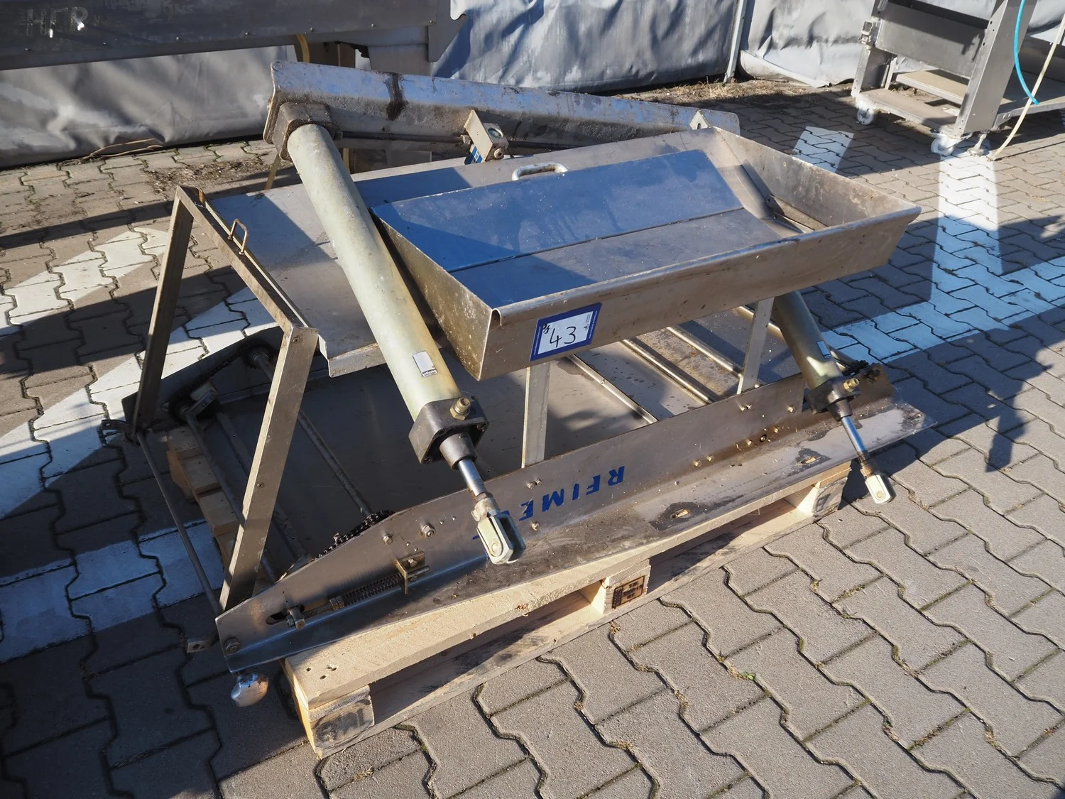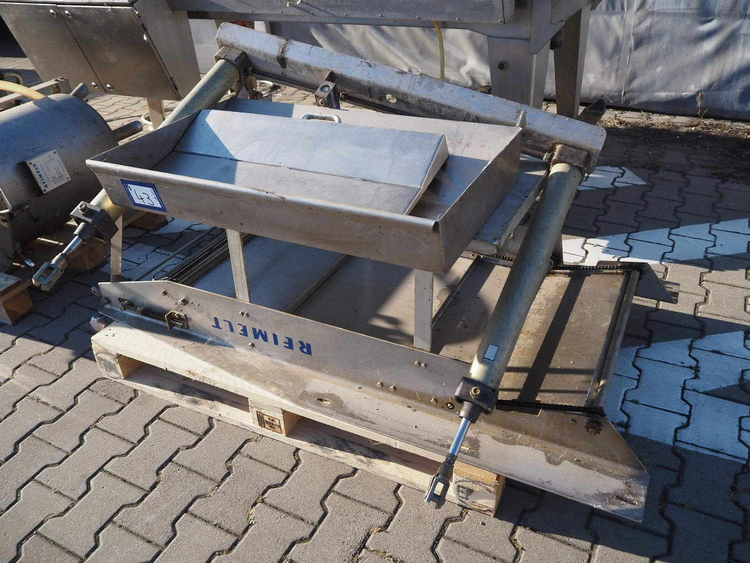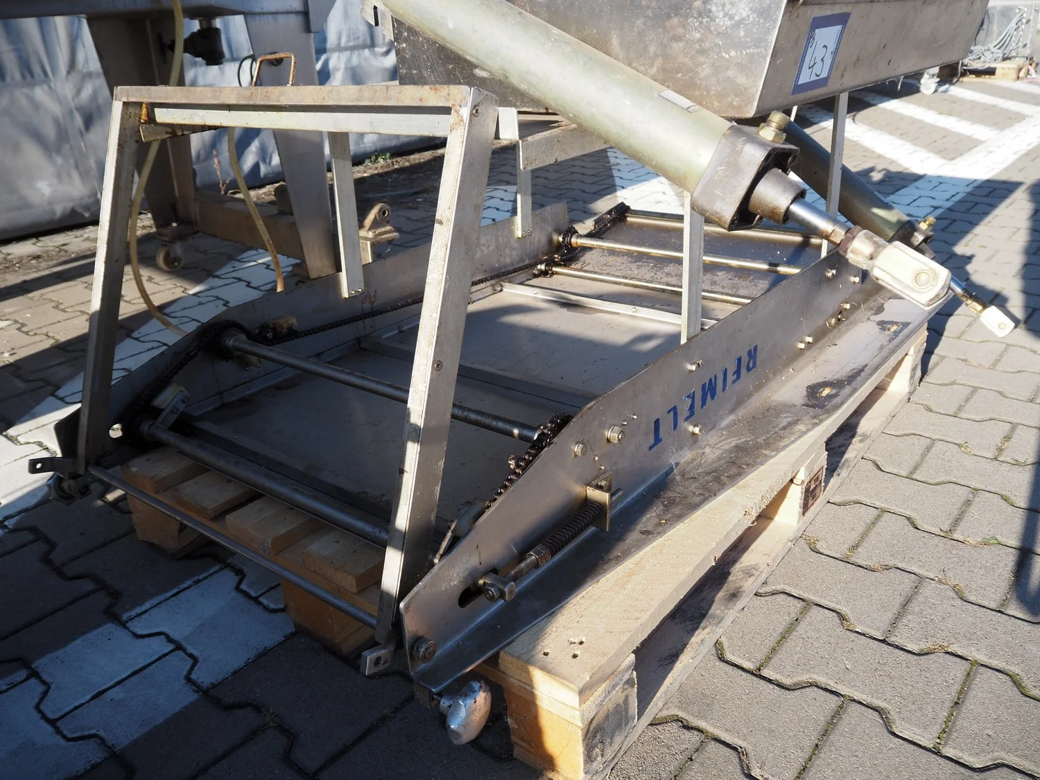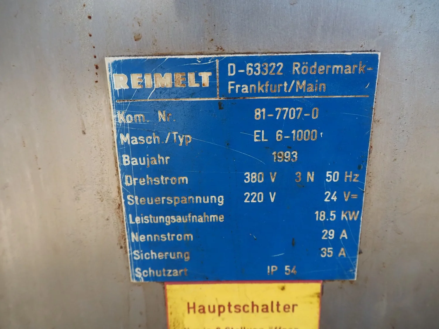 Reimelt donut fryer, type: EL 6-1000, year of construction: 1993, 380 V, 3 Ph, 50 Hz, 18.5 kW, dimensions baskets: 590 mm x 90 mm, elevating outfeed height: 1200 mm, total dimensions: 3100 mm x 1280 mm x 1410 mm. Including 2 pallets with parts, of which amoung others a dosing unit.