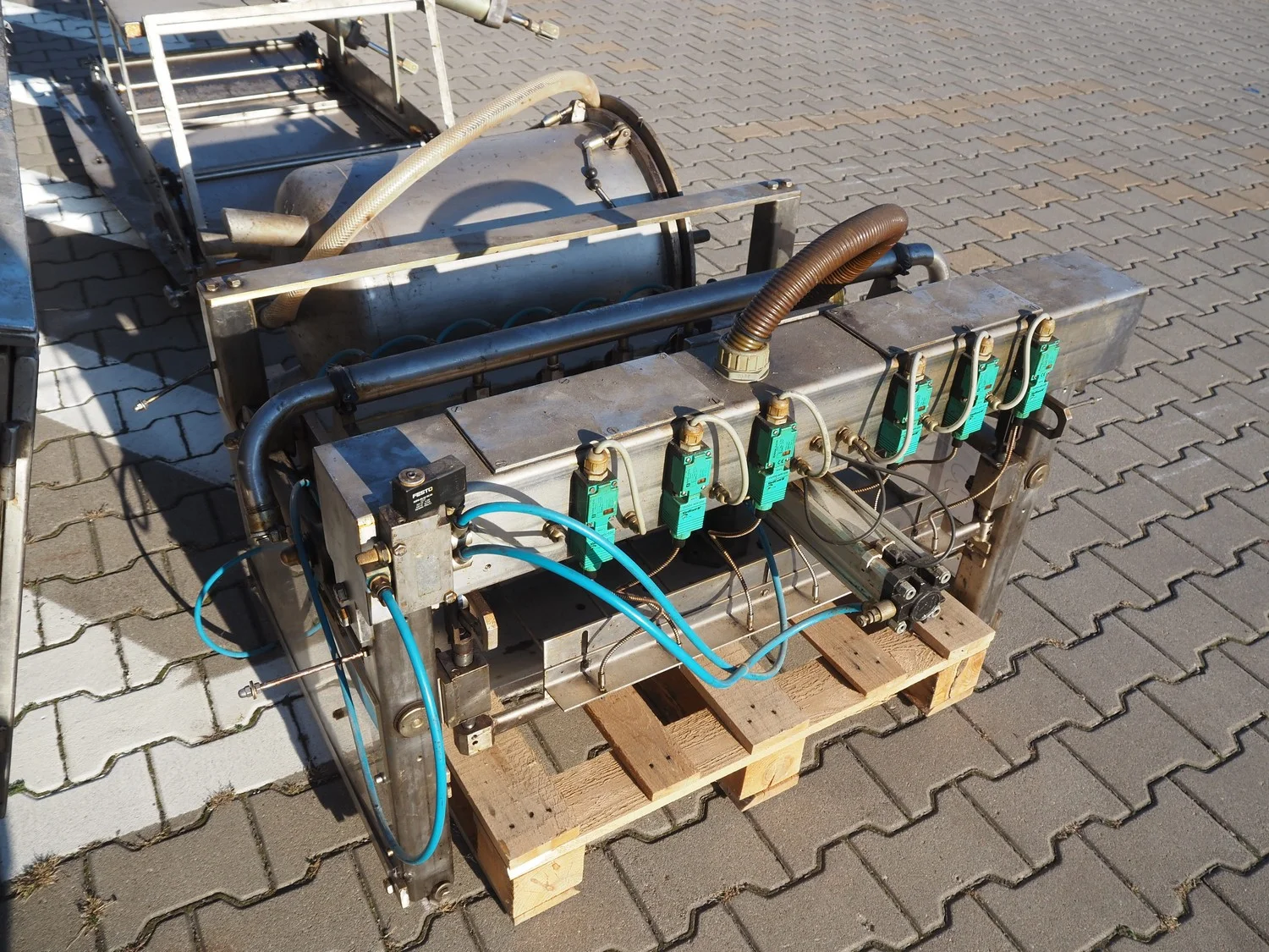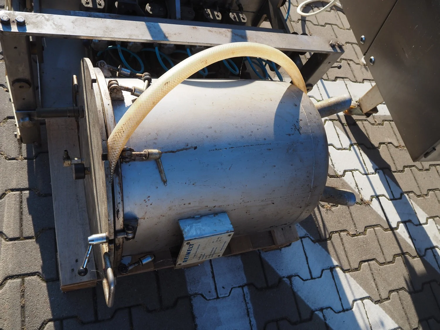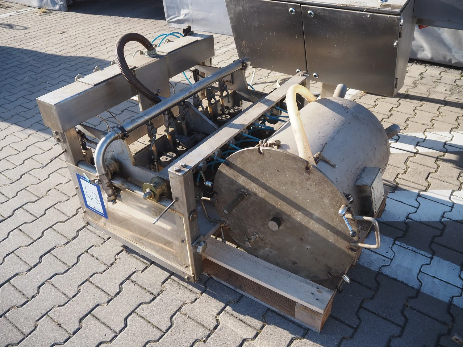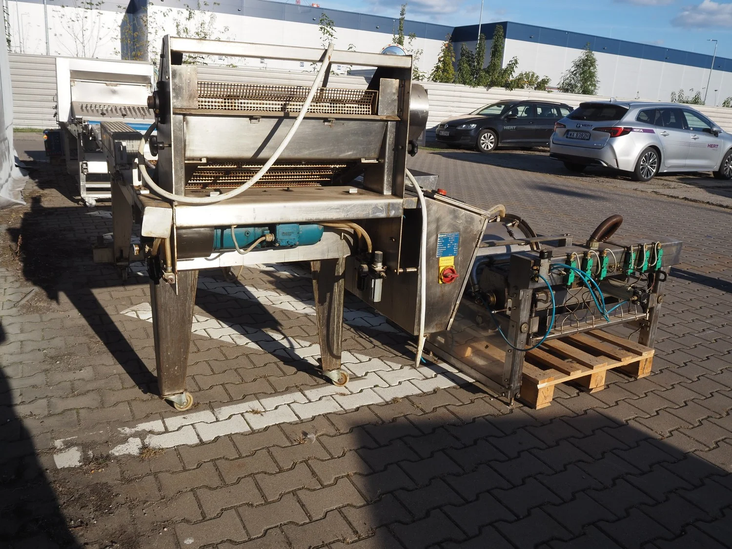 Reimelt donut fryer, type: EL 6-1000, year of construction: 1993, 380 V, 3 Ph, 50 Hz, 18.5 kW, dimensions baskets: 590 mm x 90 mm, elevating outfeed height: 1200 mm, total dimensions: 3100 mm x 1280 mm x 1410 mm. Including 2 pallets with parts, of which amoung others a dosing unit.