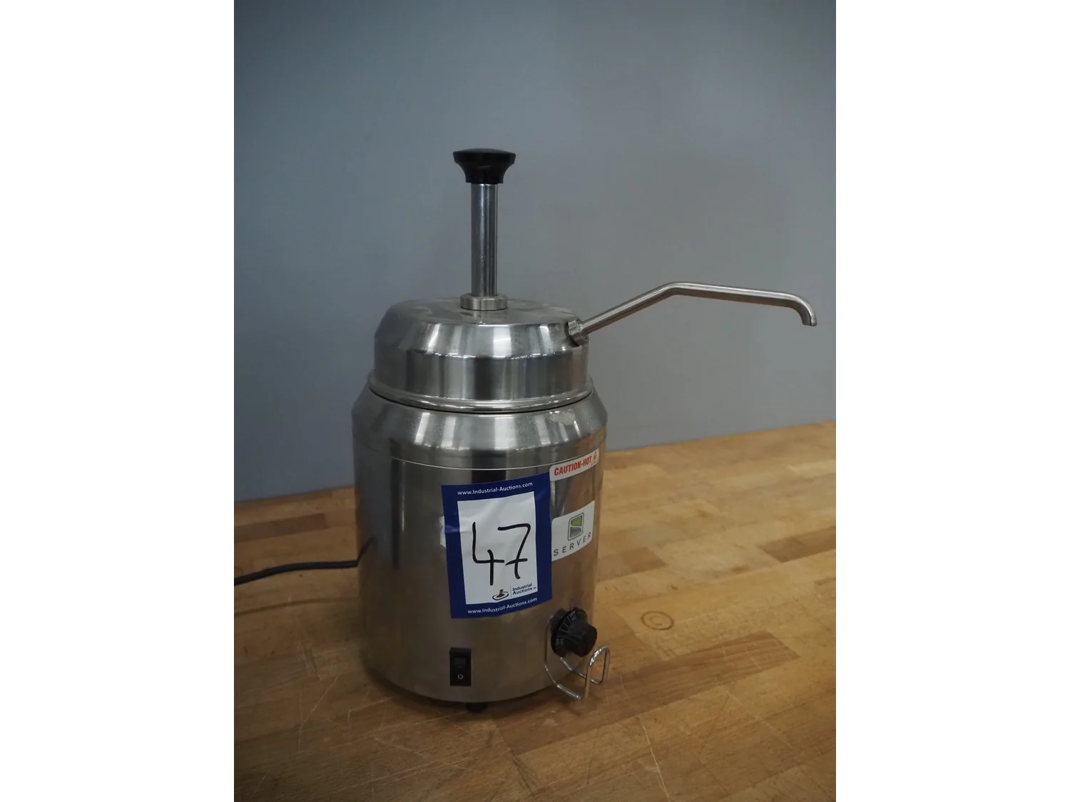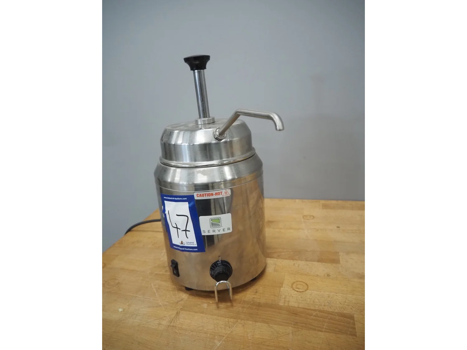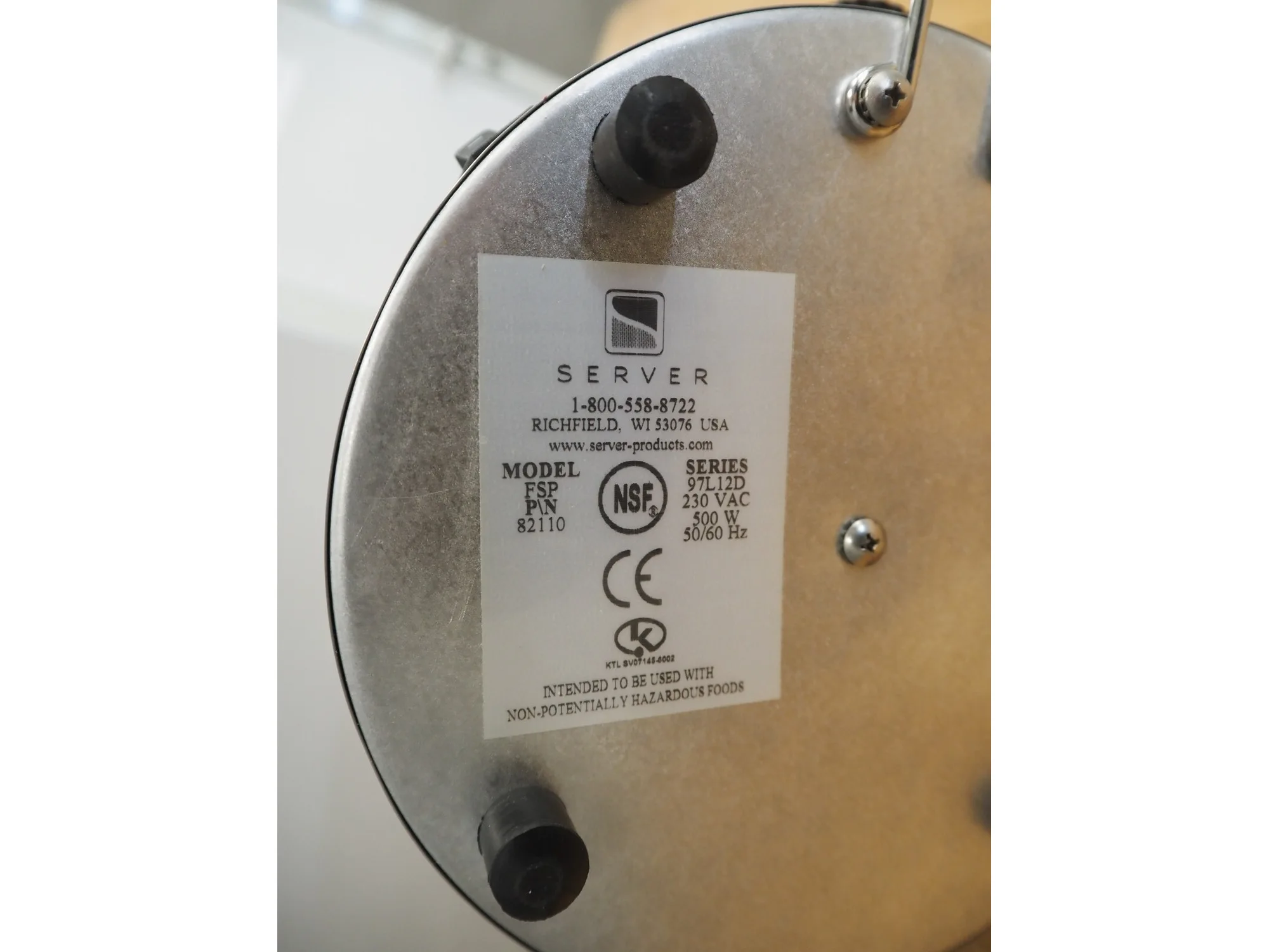 Server manual hot sauce pump, model: FSP, serial number: 82110, 230 VAC, 50/60 Hz, 500 W, dimensions: 360 mm x 200 mm x 400 mm.