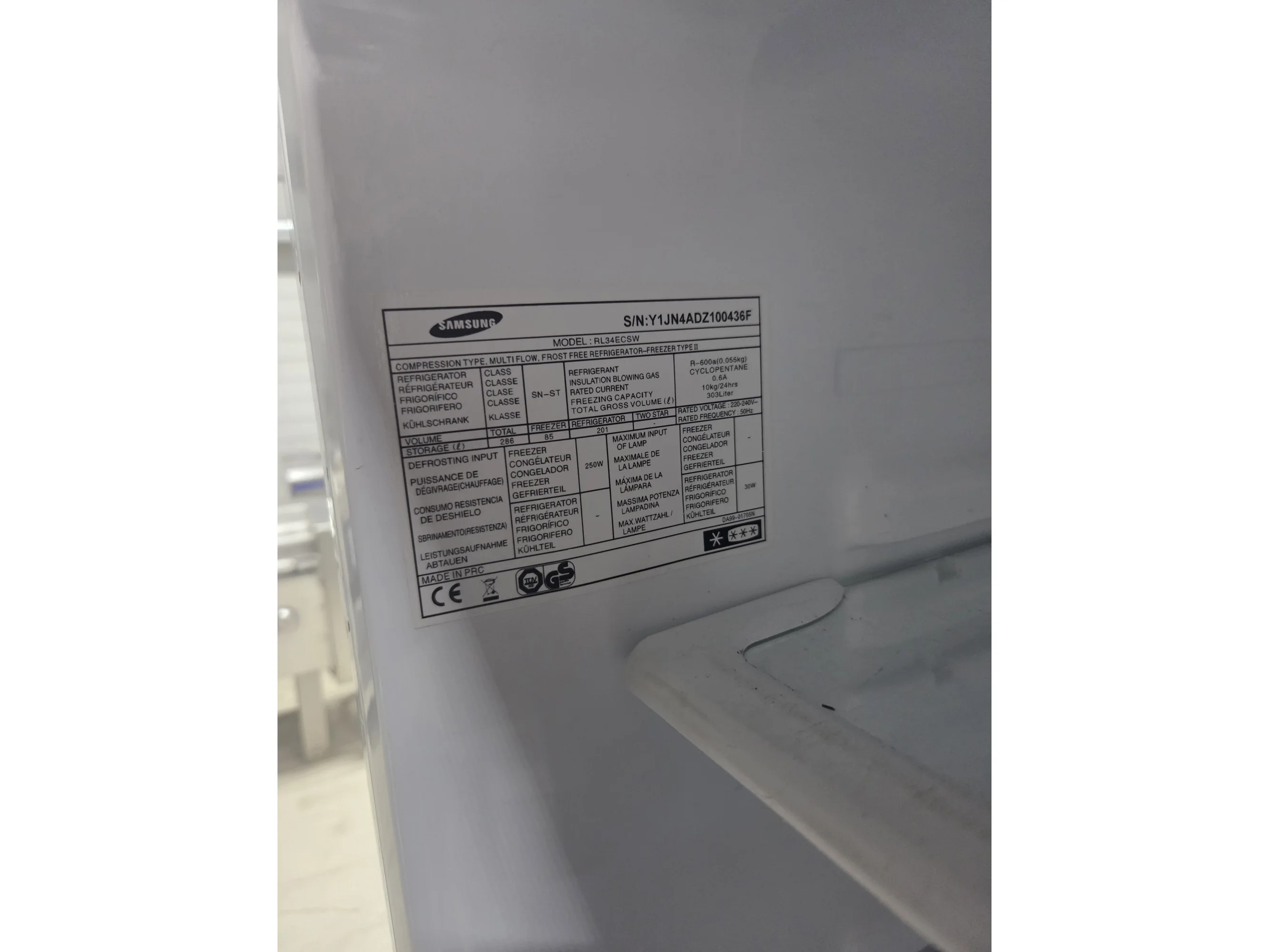 Samsung refrigerator with freezer, model: RL34ECSW, serial number: Y1JN4ADZ100436F, 220-240 V, 50 Hz, dimensions: 600 mm x 685 mm x 1775 mm. Display and frost free are not working, drawers are broken.