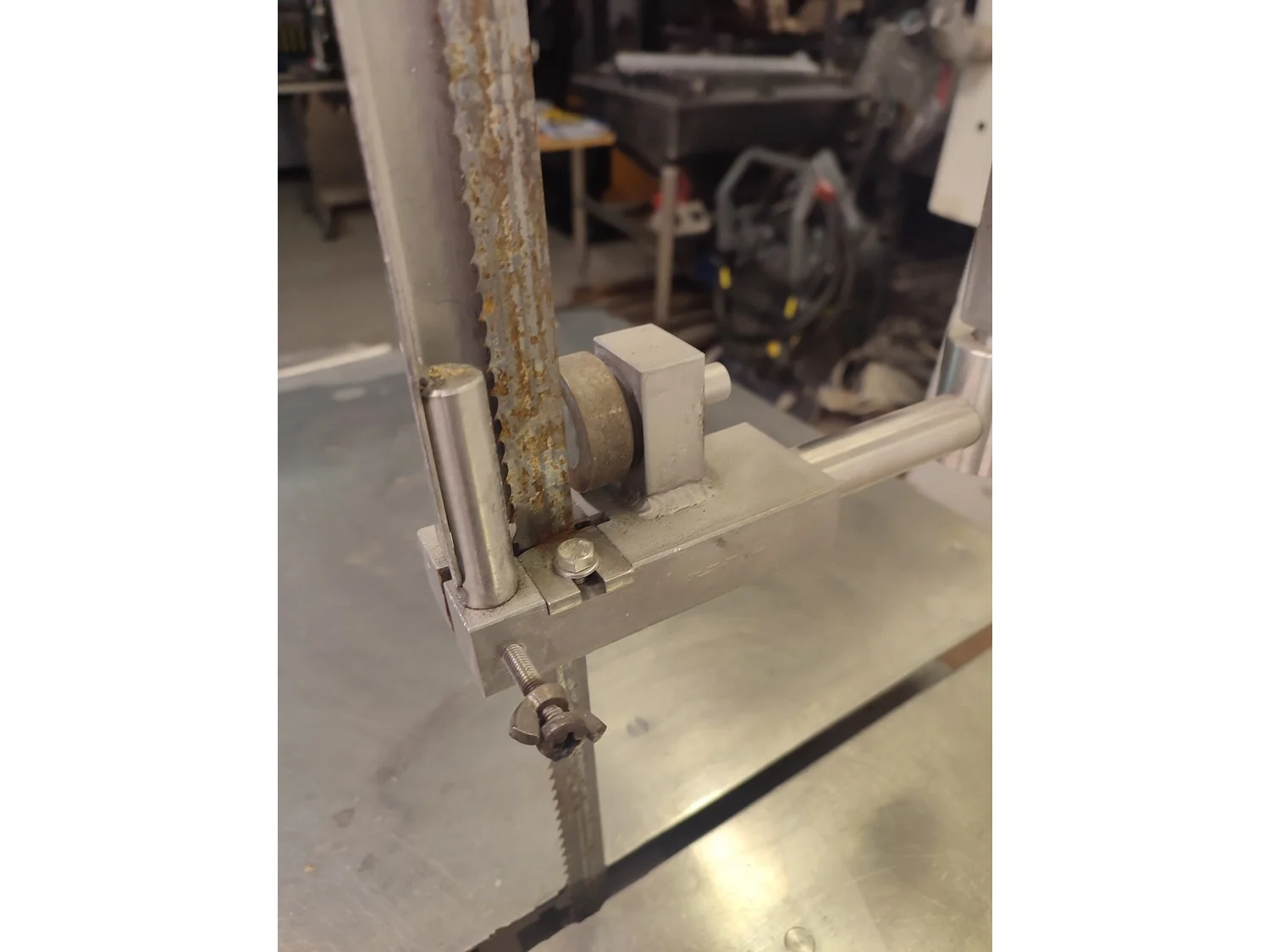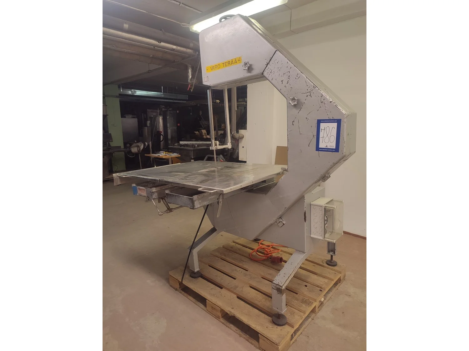 Koneteollisuus Oy bandsaw, type: KT-750, dimensions table: 1300 mm x 940 mm, total dimensions: 2050 mm x 1500 mm x 2200 mm.