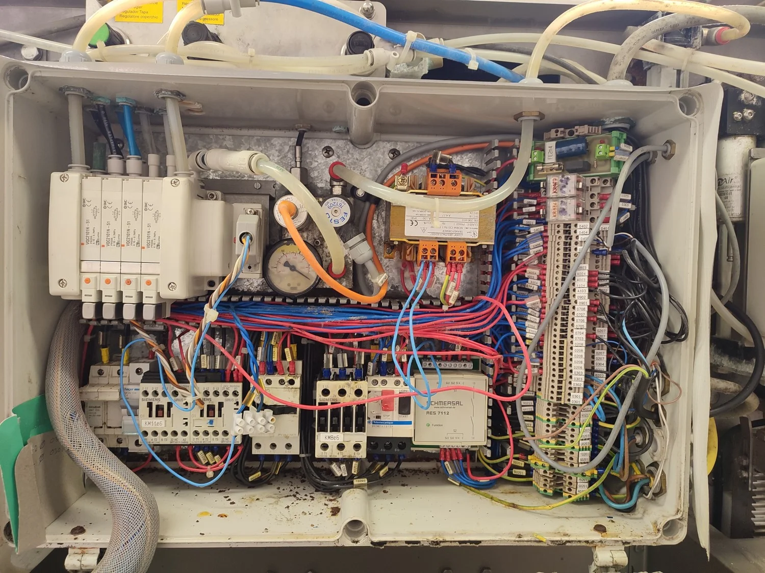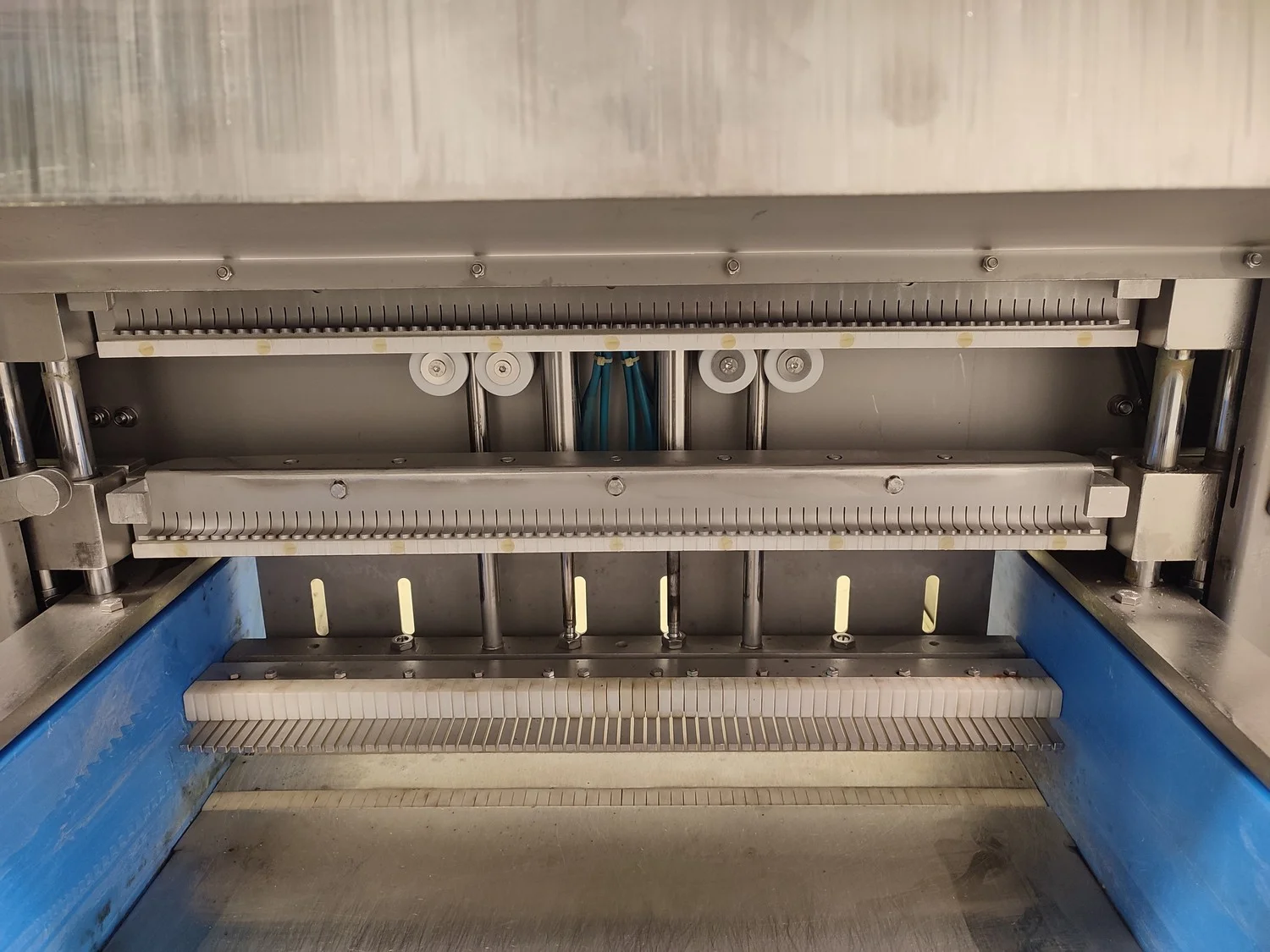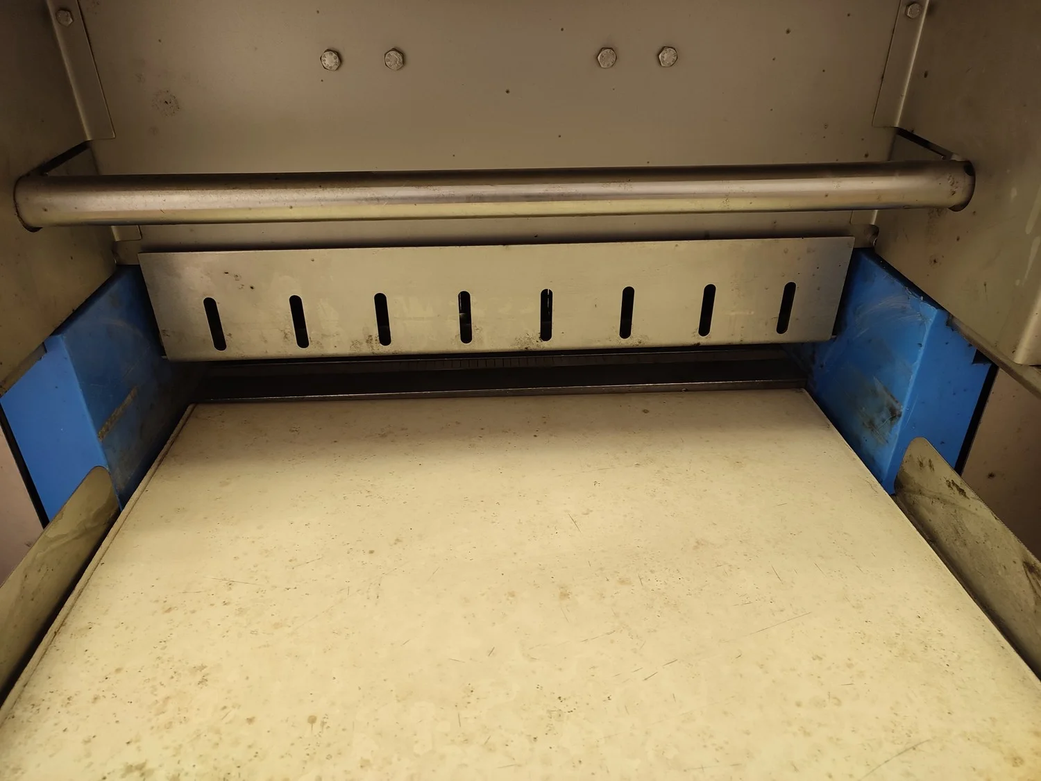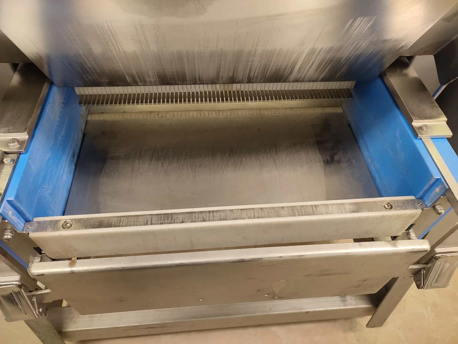 Grasselli SpA mobile automatic slicer, model: SL600, serial number: 013000/231, 380 V, 50 Hz, 3 Ph, 7 A, plastic belt, belt width: 595 mm, distance between knives: 10 mm, total dimensions: 1300 mm x 1300 mm x 1820 mm.